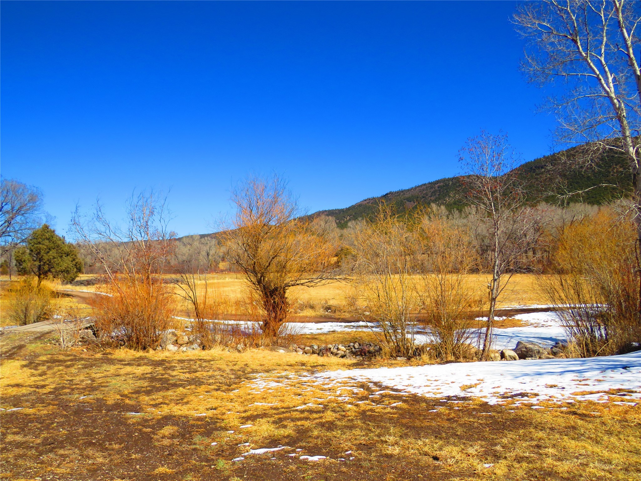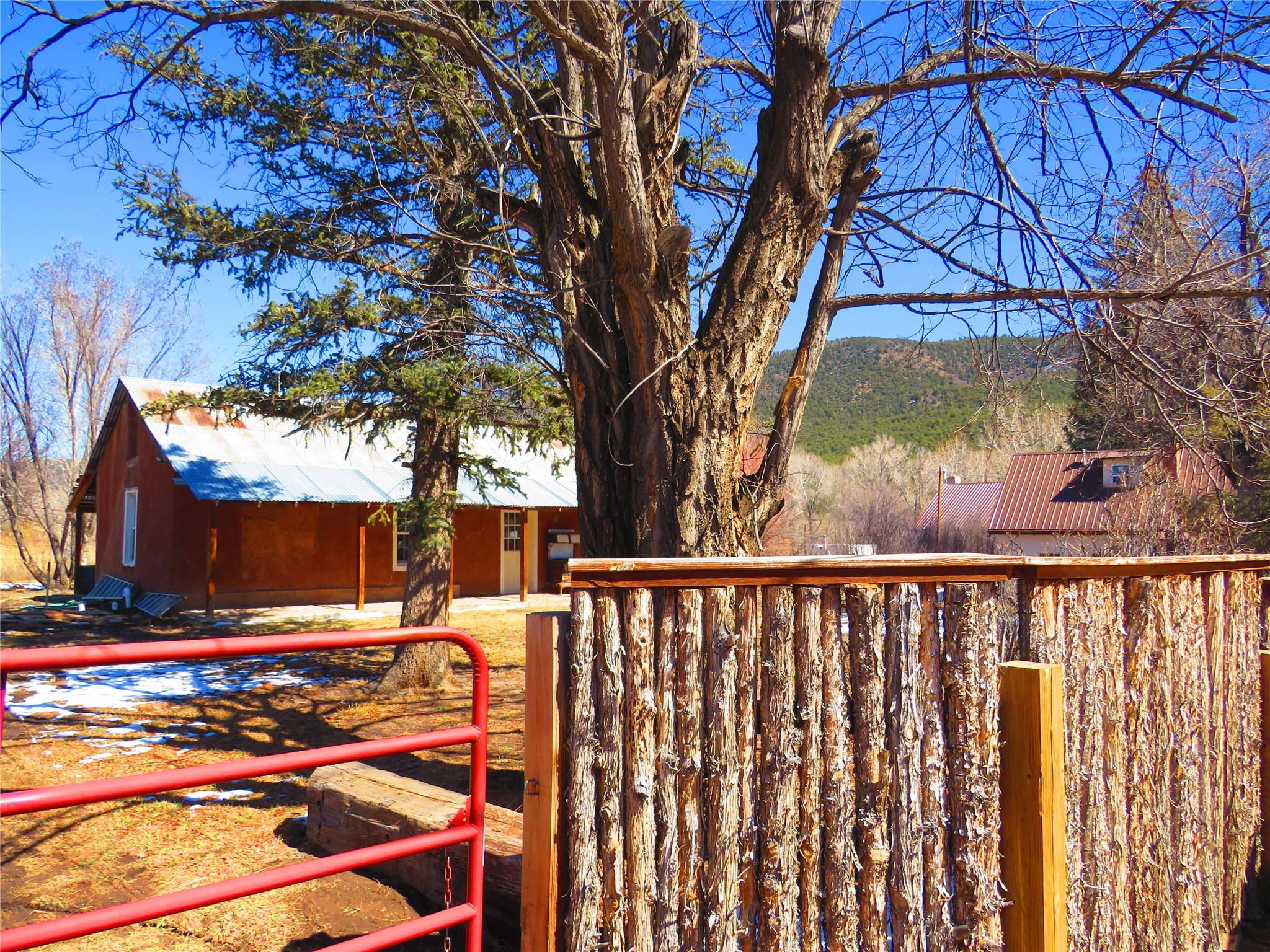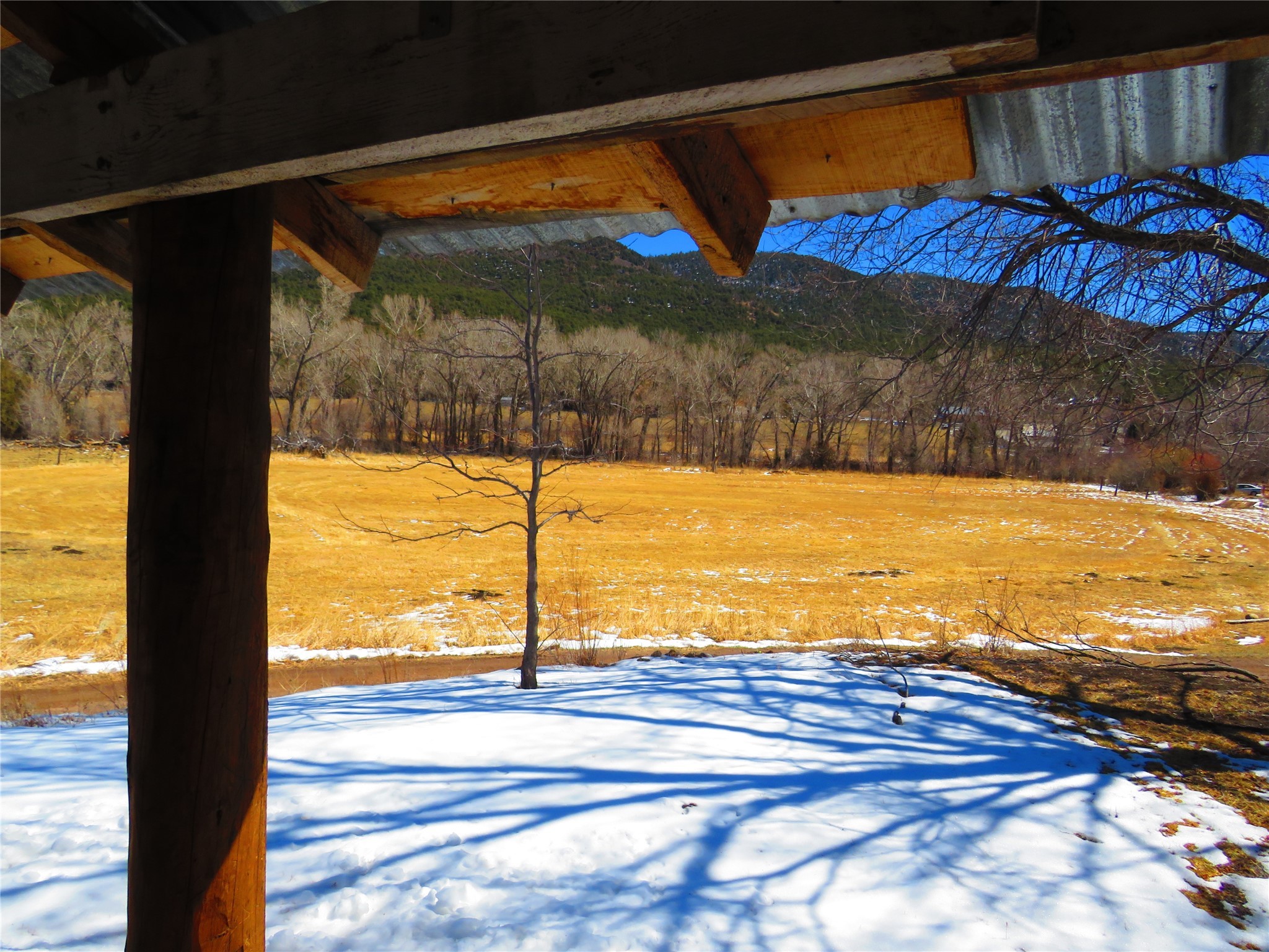 Located in the heart of the historic Northern New Mexico mountain village of Vallecitos, this property offers rural living at its best. Bordered by the Vallecitos River and traversed by the charming Borracho Creek, the land boasts fishing rights, cottonwoods, evergreens, and lush pasture. There are irrigation rights, though the pasture requires little attention. This is the perfect spot for outdoor living and it is a horse lover's paradise, with endless wilderness to explore. The main residence, two bedrooms, and two baths, is traditional double adobe construction, lovingly restored and updated, with sculpted walls, territorial trim. hand hewn beams, and portals. The home is heated by two woodstoves and electric baseboard units. The one-bedroom guest house sits at some distance with a separate driveway, overlooking the pasture and river. This structure offers outdoor space, a rock fireplace and nice finishes. New septic systems are in place, wiring and plumbing is new. Come and make those last few detail complete and you will have a rare gem.