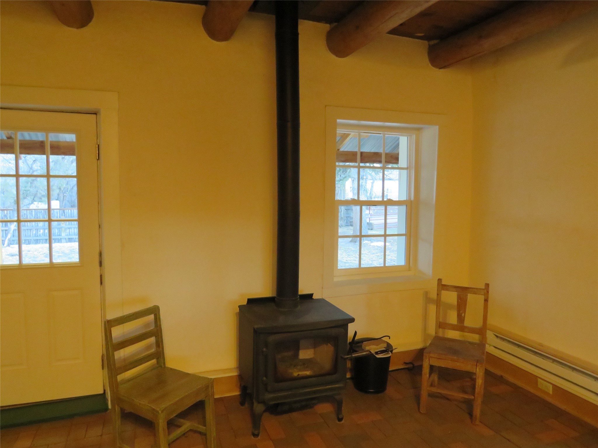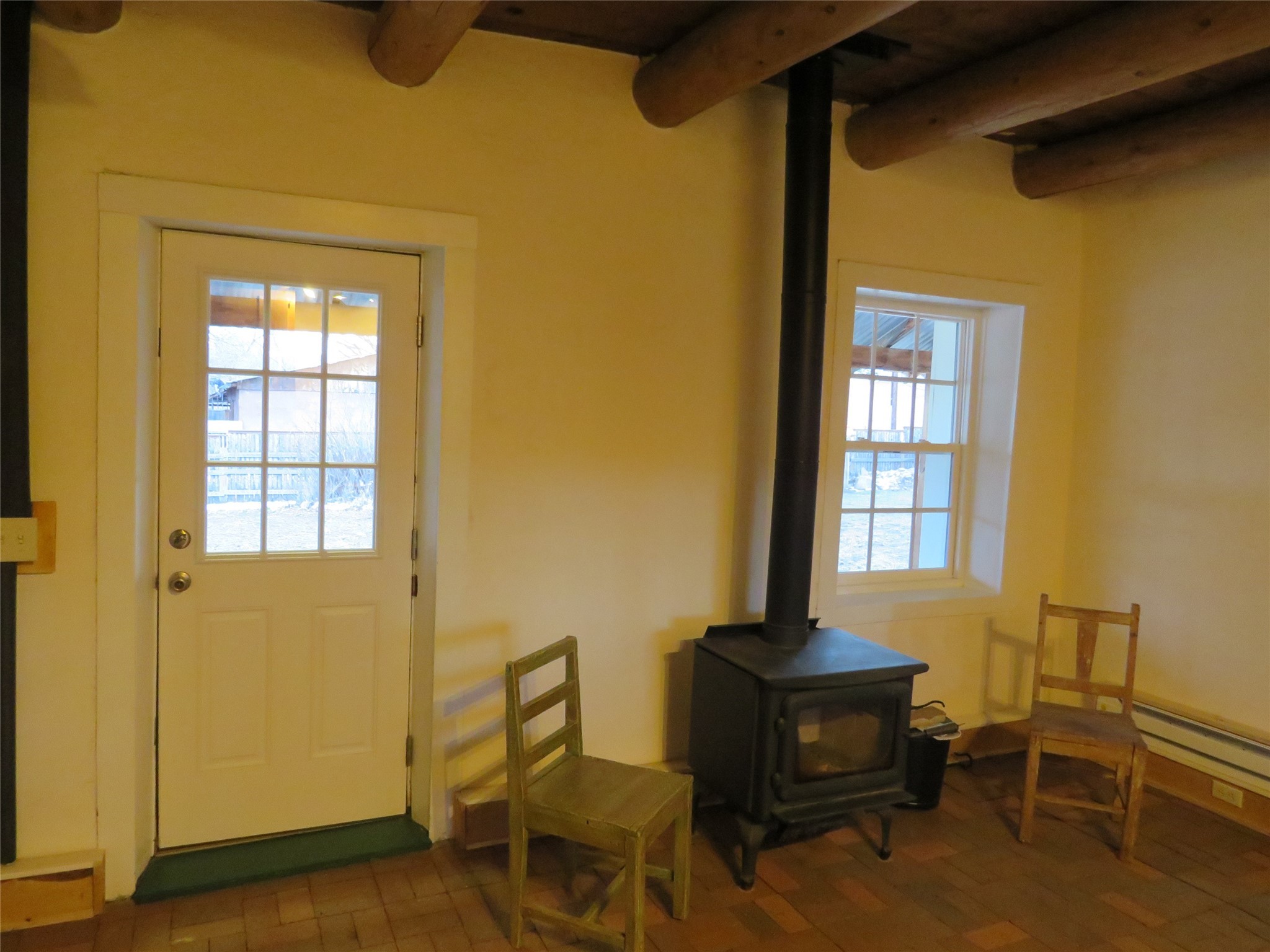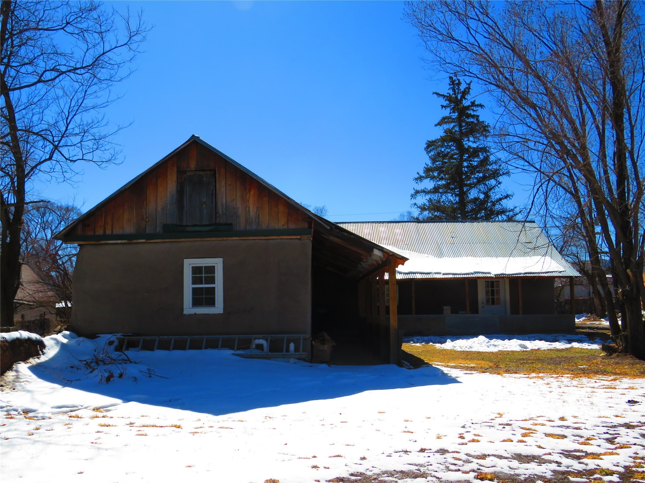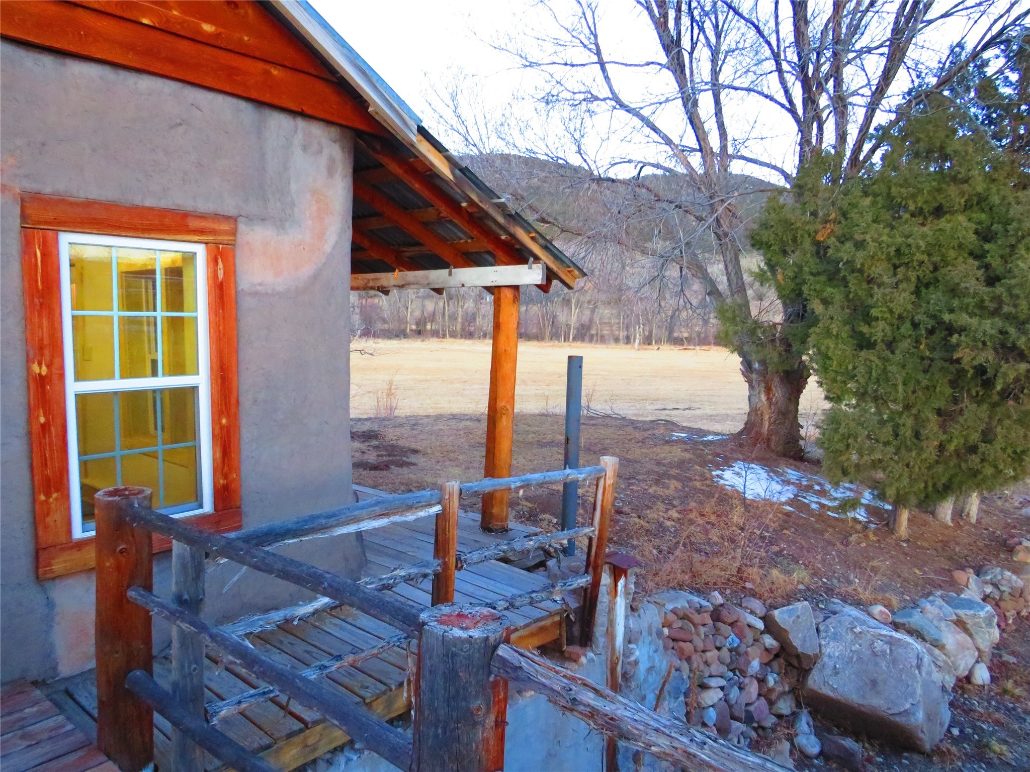 Located in the heart of the historic Northern New Mexico mountain village of Vallecitos, this property offers rural living at its best. Bordered by the Vallecitos River and traversed by the charming Borracho Creek, the land boasts fishing rights, cottonwoods, evergreens, and lush pasture. There are irrigation rights, though the pasture requires little attention. This is the perfect spot for outdoor living and it is a horse lover's paradise, with endless wilderness to explore. The main residence, two bedrooms, and two baths, is traditional double adobe construction, lovingly restored and updated, with sculpted walls, territorial trim. hand hewn beams, and portals. The home is heated by two woodstoves and electric baseboard units. The one-bedroom guest house sits at some distance with a separate driveway, overlooking the pasture and river. This structure offers outdoor space, a rock fireplace and nice finishes. New septic systems are in place, wiring and plumbing is new. Come and make those last few detail complete and you will have a rare gem.