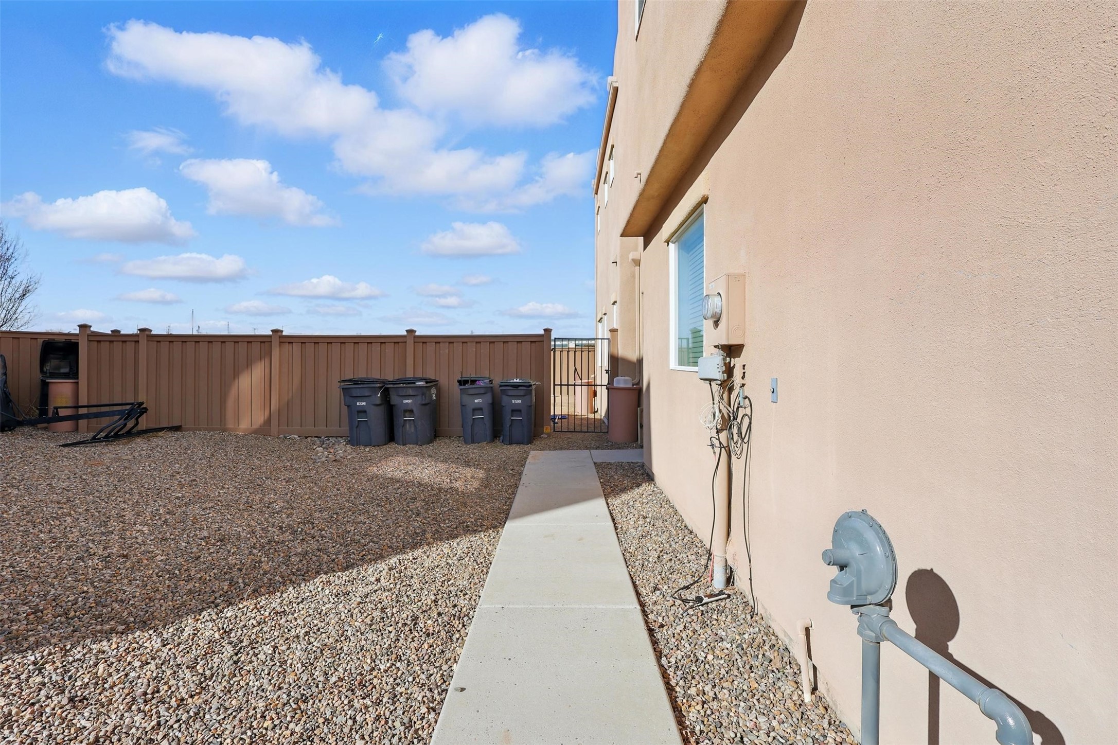 Discover this charming home in Turquoise Trail, Santa Fe! Featuring 3 bedrooms, 2 with en suite baths, plus a convenient downstairs half-bath. Dishwasher and range replaced May 2024. Microwave replaced March 2025. New carpet was installed 4/25/2025. The garage has been temporarily converted into a second living area but can easily be restored. Enjoy a prime location near I-25 and a community with private parks, playgrounds, and ample guest parking. Opportunity knocks. Will you answer?