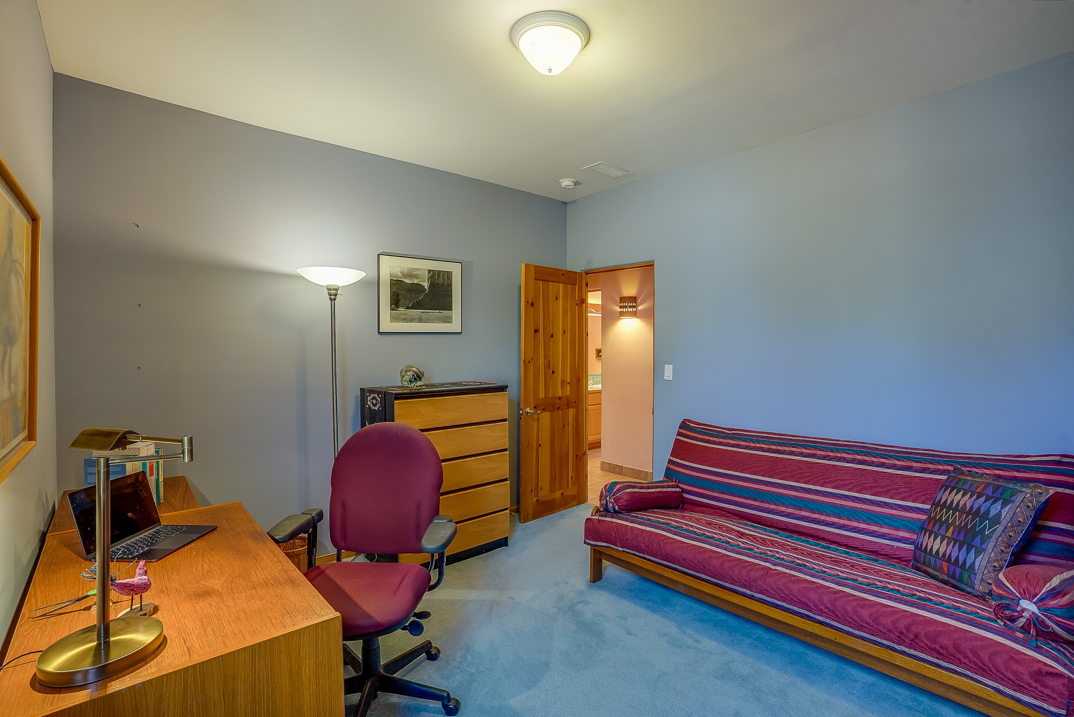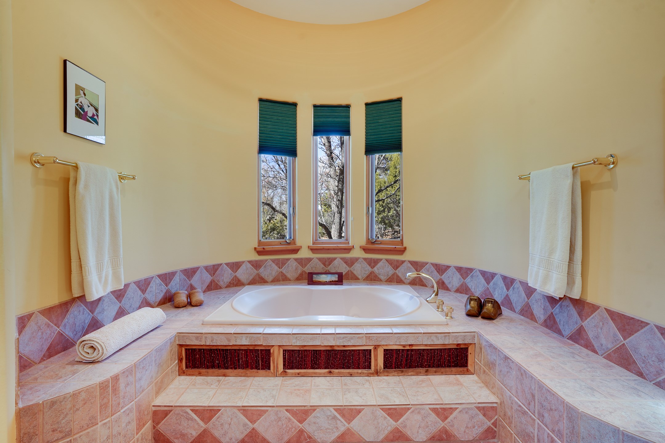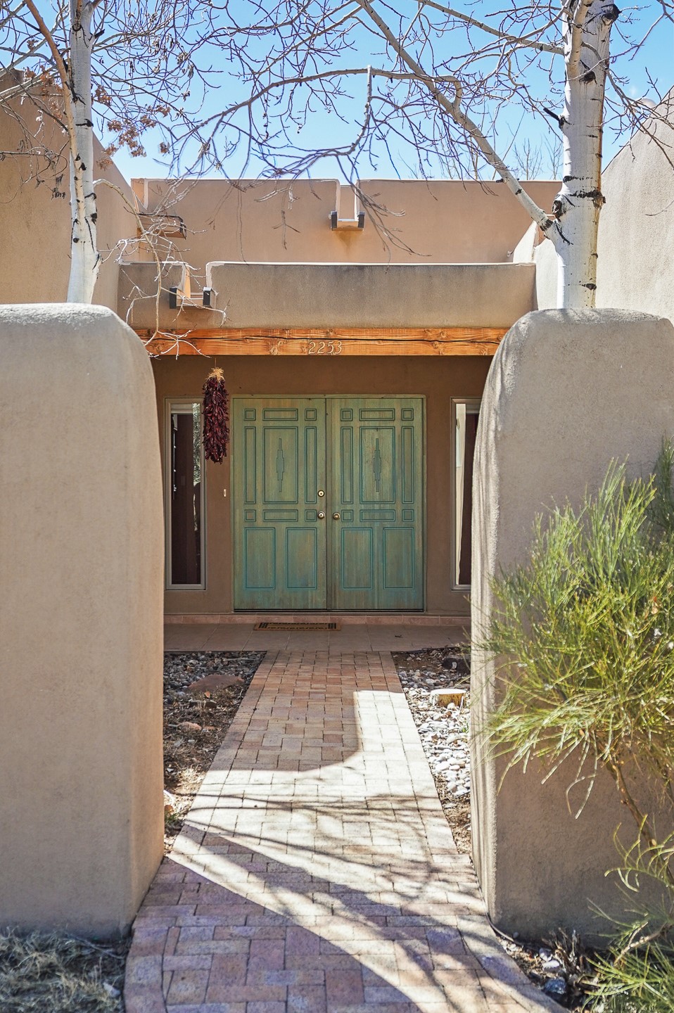 Welcome to this very gracious single level home nestled in the foothills of Santa Fe offering comfort, privacy and convenience with mountain views and spectacular sunsets. It sits on .40 acres just minutes away from museums, shopping, the local hospitals and schools on a cul-de-sac and at the end of the street. The historic plaza is within 4 miles. This home has beautiful high ceilings ( 10 ft,12 ft ,and 14 ft) with vigas in the entryway, dining room and living room. The living room, family room and primary bedroom offer sculpted fireplaces. The primary suite is very spacious and romantic with the stand alone sculpted fireplace, the bathroom has a jetted tub for relaxation, a walk-in shower with grab bars, a large walk-in closet, double sinks, a makeup vanity, tons of light and space. The open kitchen is a 'cooks kitchen' with generous space, double ovens and a center island cooktop. The kitchen and dining room open to a covered back patio with an inline gas barbecue. The patio looks out onto a beautiful garden area offering mature landscaping (with drip irrigation) with cherry and peach trees and dramatic sunset views. This home includes a newer roof (11/2021), new Navien hot water heater and boiler (12/2024), wheelchair accessibility, central air, radiant floor heat, seven skylights and an oversized garage.