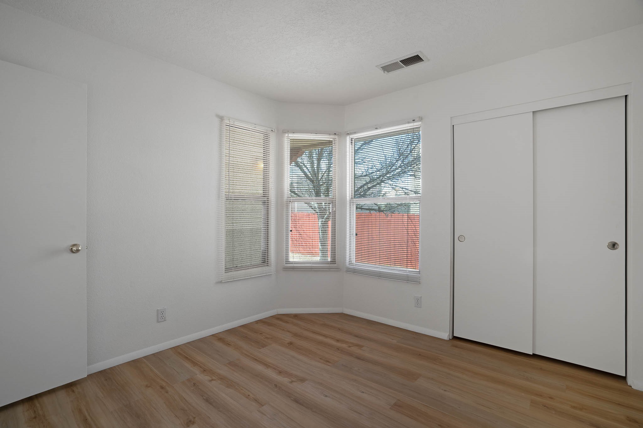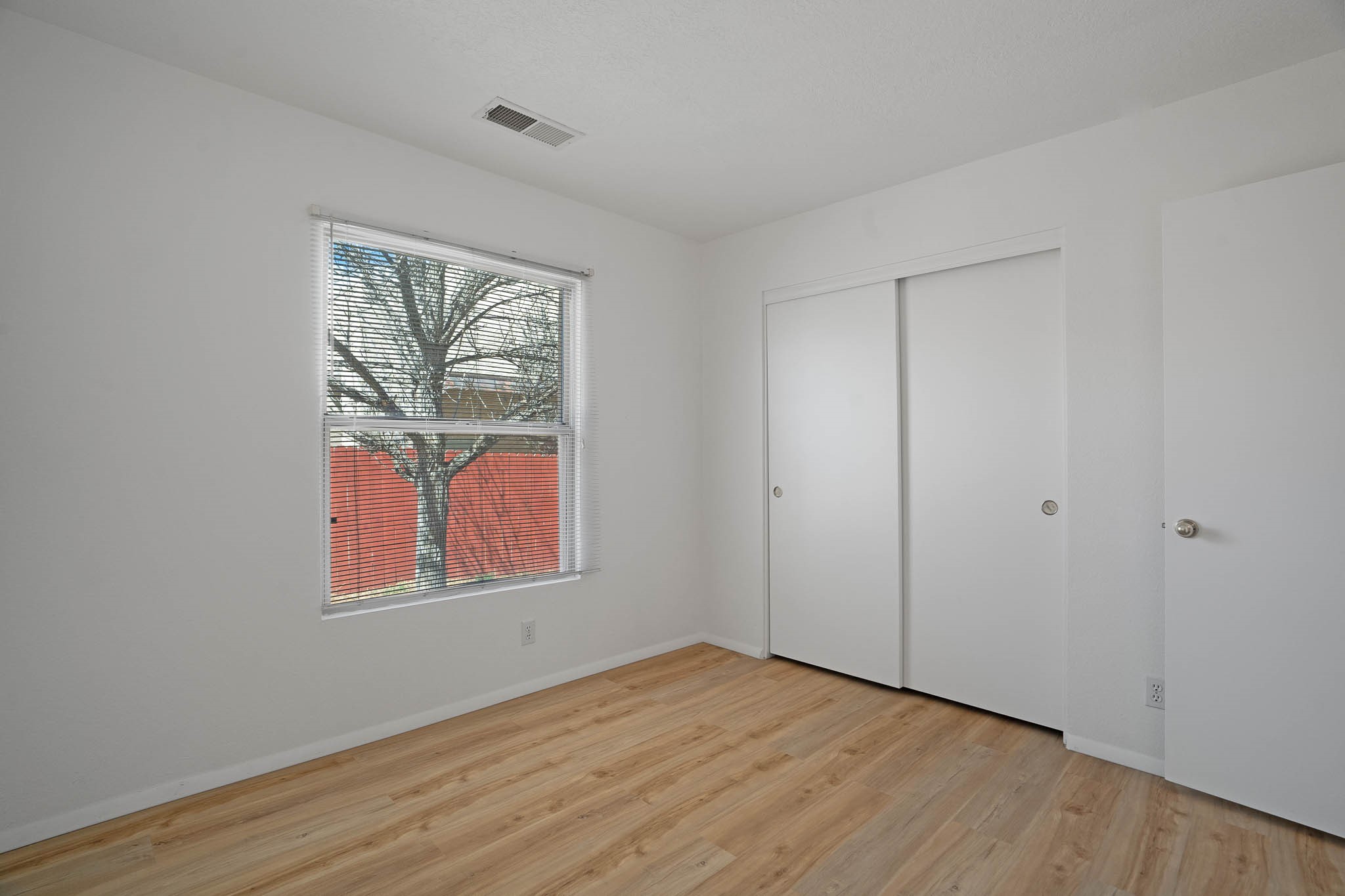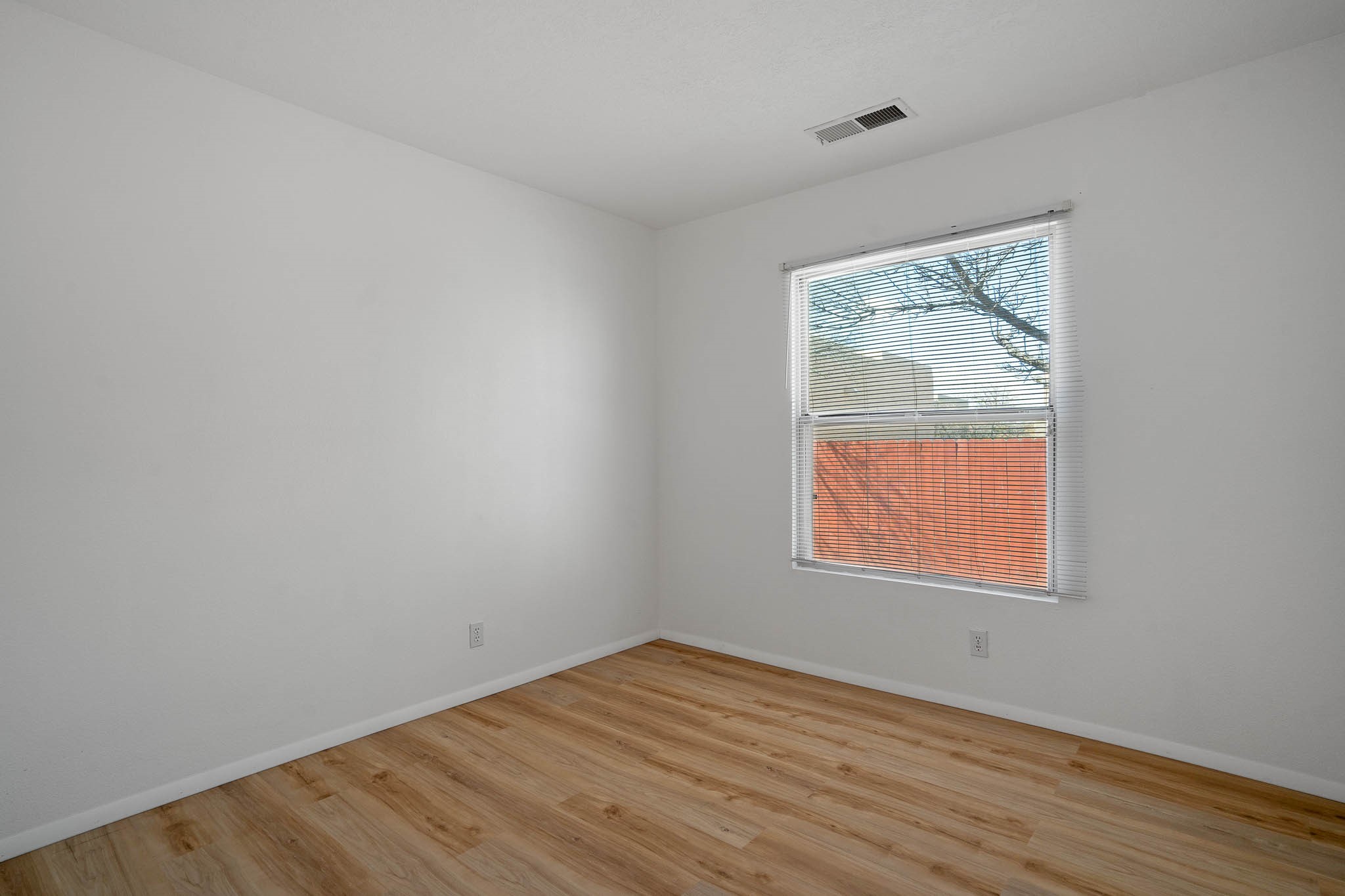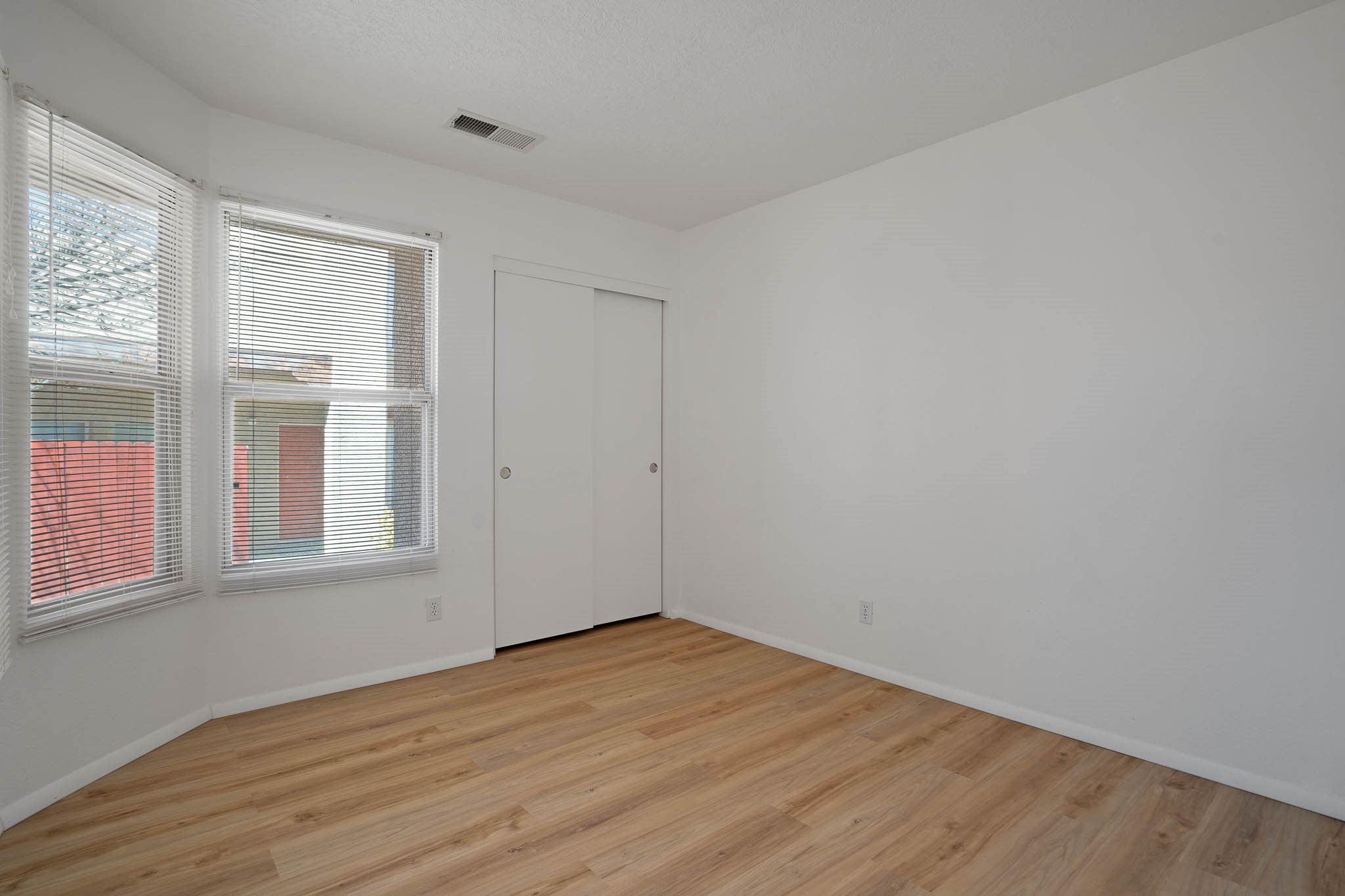 Located on a cul de sac, this single level home has been freshly painted and has new floors and is close to parks, schools, shopping, library and walking trails. Easy access to 599 and I-25 for commuters. Easy drive to the community college and Genoveva Chavez Recreational Center. Good bedroom separation for privacy with second bedroom working well as an office for those who work remotely. Nice sized, manageable fenced yard with large shade tree.