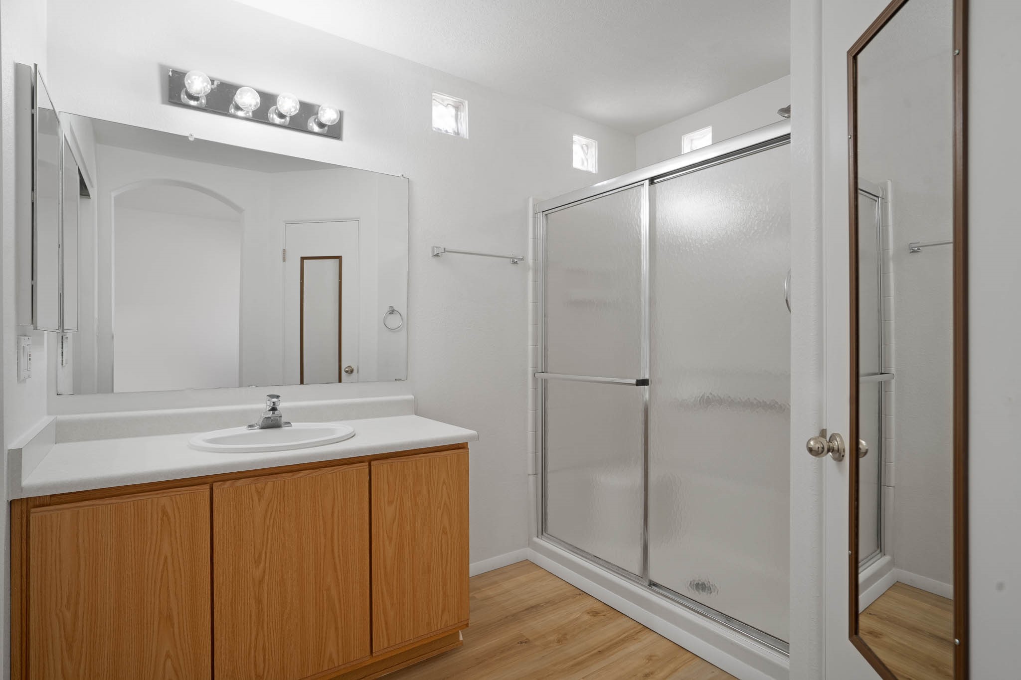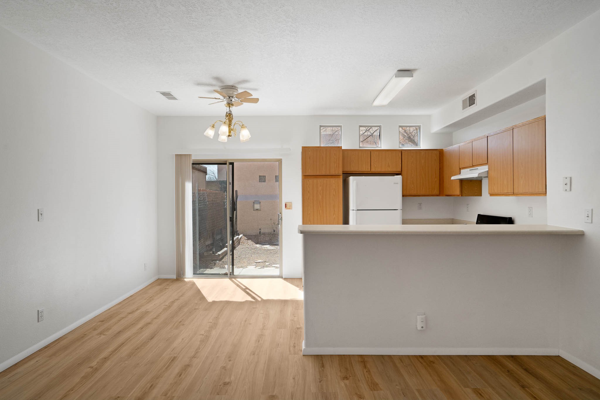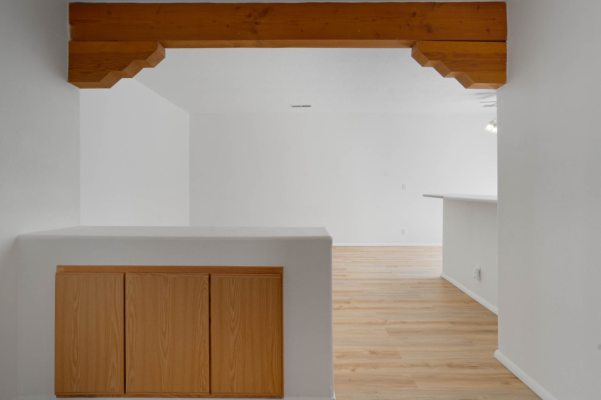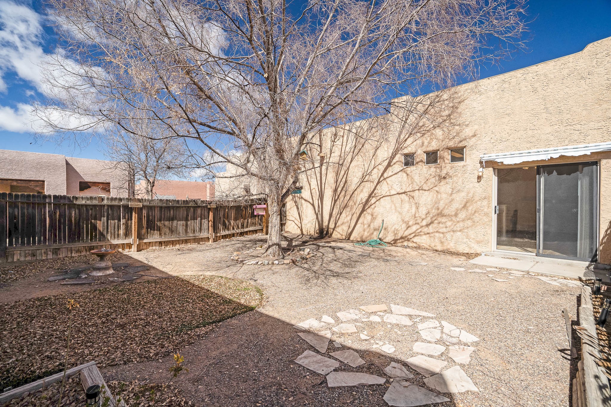 Located on a cul de sac, this single level home has been freshly painted and has new floors and is close to parks, schools, shopping, library and walking trails. Easy access to 599 and I-25 for commuters. Easy drive to the community college and Genoveva Chavez Recreational Center. Good bedroom separation for privacy with second bedroom working well as an office for those who work remotely. Nice sized, manageable fenced yard with large shade tree.