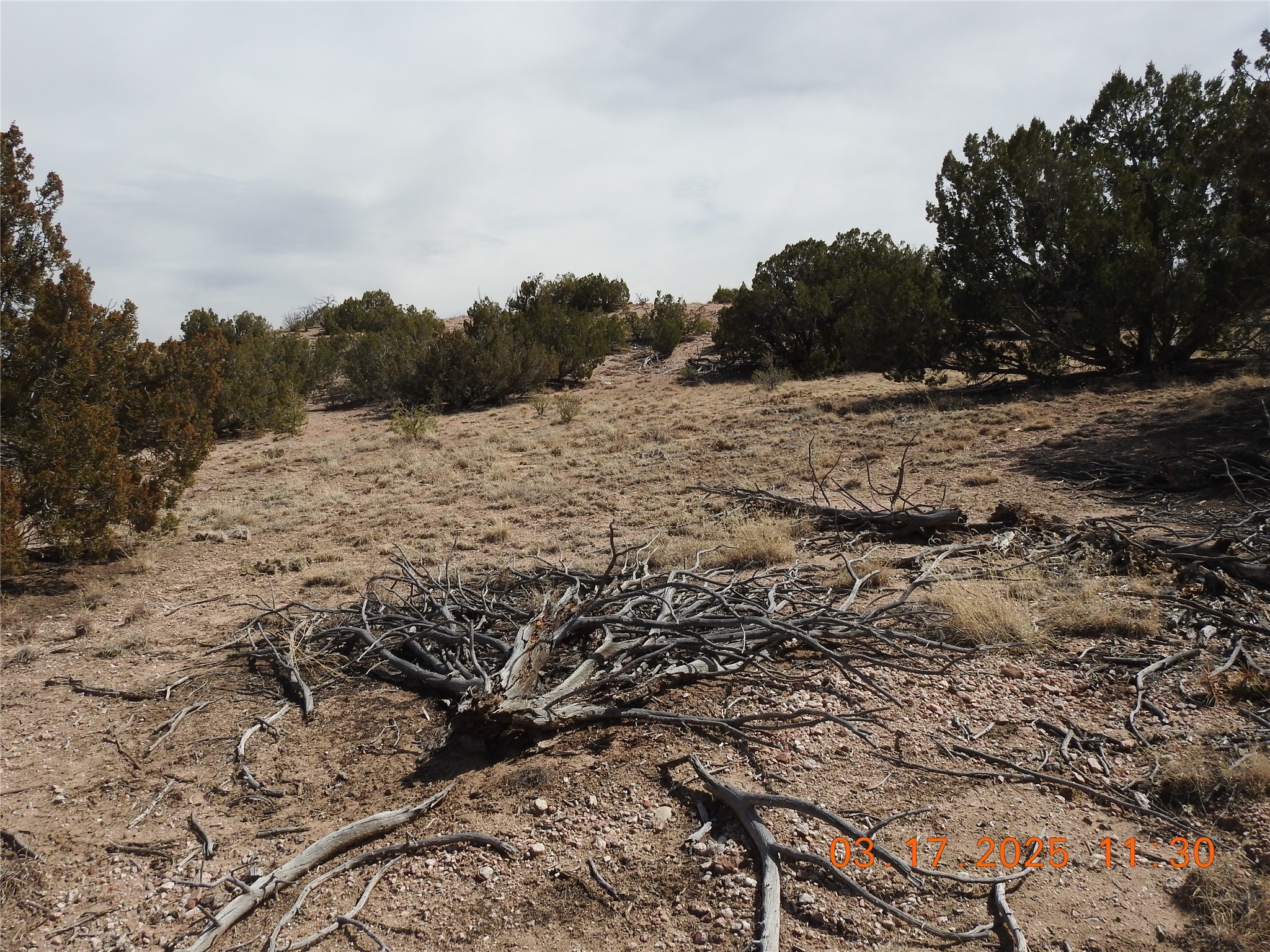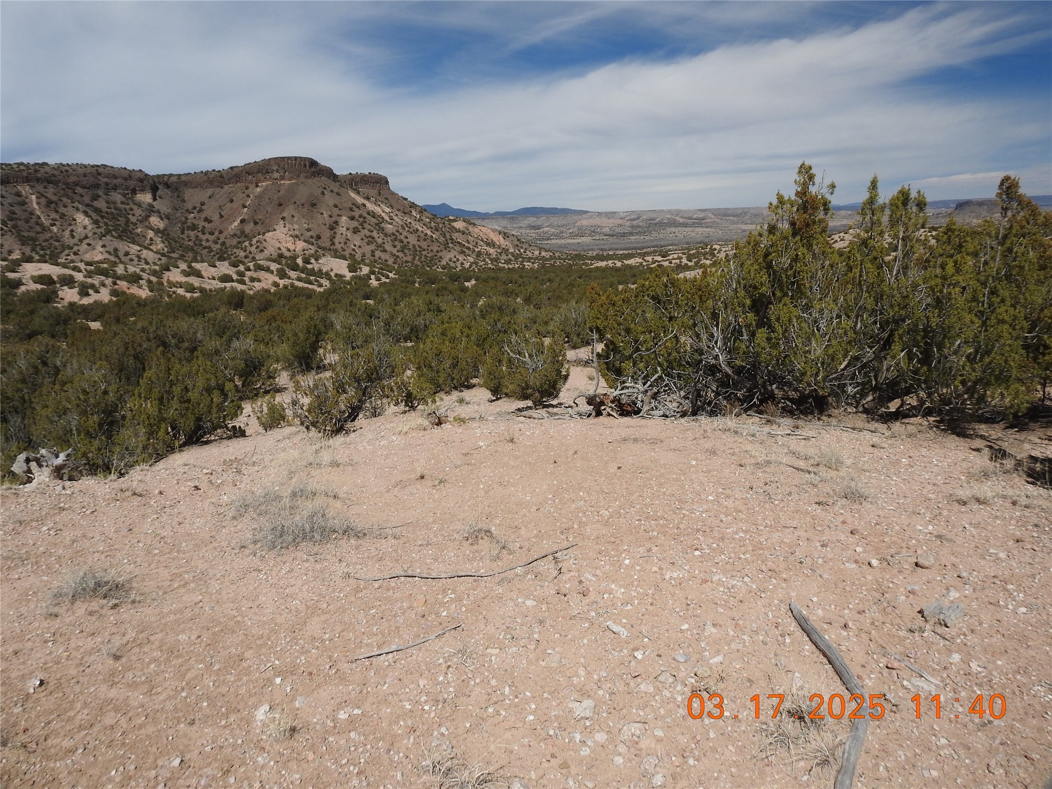 This 4.4 acre parcel is an off the grid lot. Its surrounded by BLM land so has access. BLM will not restrict access, however you may need a permit from them to build vehicle access. Views from this parcel are dramatic, you can see Black Mesa to the north, Buckman Mesa to the west and lots of surrounding barranca views. This area was ocean/lake bottom for millions of years and was more than likely the southern boundary of a huge lake which dried up around 250,000 years ago. Terrain is a gravel hill w/ limestone outcrops and juniper tree cover. Two drains cross the parcel and native wildlife are all comfortable living here. See attached docs for a map.