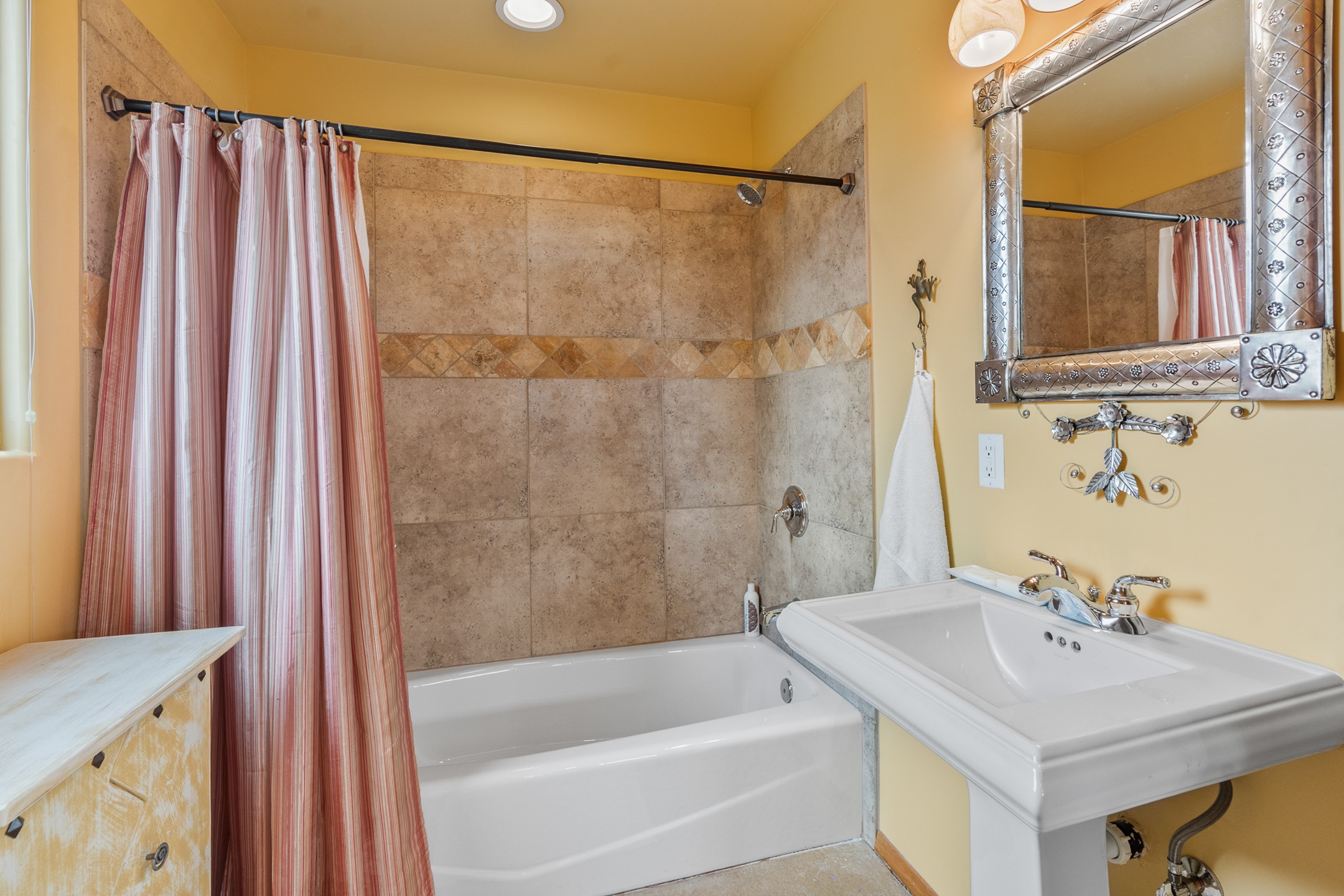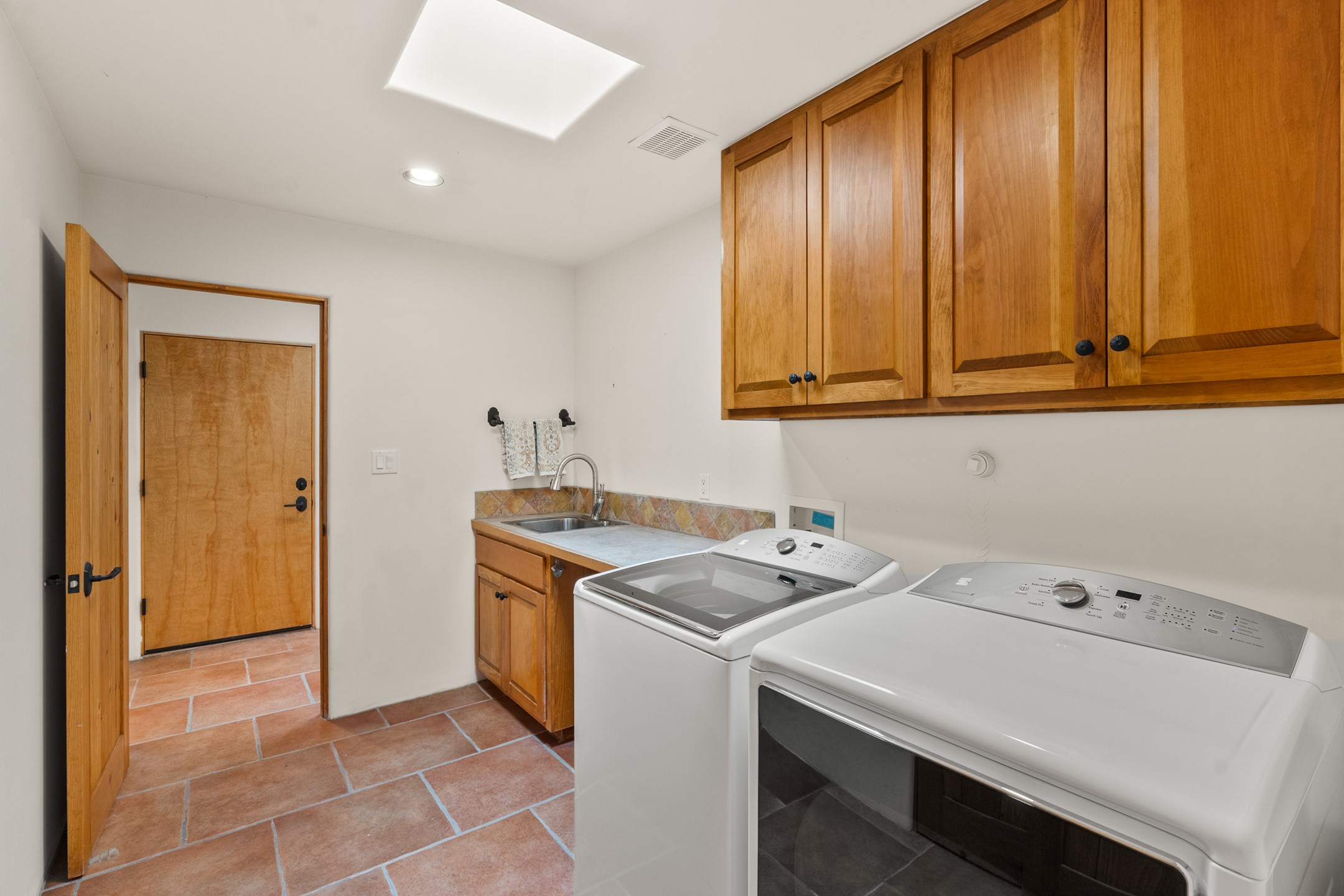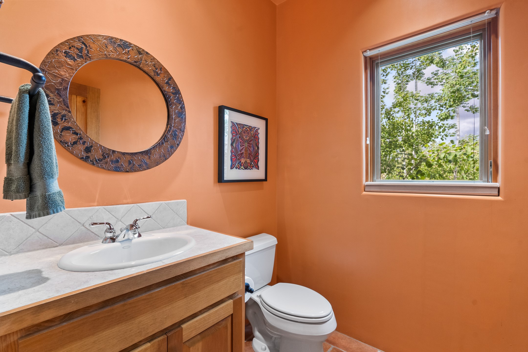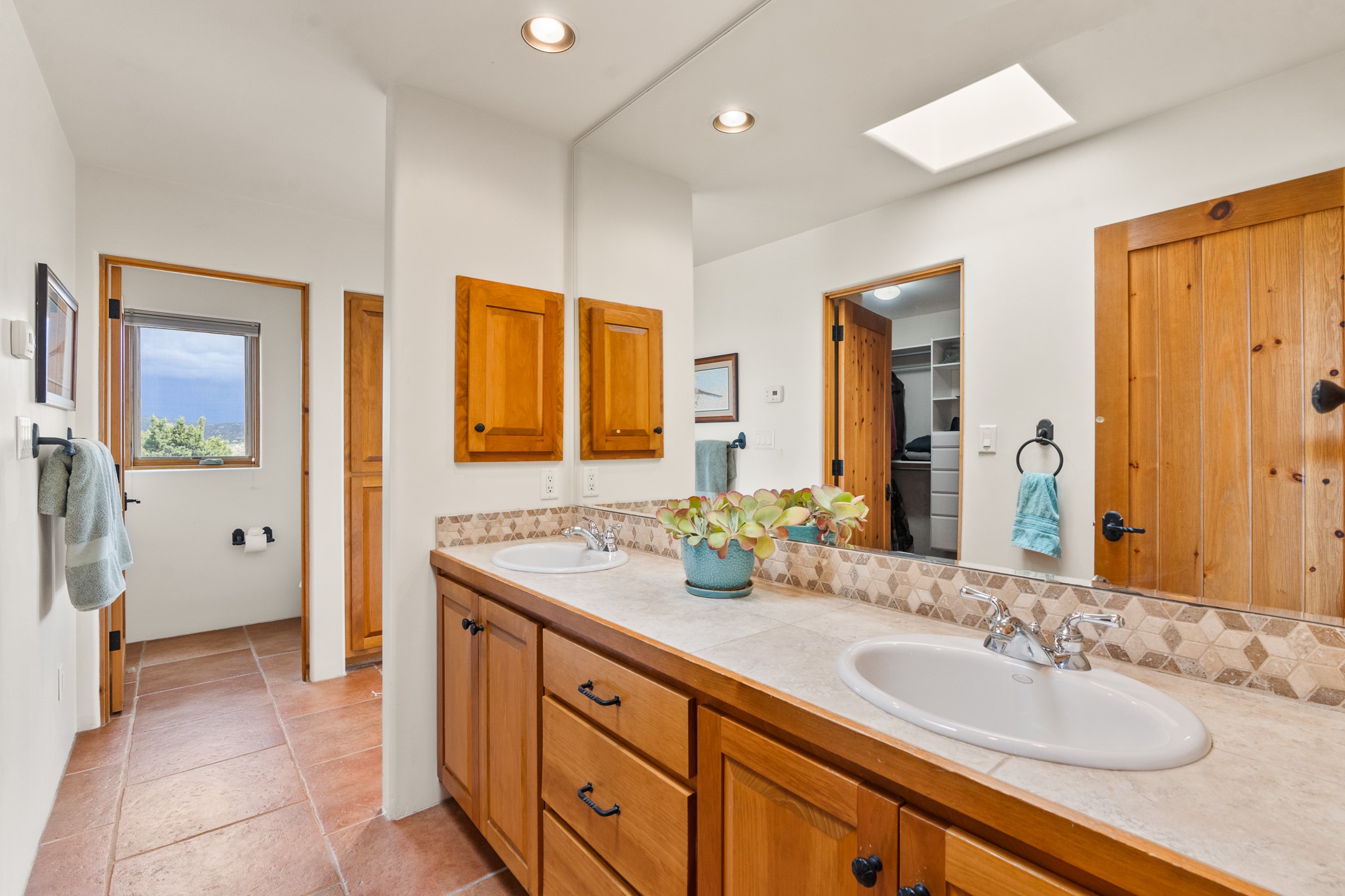 Nestled atop a quiet 3.79-acre ridge in the exclusive Spirit Wind Ranch, 45 Cerro Alto is more than a home--it's a way of life. With 3,600 square feet of beautifully crafted Santa Fe-style architecture and sweeping views of the Galisteo Basin, this private haven blends sustainability, self-sufficiency, and serene luxury in perfect harmony. From the moment you enter the aspen-lined courtyard, you're greeted by nature's quiet abundance. Mature, fruit-bearing trees--apple, jujube, and peach--offer seasonal bounty, while young apricot, pear, and plum trees promise years of harvests. For the passionate gardener, an adobe-walled greenhouse sits beside raised beds with drip irrigation, all nurtured organically for nearly a decade. A 3,000-gallon underground rainwater collection system supports irrigation, ensuring both sustainability and simplicity. This is a retreat designed for mindful living. A 10 kW ground-mounted solar array (installed in 2017) powers the home, eliminating electric bills. A Regency Hearth Heater wood stove offers cozy, efficient warmth, reducing reliance on the propane-powered radiant floor system. Enjoy filtered instant hot water throughout, thanks to a whole-house circulation and RO system. Inside, Santa Fe's timeless character shines through hand-hewn vigas, tile and hardwood floors, and three fireplaces that warm both heart and home. The main residence features three bedrooms, a sun-filled library, and a generous primary suite with its own fireplace. A detached casita offers flexibility for guests, a studio, or a private retreat. Deep portals invite you outdoors--to relax in the shade, dine al fresco, or simply lose yourself in the golden light dancing across the landscape. Every corner of this property invites reflection, creation, and connection to the land. A spacious three-car garage with an attached workshop completes this remarkable offering--ready for your tools, hobbies, or dreams, with paved access, total privacy, and unmatched natural beauty.