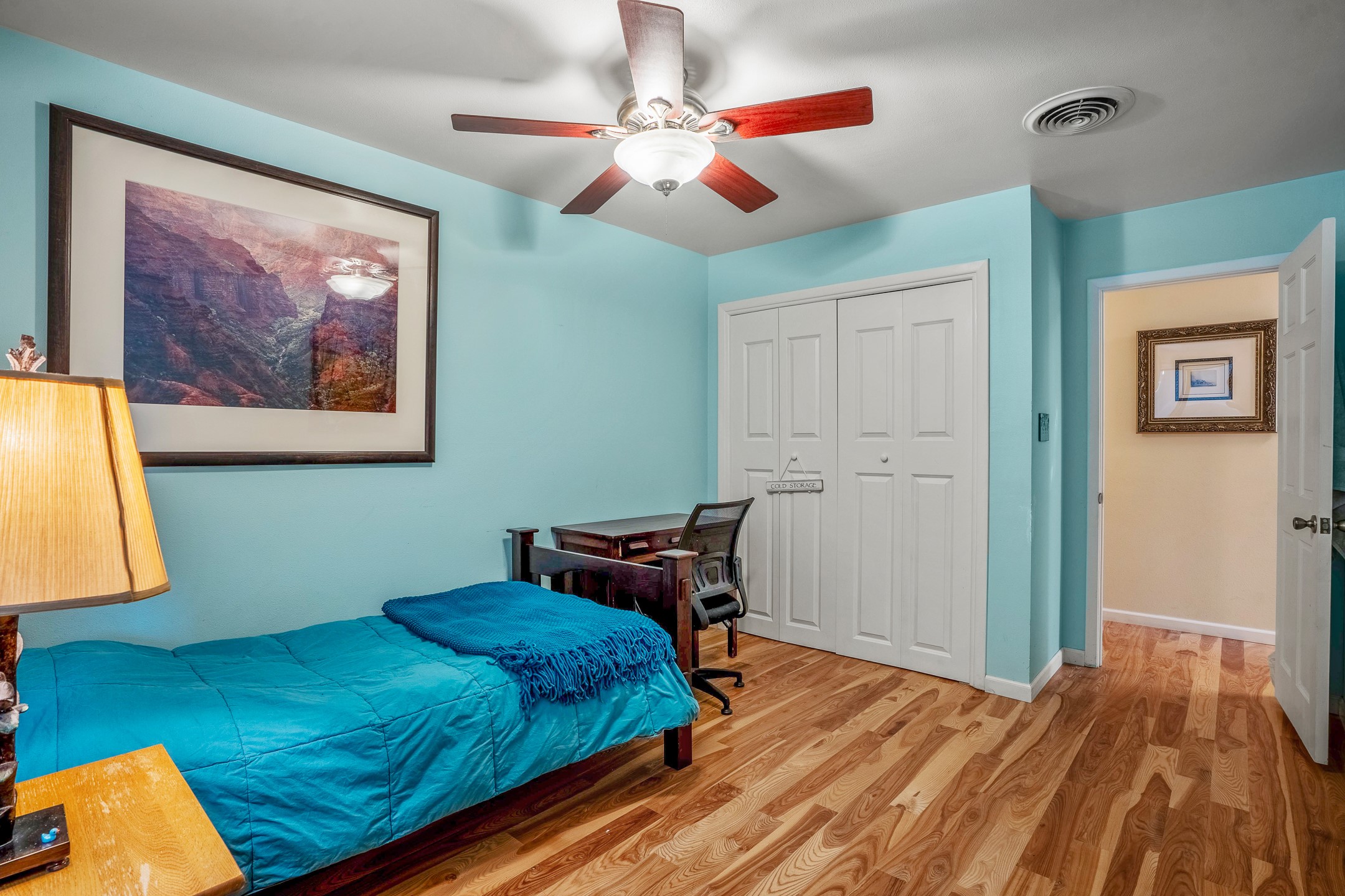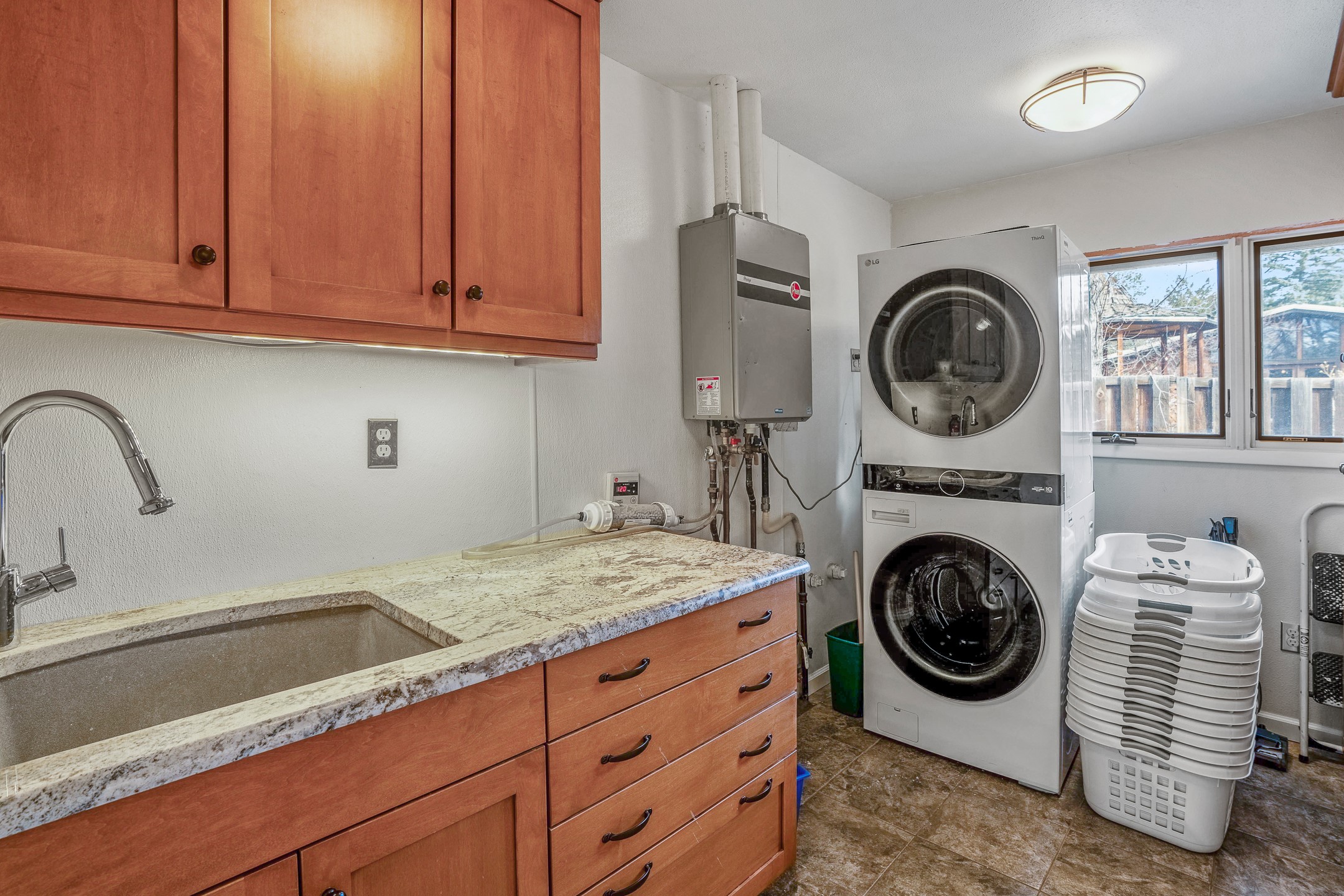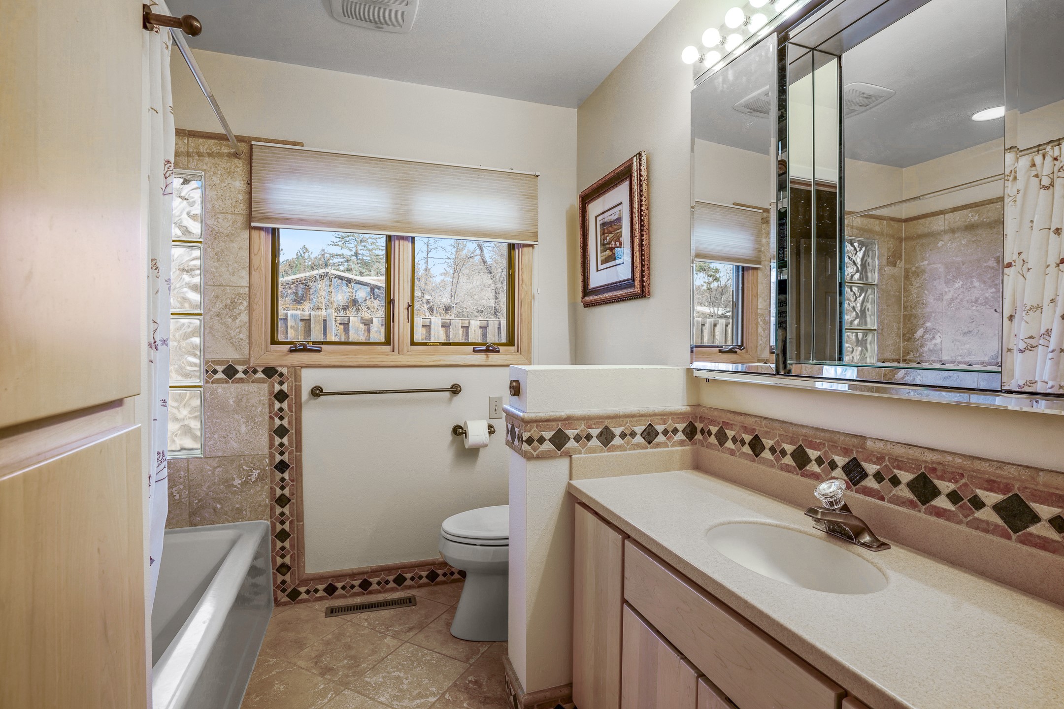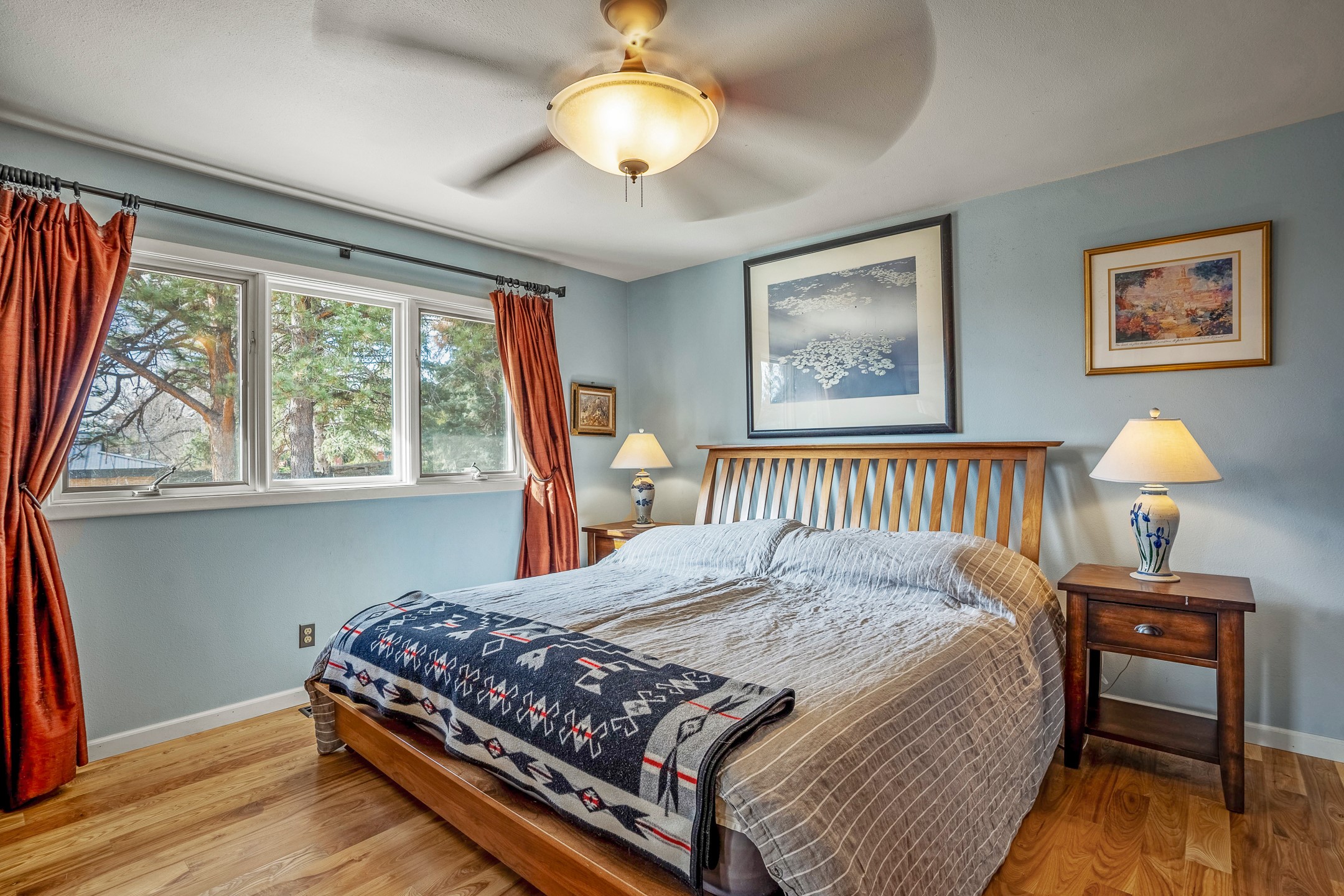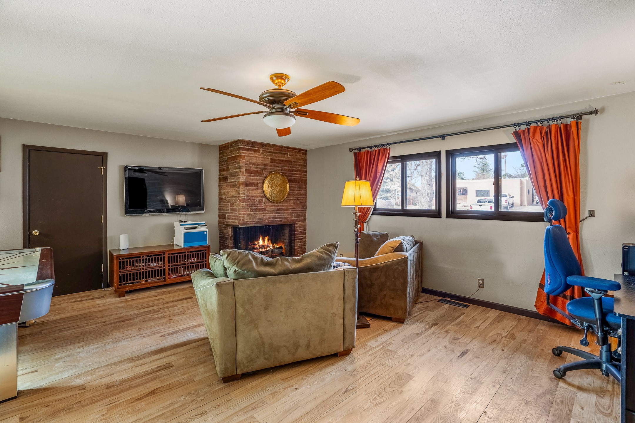 Updated Barranca Mesa Gem with Indoor Pool, Large 0.39 Acre Lot, 4 Bedrooms, Gourmet French Kitchen, Open Floor Plan, Game Room, Flagstone Patio with Views, and More! Welcome to 126 Andanada! This ranch-style home is located amongst the pines on a large 0.39 acre lot on Barranca Mesa, features a rare indoor pool, and is perfect for entertaining guests and enjoying life! As you enter, you are greeted by wood floors, natural light, and an open floor plan. To the left awaits a spacious dining room easily accommodates a ten-seat table and flows into the kitchen, making holiday meals a breeze. The custom kitchen is reminiscent of a Parisian holiday and serves as the hub of this home. It features a large L-shaped island with barstool seating for six, a built-in refrigerator, a high-end Wolf gas range, double ovens, a pedal-operated sink faucet, and four skylights for great lighting. The white cabinets provide ample storage and there is counter space for hosting and cooking in harmony! The living room features a stylish wood stove and provides access to a large flagstone patio in the backyard, with great views of the Sangre de Cristo Mountains. A second living area can serve as a game room or a home office, includes a brick fireplace to keep you warm on those cool evenings. The bedroom wing features three guest bedrooms, a full bathroom, and a spacious laundry room. The primary suite includes an en-suite bathroom that features a quartz-topped double vanity and walk-in shower. The indoor pool is housed in the eastern part of the home in a separate room with lofted ceilings and a wall of south-facing windows. The pool house opens to the landscaped back yard to maximize your summer fun! This home is truly an entertainer's dream! Schedule your showing today before this one is gone!