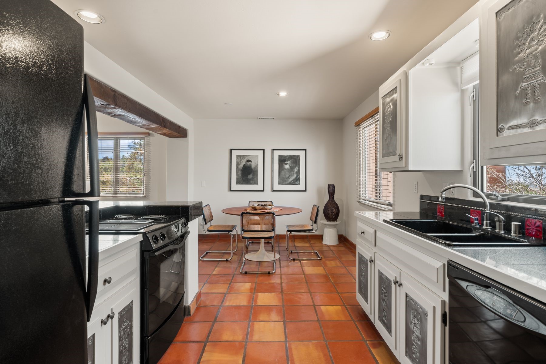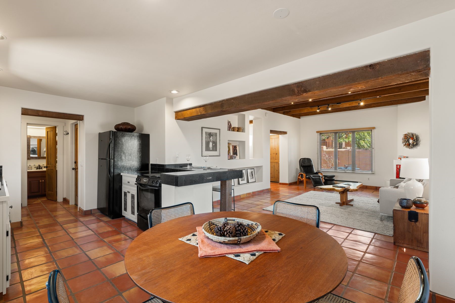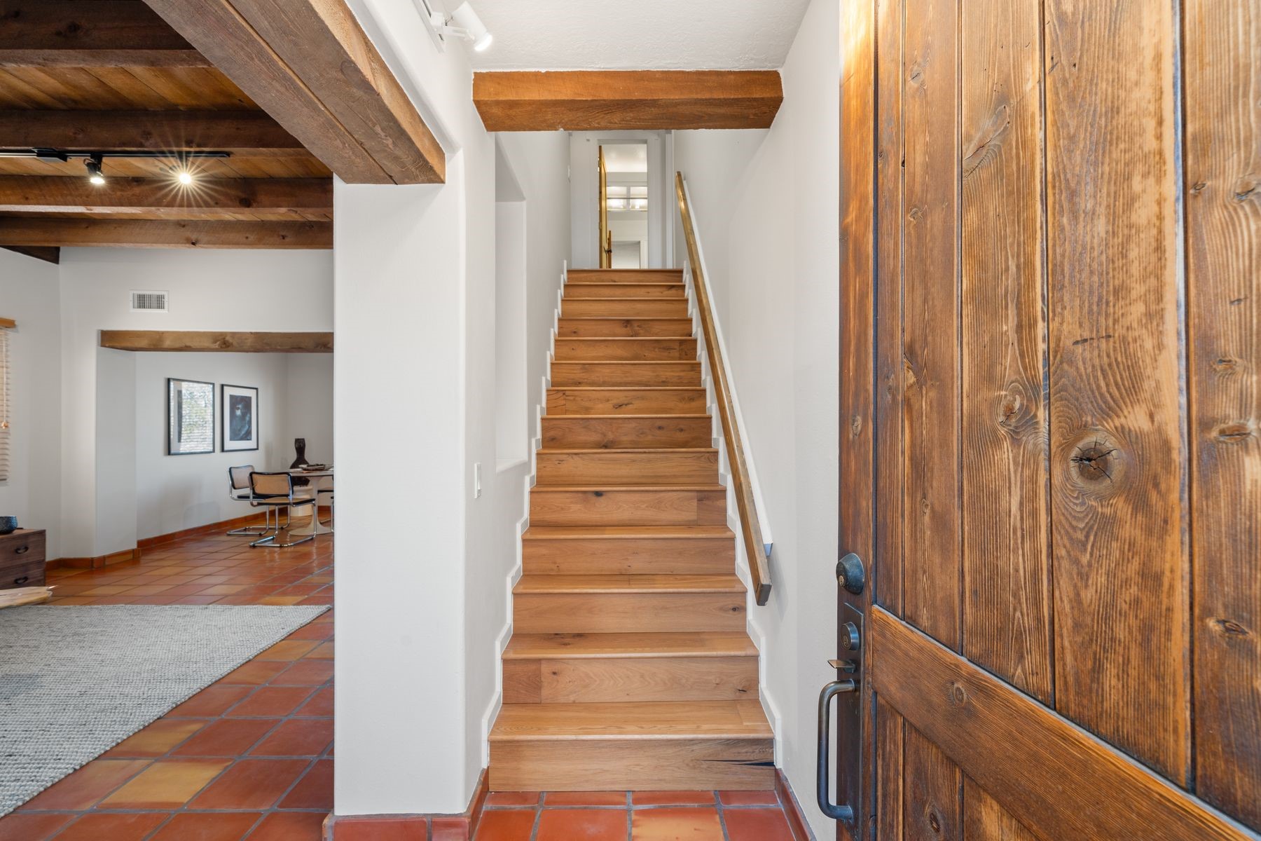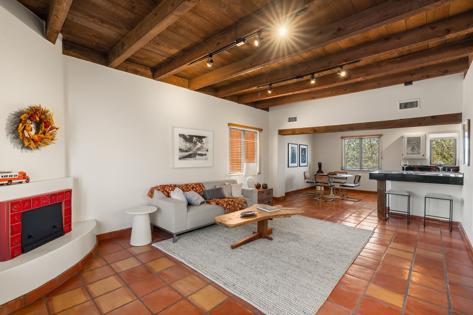 Located in an ideal location just minutes from the plaza, this well-maintained two-story home offers the perfect blend of convenience and comfort. Situated in a gated neighborhood and surrounded by mature trees, the property is close to top-rated restaurants, shopping, galleries, and scenic trails.Step inside to an inviting open layout where the kitchen, dining, and living areas flow seamlessly. A cozy fireplace in the living room enhances the warm ambiance. The home features an enclosed front courtyard, perfect for relaxation and privacy. A skylight in the stairwell brings in beautiful natural light, complementing the home's airy feel.Upstairs, you'll find two spacious bedrooms with brand-new carpet and a full bathroom. A bath is conveniently located on the main level. Storage is plentiful throughout the home, including in the attached one-car garage. Recent updates include a newer roof (2020 under 10-year warranty), new furnace, new AC, new hot water heater, and freshly redone stucco.Located near Fort Marcy Park and the Fort Marcy Rec Complex, this home offers easy access to outdoor recreation while being just moments from the heart of town. Don't miss this opportunity to own a well-maintained home in a prime Santa Fe location!