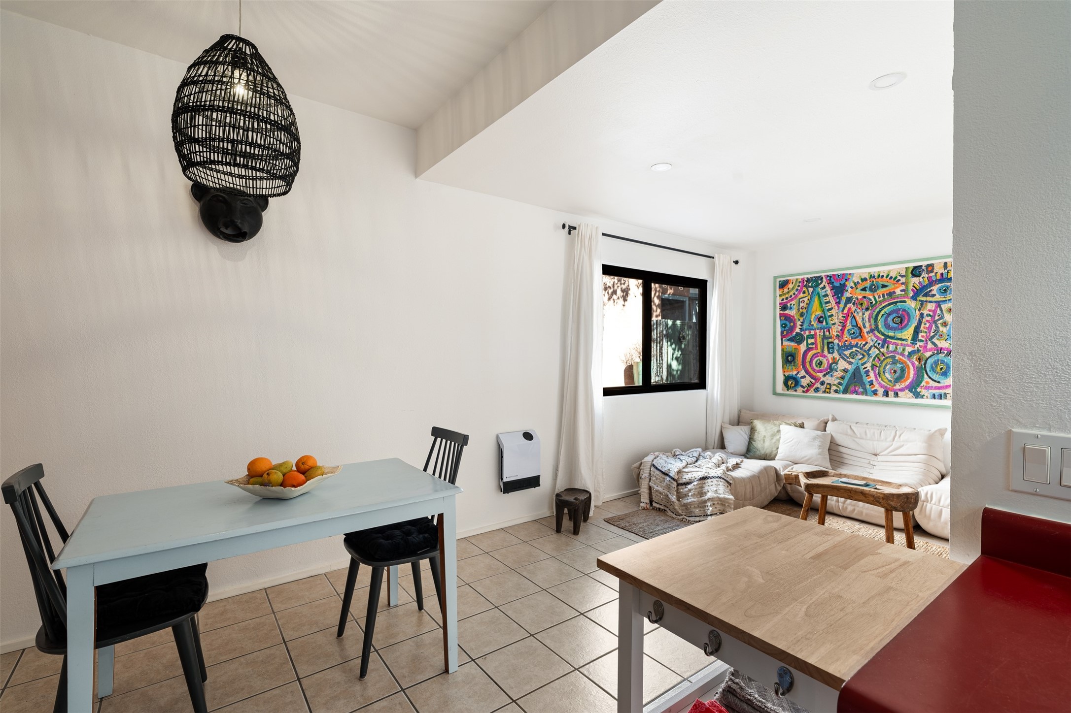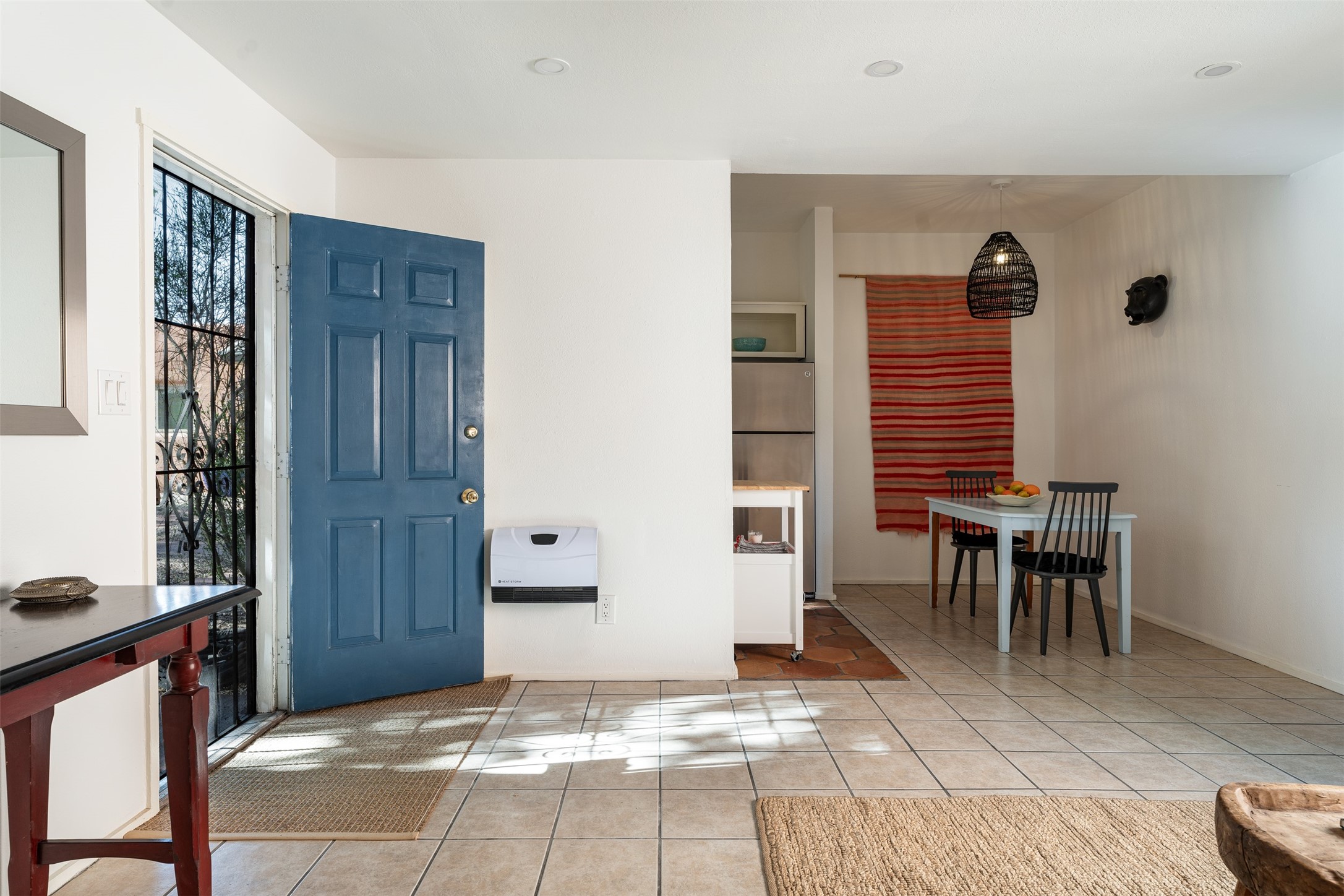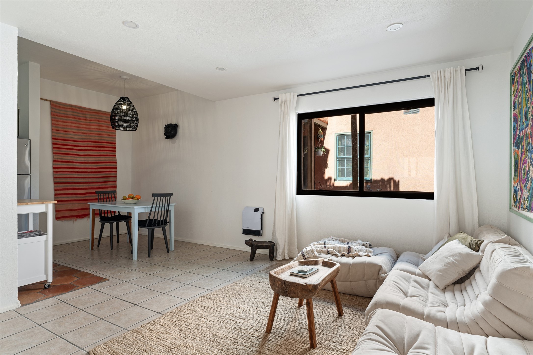 Welcoming, modern style condo in a peaceful garden setting tucked away on a side street in the desirable Santa Fe triangle. This central location has close proximity to the Santa Fe Rail Trail, parks, shopping (including Trader Joe's), and major thoroughfares with easy access to downtown. Enjoy the best of all worlds amidst stunning Santa Fe scenery - convenient living and urban sophistication.Enter through a landscaped courtyard into an open concept living and dining area with a cozy kitchen. The bright bedroom features sleek barn doors, built-in shelving, a laundry area and separate entry. Savor your morning coffee and dinners al fresco in your own back courtyard that can be gated for privacy. This move-in ready condo is a fantastic opportunity for those seeking a vibrant lifestyle near everything Santa Fe has to offer. Schedule a showing today!