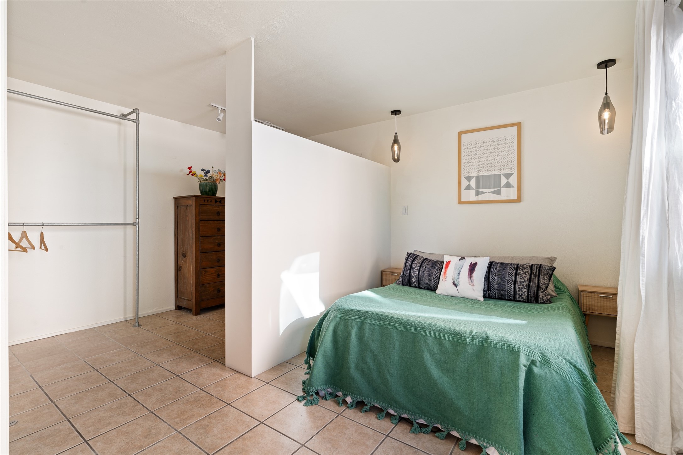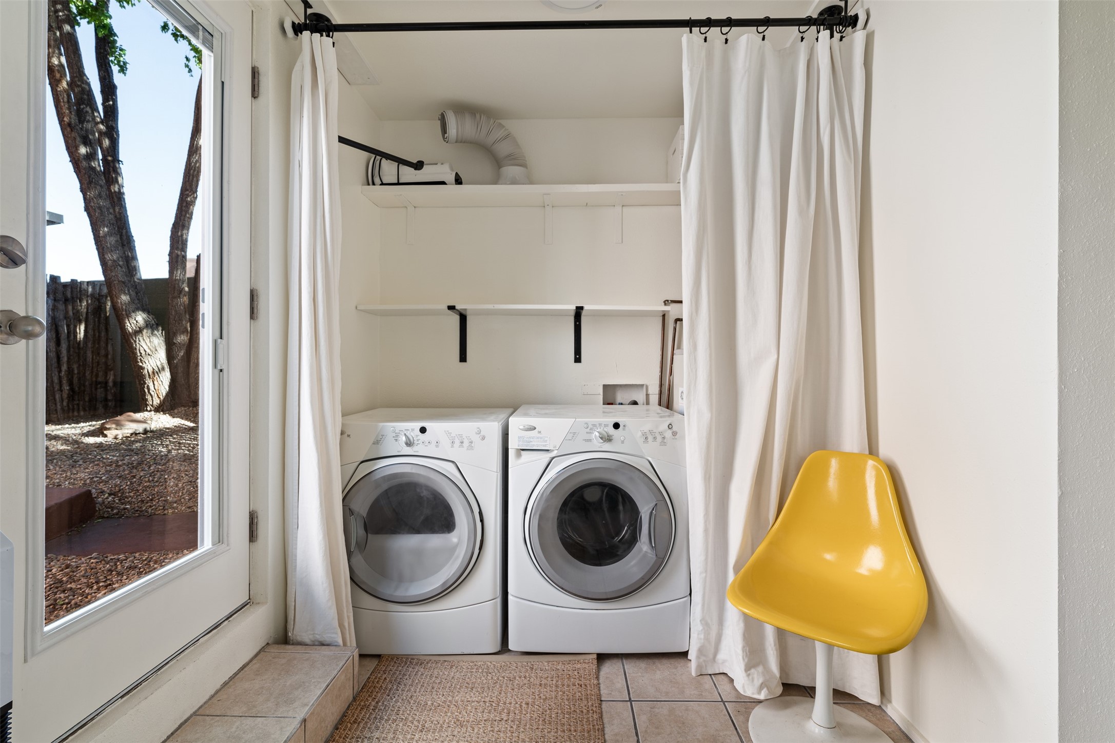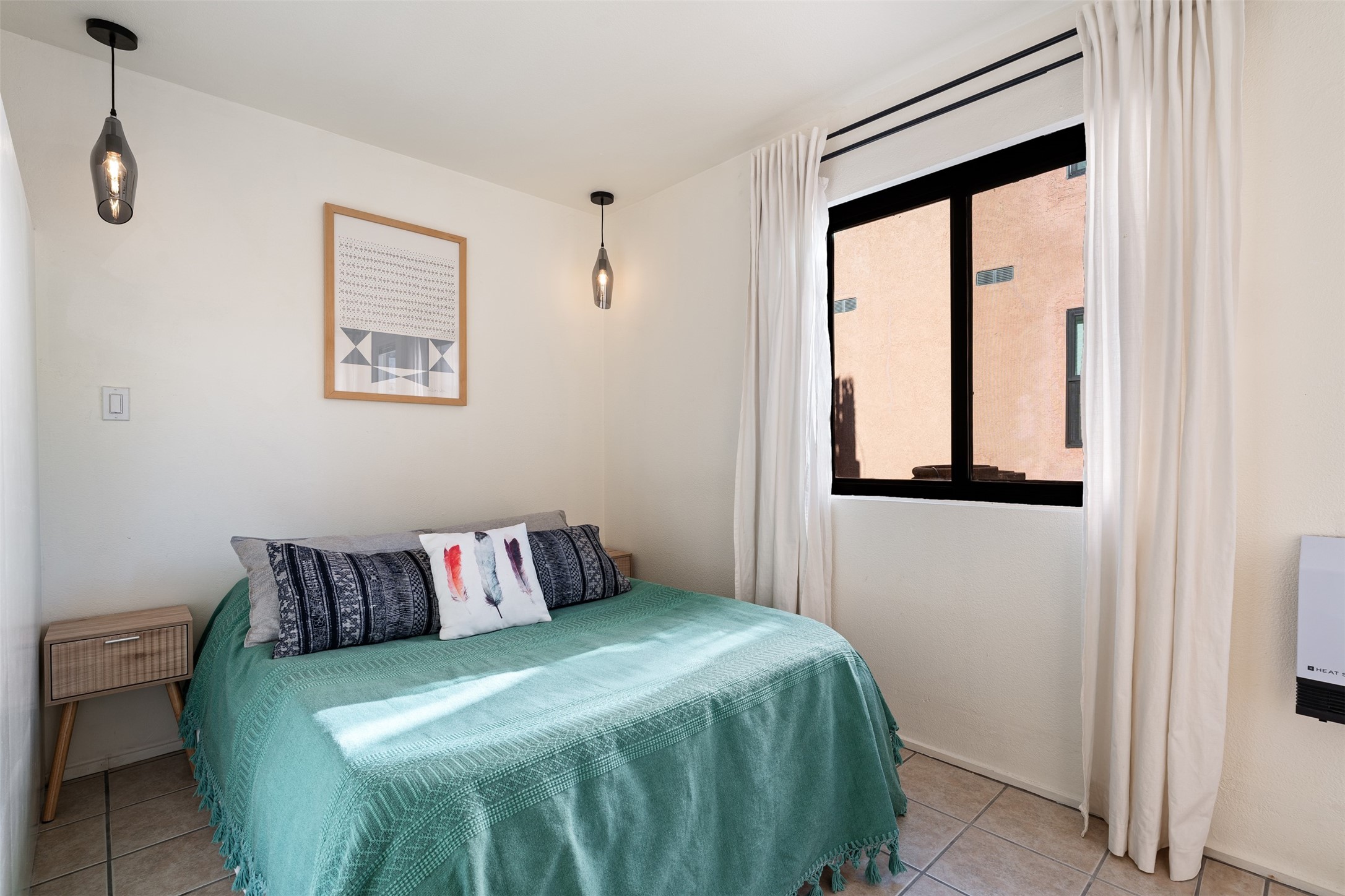Welcoming, modern style condo in a peaceful garden setting tucked away on a side street in the desirable Santa Fe triangle. This central location has close proximity to the Santa Fe Rail Trail, parks, shopping (including Trader Joe's), and major thoroughfares with easy access to downtown. Enjoy the best of all worlds amidst stunning Santa Fe scenery - convenient living and urban sophistication.Enter through a landscaped courtyard into an open concept living and dining area with a cozy kitchen. The bright bedroom features sleek barn doors, built-in shelving, a laundry area and separate entry. Savor your morning coffee and dinners al fresco in your own back courtyard that can be gated for privacy. This move-in ready condo is a fantastic opportunity for those seeking a vibrant lifestyle near everything Santa Fe has to offer. Schedule a showing today!