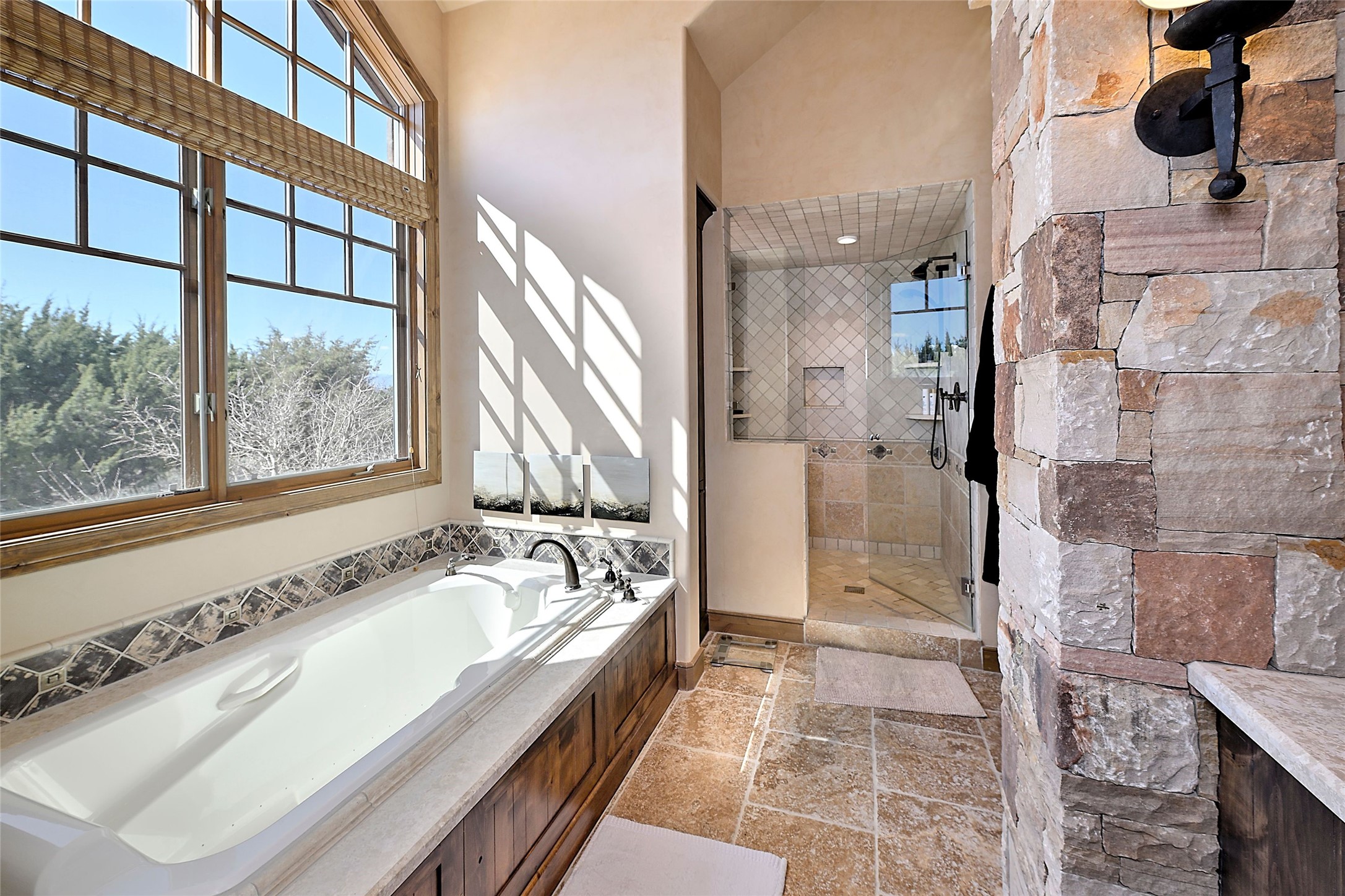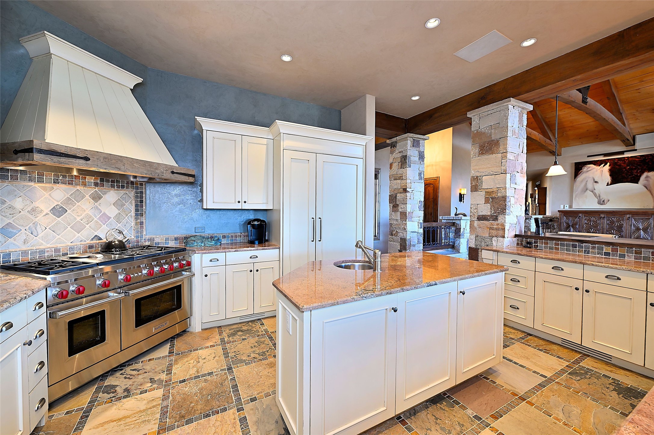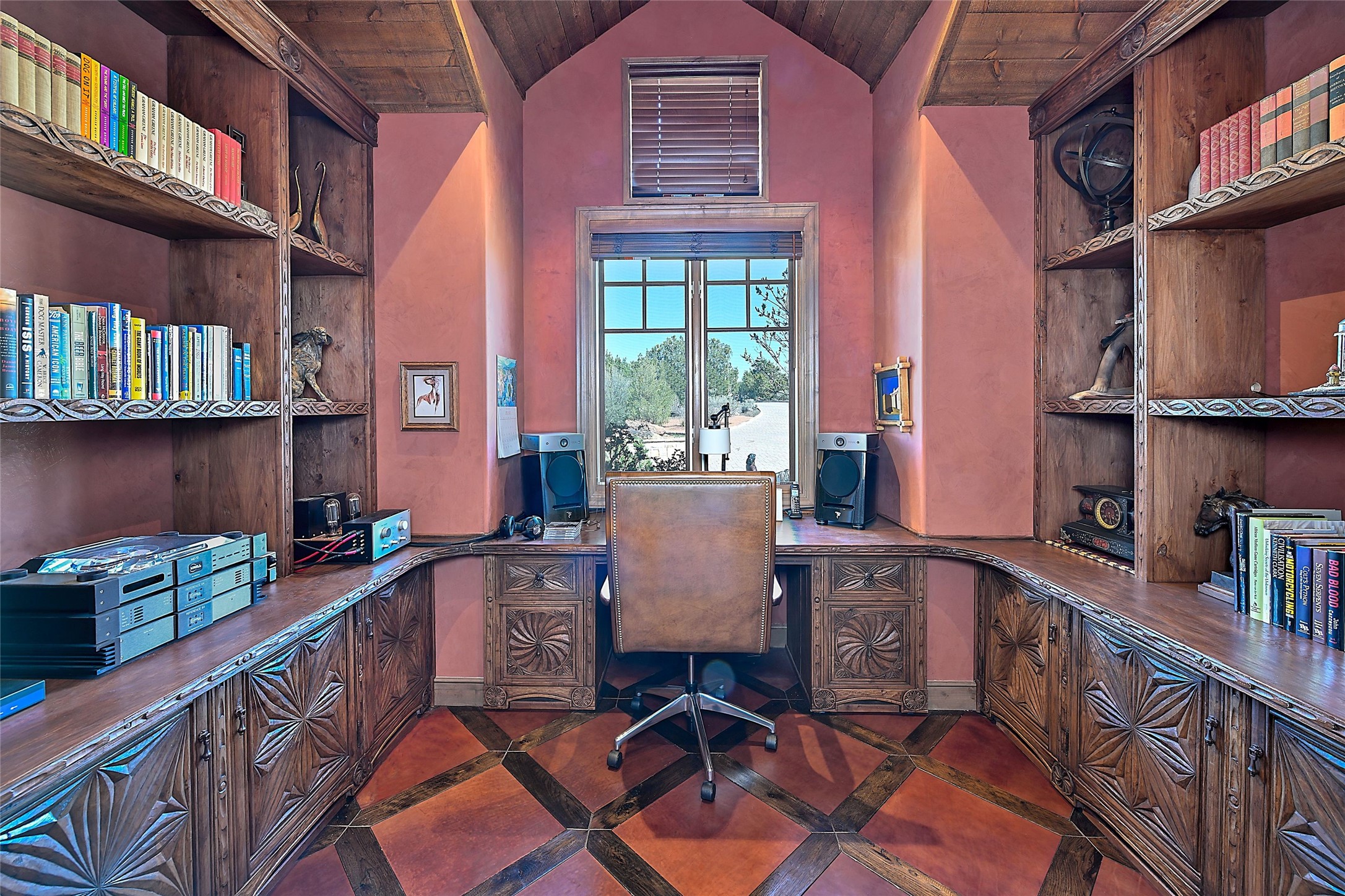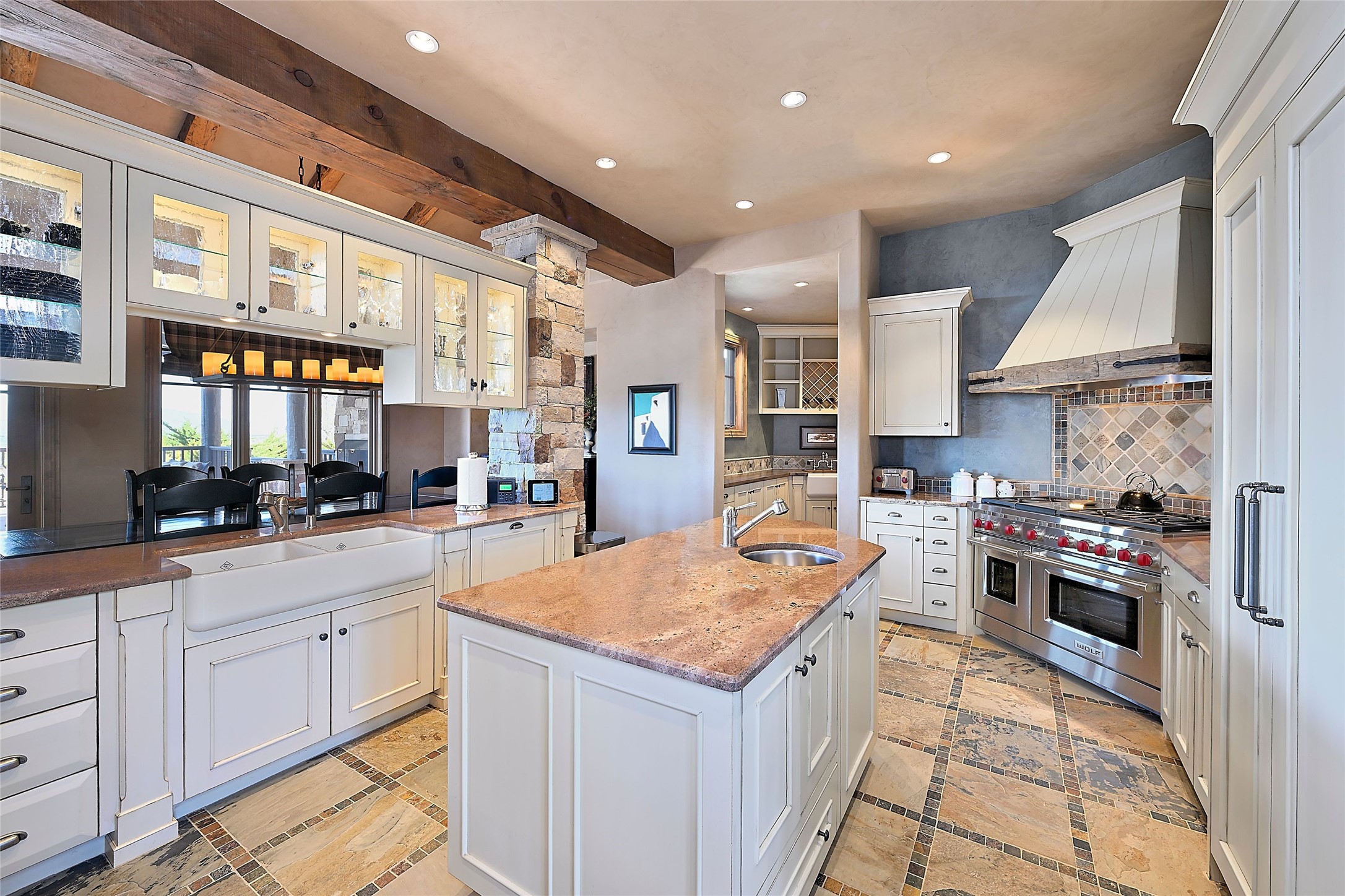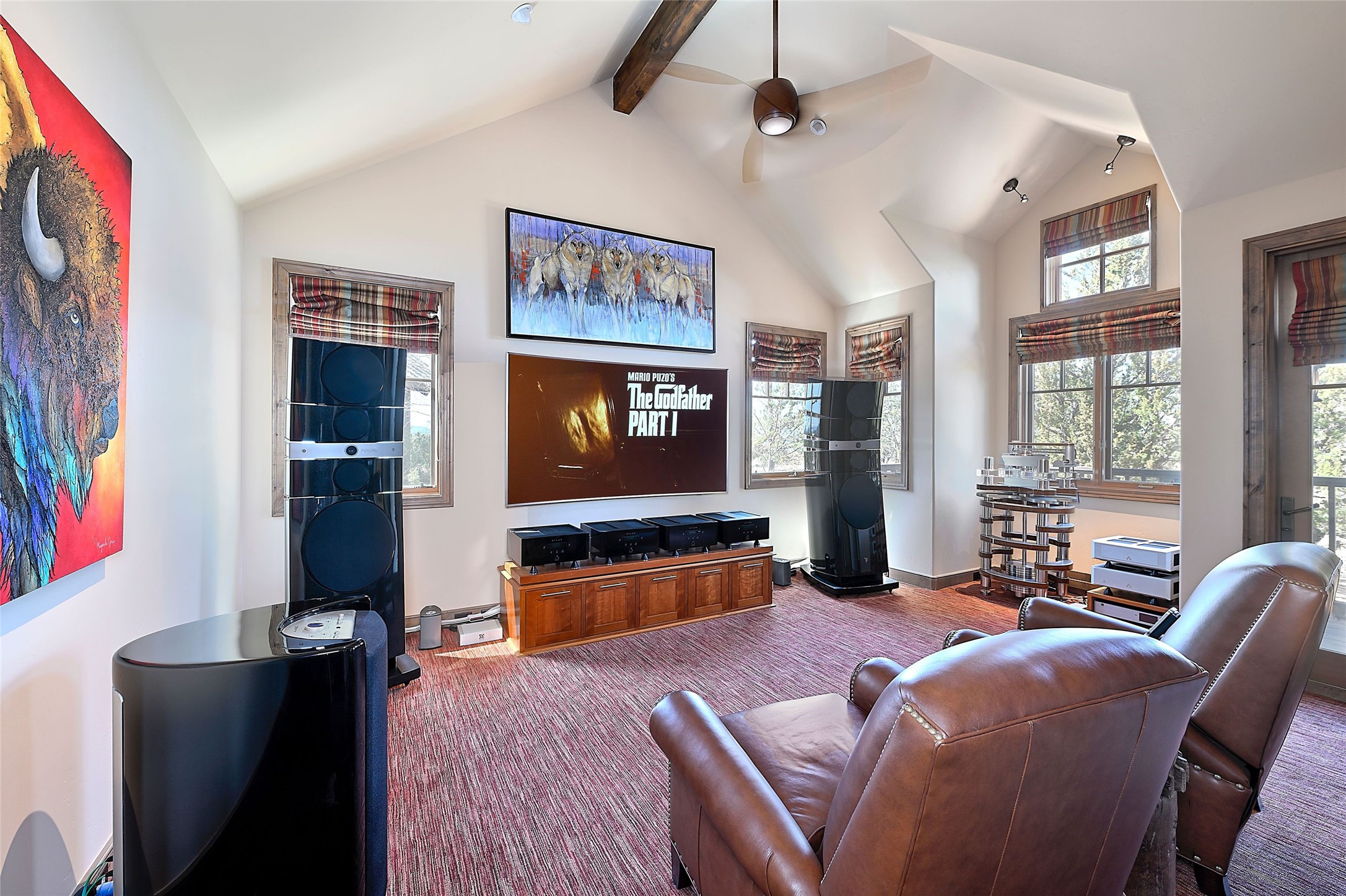 Imagine yourself in this extraordinary 4,080 sq. ft. Northern New Mexico style home by award winning Roger Hunter Builders, nestled in the prestigious gated Estancia enclave of Las Campanas. Perfectly positioned on a premier homesite, this residence captures sweeping views of the Jemez Mountains and overlooks 69,000 acres of undisturbed BLM land for ultimate serenity and privacy. Inside, grand interior trusses and expansive wood floors frame a spacious great room, seamlessly connected to a gourmet kitchen and adjacent butler's pantry--ideal for entertaining. The vast, covered Portal offers generous dining and lounging spaces with panoramic views. The private primary suite features a cozy sitting area with a rock-faced fireplace, his and hers vanities and walk-in closets, and dual offices--each spacious enough for a desk, lounge chair, and ottoman. A separate guest wing offers two guest bedrooms with en-suite baths and walk-in closets. One suite is used as a state-of-the-art media room. A convenient workstation with custom-built cabinetry offers additional office space that could be used by guests or an additional office. thoughtfully designed home blends traditional Santa Fe style with modern luxury--wood, stucco, and rock exteriors, mature landscaping, and an oversized 3-car garage with ample storage. A rare opportunity to own a one-of-a-kind property in Santa Fe's most sought-after community.