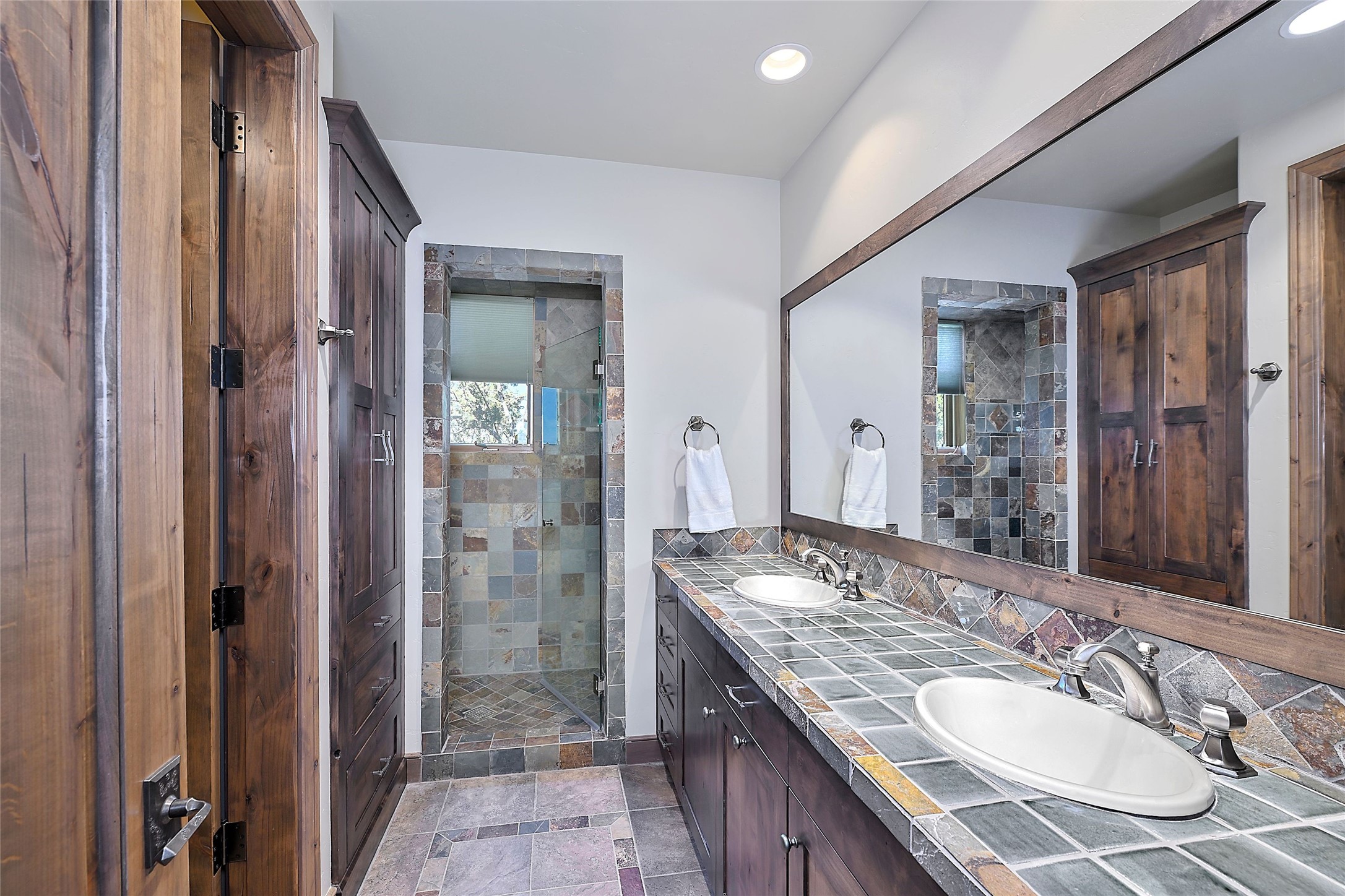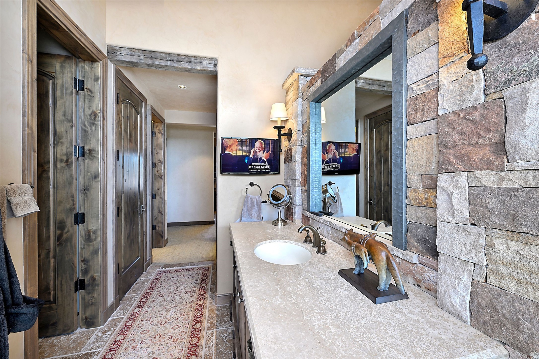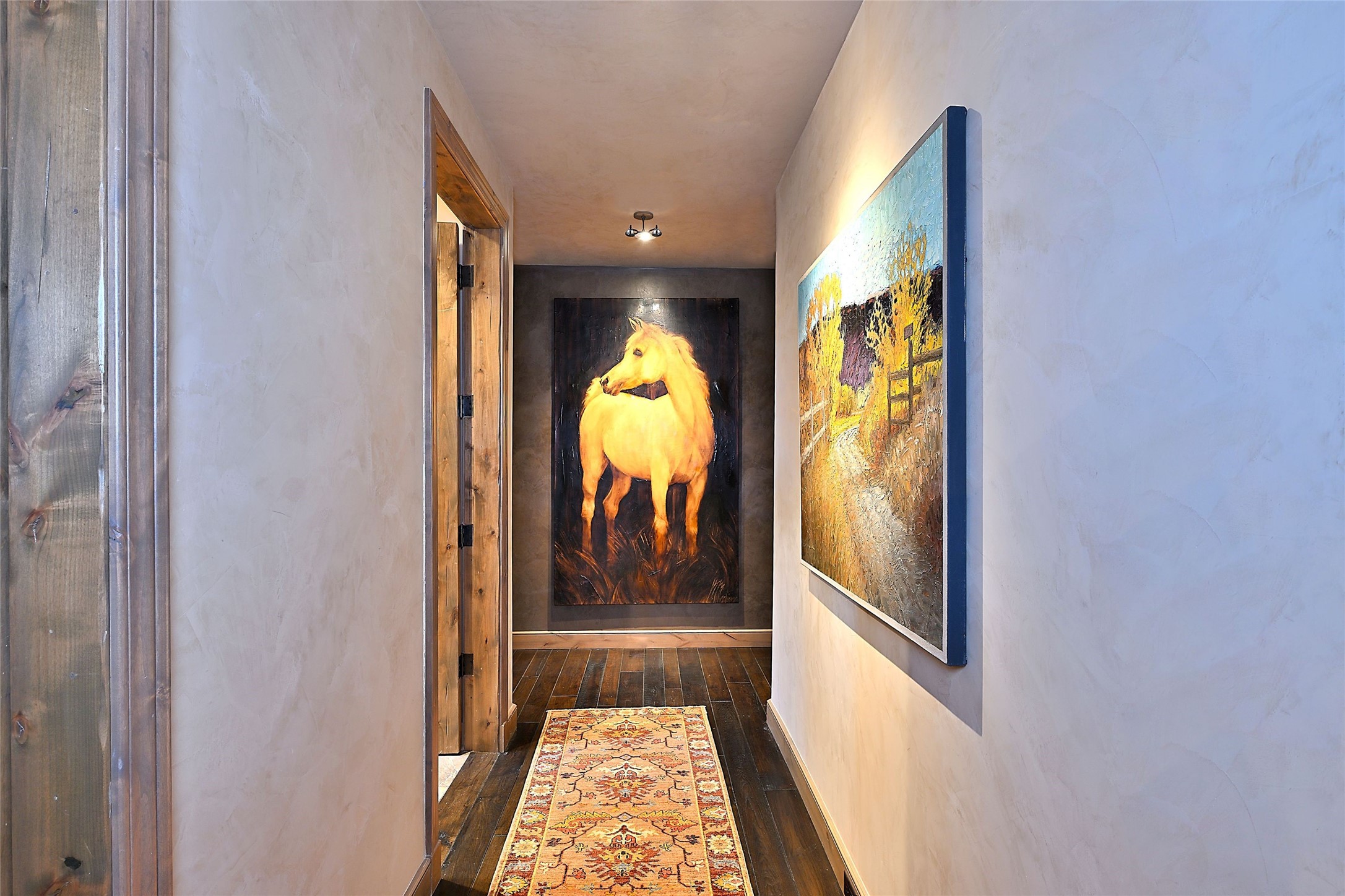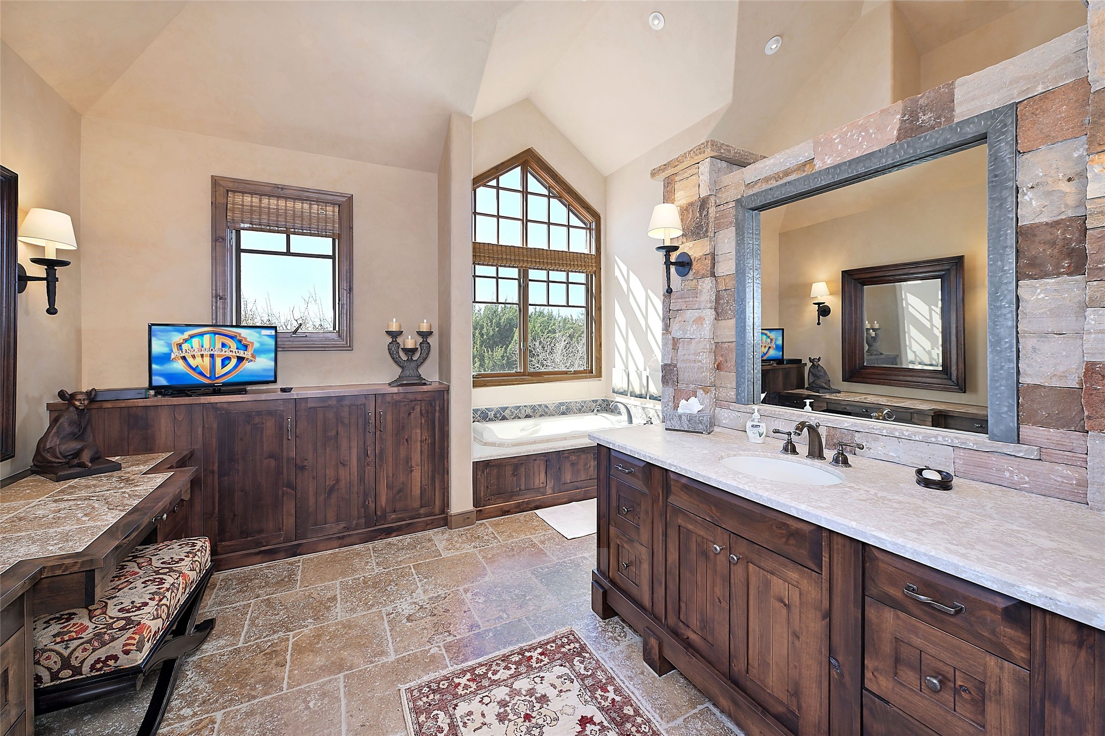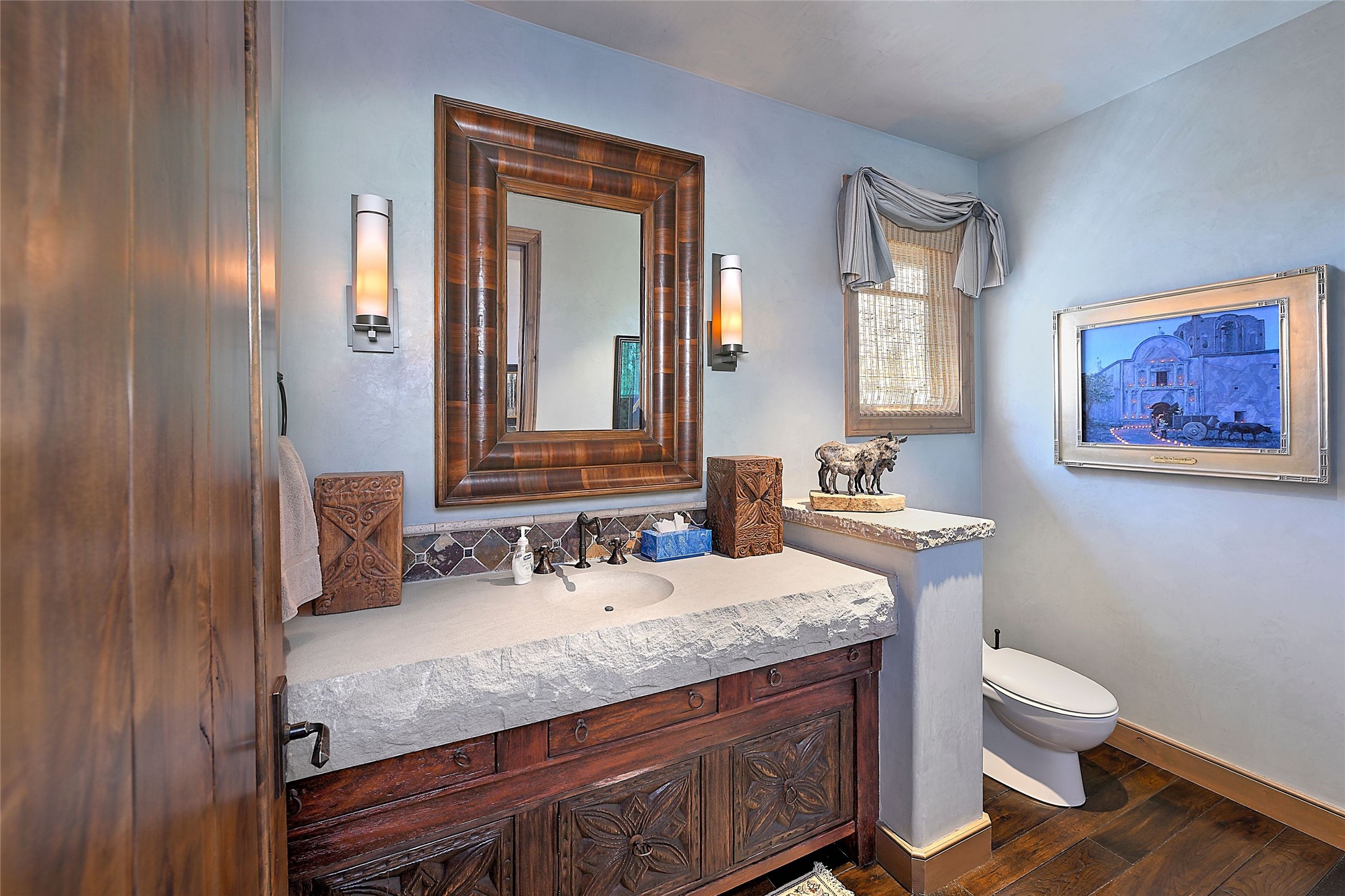 Imagine yourself in this extraordinary 4,080 sq. ft. Northern New Mexico style home by award winning Roger Hunter Builders, nestled in the prestigious gated Estancia enclave of Las Campanas. Perfectly positioned on a premier homesite, this residence captures sweeping views of the Jemez Mountains and overlooks 69,000 acres of undisturbed BLM land for ultimate serenity and privacy. Inside, grand interior trusses and expansive wood floors frame a spacious great room, seamlessly connected to a gourmet kitchen and adjacent butler's pantry--ideal for entertaining. The vast, covered Portal offers generous dining and lounging spaces with panoramic views. The private primary suite features a cozy sitting area with a rock-faced fireplace, his and hers vanities and walk-in closets, and dual offices--each spacious enough for a desk, lounge chair, and ottoman. A separate guest wing offers two guest bedrooms with en-suite baths and walk-in closets. One suite is used as a state-of-the-art media room. A convenient workstation with custom-built cabinetry offers additional office space that could be used by guests or an additional office. thoughtfully designed home blends traditional Santa Fe style with modern luxury--wood, stucco, and rock exteriors, mature landscaping, and an oversized 3-car garage with ample storage. A rare opportunity to own a one-of-a-kind property in Santa Fe's most sought-after community.