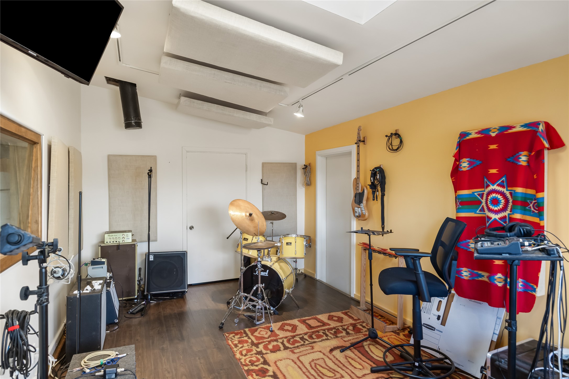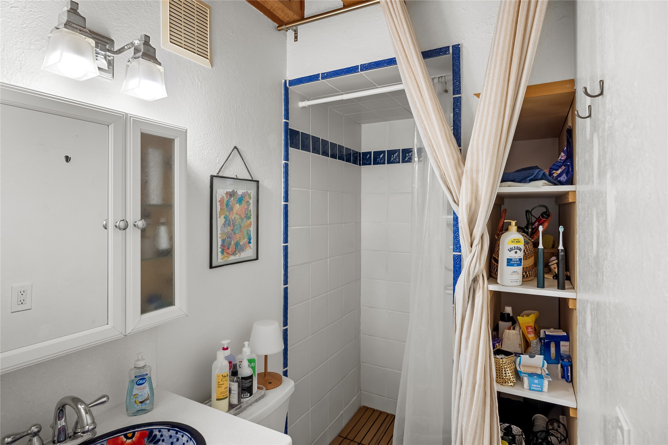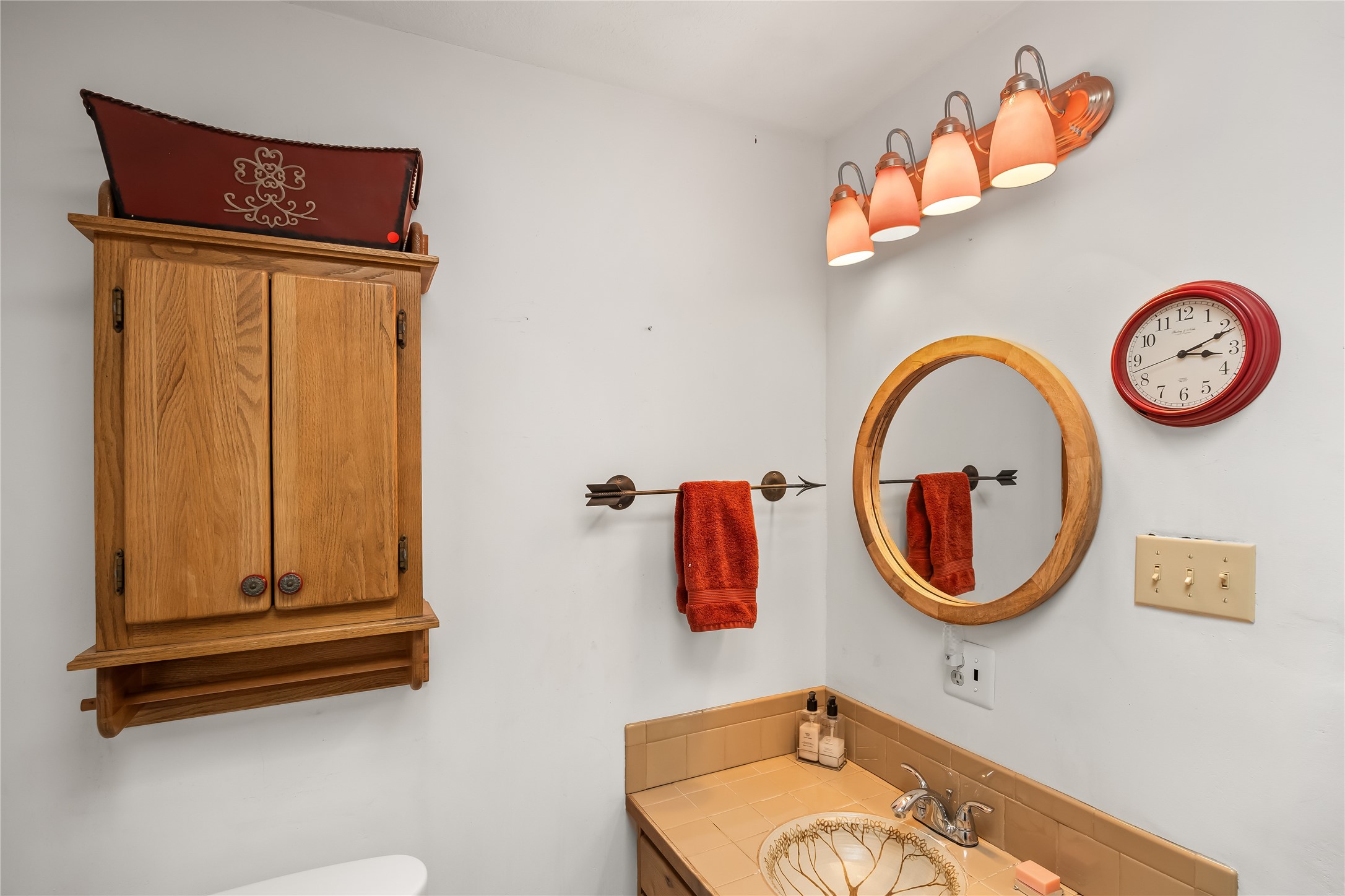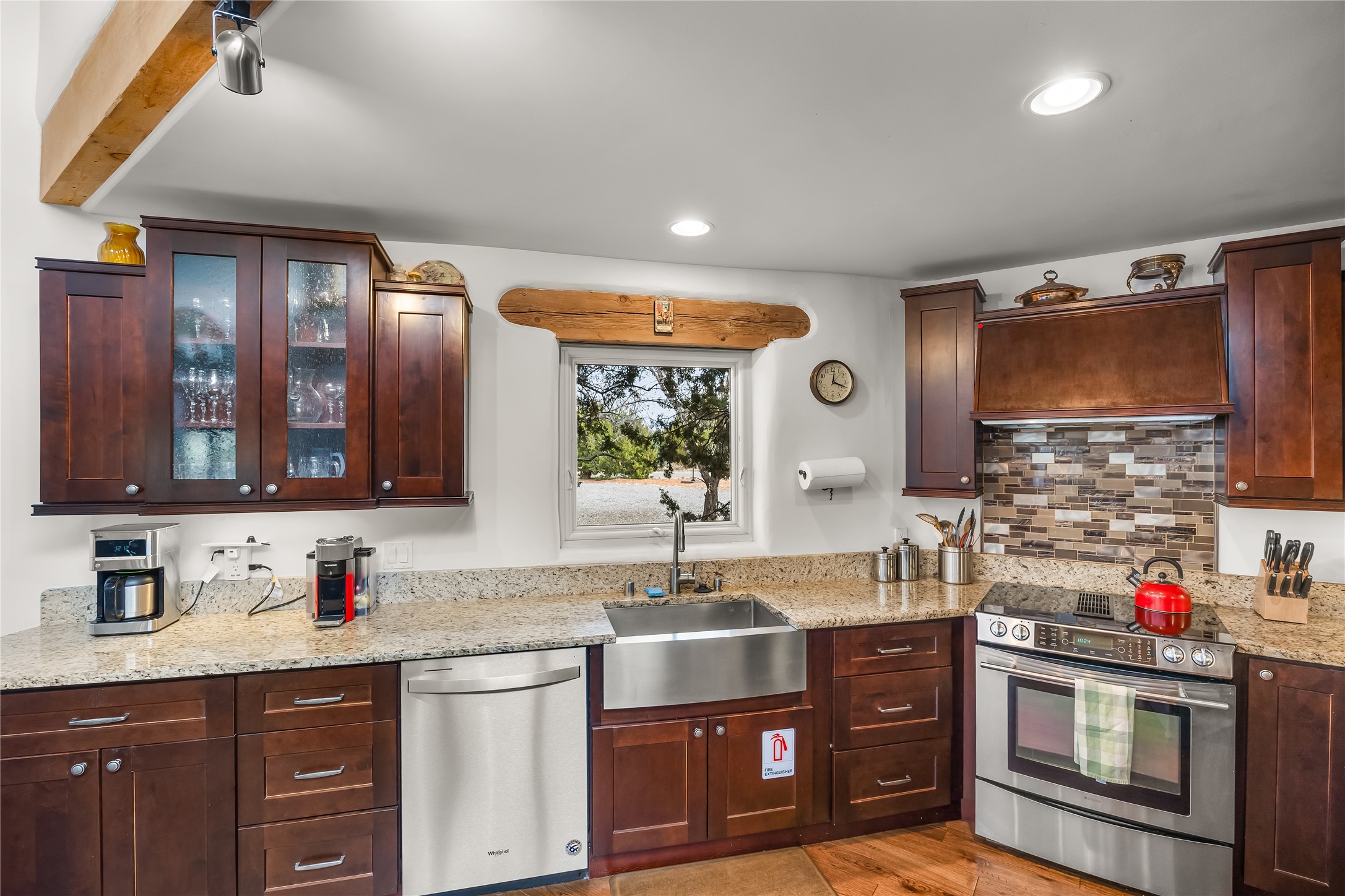 A very cool opportunity is knocking! Convenient in-town location for an adobemain home, plus a detached, spacious Guest House, plus an attached set of(unheated) studio spaces, currently used for music production, plus a detachedoutbuilding, all sited on a 1.8 acre lot! The magic begins as you enter the propertythrough a set of stylized stucco buffalo gates, built by local sculptor, Don Redman; the buffalo theme is repeated in theGuest House's entry. The main home, which has passive solar design, exudes warmth & quintessential Southwestcharm, with brick flooring, a beautifully designed kiva fireplace, high woodaccented ceilings and a Sunroom built by Tent Rock Construction.. An open floor plan and large dining room suggest wonderful times with friends and/or family!! Its two nicely sized bedrooms each featuredoors leading out to the inviting front patio; the primary bedroom also features akiva fireplace. Settings for outdoor gatherings at the home's entry abound. GuestHouse is currently leased. Property to be sold in as is condition.