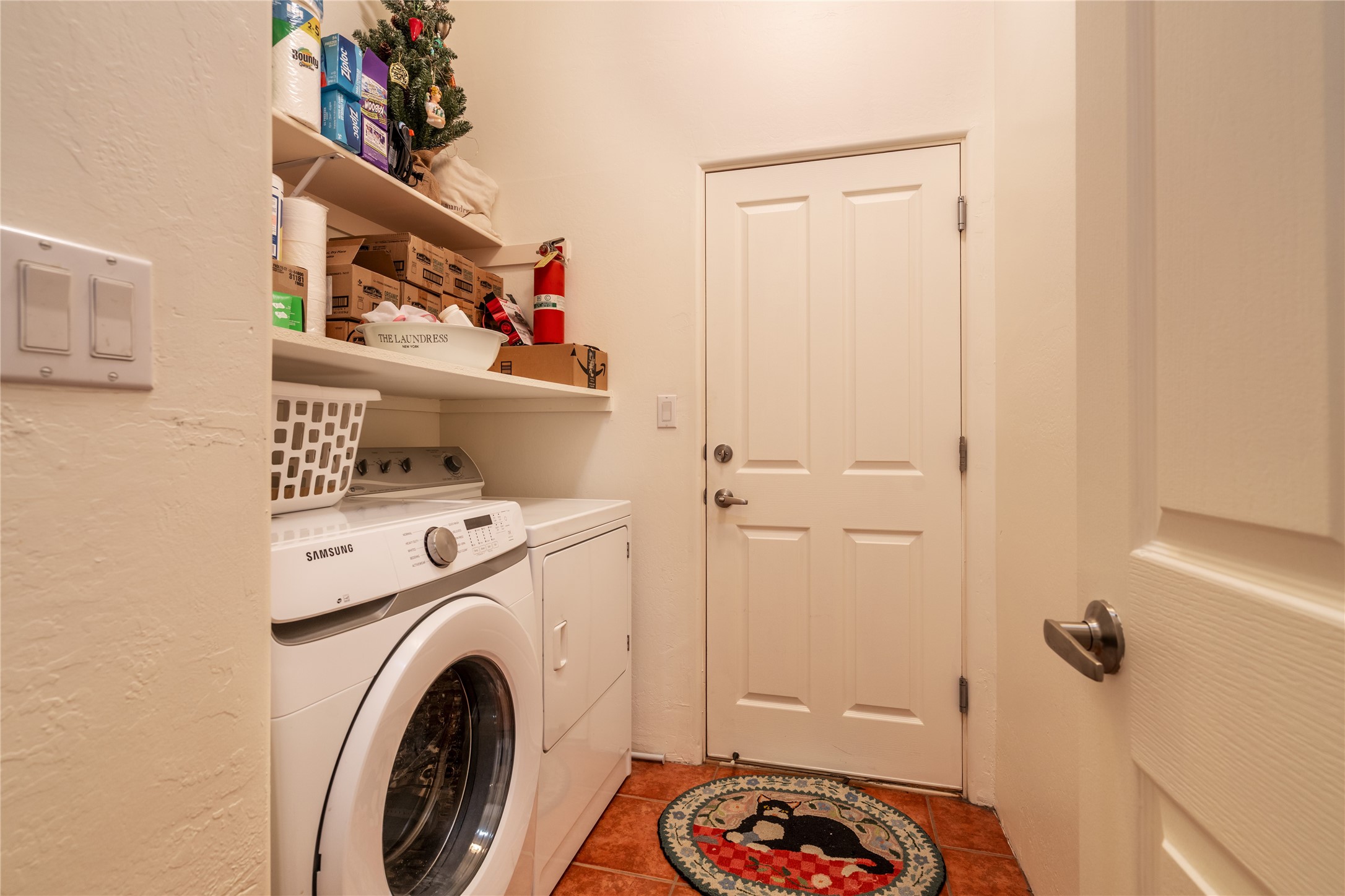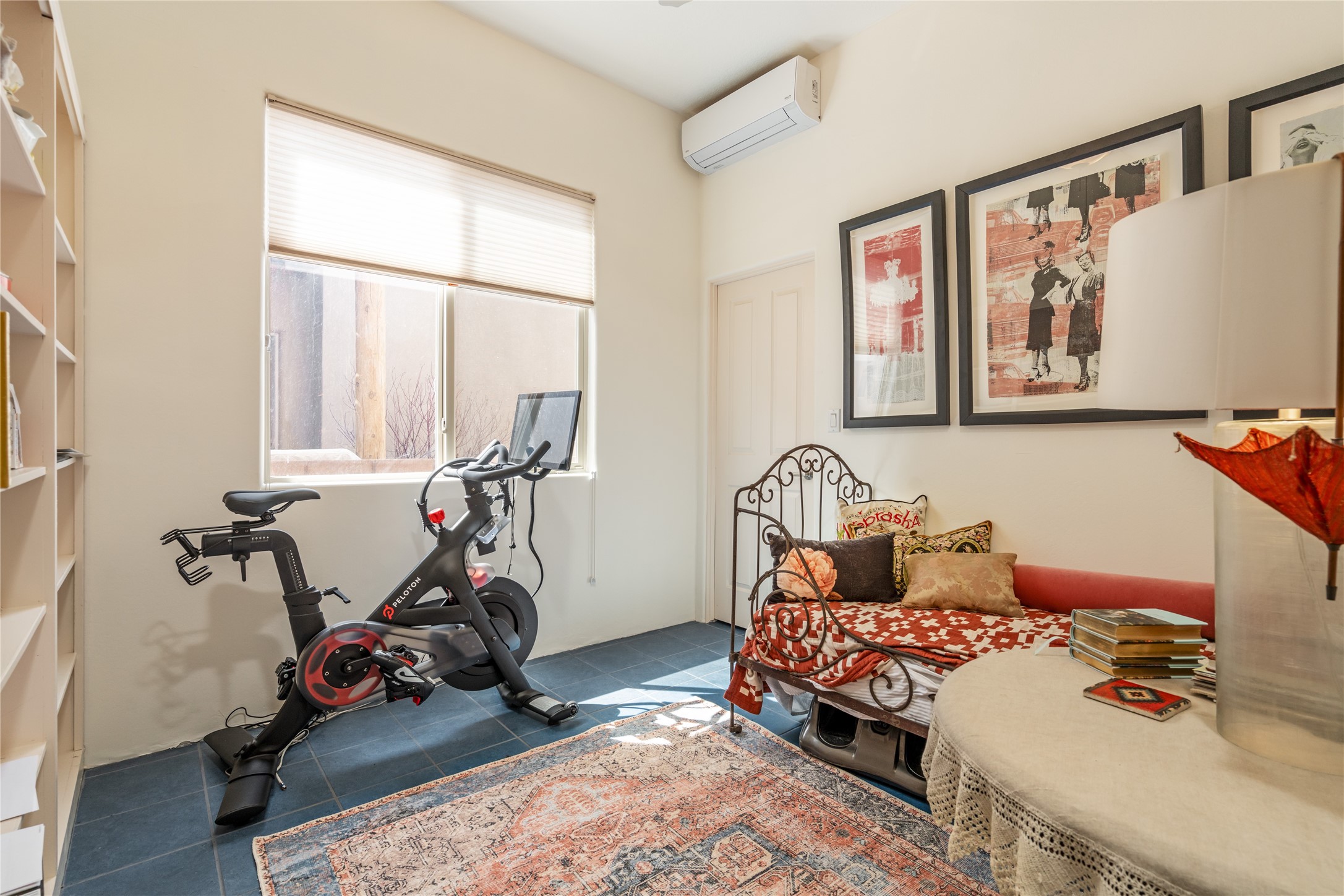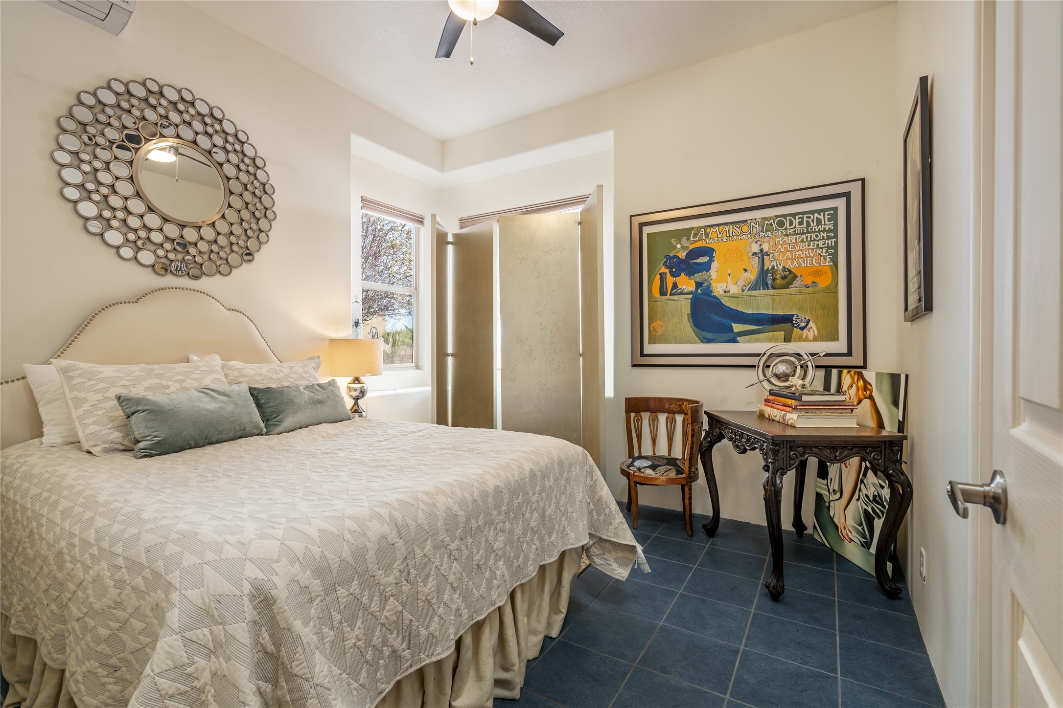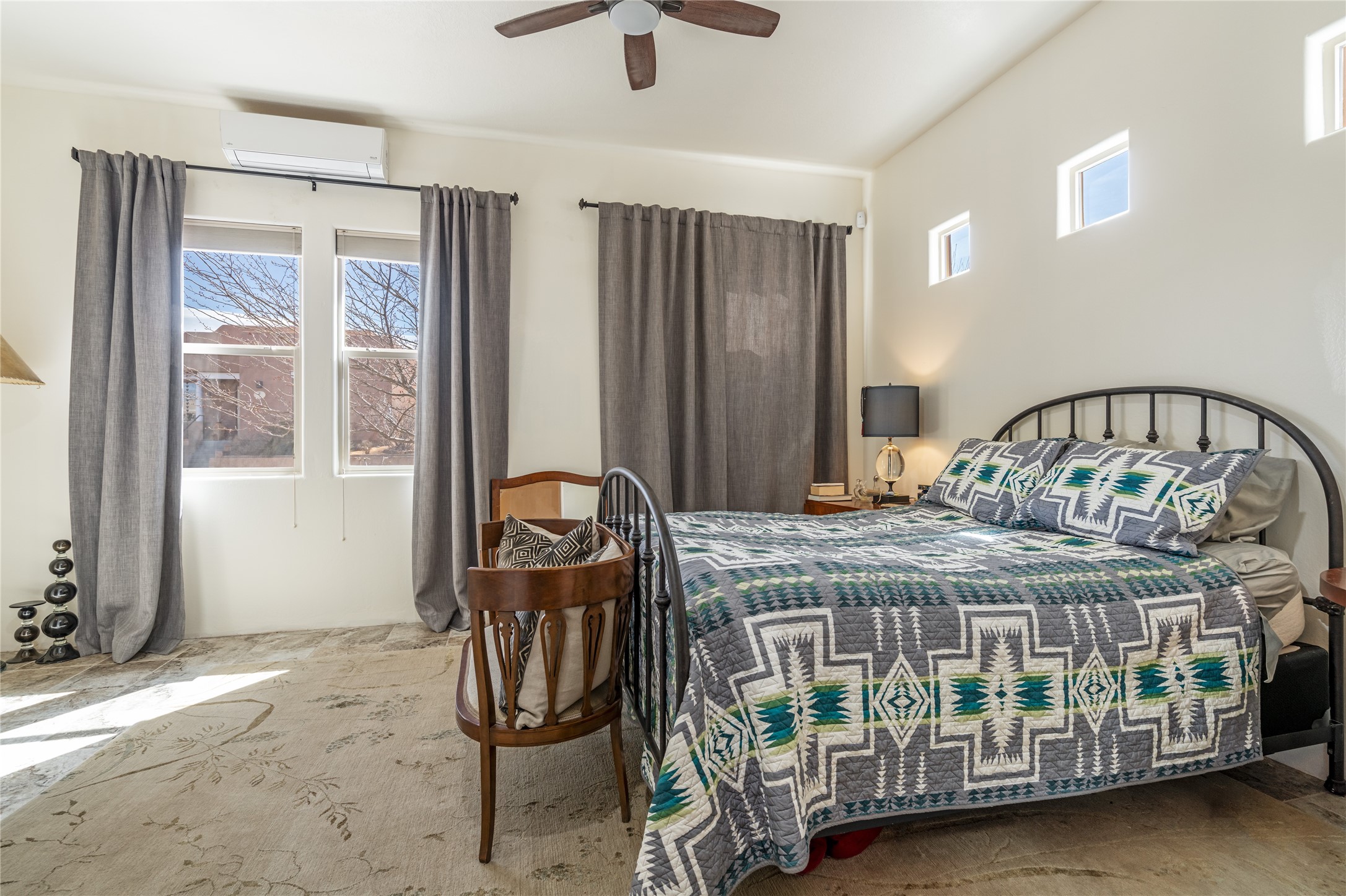 Welcome to 3 Gallina Peak, a beautifully designed home nestled in the sought-after Rancho Viejo community, just 13 miles from the historic Santa Fe Plaza. With a peak of Sangre de Cristo mountain views and a lovely private rear courtyard, this wonderful single-level residence offers both privacy and functionality. Inside, you'll find timeless Southwestern charm with tiled floors throughout, radiant heat, and mini-splits for efficient cooling. The open-concept design enhances modern living, while the wood-burning kiva fireplace and exposed vigas add warmth and character. A pony wall creates separation for the dining room while still allowing the open flow. The kitchen features a large central island and plenty of cabinet space and a pantry for storage. The primary suite is a private retreat, complete with a chic en-suite bath, a soaking tub, a separate shower, and a spacious walk-in closet. Outside, the enclosed backyard is thoughtfully landscaped with native vegetation, providing a serene outdoor space. Unique touches throughout make this home unique. Other upgrades include a high-efficiency tankless system for the radiant heat. Enjoy the Rancho Viejo lifestyle with 15+ miles of paved walking trails, several community parks, and reasonable covenants that help maintain the area's natural beauty.