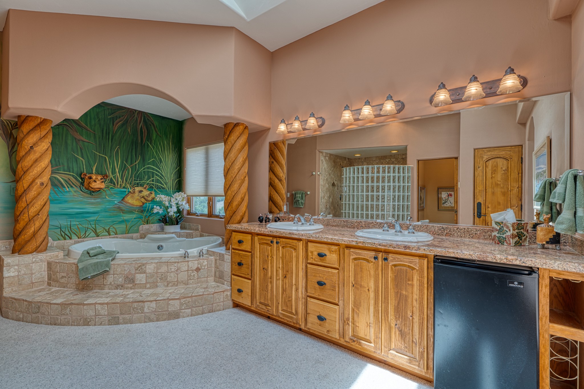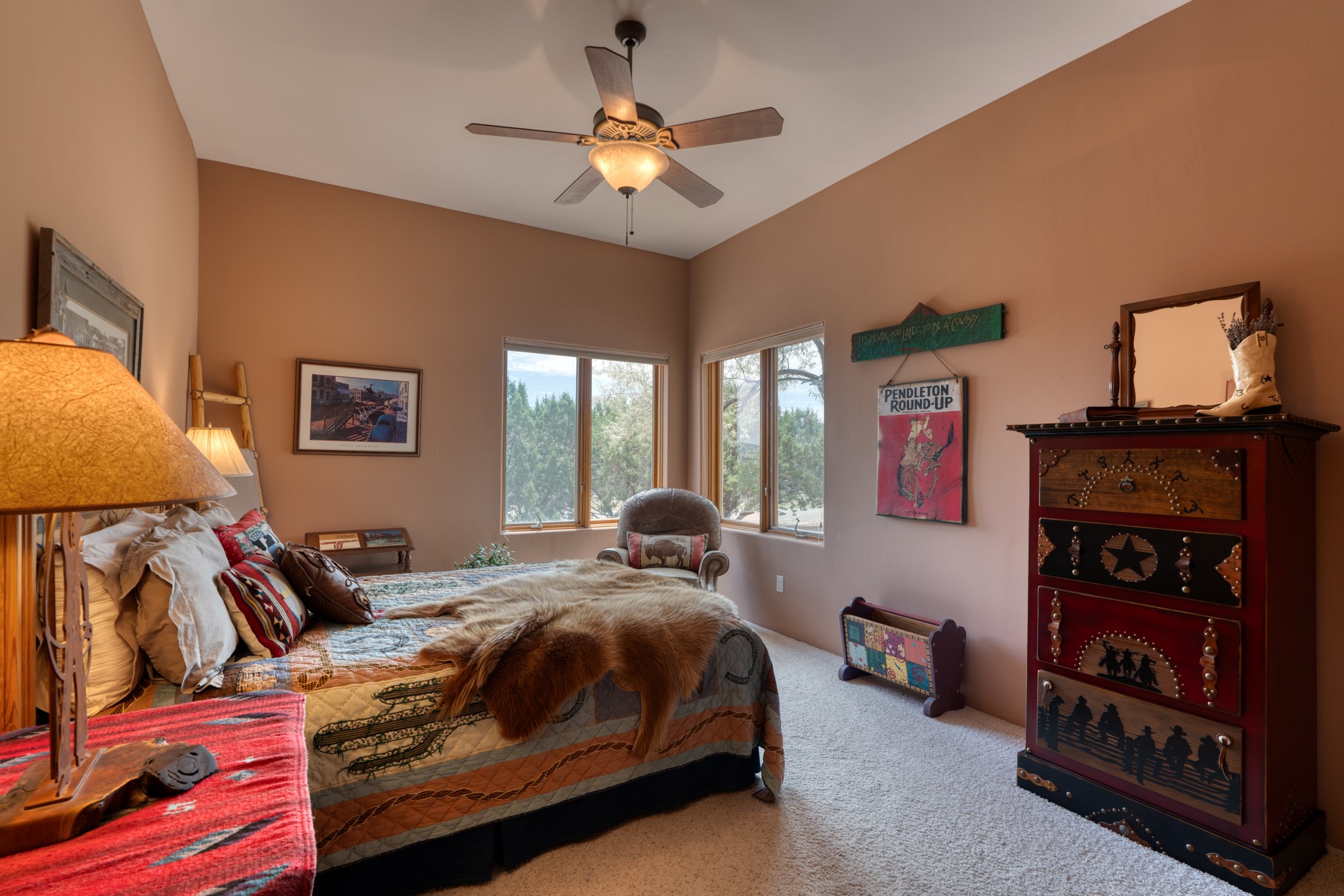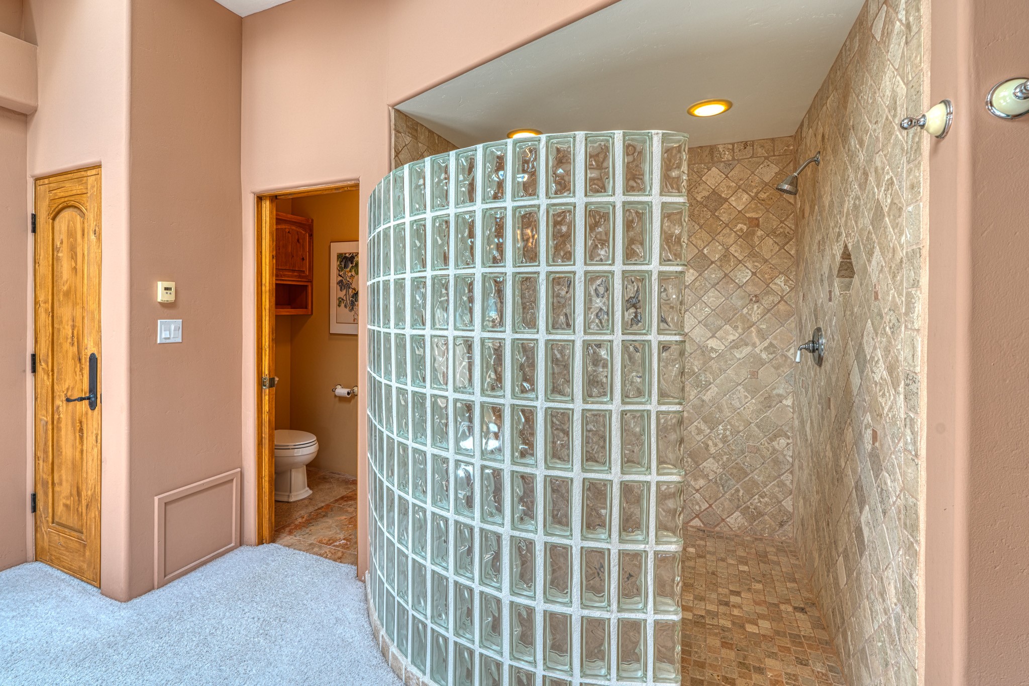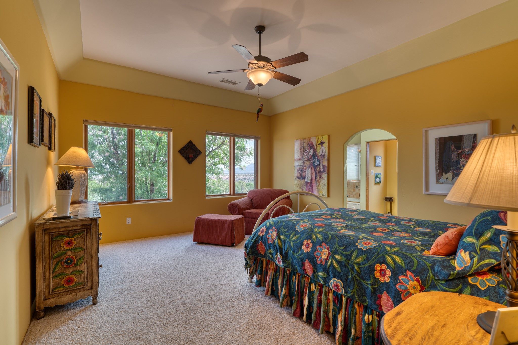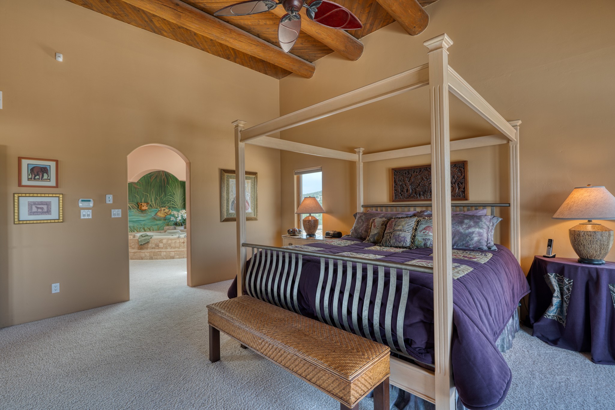 Imagine a home designed to capture the essence of East Mountain living on 10 acres, where expansive walls of glass blur the lines between indoors & out. This custom-built masterpiece boasts soaring ceilings with handcrafted wood beams that amplify light and openness, while every window offers a breathtaking vista. This beauty with a fabulous open floor plan, originally built for the builder, with many custom features. Certified Green Build with ICF Construction and Turkish travertine floors, Pella wood windows, magnificent 22' Kiva in Living room, Chef's kitchen with high-end Kitchen Aid appliances, Thermador Professional range, tons of counter space & butcher block island. Covered patio with kiva fireplace, 4-car oversized garage, fenced yard (2/3 ac) Roof-top deck on 10 acres.