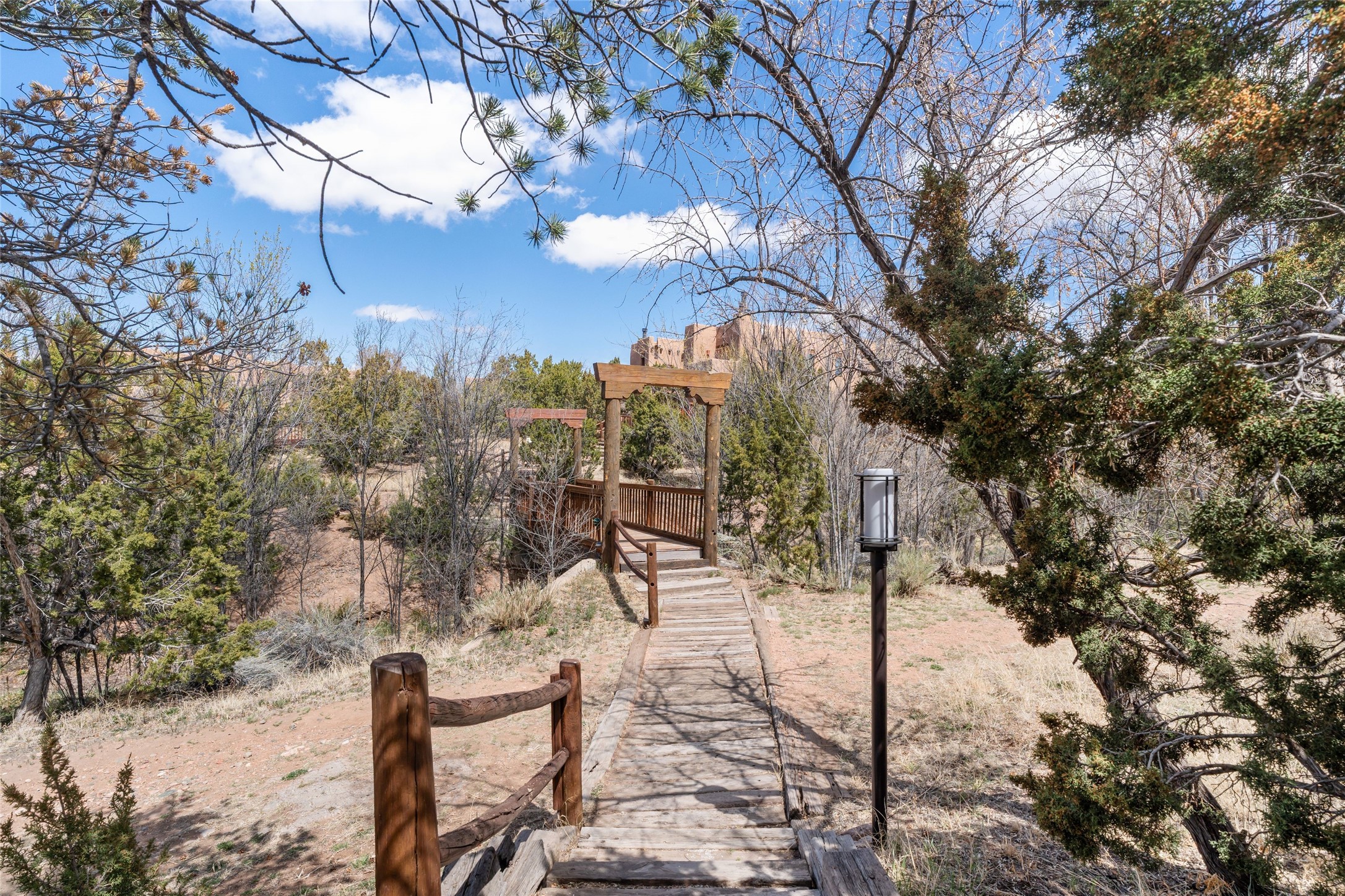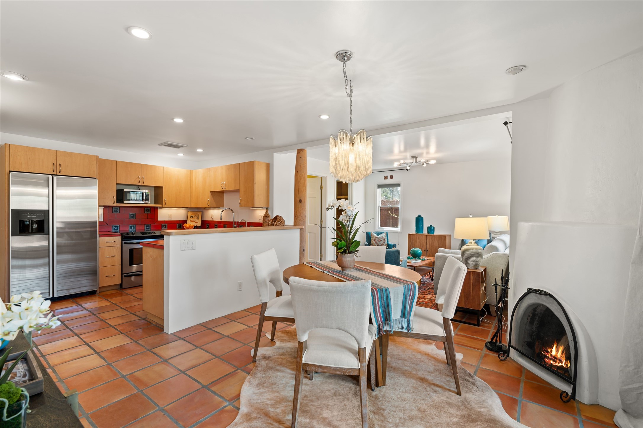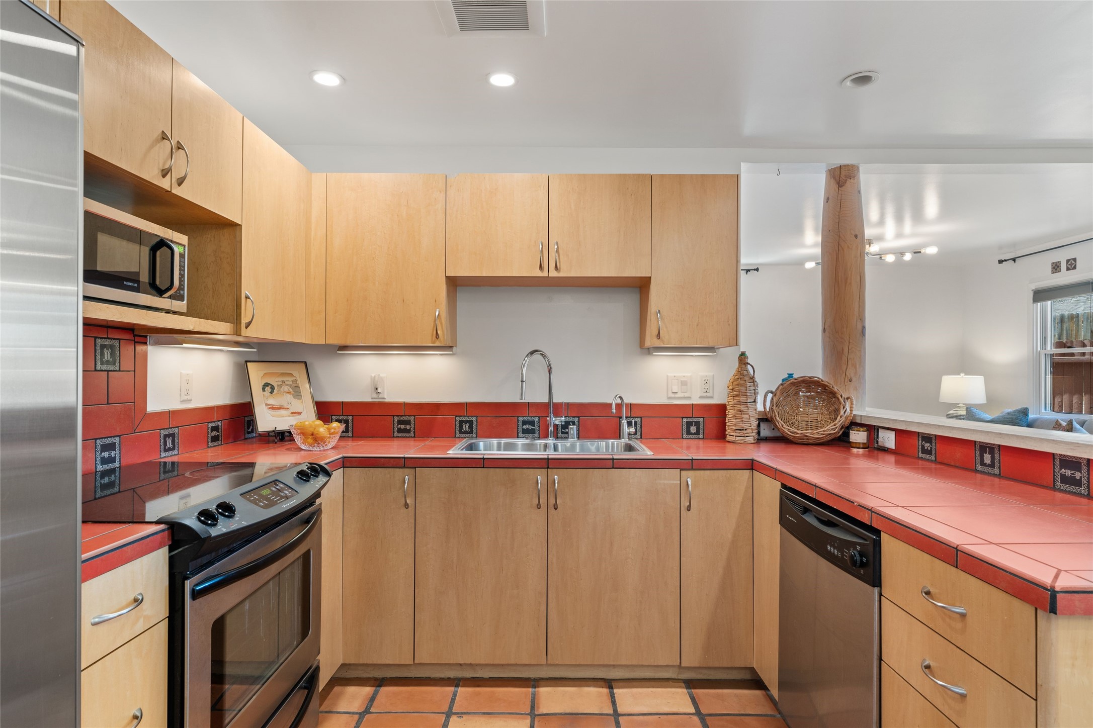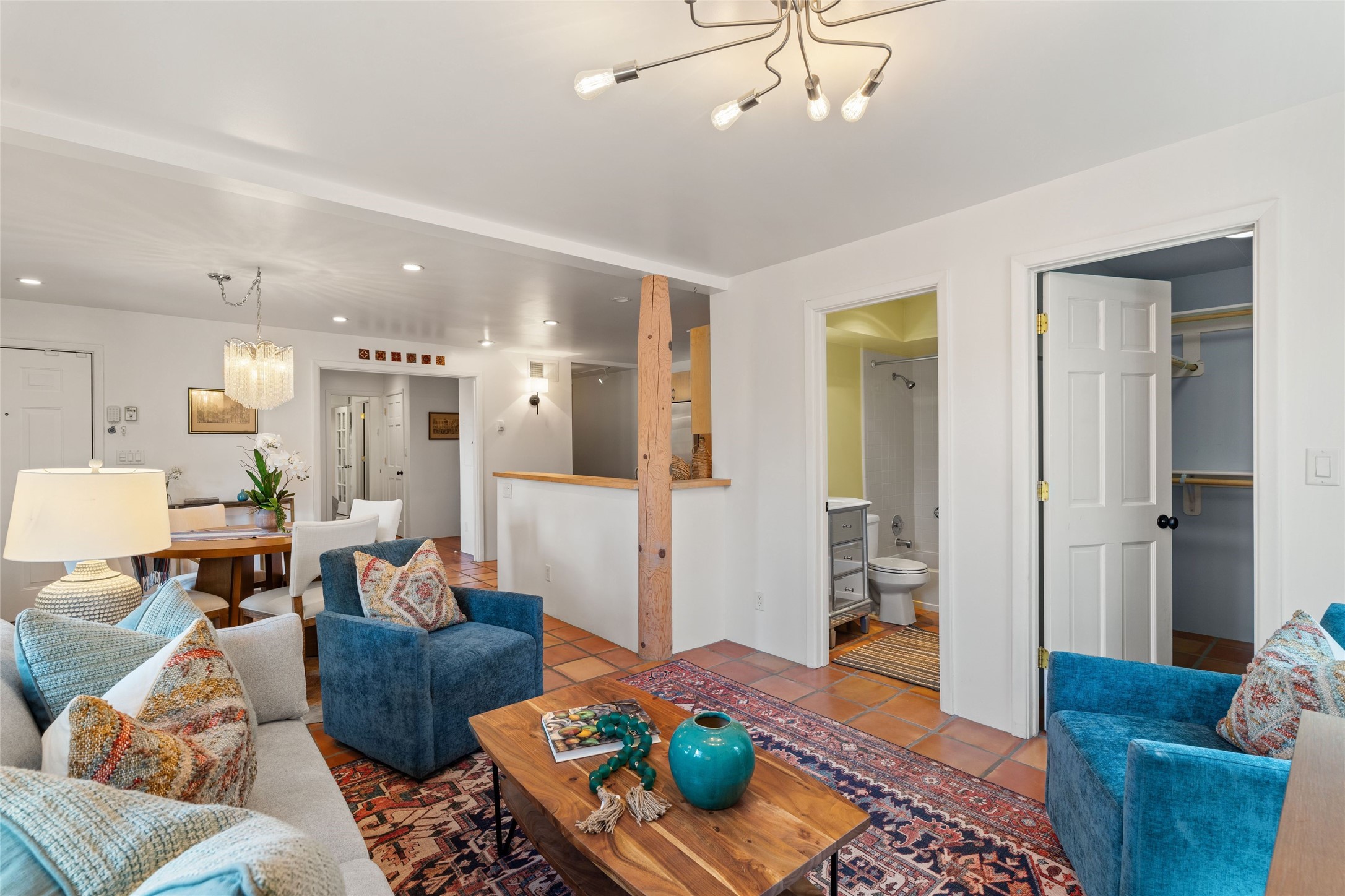 BRAND NEW PRICE!!! Tucked away down a private lane, this single level condo has exceptional CHARM! Beautifully updated and tastefully remodeled this light filled condo offers 1432 sf of living space in a flexible floor plan. It is pristine and was architecturally re-designed combining two units to create a one clever floor plan now offering a 3 bedroom, 3 bathroom condo. In addition it offers 2 spacious fenced courtyards and is an end unit situated on a gated 13.5 ac property. The community property offers a pool with ramada & BBQ, walking trails with foot bridges, vast Pinon groves, plus 2 large ponds filled with KOI and fountains. This is a MUST SEE condo!!The main living area offers dining room ensconced with a crystal chandelier and wood burning Kiva flowing into the living room. The kitchen appointed with custom cabinets, designer tile, stainless appliances, & the sink outfitted with a Hans Grohe faucet. Entire space opens to a west facing dining patio through charming French doors ....The large owner's suite is a retreat featuring wood floors, wood burning Kiva, walk-in closet, a beautifully appointed en-suite with Talavera sink, luxury jetted soaking tub, & separate shower with river rock floor. More French doors lead to 2nd fenced courtyard overlooking Pinion groves. The 2nd bed also includes en-suite, and the 3rd bed could also be perfect for office or den.The designated laundry area with washer/dryer has custom wood cabinets and counters for folding convenience. The Saltillo tiles & wood floors throughout offer radiant heat and efficient duct refrigerated air for the warmer seasons. If closet and storage space is a priority, well then this condo is for you! Aside from the 2 walk-in closets there are another 2 semi walk-in closets for storage. This is a rarity among condos!This is a one of a kind end unit that lives like a home with windows on all three sides, plus 4 designated parking spaces right next to the unit for your convenience, and excellent proximity to shopping centers and Ragle Park across the street.* Seller willing to pay 6 months of HOA dues.*Excellent opportunity to own large turn key condo that is priced to sell!
