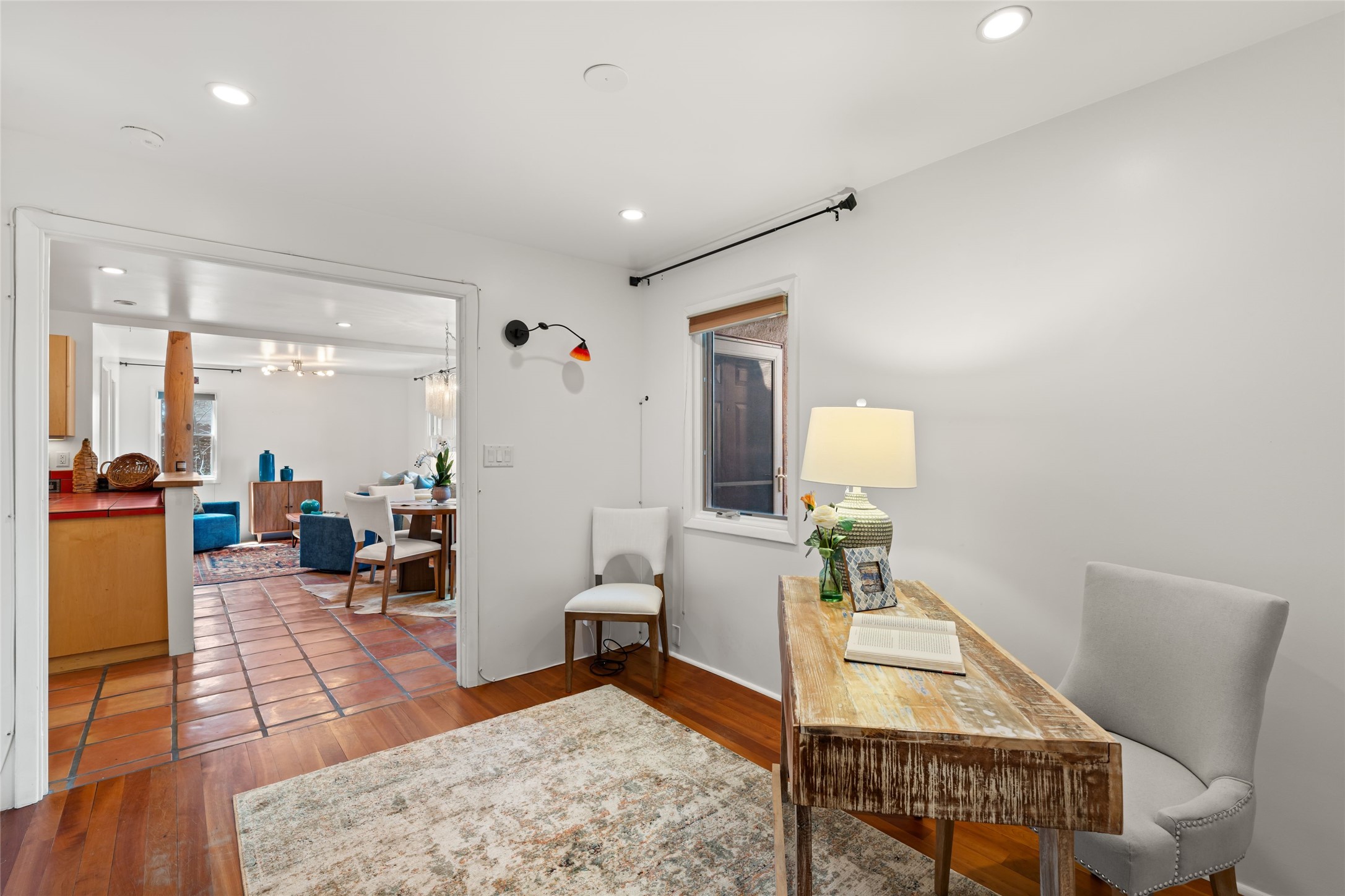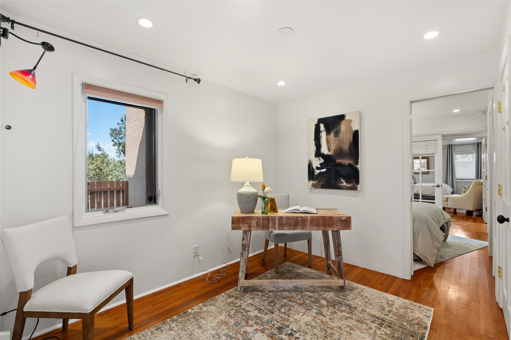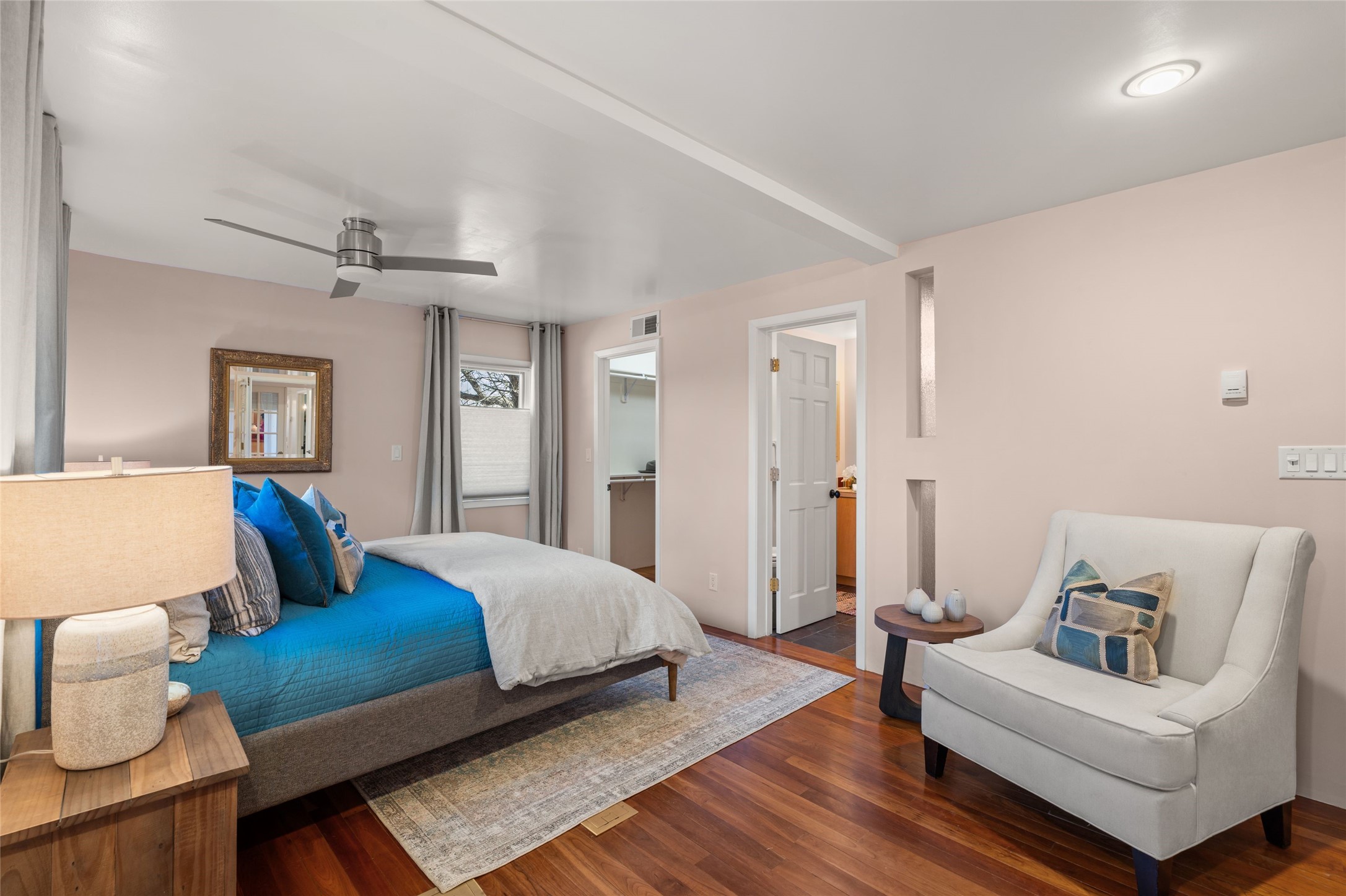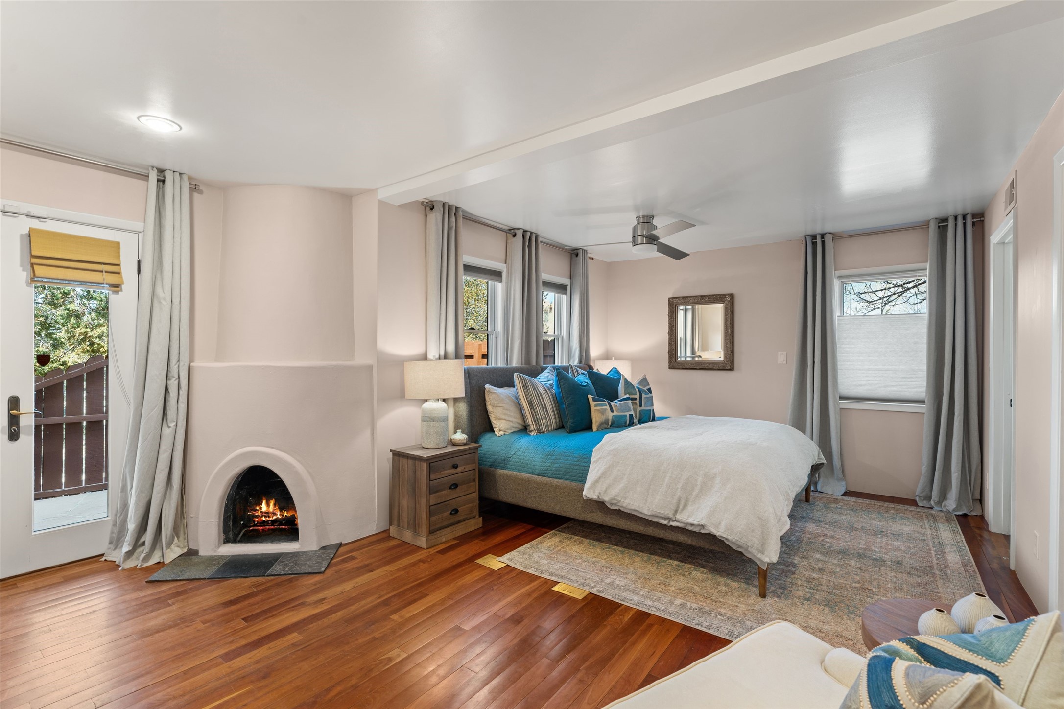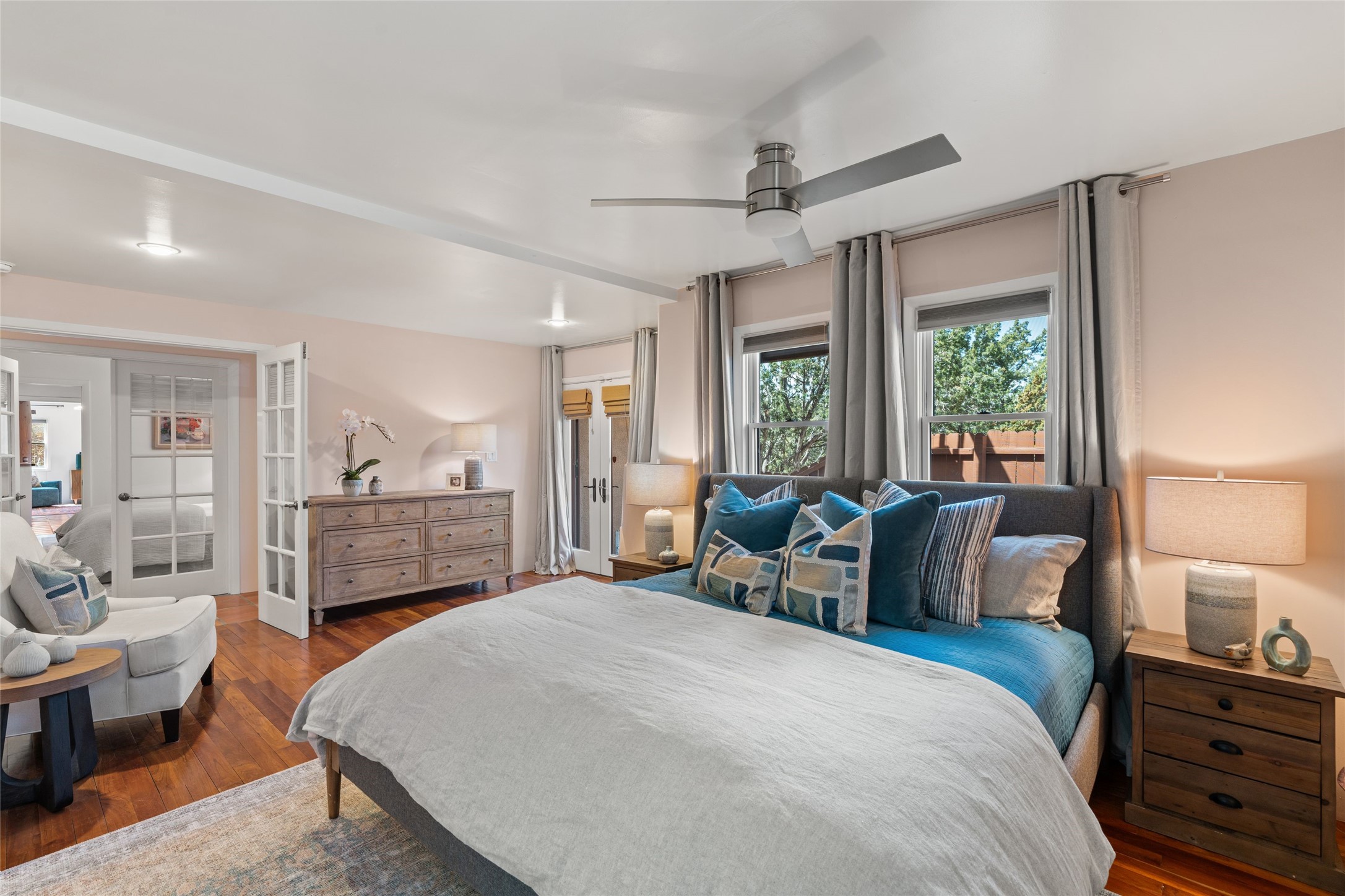 BRAND NEW PRICE!!! Tucked away down a private lane, this single level condo has exceptional CHARM! Beautifully updated and tastefully remodeled this light filled condo offers 1432 sf of living space in a flexible floor plan. It is pristine and was architecturally re-designed combining two units to create a one clever floor plan now offering a 3 bedroom, 3 bathroom condo. In addition it offers 2 spacious fenced courtyards and is an end unit situated on a gated 13.5 ac property. The community property offers a pool with ramada & BBQ, walking trails with foot bridges, vast Pinon groves, plus 2 large ponds filled with KOI and fountains. This is a MUST SEE condo!!The main living area offers dining room ensconced with a crystal chandelier and wood burning Kiva flowing into the living room. The kitchen appointed with custom cabinets, designer tile, stainless appliances, & the sink outfitted with a Hans Grohe faucet. Entire space opens to a west facing dining patio through charming French doors ....The large owner's suite is a retreat featuring wood floors, wood burning Kiva, walk-in closet, a beautifully appointed en-suite with Talavera sink, luxury jetted soaking tub, & separate shower with river rock floor. More French doors lead to 2nd fenced courtyard overlooking Pinion groves. The 2nd bed also includes en-suite, and the 3rd bed could also be perfect for office or den.The designated laundry area with washer/dryer has custom wood cabinets and counters for folding convenience. The Saltillo tiles & wood floors throughout offer radiant heat and efficient duct refrigerated air for the warmer seasons. If closet and storage space is a priority, well then this condo is for you! Aside from the 2 walk-in closets there are another 2 semi walk-in closets for storage. This is a rarity among condos!This is a one of a kind end unit that lives like a home with windows on all three sides, plus 4 designated parking spaces right next to the unit for your convenience, and excellent proximity to shopping centers and Ragle Park across the street.* Seller willing to pay 6 months of HOA dues.*Excellent opportunity to own large turn key condo that is priced to sell!