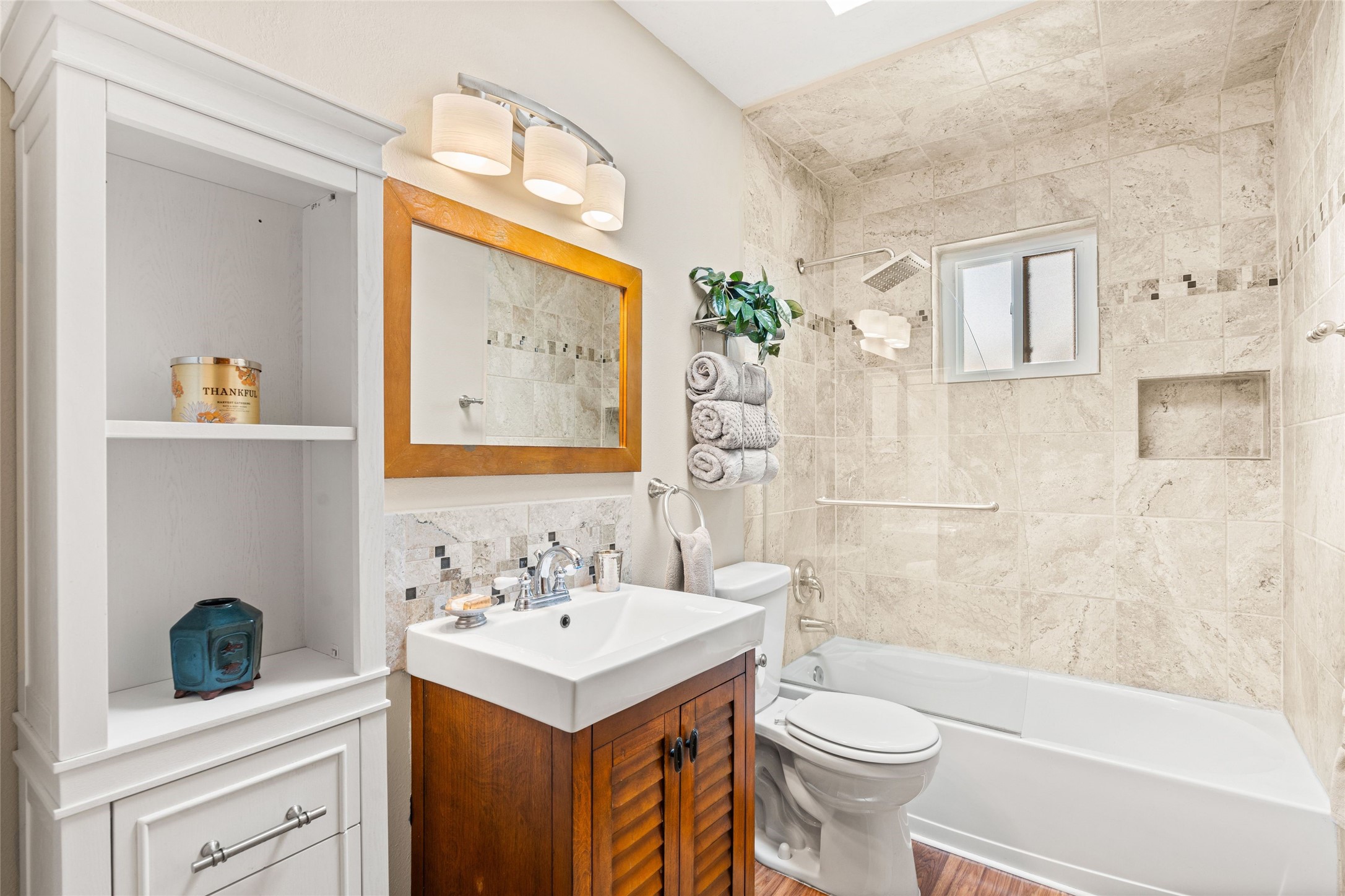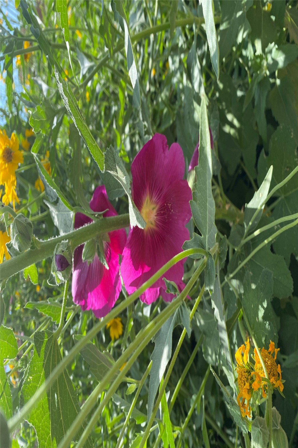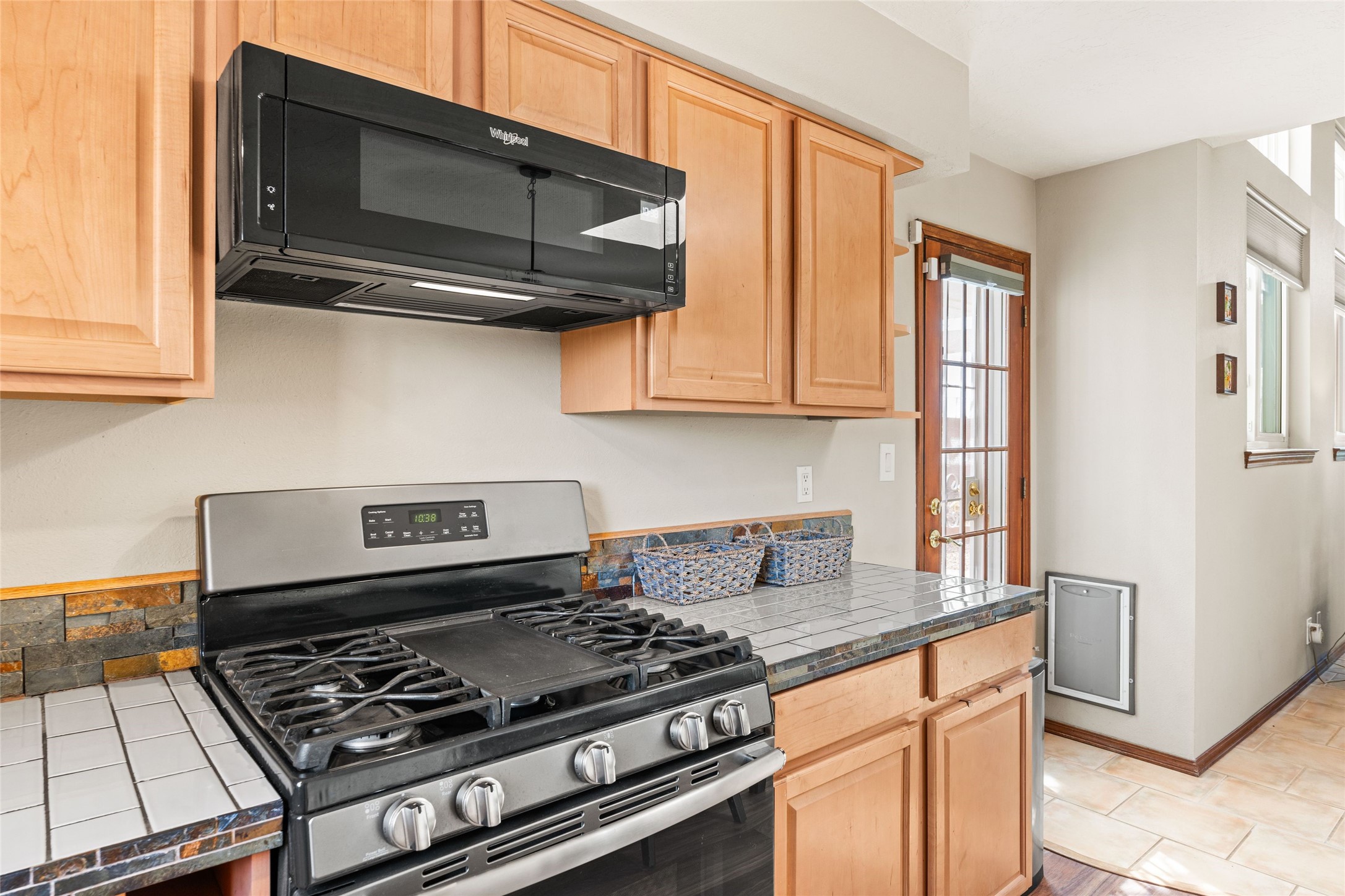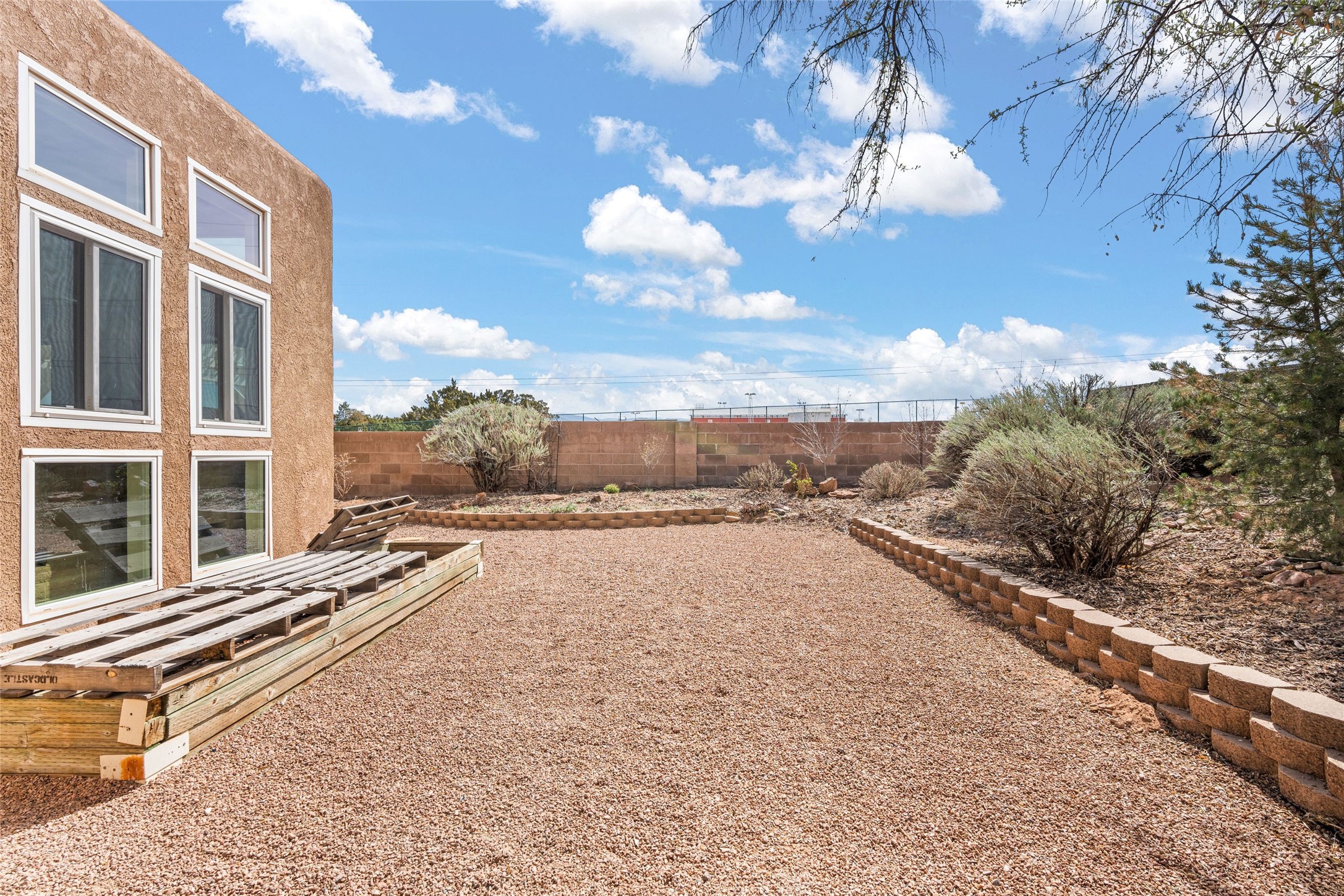 A gardener's dream! Welcome to this charming 2-bedroom, 1-bathroom centrally located home. This well-maintained property offers a perfect blend of Santa Fe style and modern upgrades. Enjoy soaring high ceilings and skylights with a classic kiva wood-burning fireplace in the living room, plus a small trombe wall for passive solar gain. Other amenities include an updated bathroom with skylight, newer windows for energy efficiency, a separate laundry room, 1-car garage, solar panels, newer furnace and water heater. The primary bedroom enjoys French doors opening to a patio. This home's backyard is a must see with a large flagstone patio with pergola and seating. Extensive gardening space and delightfully mature grape vines complete the extensive exterior space. Don't miss this cozy and character-filled home with energy-efficient features, and thoughtful design throughout.