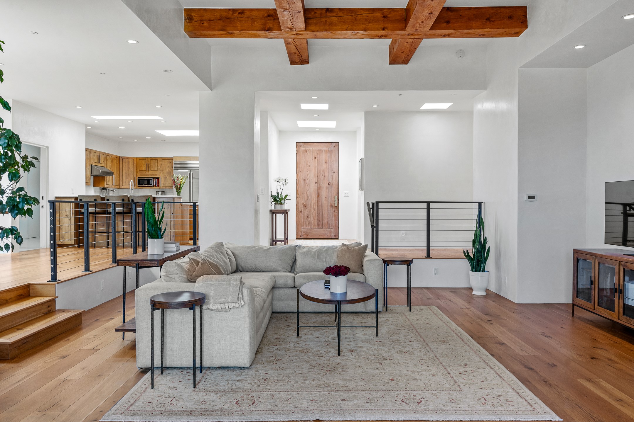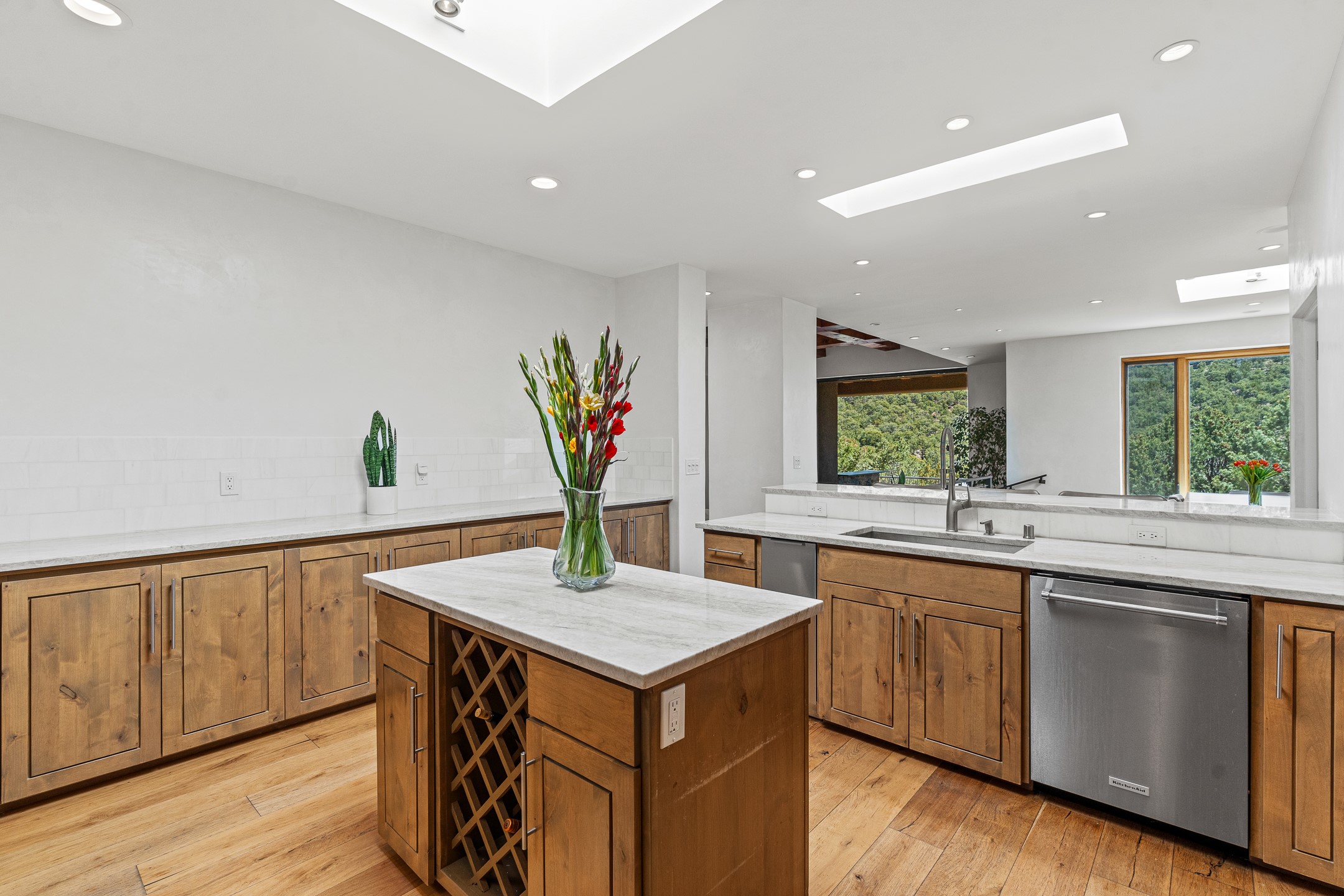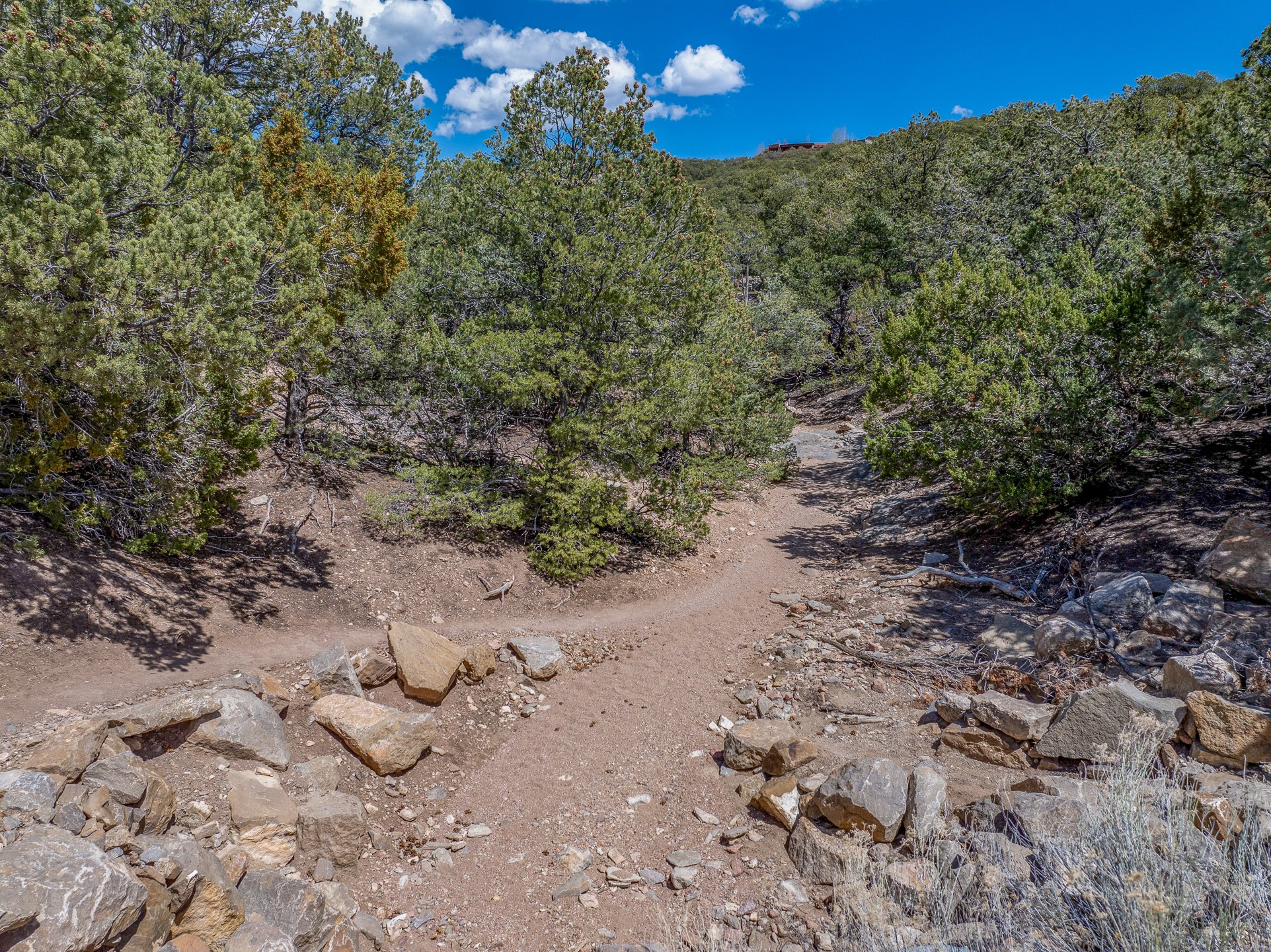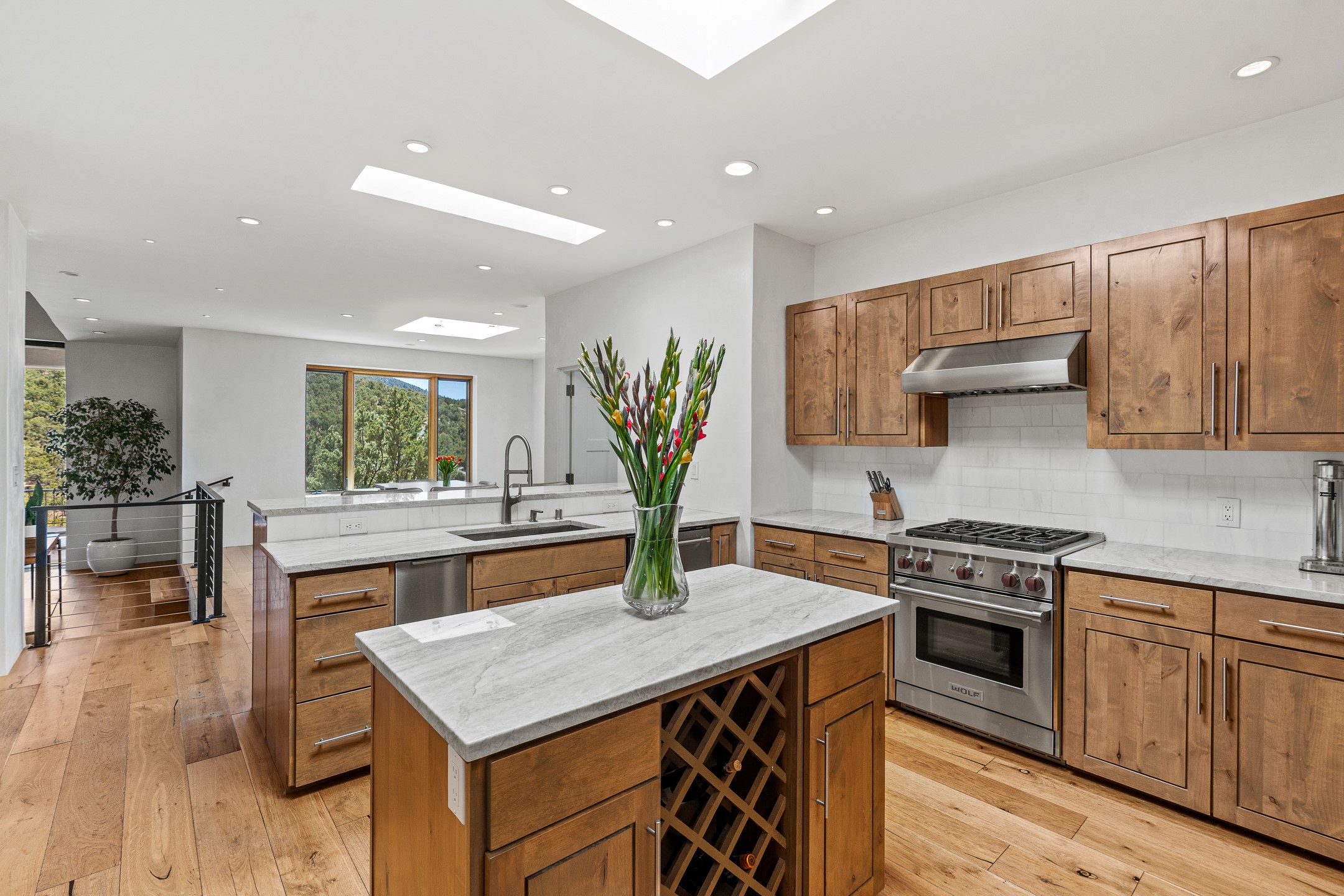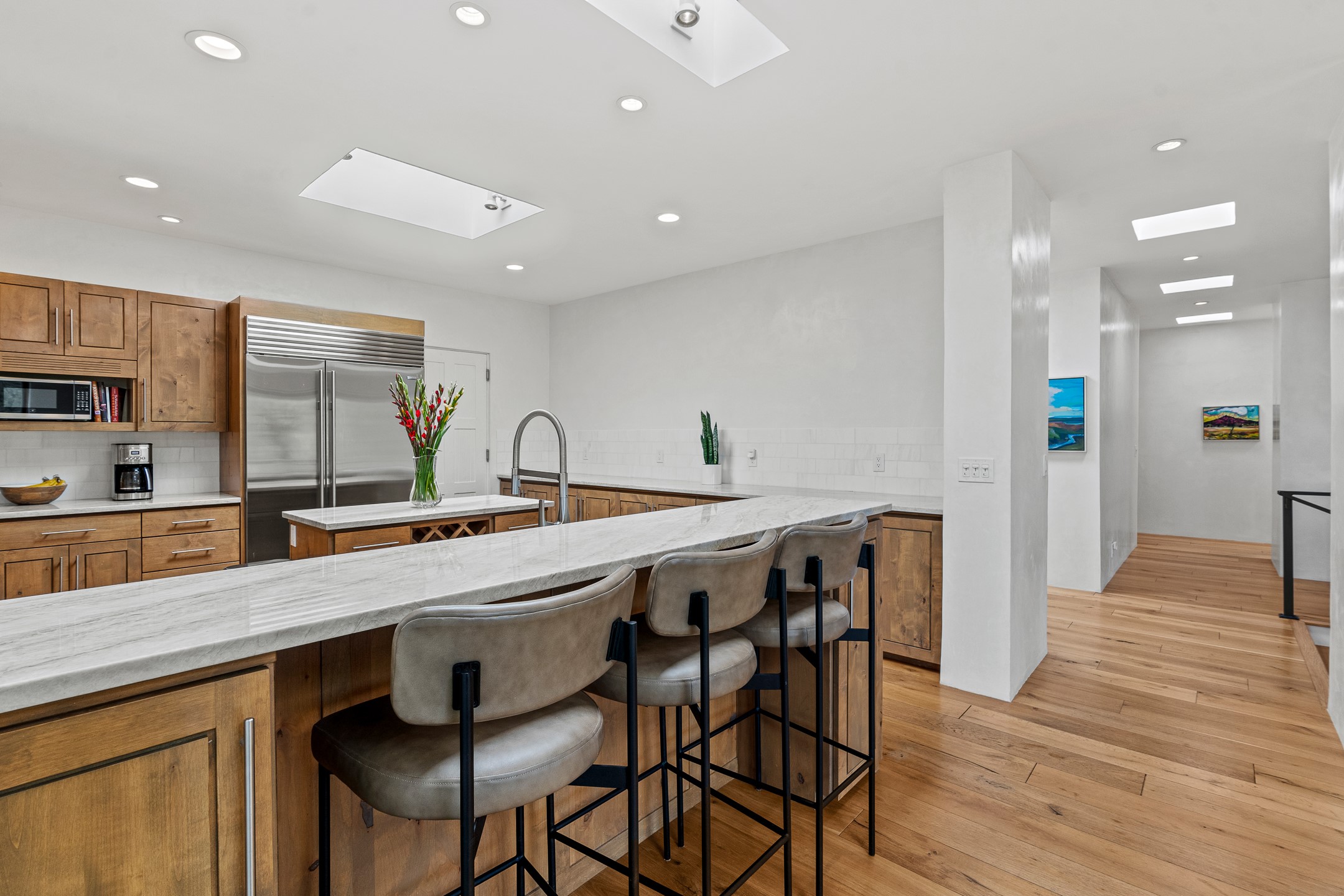 Modern Elegance in the Mountains -- A Sanctuary in the Sky-Built by award winning builder Fred Klein.Perched high above the city in the coveted Cerros Colorados community, find this breathtaking contemporary retreat where clean design meets timeless Santa Fe charm. Every moment in this 2,719- square-foot home is framed by expansive views of Sun and Moon Mountains, sparkling city lights, and the sweeping majesty of Northern New Mexico. For those who crave a connection to nature, this home is perfectly positioned with easy access to the Dale Ball Trails and on the scenic route to the Santa Fe Ski Basin. Inside, this 3-bedroom, 3-bath home has been thoughtfully updated with a modern aesthetic that still honors the spirit of Santa Fe. Wide-plank oak floors and smooth white plaster walls create a calming, gallery-like backdrop for art and life. The living room, with its wood-burning fireplace and rustic cross-beamed ceilings, offers a sense of grounded luxury--especially when the disappearing glass wall opens to a stunning portal that blurs the line between indoors and out. Imagine evenings here: cozying up by the outdoor fireplace, sharing stories around the built-in grill and bar, the scent of pion in the air, and stars stretching across a velvet sky. Just above the living room, a spacious dining area opens to another patio--perfect for dinner with a view. The chef's kitchen is a dream: generous in space, fitted with Wolf and Sub-Zero appliances, new stone countertops, and a tasteful tile backsplash. The primary suite is a private retreat with its own secluded patio--a quiet space to greet the day or wind down under the stars. The ensuite bath is pure indulgence, with double vanities, a deep soaking tub, and beautiful stone and tile finishes. Even the laundry and mudroom are designed with intention, offering a stylish and functional drop zone for gear, coats, and everyday living. Whether you're seeking stillness or adventure, this home offers both in a setting that inspires every day.