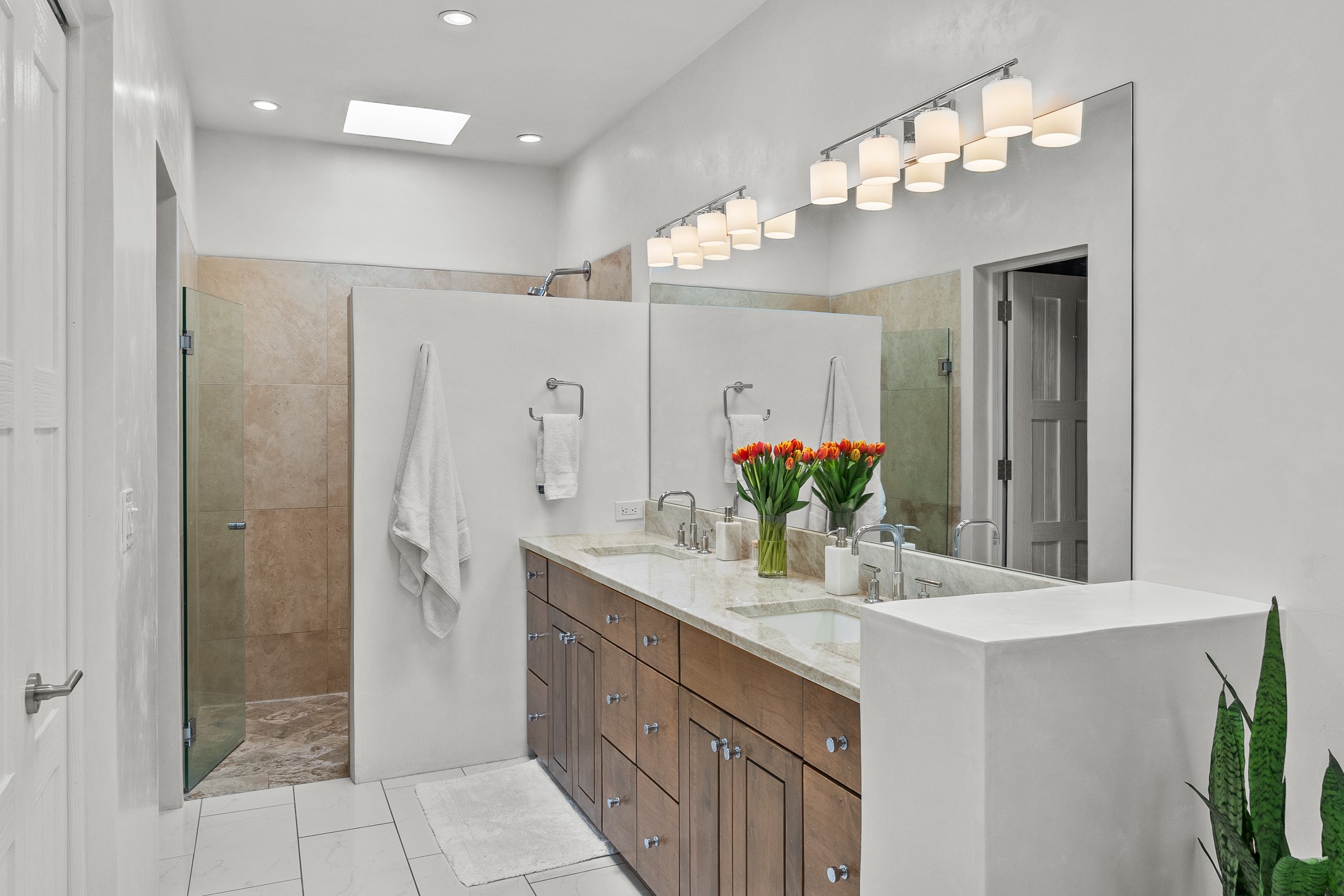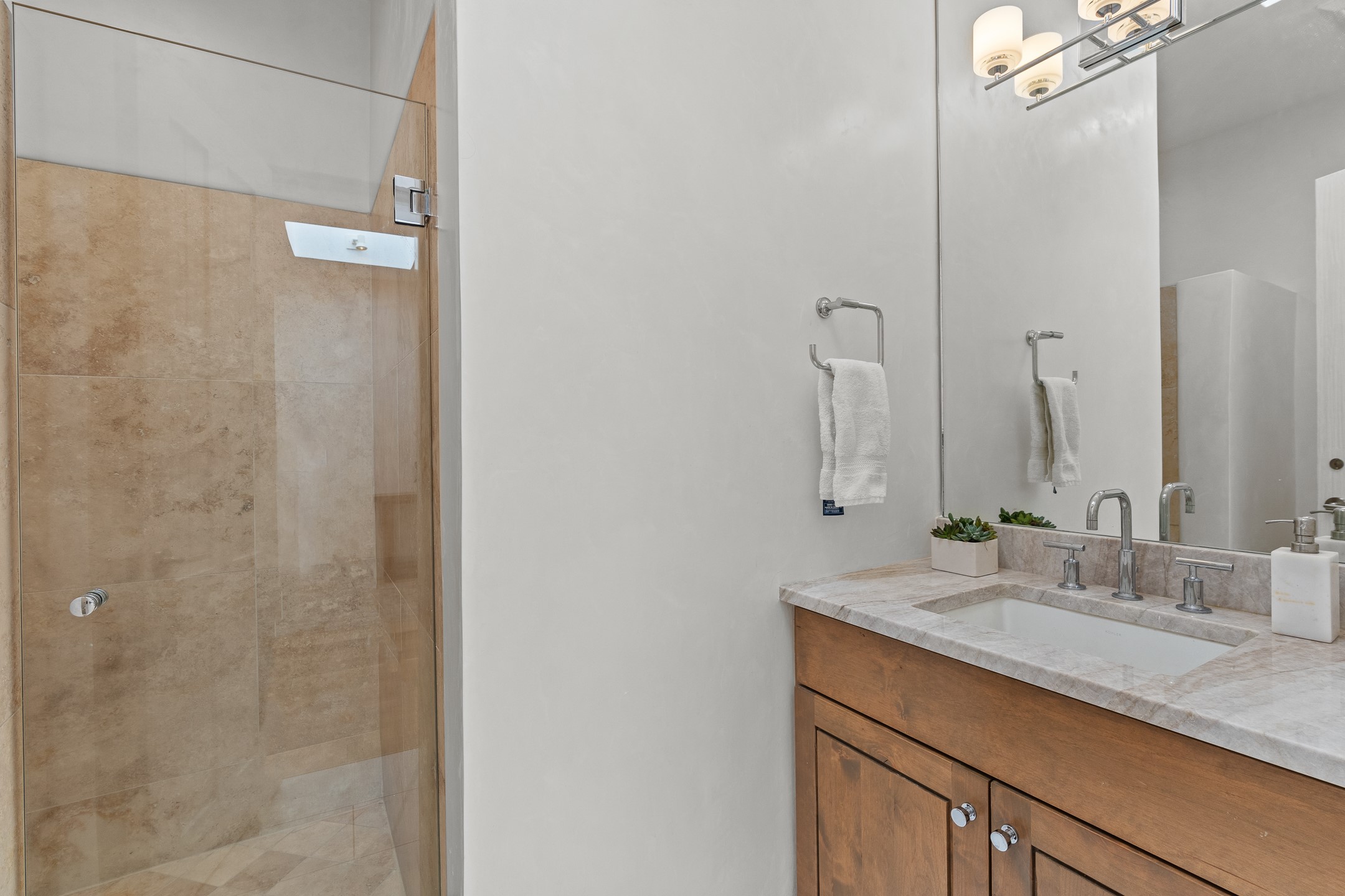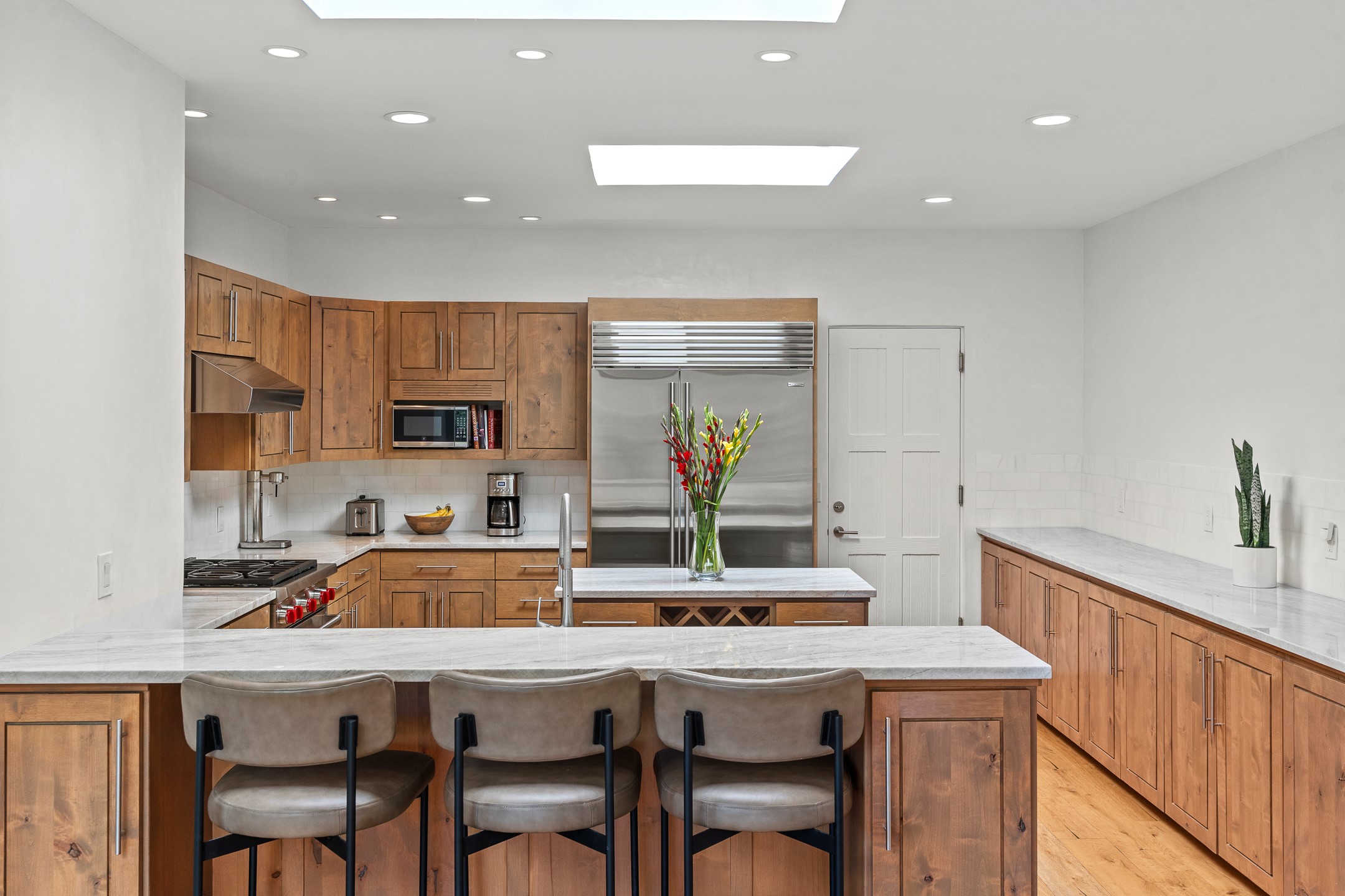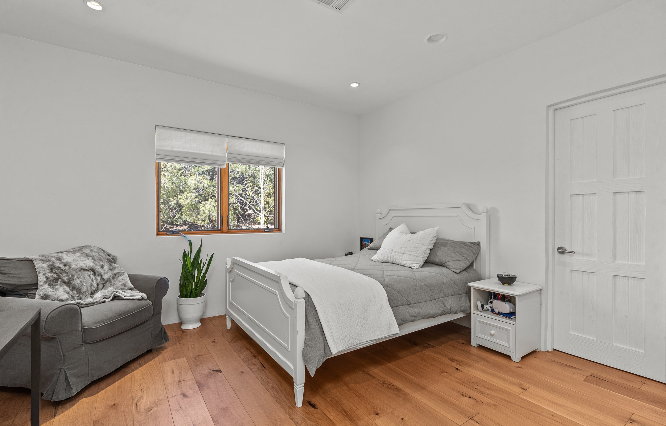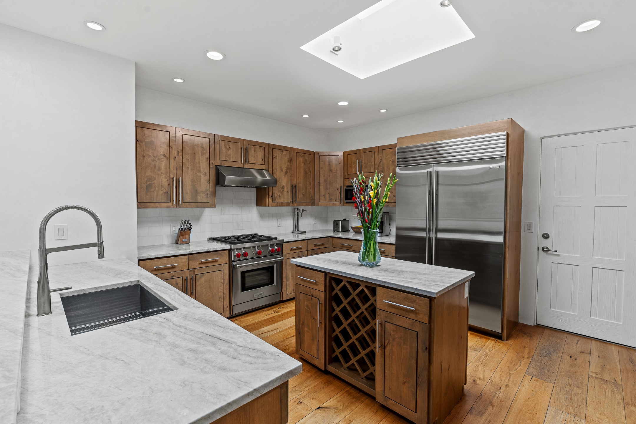 Modern Elegance in the Mountains -- A Sanctuary in the Sky-Built by award winning builder Fred Klein.Perched high above the city in the coveted Cerros Colorados community, find this breathtaking contemporary retreat where clean design meets timeless Santa Fe charm. Every moment in this 2,719- square-foot home is framed by expansive views of Sun and Moon Mountains, sparkling city lights, and the sweeping majesty of Northern New Mexico. For those who crave a connection to nature, this home is perfectly positioned with easy access to the Dale Ball Trails and on the scenic route to the Santa Fe Ski Basin. Inside, this 3-bedroom, 3-bath home has been thoughtfully updated with a modern aesthetic that still honors the spirit of Santa Fe. Wide-plank oak floors and smooth white plaster walls create a calming, gallery-like backdrop for art and life. The living room, with its wood-burning fireplace and rustic cross-beamed ceilings, offers a sense of grounded luxury--especially when the disappearing glass wall opens to a stunning portal that blurs the line between indoors and out. Imagine evenings here: cozying up by the outdoor fireplace, sharing stories around the built-in grill and bar, the scent of pion in the air, and stars stretching across a velvet sky. Just above the living room, a spacious dining area opens to another patio--perfect for dinner with a view. The chef's kitchen is a dream: generous in space, fitted with Wolf and Sub-Zero appliances, new stone countertops, and a tasteful tile backsplash. The primary suite is a private retreat with its own secluded patio--a quiet space to greet the day or wind down under the stars. The ensuite bath is pure indulgence, with double vanities, a deep soaking tub, and beautiful stone and tile finishes. Even the laundry and mudroom are designed with intention, offering a stylish and functional drop zone for gear, coats, and everyday living. Whether you're seeking stillness or adventure, this home offers both in a setting that inspires every day.