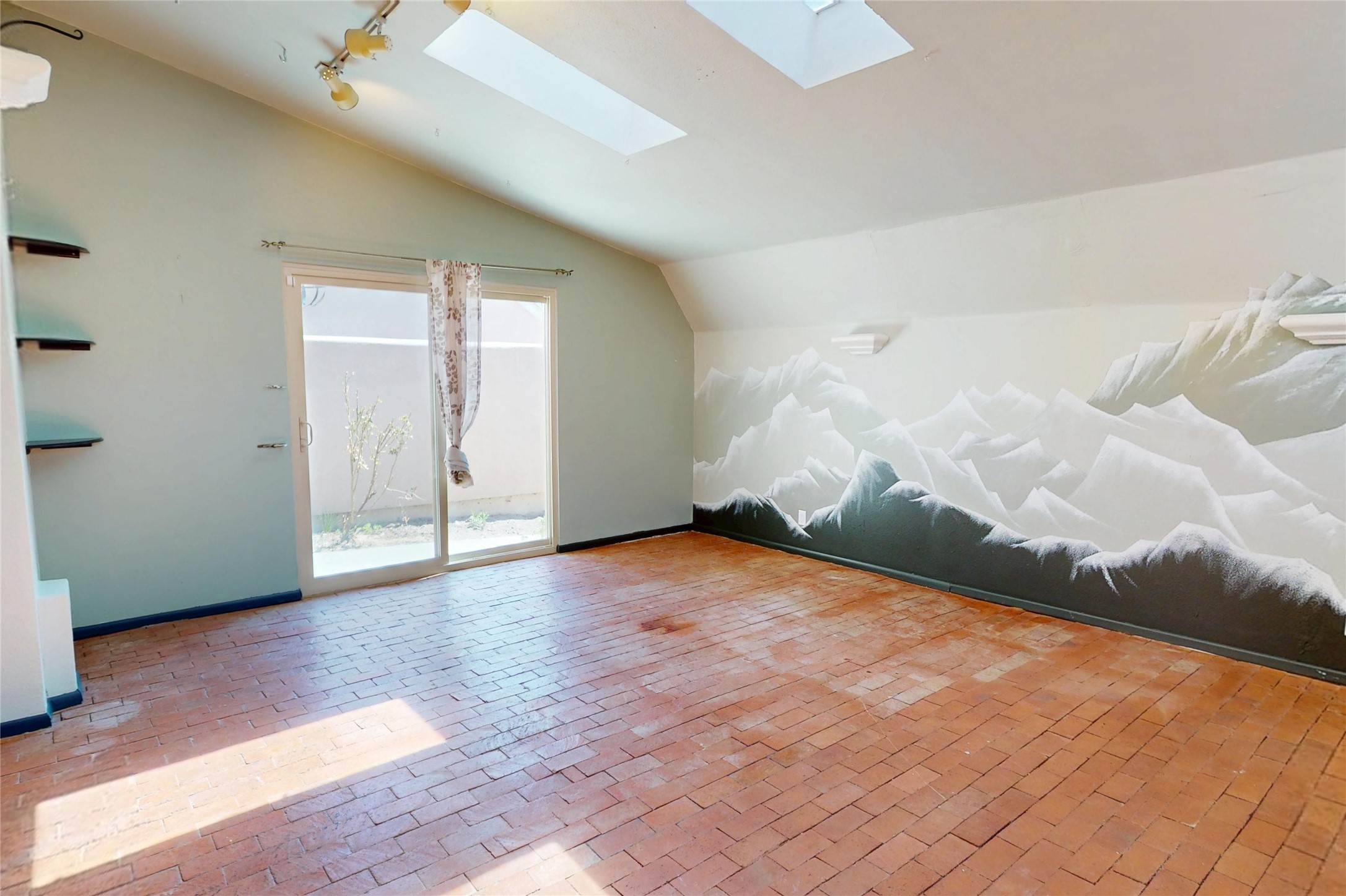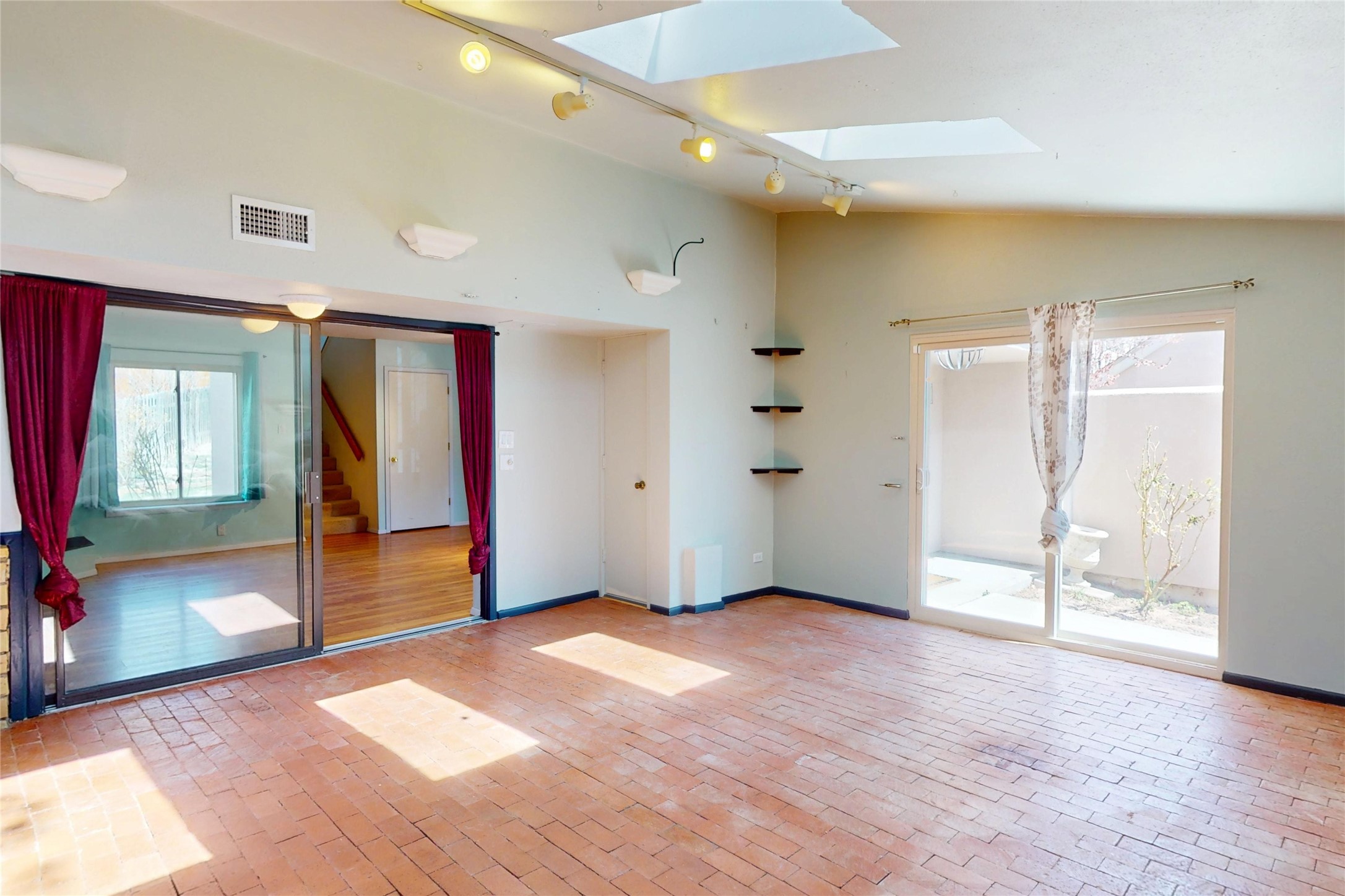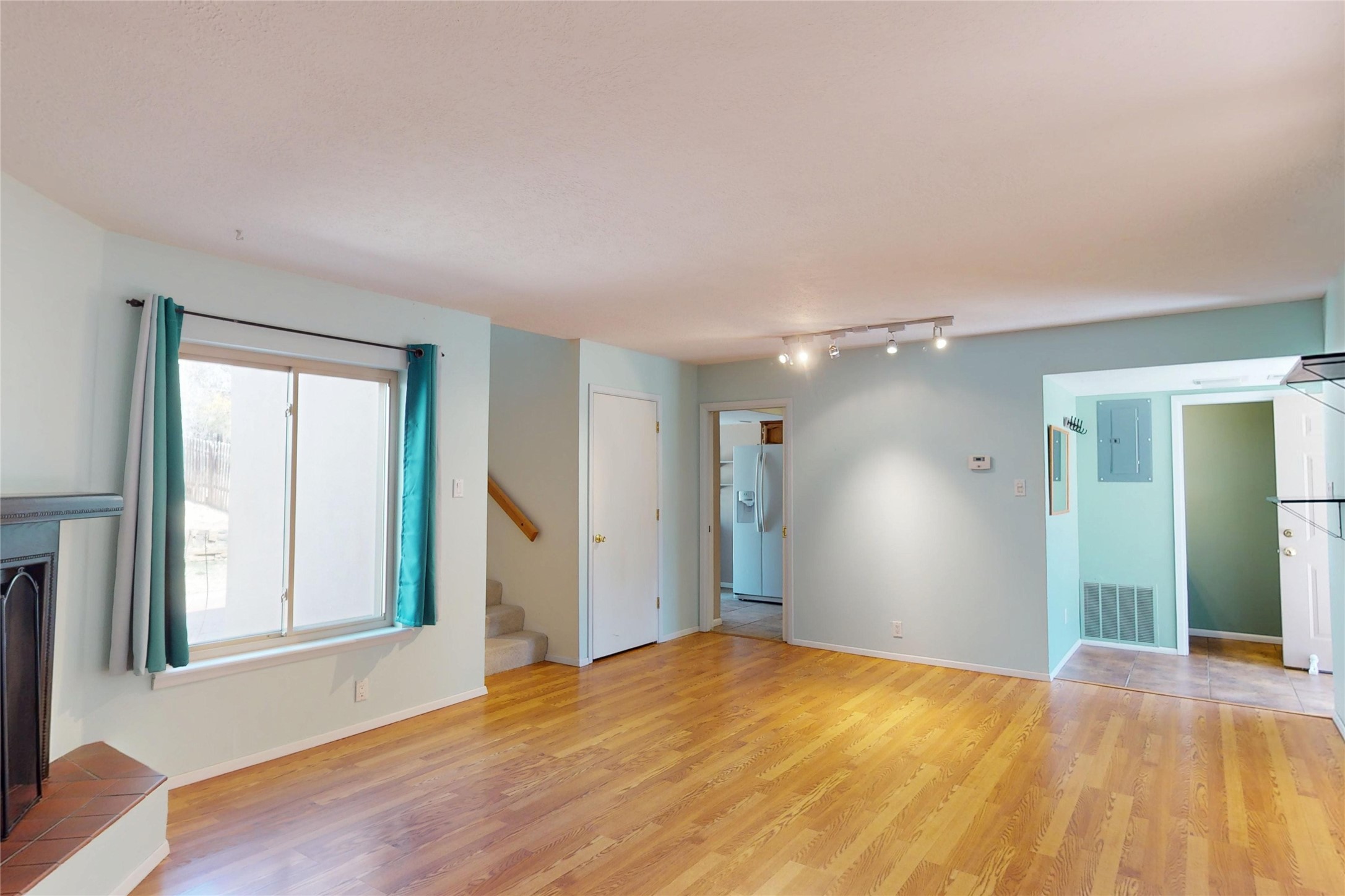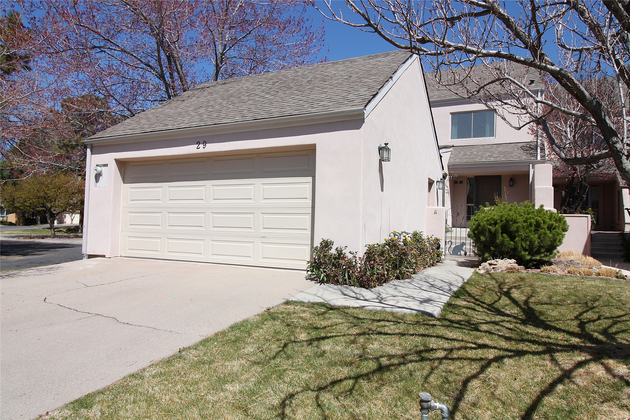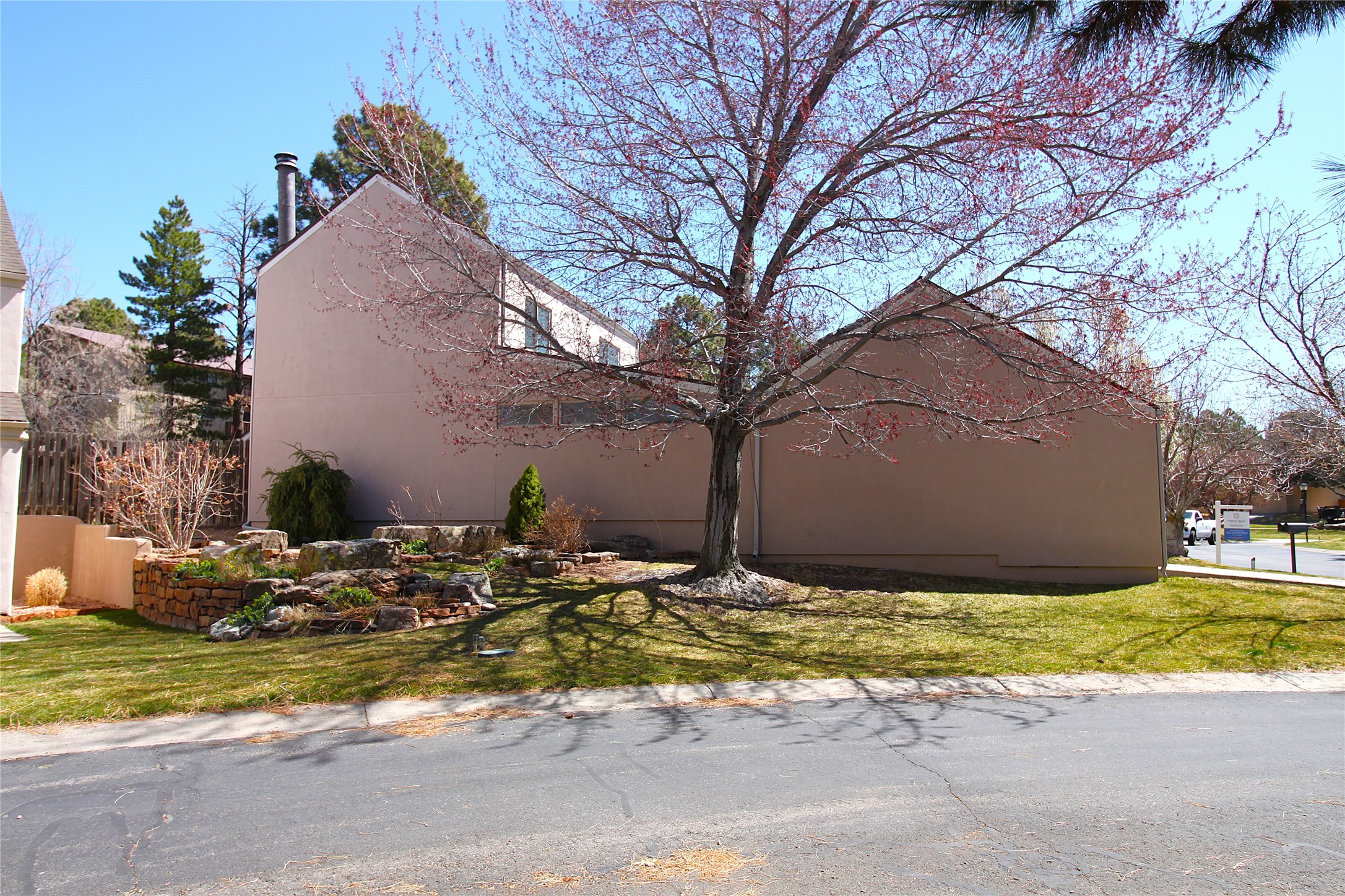 Charming End-Unit Townhome in Timber Ridge - Move-In Ready!Welcome to this beautifully updated 2-bedroom, 2-bath townhome in the highly desirable Timber Ridge Subdivision. This light-filled end unit offers the perfect blend of comfort, style, and convenience--just minutes from downtown Los Alamos.Enter through a lovely courtyard into the spacious living room, featuring warm laminate wood flooring and a cozy wood-burning fireplace--ideal for relaxing evenings at home. The kitchen boasts sleek granite countertops, ceramic tile flooring, and modern fixtures. Both bathrooms have been tastefully renovated with matching granite surfaces. One of the home's standout features is the sun-splashed multipurpose room, complete with skylights, a charming brick floor, and direct access to the front courtyard--perfect for indoor-outdoor living or a bright home office. Upstairs, both bedrooms are generously sized and include walk-in closets for ample storage. The low-maintenance, fenced backyard features tiered flower beds and a brick patio--an inviting space to enjoy the outdoors. Don't miss this opportunity to own a wonderful home in a prime location. Schedule your showing today!