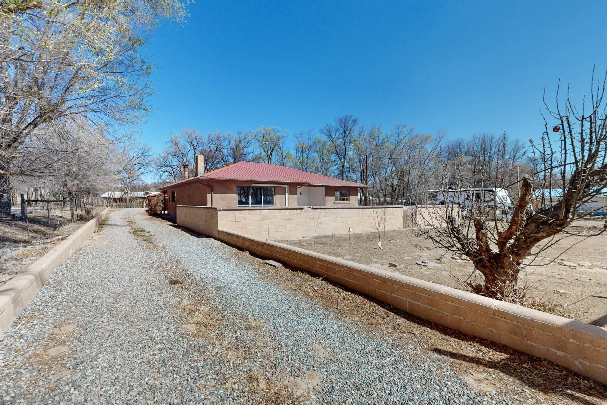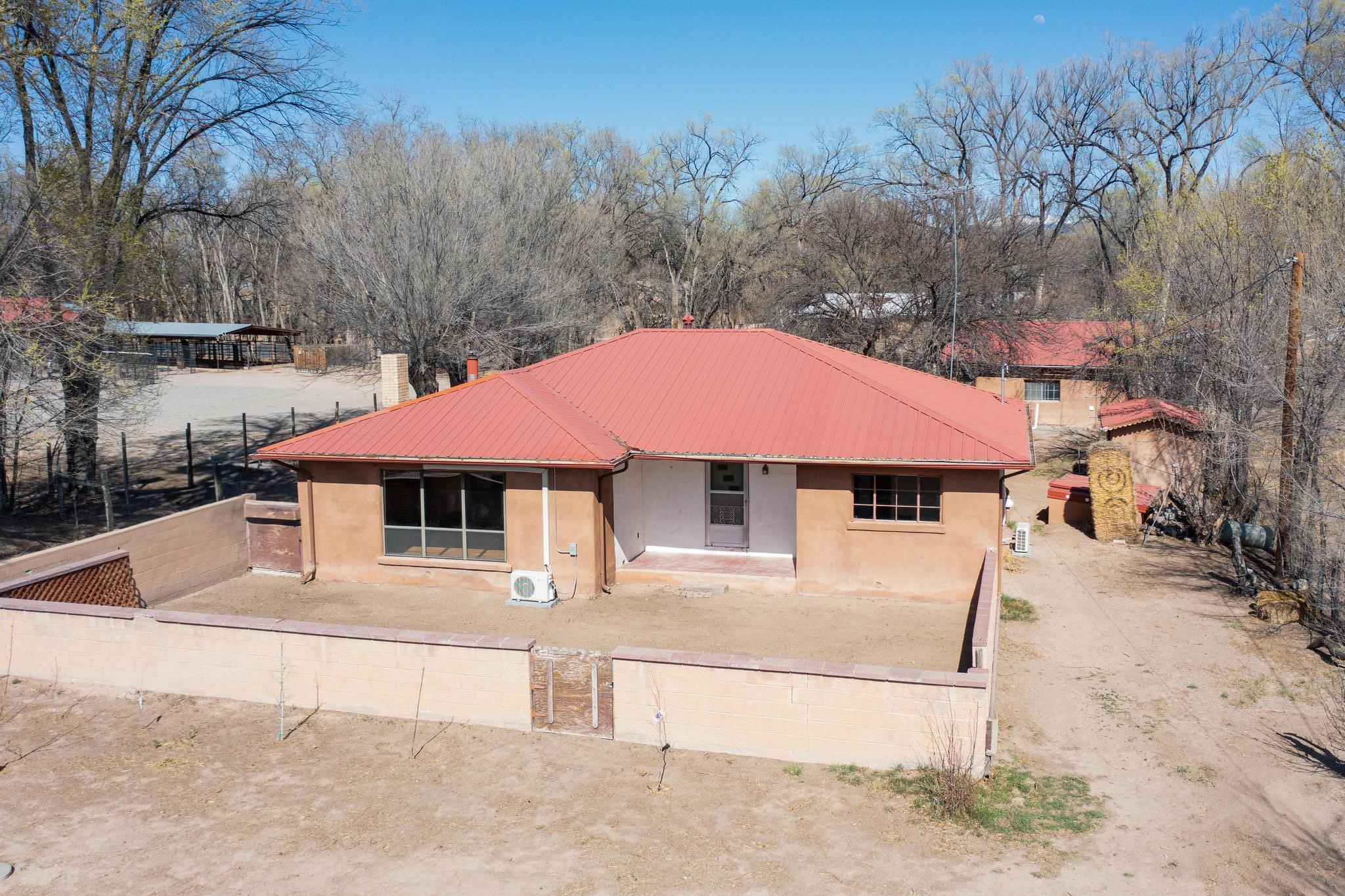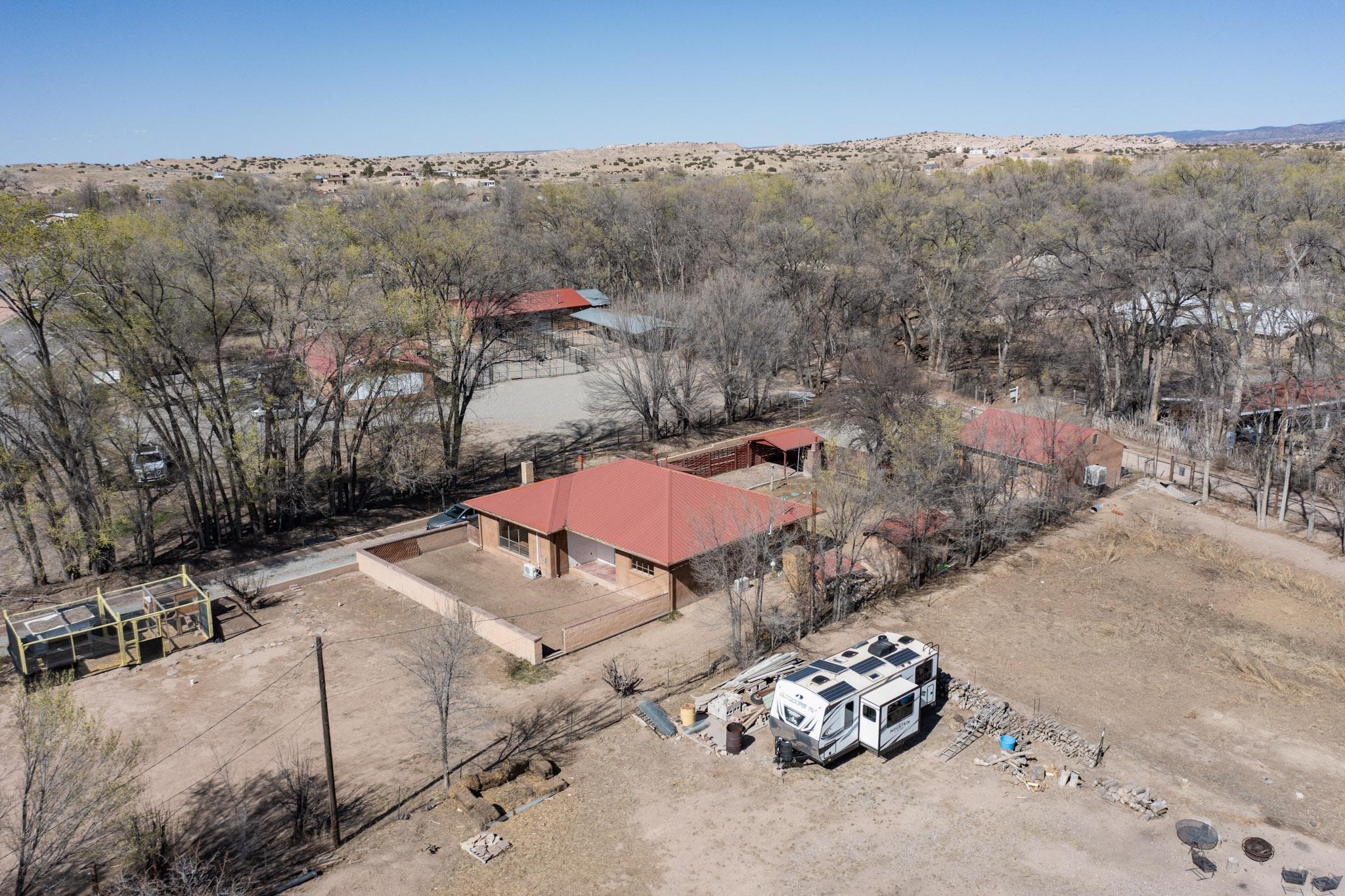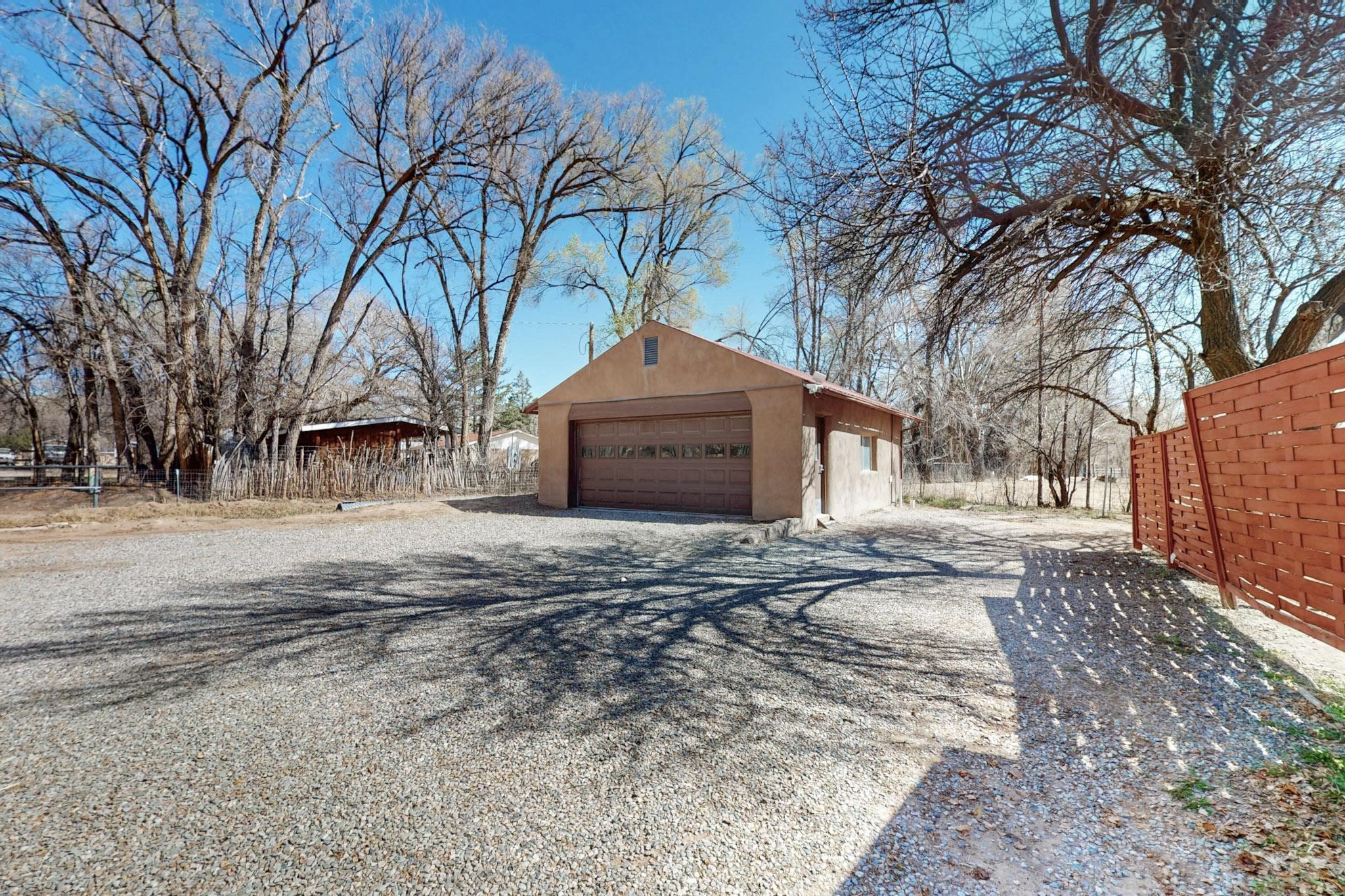 Welcome to 21 Bouquet Lane, a peaceful, gated retreat just north of Santa Fe, attractively priced at $399,000. This 3-bedroom, 1.5-bath home sits on over half an acre of land and blends classic New Mexico character with modern upgrades. Step inside to find restored hardwood floors, fresh interior paint, and updated electrical and plumbing. Two newly installed mini-split systems provide year-round comfort, while a wood-burning stove and fireplace keep things cozy in the winter. The kitchen opens to a living area filled with natural light, and a newly added half bath offers convenience for guests. Outside, the fully fenced property is ideal for those seeking privacy, pets, or gardening potential. A solar-powered gate, tree-lined driveway, and fruit trees create a welcoming landscapeThe detached 2-car garage with mechanic's pit is a dream setup for hobbyists, mechanics, or creatives in need of workshop space. There's an outbuilding for extra storage, a chicken coop for homesteading, and an irrigation system to maintain the grounds. Zoned for both residential and light commercial use, the future has flexibility for business or personal projects. Located just 20 minutes from Santa Fe & Los Alamos, this home is a great commute for work, shopping, and dining. You'll be close enough to the iconic Santa Fe Plaza, rich in history and cultural attractions and close to hiking, biking, and exploring the stunning New Mexico wilderness. Don't miss the chance to make this property your own. Contact us today to schedule your private showing!
