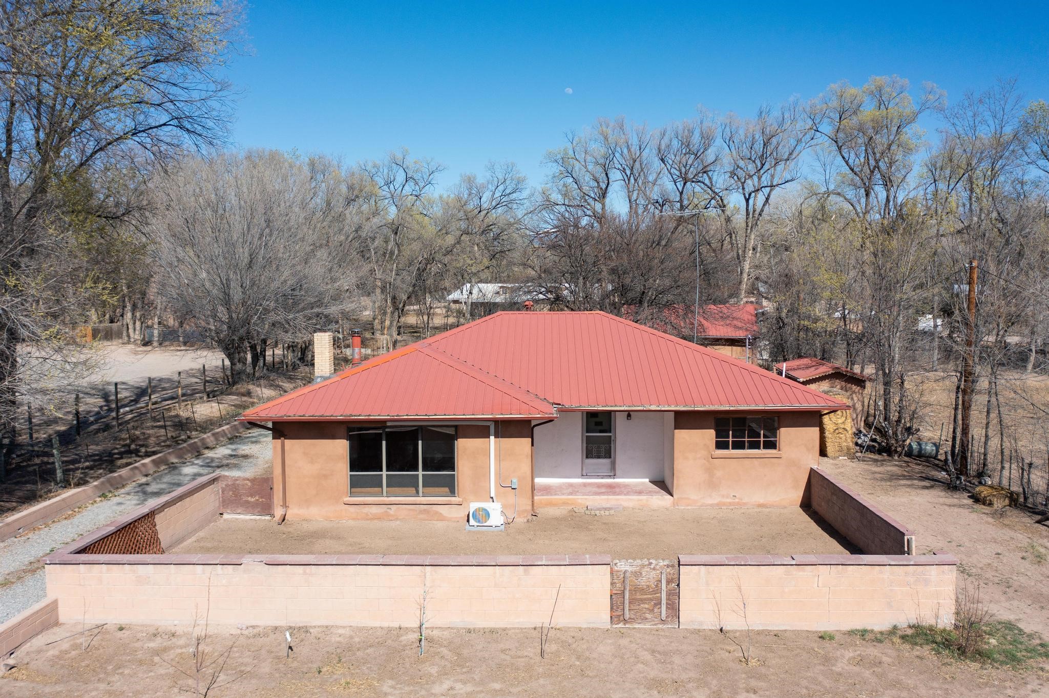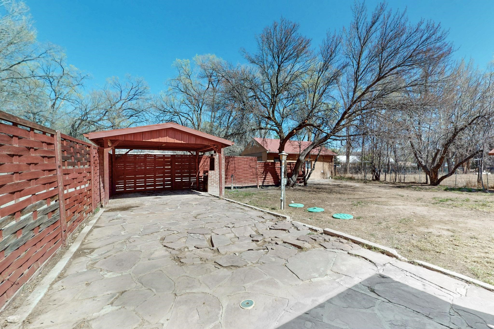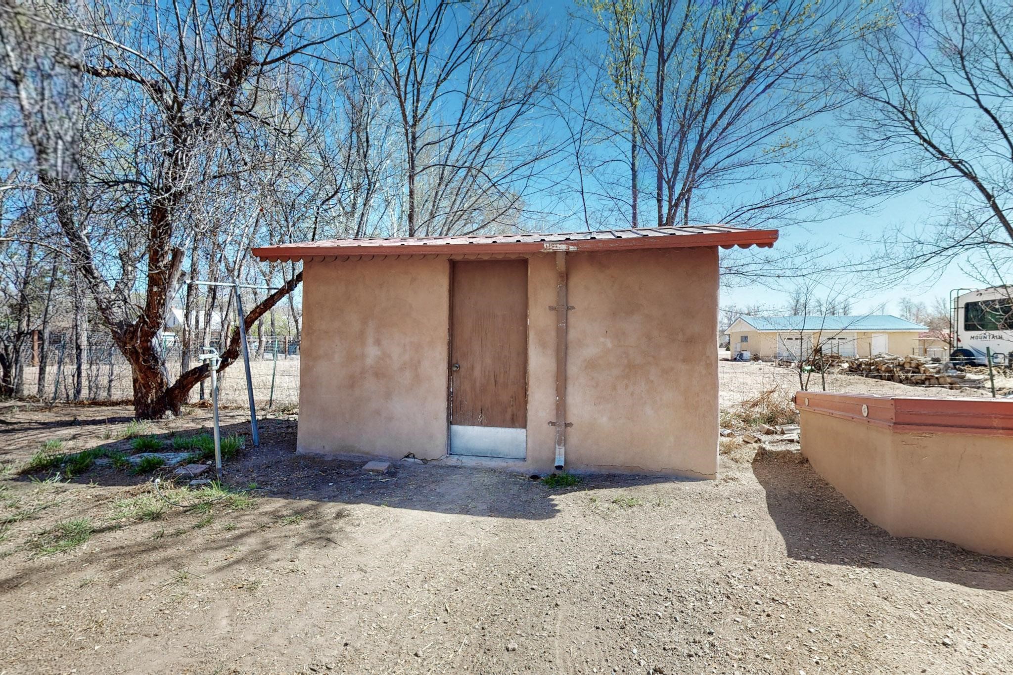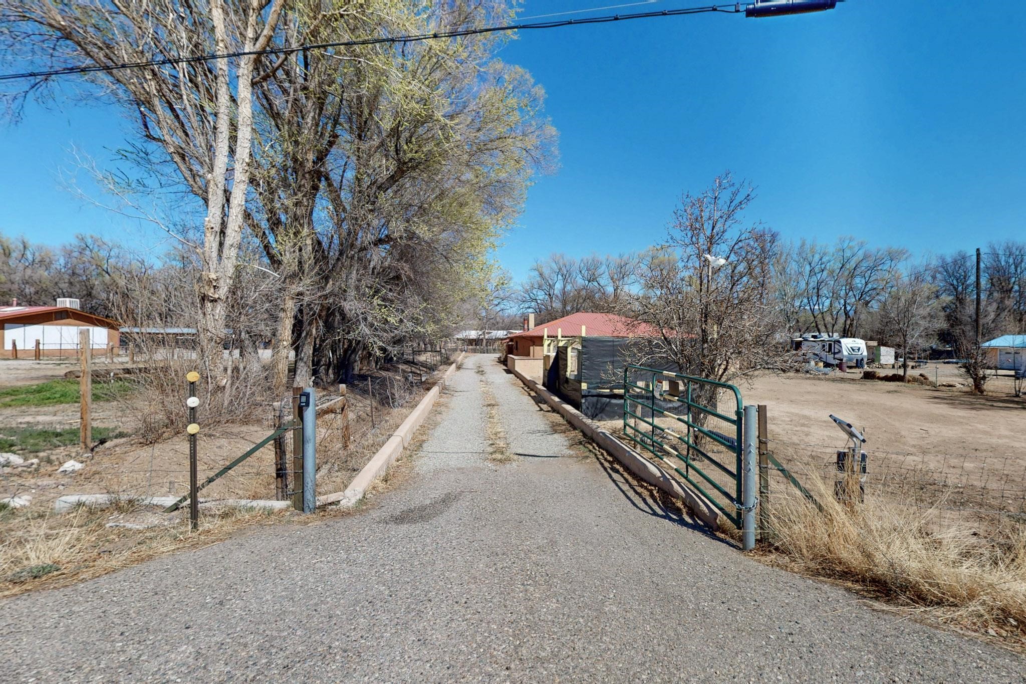 Welcome to 21 Bouquet Lane, a peaceful, gated retreat just north of Santa Fe, attractively priced at $399,000. This 3-bedroom, 1.5-bath home sits on over half an acre of land and blends classic New Mexico character with modern upgrades. Step inside to find restored hardwood floors, fresh interior paint, and updated electrical and plumbing. Two newly installed mini-split systems provide year-round comfort, while a wood-burning stove and fireplace keep things cozy in the winter. The kitchen opens to a living area filled with natural light, and a newly added half bath offers convenience for guests. Outside, the fully fenced property is ideal for those seeking privacy, pets, or gardening potential. A solar-powered gate, tree-lined driveway, and fruit trees create a welcoming landscapeThe detached 2-car garage with mechanic's pit is a dream setup for hobbyists, mechanics, or creatives in need of workshop space. There's an outbuilding for extra storage, a chicken coop for homesteading, and an irrigation system to maintain the grounds. Zoned for both residential and light commercial use, the future has flexibility for business or personal projects. Located just 20 minutes from Santa Fe & Los Alamos, this home is a great commute for work, shopping, and dining. You'll be close enough to the iconic Santa Fe Plaza, rich in history and cultural attractions and close to hiking, biking, and exploring the stunning New Mexico wilderness. Don't miss the chance to make this property your own. Contact us today to schedule your private showing!