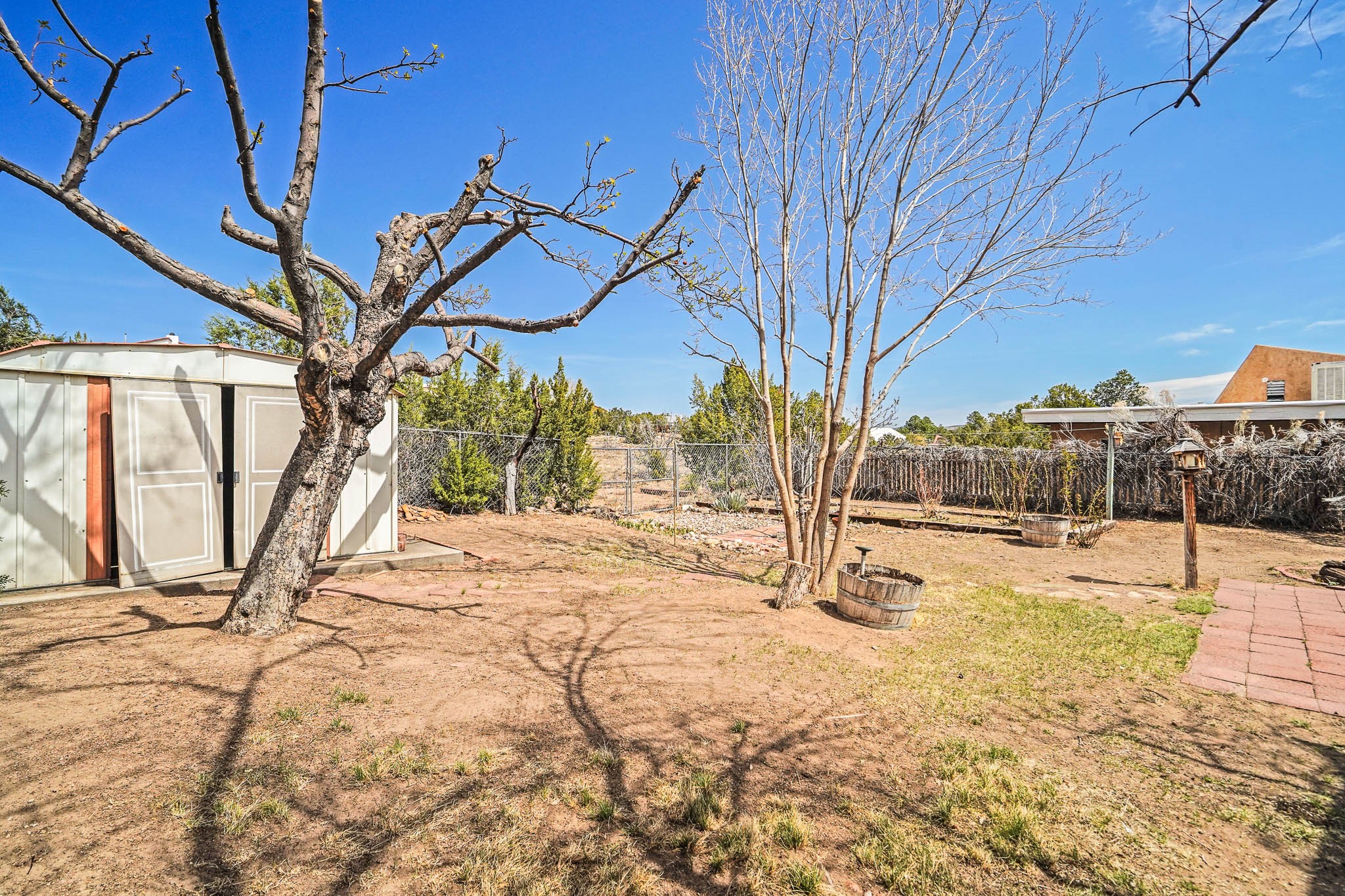Nestled in Cochiti Lake, this charming 2 bed, 1 bath home offers a blend of comfort and convenience. Enjoy the open living space with a cozy fireplace and an updated kitchen featuring Corian counters. The bathroom boasts a refreshed vanity and counter. Outside, mature landscaping with a Ponderosa Pine and Pinon graces the front, while a fully fenced backyard ensures privacy. A 1-car garage adds practicality. Situated near the town hall yet bordering green space, this home offers both accessibility and tranquility. Don't miss out on this opportunity!