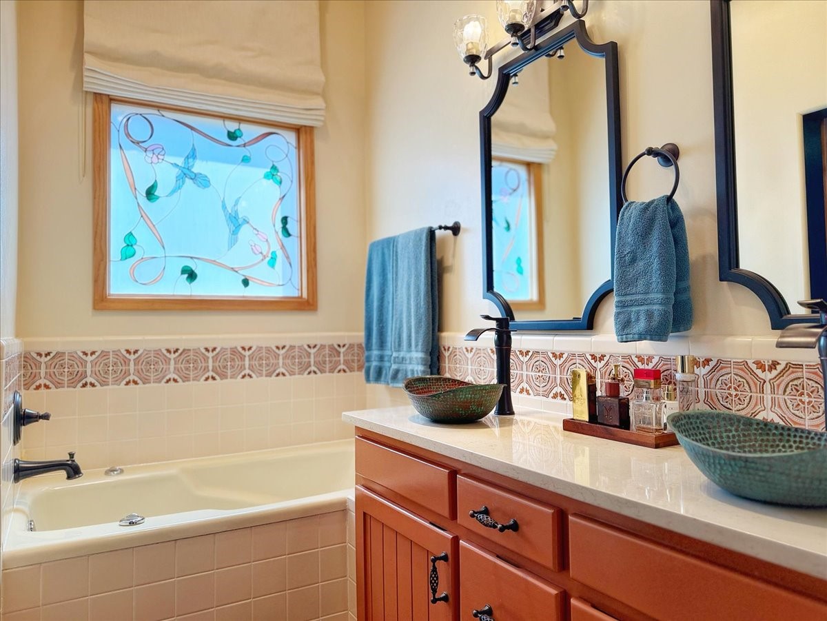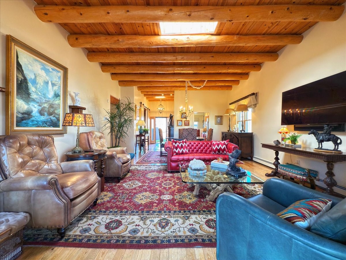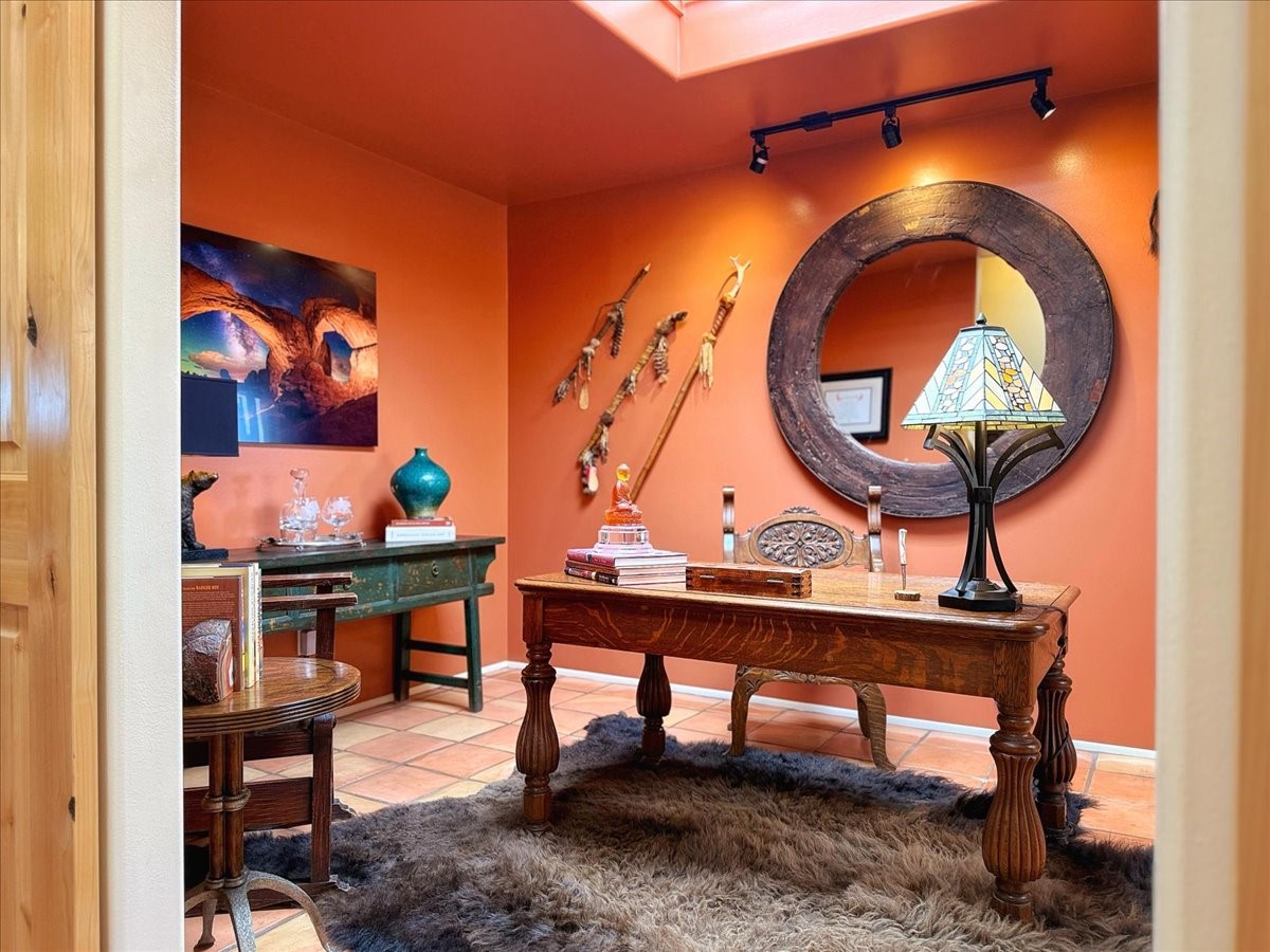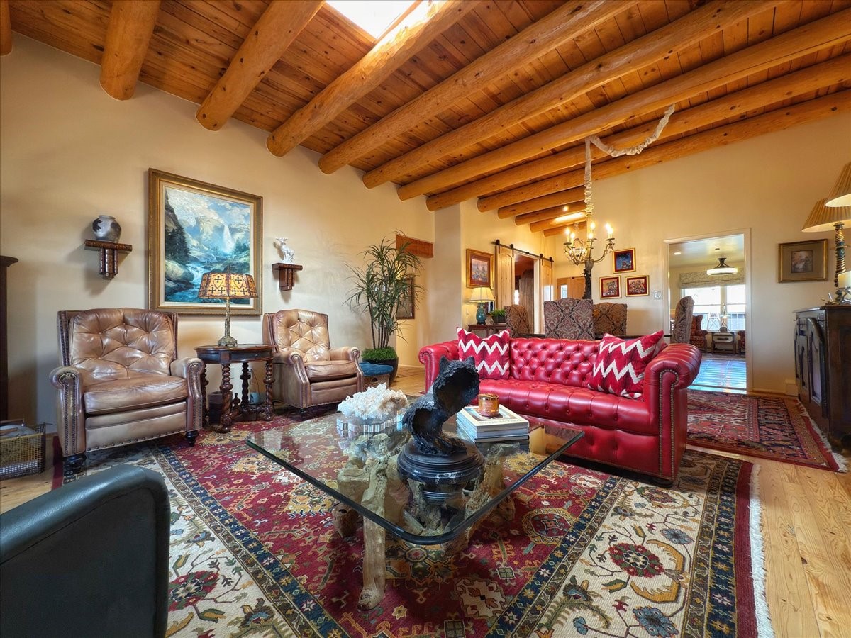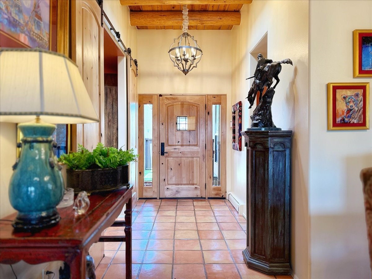No attention to detail has been spared on this lovely, sophisticated home in the highly desirable Park Plaza community. With two bedrooms, a study and two full baths, this home features beautiful Saltillo tile and custom carpeting in the bedrooms, high ceilings with vigas, separate kitchen with breakfast area and an open dining and living room with a gas Kiva fireplace as a focal point. Other amenities include a dual-fuel range/oven with a warming drawer and a Jacuzzi-style tub in the primary bedroom. Enjoy the outdoors with a beautifully landscaped front courtyard with fountain and a generously sized back patio and fenced backyard. All pots/fountains will remain with the property. Both the front and back yard have top-of-the-line and easy-to-maintain artificial turf. In addition, this gracious home offers a good-sized two-car garage with built-in storage. The home has been well-maintained with updated forced heat and air, tankless water heater, well-cared for roof and stucco and updated appliances. Park Plazas is one of Santa Fe's most desirable communities with walking trails, outdoor fitness, tennis courts and more, plus 10 minutes to the historic Plaza and shopping.