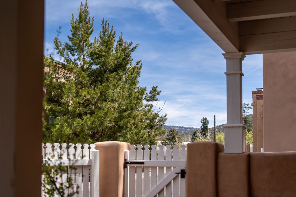 Tucked away in the Manderfield enclave at the top of Canyon Road, this rare, detached condominium offers the privacy of a single-family home located in one of Santa Fe's most coveted neighborhoods.Built by Prull Custom Homes, this home is designed with a timeless blend of comfort and style. The expansive living and dining area features soaring ceilings, wood floors, smooth Venetian plaster walls, and abundant natural light. A fireplace and French doors add warmth and elegance, while seamlessly connecting indoor and outdoor living. The kitchen will satisfy any chef, with beautiful cabinetry, upgraded appliances and an island.The primary suite is a private retreat with its own portal access, a generous walk-in closet, and a luxurious en-suite bath. The second bedroom also has an ensuite bath. There is an oversized powder room for guests. Both the living room and primary suite open to a peaceful, private outdoor space--perfect for a quiet morning coffee or evening unwind. The front portal, partially covered, offers enough space for an outdoor dining table, ideal for entertaining with a view.Additional highlights include an oversized one-car garage with direct entry, in floor radiant heat and forced air with a heat recovery ventilator. There is a mini split system in the living areas and primary bedroom for cooling when needed. This is Santa Fe living at its most refined--serene, stylish, and steeped in Eastside charm.