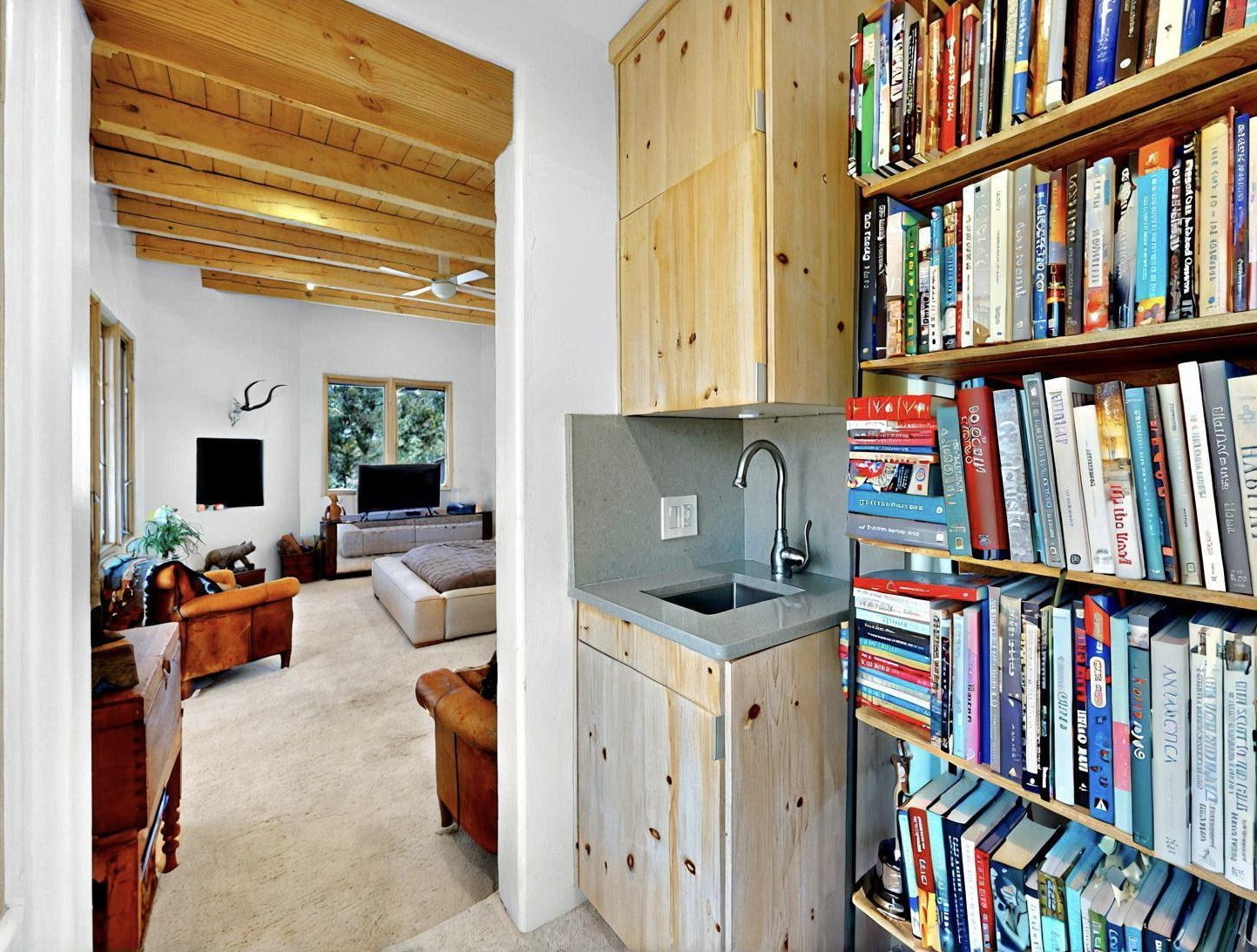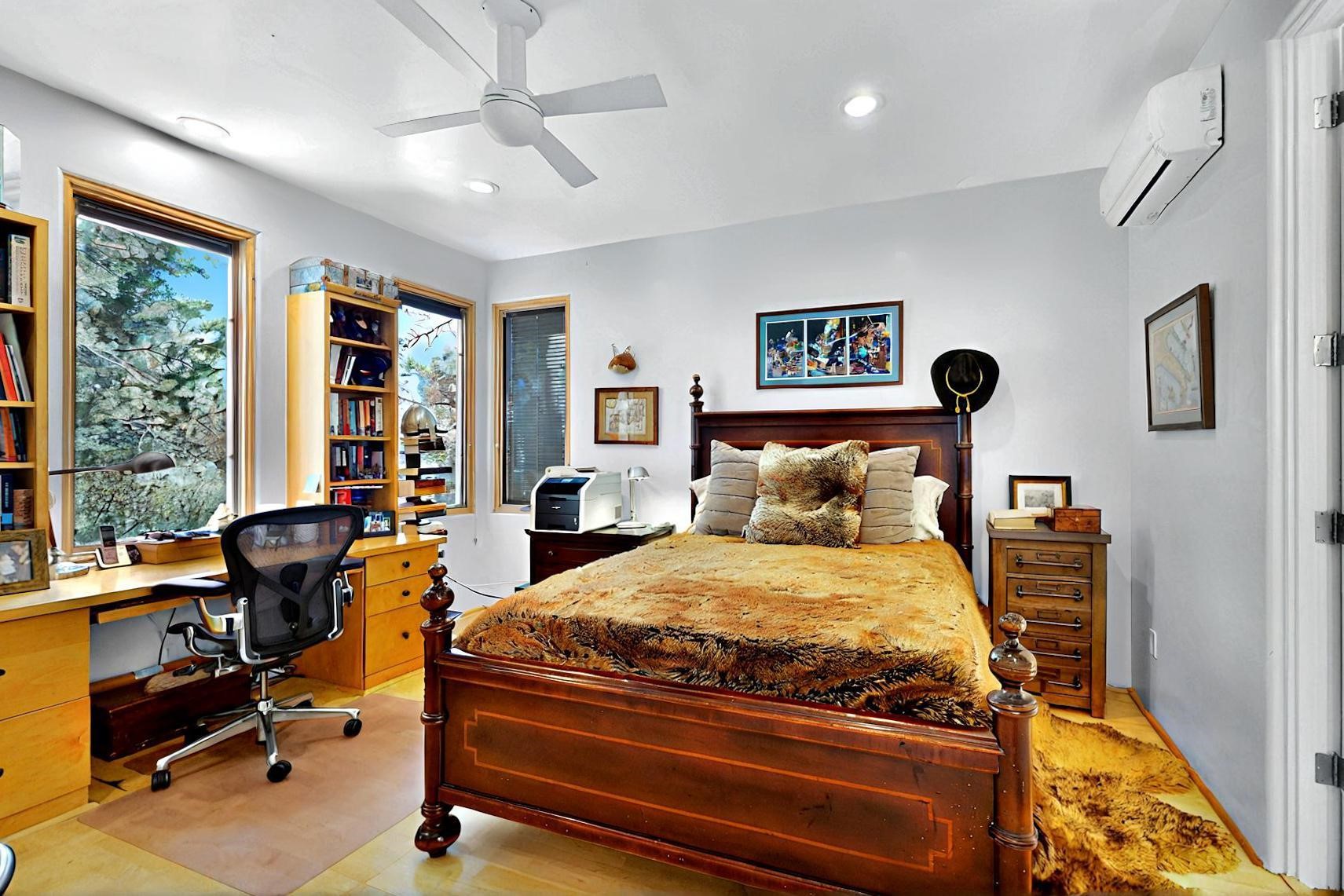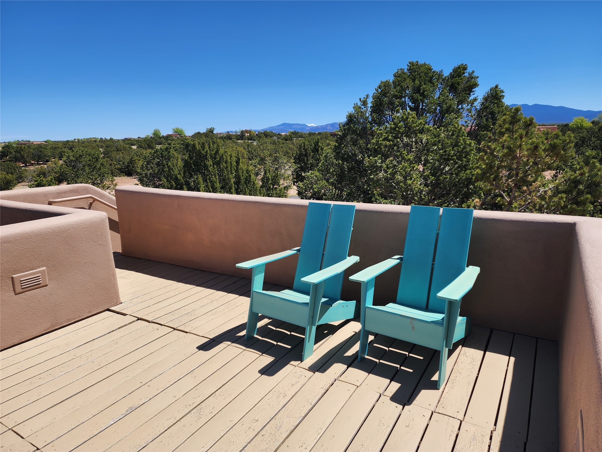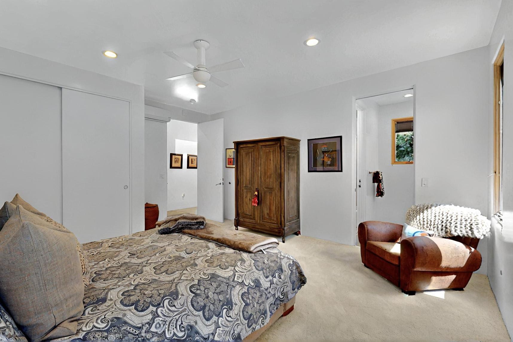 This 4 bedroom, 4 bath home, of which 1 Bedroom and 1 Bath are in an attached guest suite, is perfectly located with proximity to the Las Campanas clubhouse, spa, golf course, and equestrian center. The contemporary style with exposed beams, high ceilings, 4 fireplaces, and open floor plan enhance the spaciousness of the home. The primary suite is spacious and secluded with two separate bathrooms connected by a large shower. The guest spaces are at the other end of the home for privacy. The living area flows to a large portal with fireplace for easy living and entertaining. The portal overlooks a fully enclosed garden space from which to enjoy sunset and mountain views. Enjoy more views and stargaze from the roof deck. The spacious kitchen with pantry is an entertainer's and chef's delight with prep sink, two islands, double ovens, two dishwashers, a 6-burner gas cooktop with griddle, wine cooler, drink refrigerator and a Sub-Zero refrigerator. The attached 2 car heated garage has direct access to the home and guest spaces.