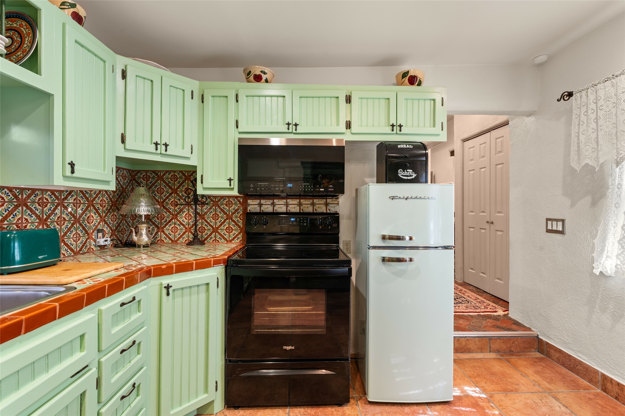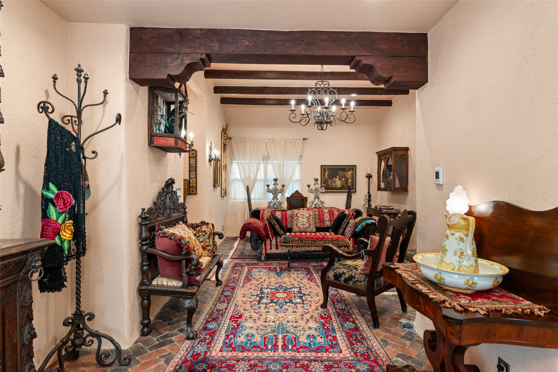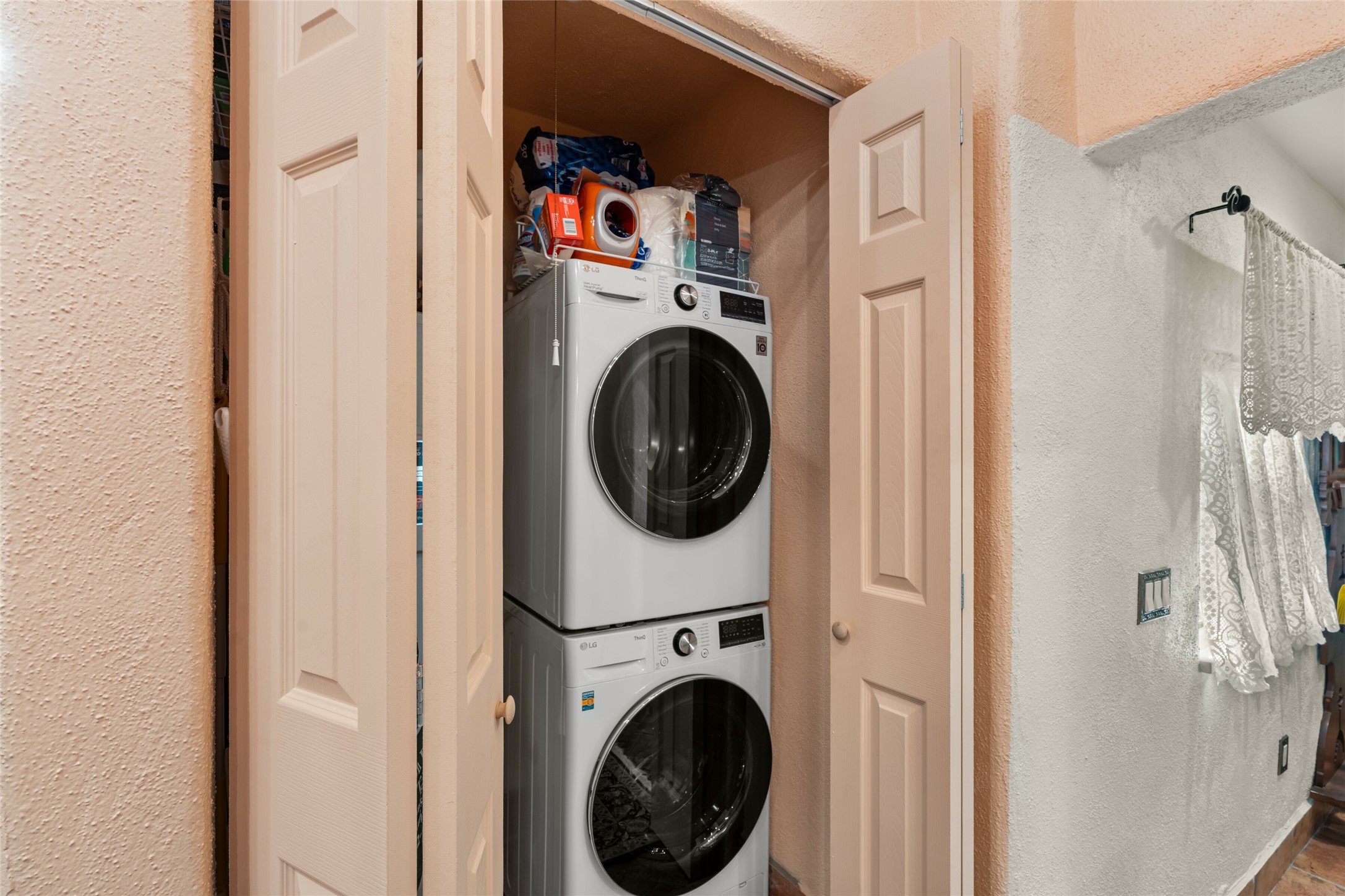 Perfectly redone, perfectly located and perfectly charming, this one bedroom one bath condo is oozing Santa Fe style, while just blocks from the Plaza and steps from Ft. Marcy Park with swimming, walking, playground and pickle ball! One of 3 condos in this little compound on Artist, the casita has had the roof raised with new roof and insulation, not to mention fabulous vigas, beautiful chandeliers and recessed lighting, with upgraded electrical wiring in the house. Most everything has a fresh coat of paint, and the floors are now antique brick except in the kitchen and bath. Both the living room and the bedroom enjoy corner kiva fireplaces, for cozy Santa Fe night ambiance . The kitchen is whimsical and functional, with plenty of storage and a new vintage looking matching fridge, new dishwasher and microwave; and the washer and dryer are also new! There are two outdoor spaces to enjoy - the front entry with it's sunny South face and new 3 ft wall and flower beds, and the shady summer side patio with a new coyote fence and good privacy is the perfect cool summer alfresco dining spot!