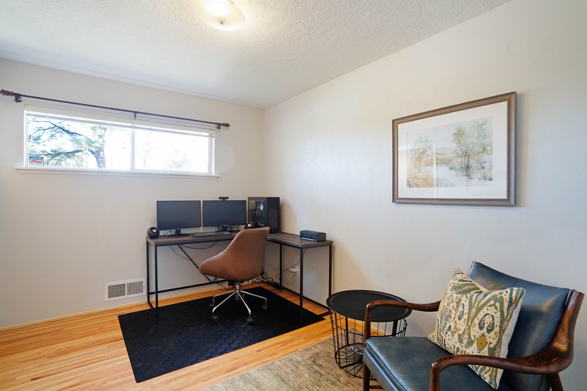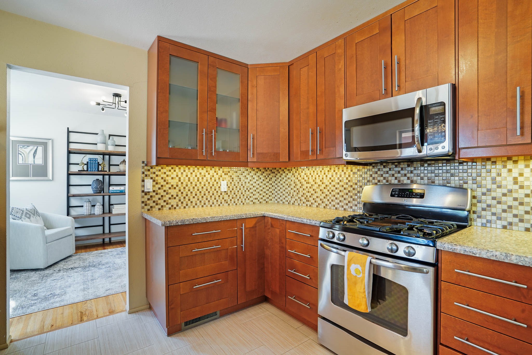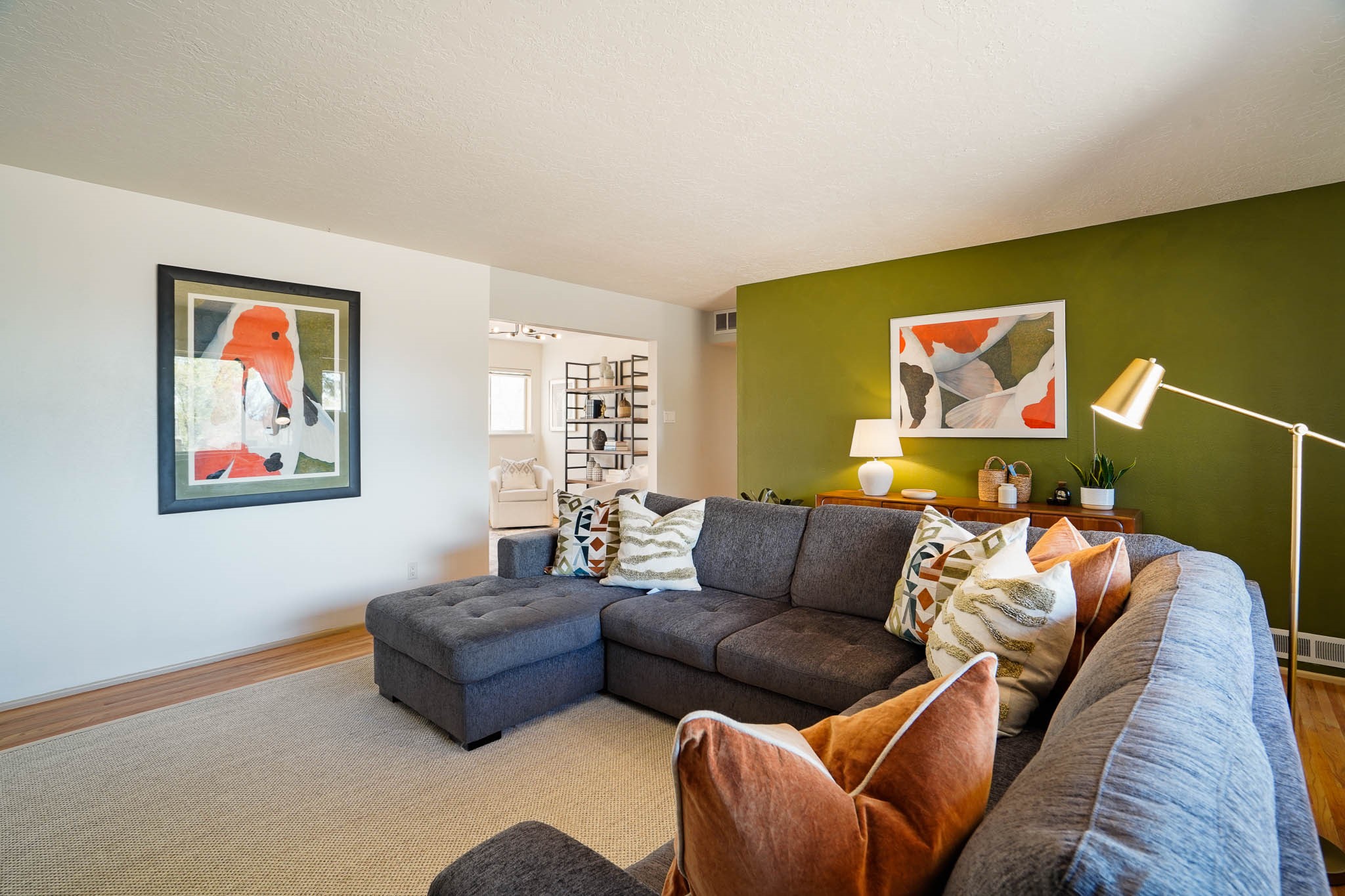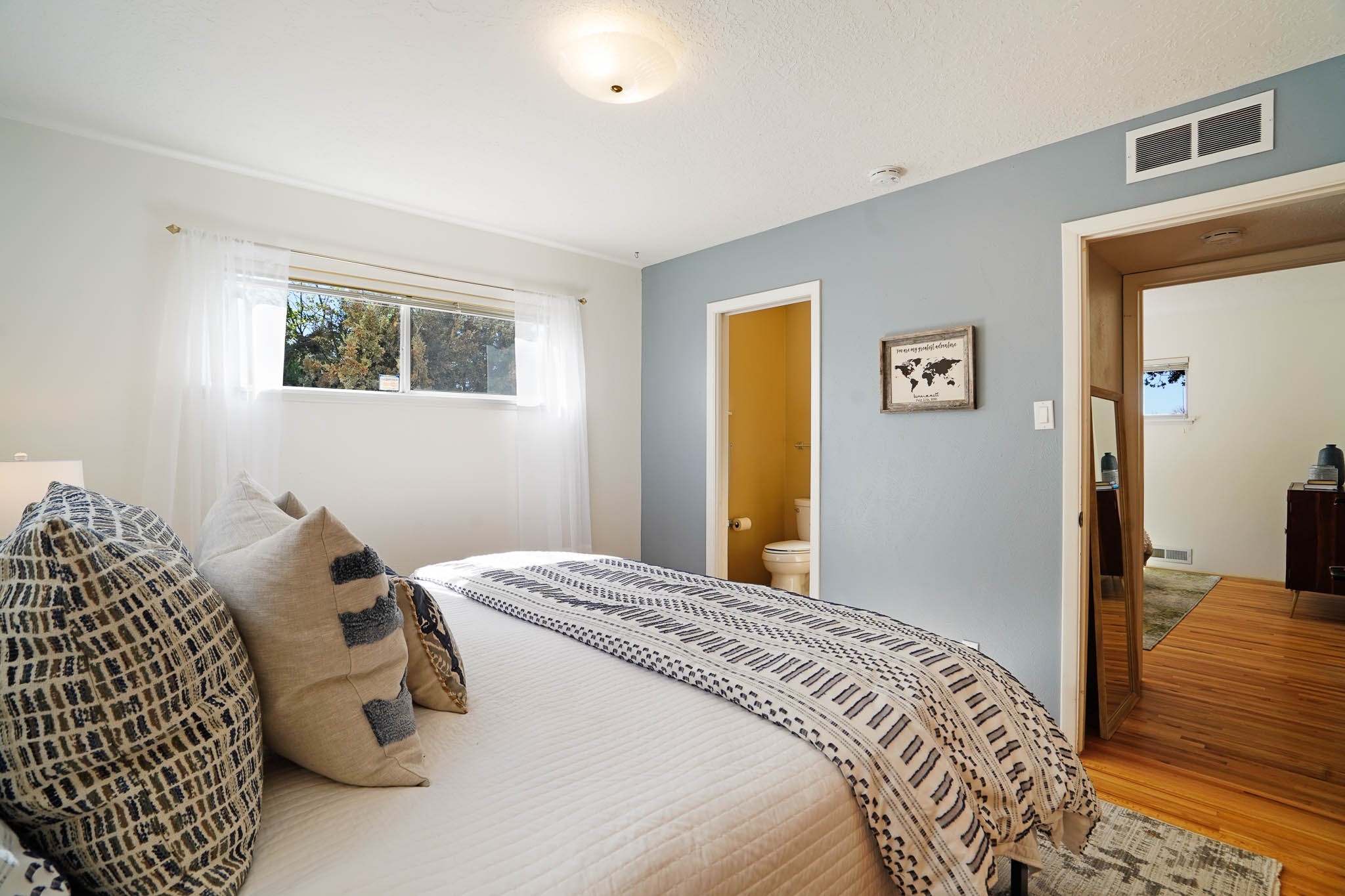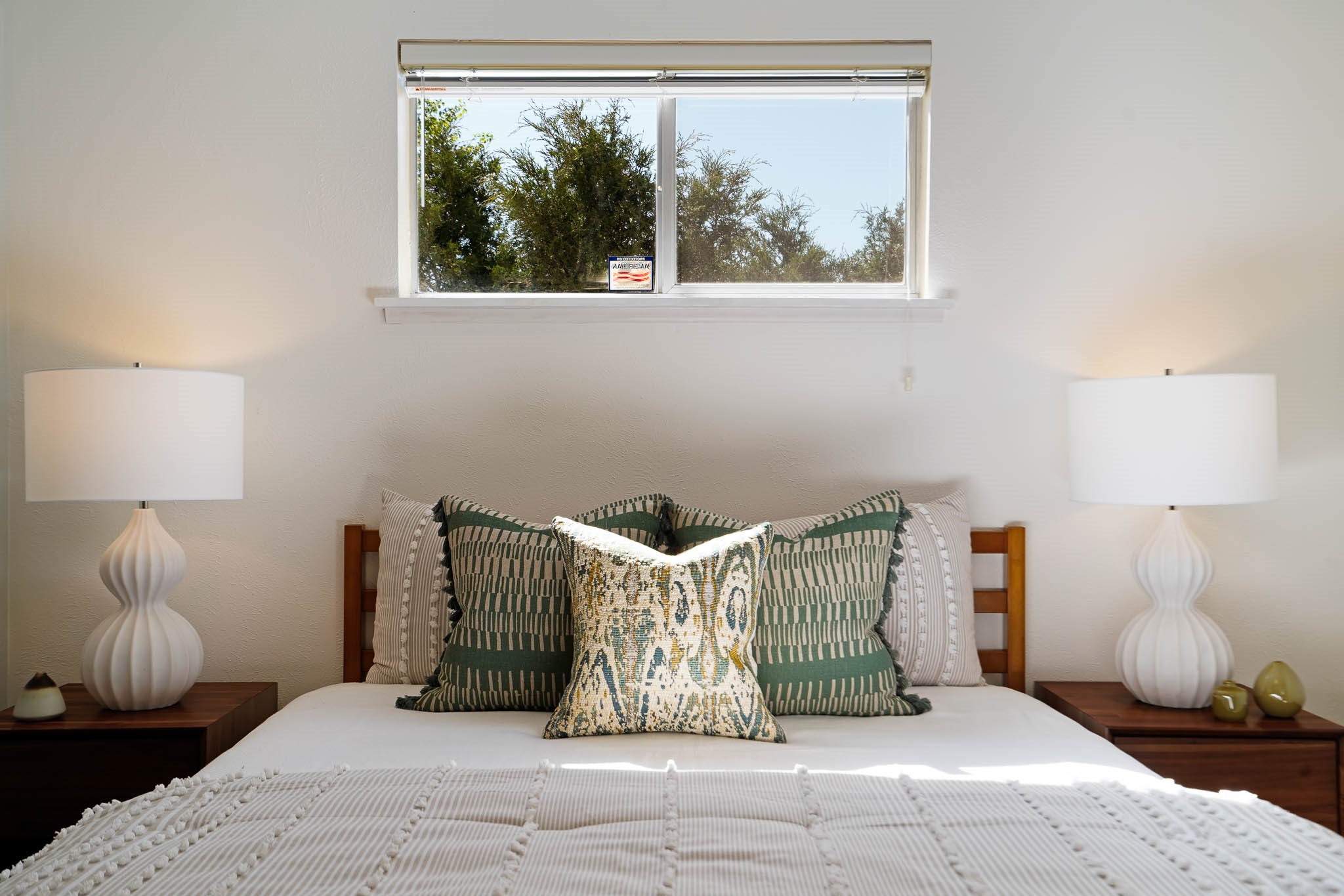 This updated 3-bed Stamm home blends classic charm with modern comfort. Original oak floors run through the living, dining, and bedrooms. The primary suite features a private 3/4 bath, while the other bedrooms share a full bath. Enjoy an open kitchen and cozy den with a wood-burning fireplace, plus direct access to a fully fenced backyard with mountain views. A bricked portal, coyote fencing, and a carport/trailer storage and versatility. Just steps from Casa Solana pool and minutes to the Plaza!