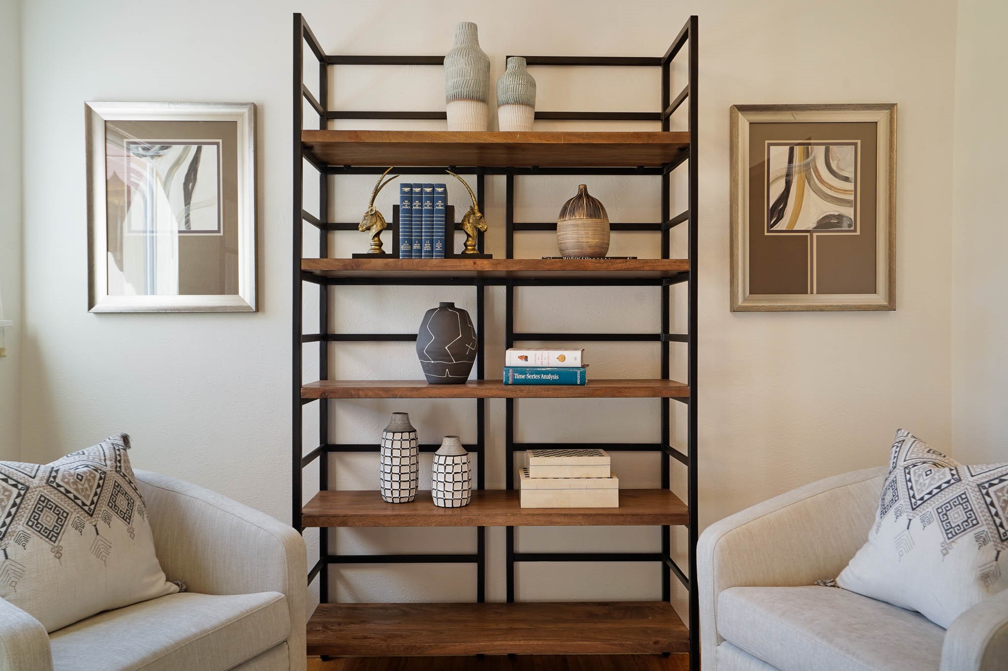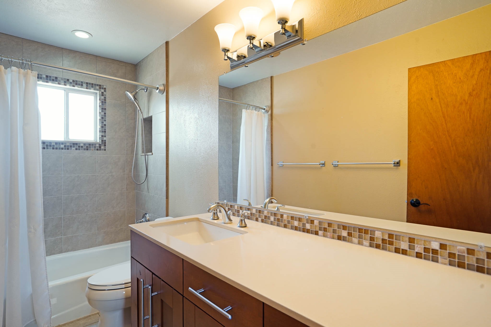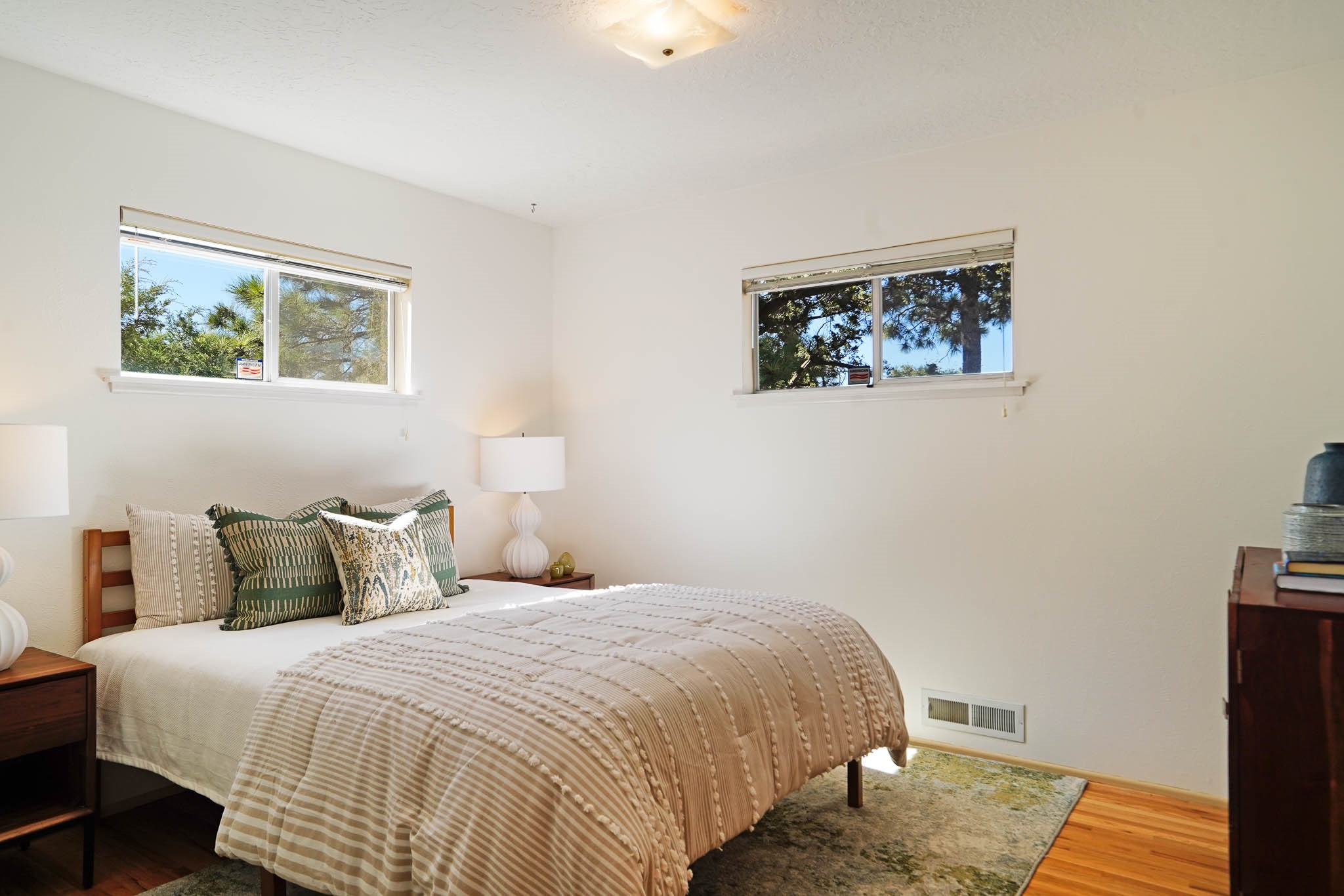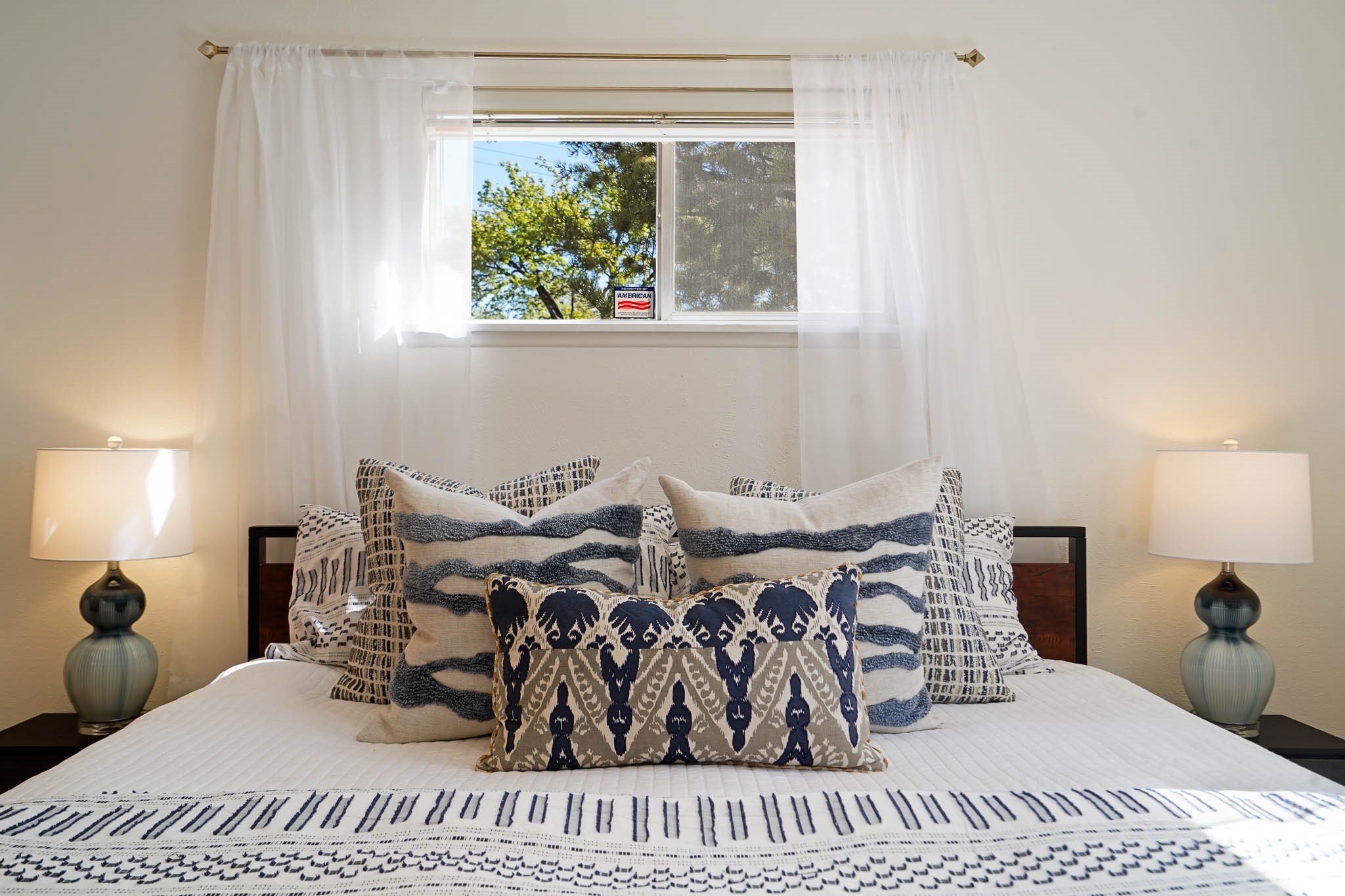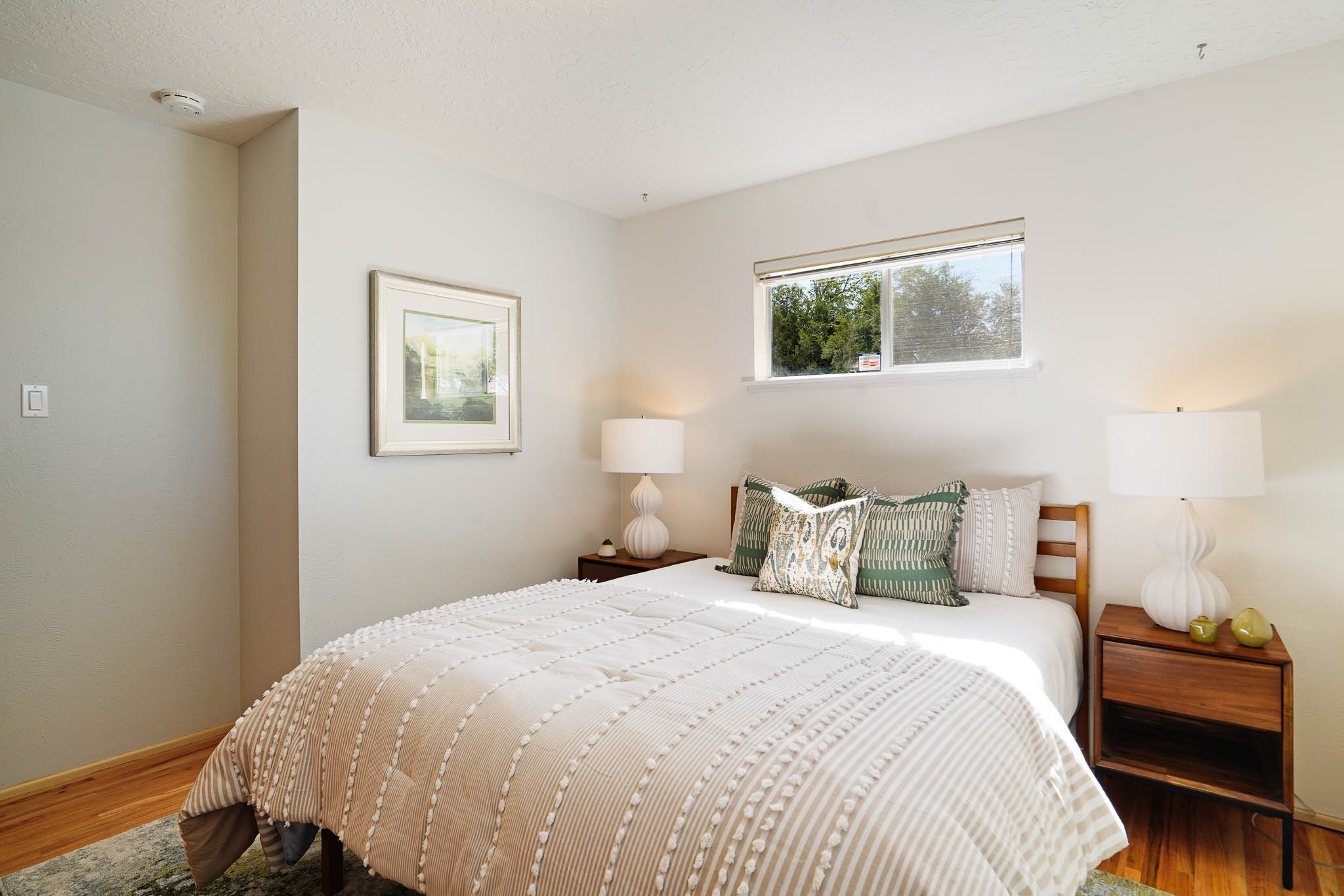 This updated 3-bed Stamm home blends classic charm with modern comfort. Original oak floors run through the living, dining, and bedrooms. The primary suite features a private 3/4 bath, while the other bedrooms share a full bath. Enjoy an open kitchen and cozy den with a wood-burning fireplace, plus direct access to a fully fenced backyard with mountain views. A bricked portal, coyote fencing, and a carport/trailer storage and versatility. Just steps from Casa Solana pool and minutes to the Plaza!