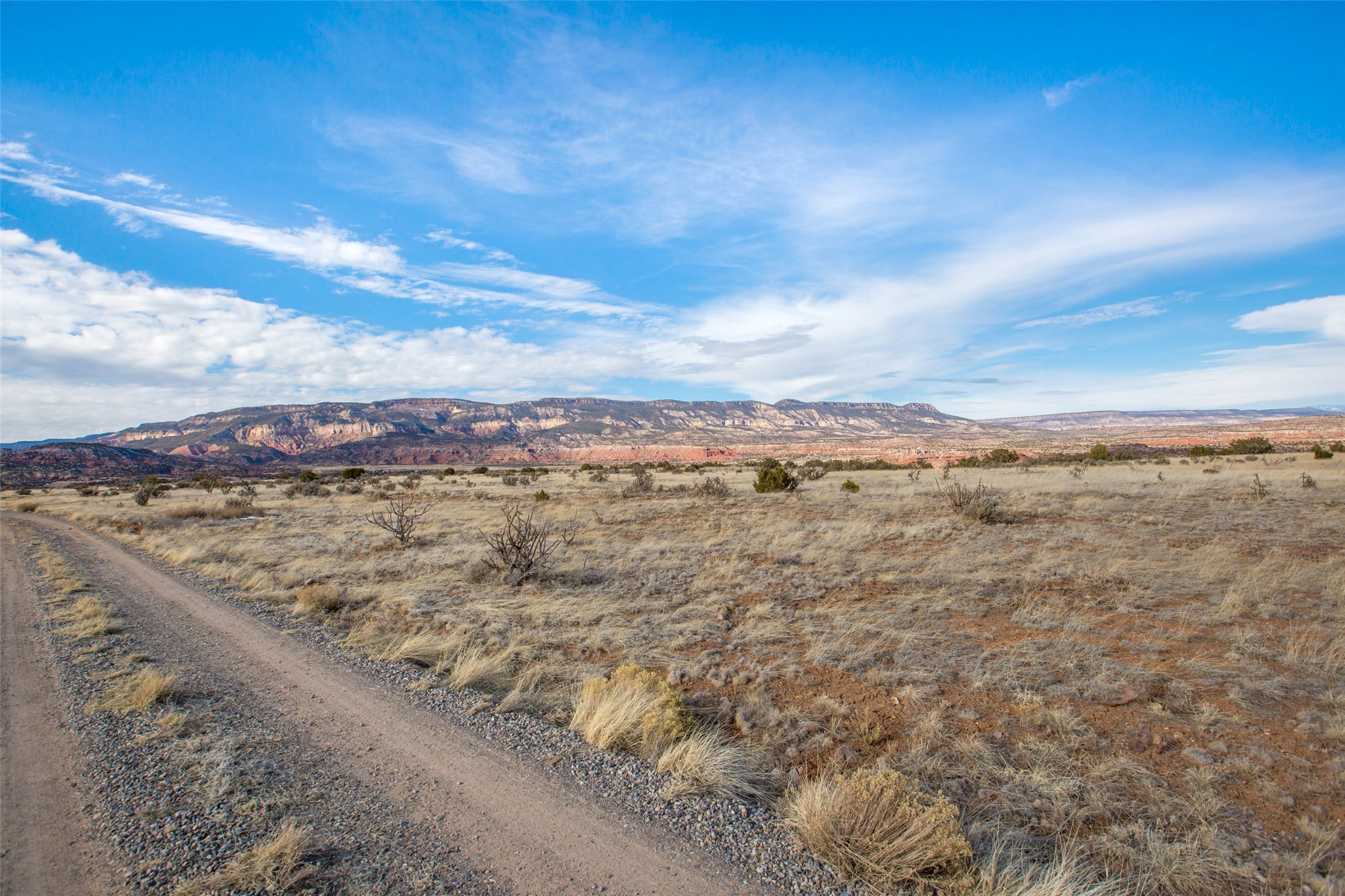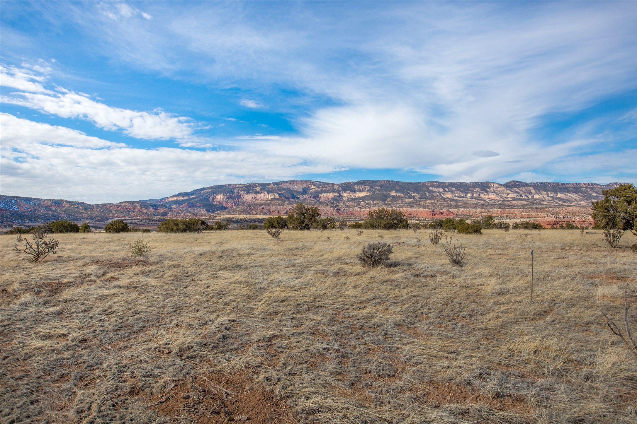 Tucked away in the tranquil landscape of Abiquiu, New Mexico, this extraordinary 67-acre property offers a harmonious blend of natural beauty and modern possibilities. From the moment you pass through the gated entrance, a sense of calm and seclusion surrounds you--welcome to your own private sanctuary. The land unfolds in all directions, showcasing stunning 360-degree vistas that stretch as far as the eye can see.A newly drilled well provides a dependable water source, while the land itself is framed by awe-inspiring landmarks. The Jemez Mountains rise dramatically to the west, their rugged peaks glowing in shades of gold, amber, and crimson under the setting sun. To the east, the iconic silhouette of Pedernal Mountain commands the skyline. Nature lovers and outdoor enthusiasts will find endless adventure just minutes away. Abiquiu Lake offers boating, fishing, and water sports, while the nearby Ghost Ranch invites exploration among its storied red rock canyons and cultural landmarks. Scenic hiking trails thread through the surrounding wilderness, offering quiet solitude and inspiring vistas.This remarkable property also includes a full set of architectural plans by the renowned Craig Hoopes, offering a vision for your ideal home or retreat. Whether your dream is a sleek modern dwelling or a cozy, rustic hideaway, the level mesa provides multiple building sites, each with its own breathtaking view.Though the property feels like a world away, it is part of a well-maintained community, protected by HOA guidelines and covenants that preserve its untouched beauty. Here, the land doesn't just offer space--it offers inspiration. A rare opportunity to shape your future in one of New Mexico's most enchanting settings, this is more than land, it's a canvas upon which to paint the life you've always imagined.
