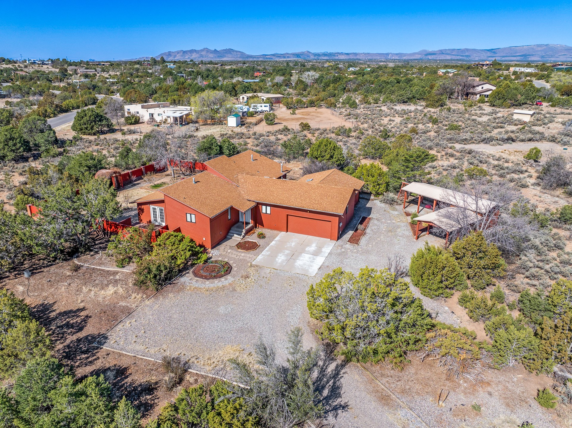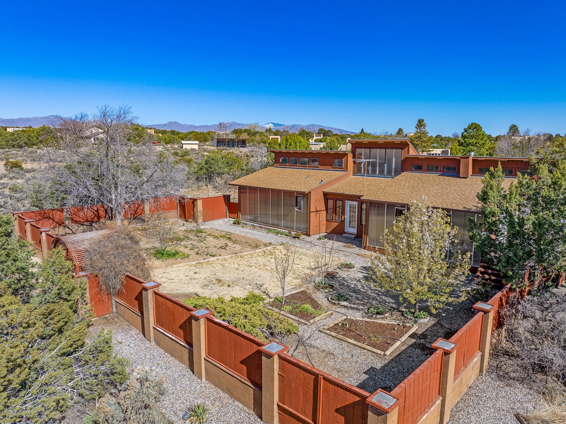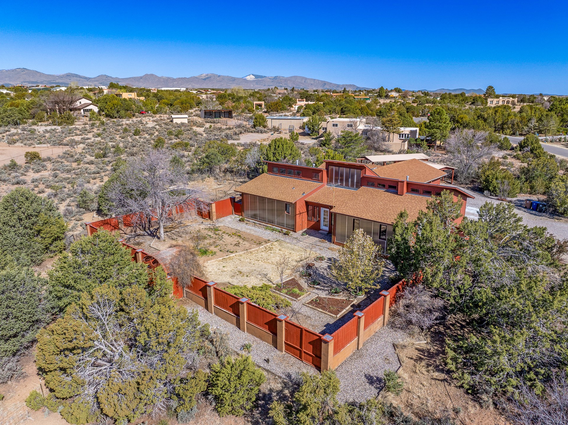 2.07 Acres with Horses Allowed, 2822 Sq Ft Home with 4 Bedrooms and 3 Full Bathrooms, Indoor Hot Tub, Fully-Fenced Yard for Pets, Koi Pond, Gardens and Fruit Trees, 2 Car Garage + Bonus Carport, Views of the Sangre de Cristo Mountains, Passive Solar Heating, and More! Welcome to 191 Piedra Loop! This beautiful 4 bedroom home sits on 2.07 fenced acres in La Senda and provides you with generous living space for you and your pets. As you enter the home and walk towards the main living area to the left, you'll notice the lofted ceilings and great woodwork that awaits you. The large, formal dining room opens to the kitchen, which features barstool seating, stainless steel appliances, and generous cabinet space. The kitchen opens to the deck, where you can enjoy beautiful sunrise and sunset views of the Sangre de Cristo mountains while sipping on a morning cup of coffee or an evening glass of wine. The living room features tongue-and-groove ceiling, with a south-facing trombe wall that provides great passive solar heating in the winter, keeping your utility bills low. The primary suite also enjoys the warmth of the trombe wall, and it includes a full bathroom and walk-in closet for added convenience. One full guest bathroom and one large guest bedroom are also located on the south part of the house, and the bedroom includes a bonus loft space for added storage and fun. The hot tub room is sure to be a crowd pleaser, and it also includes a lofted area for green plants or storage. The north side of the house includes a second living area that leads to two additional guest bedrooms and a full bathroom, perfect for additional privacy or for multi-generational living. An oversized, insulated two-car garage with a custom garage door and built-in storage is located off this second living area, and you will also find a bonus carport just a short walk away. The carport includes a bonus storage area for your toys. Outside, you will find a fully-fenced back yard with gardens, fruit trees, and grass, all protected from deer by the tall fences. This is a perfect area for satisfying the gardener within you or just enjoying the peace and quiet of your beautifully landscaped property. For added tranquility, you will find a koi pond, with both koi and goldfish currently thriving. The house sits on a large crawl-space with a concrete floor. The crawlspace houses the mechanical equipment to maximize the square footage of the home and provide a great working environment for equipment and infrastructure upgrades. Schedule your showing today before this one is gone!