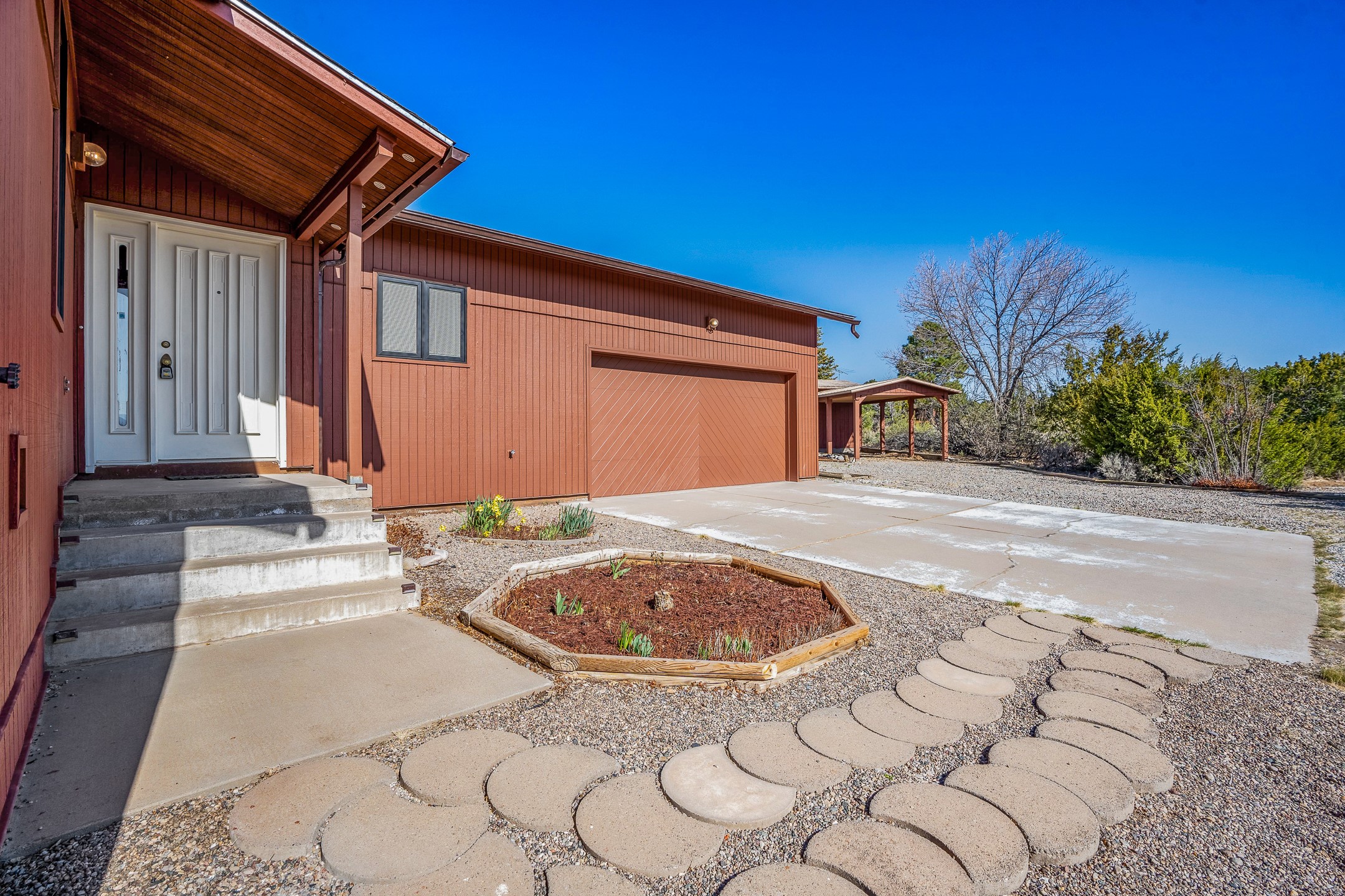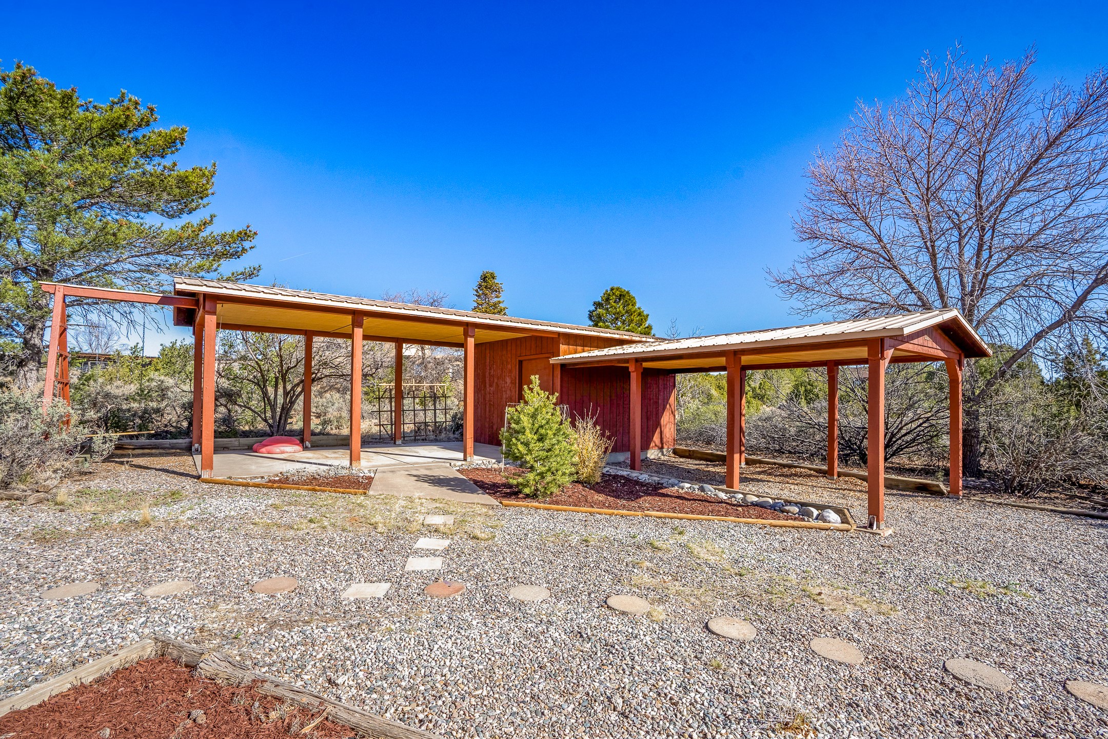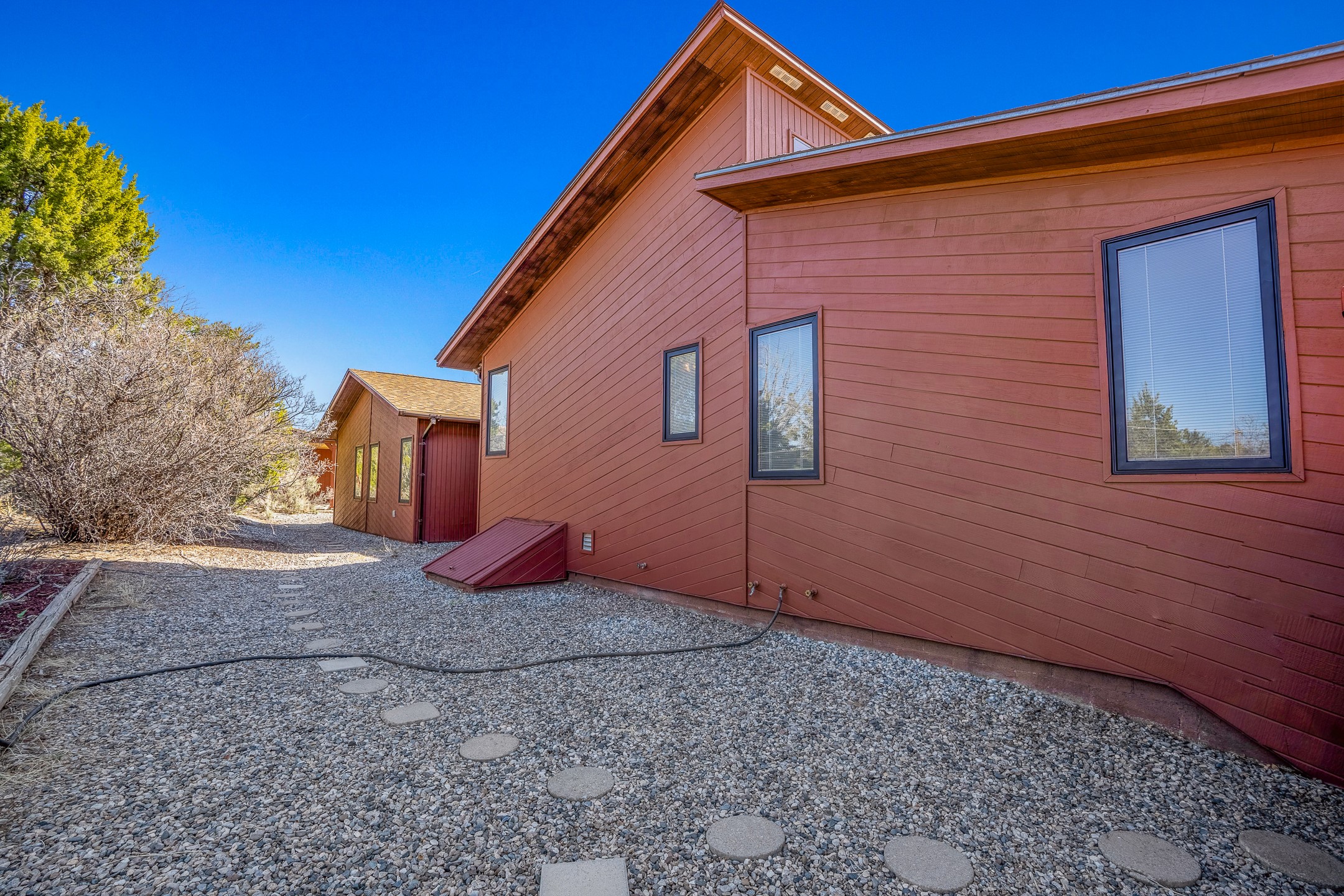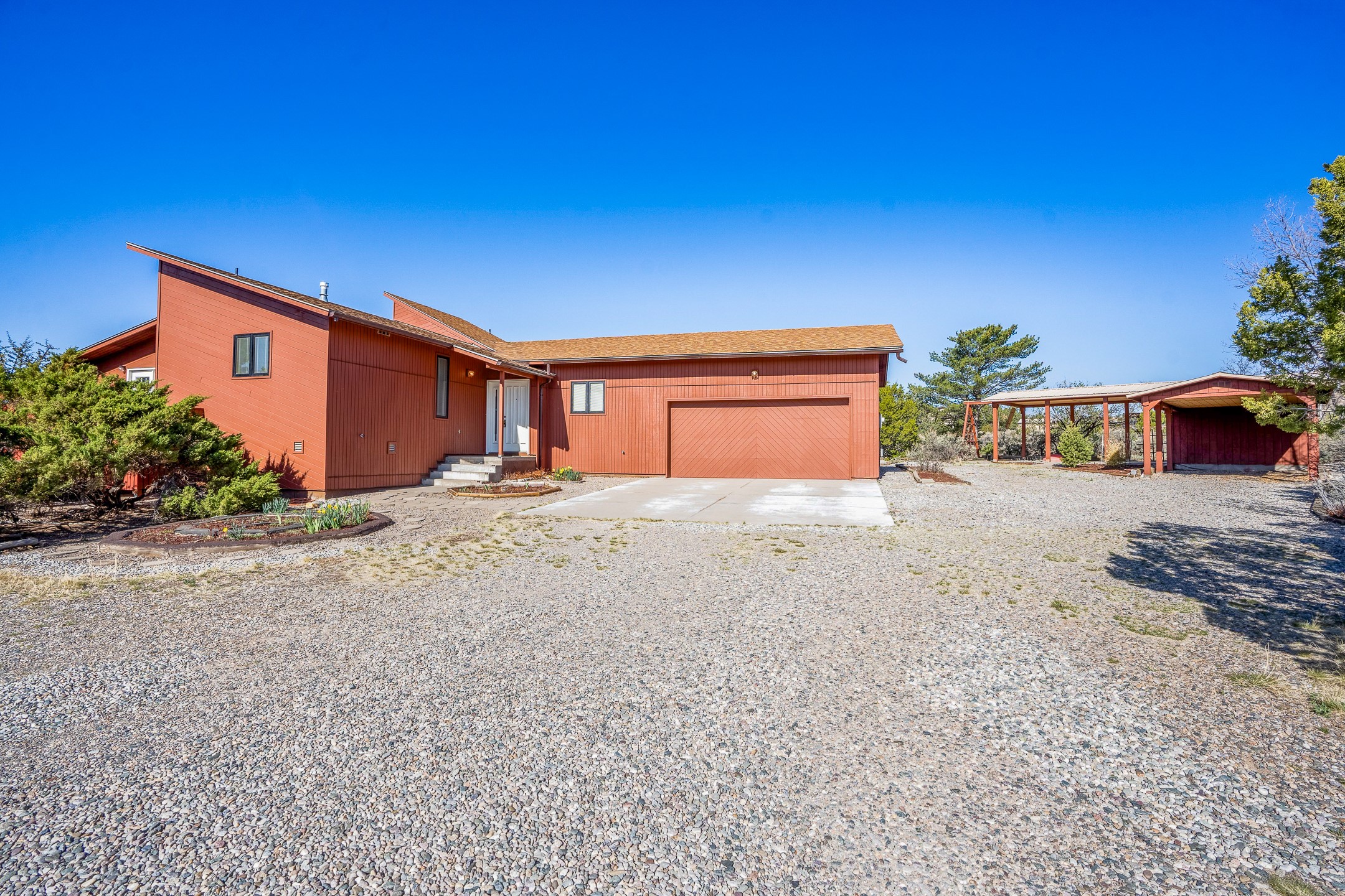 2.07 Acres with Horses Allowed, 2822 Sq Ft Home with 4 Bedrooms and 3 Full Bathrooms, Indoor Hot Tub, Fully-Fenced Yard for Pets, Koi Pond, Gardens and Fruit Trees, 2 Car Garage + Bonus Carport, Views of the Sangre de Cristo Mountains, Passive Solar Heating, and More! Welcome to 191 Piedra Loop! This beautiful 4 bedroom home sits on 2.07 fenced acres in La Senda and provides you with generous living space for you and your pets. As you enter the home and walk towards the main living area to the left, you'll notice the lofted ceilings and great woodwork that awaits you. The large, formal dining room opens to the kitchen, which features barstool seating, stainless steel appliances, and generous cabinet space. The kitchen opens to the deck, where you can enjoy beautiful sunrise and sunset views of the Sangre de Cristo mountains while sipping on a morning cup of coffee or an evening glass of wine. The living room features tongue-and-groove ceiling, with a south-facing trombe wall that provides great passive solar heating in the winter, keeping your utility bills low. The primary suite also enjoys the warmth of the trombe wall, and it includes a full bathroom and walk-in closet for added convenience. One full guest bathroom and one large guest bedroom are also located on the south part of the house, and the bedroom includes a bonus loft space for added storage and fun. The hot tub room is sure to be a crowd pleaser, and it also includes a lofted area for green plants or storage. The north side of the house includes a second living area that leads to two additional guest bedrooms and a full bathroom, perfect for additional privacy or for multi-generational living. An oversized, insulated two-car garage with a custom garage door and built-in storage is located off this second living area, and you will also find a bonus carport just a short walk away. The carport includes a bonus storage area for your toys. Outside, you will find a fully-fenced back yard with gardens, fruit trees, and grass, all protected from deer by the tall fences. This is a perfect area for satisfying the gardener within you or just enjoying the peace and quiet of your beautifully landscaped property. For added tranquility, you will find a koi pond, with both koi and goldfish currently thriving. The house sits on a large crawl-space with a concrete floor. The crawlspace houses the mechanical equipment to maximize the square footage of the home and provide a great working environment for equipment and infrastructure upgrades. Schedule your showing today before this one is gone!