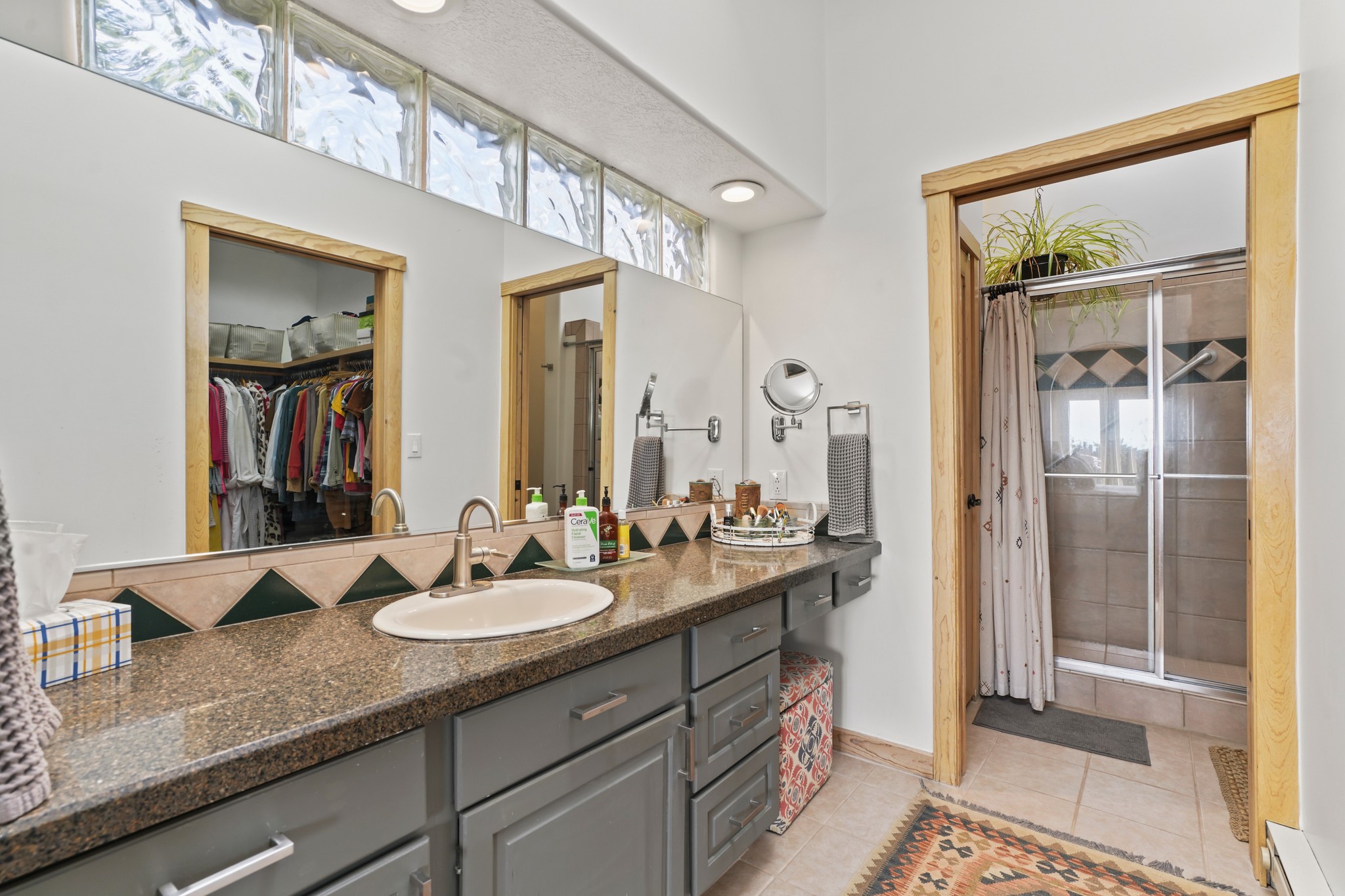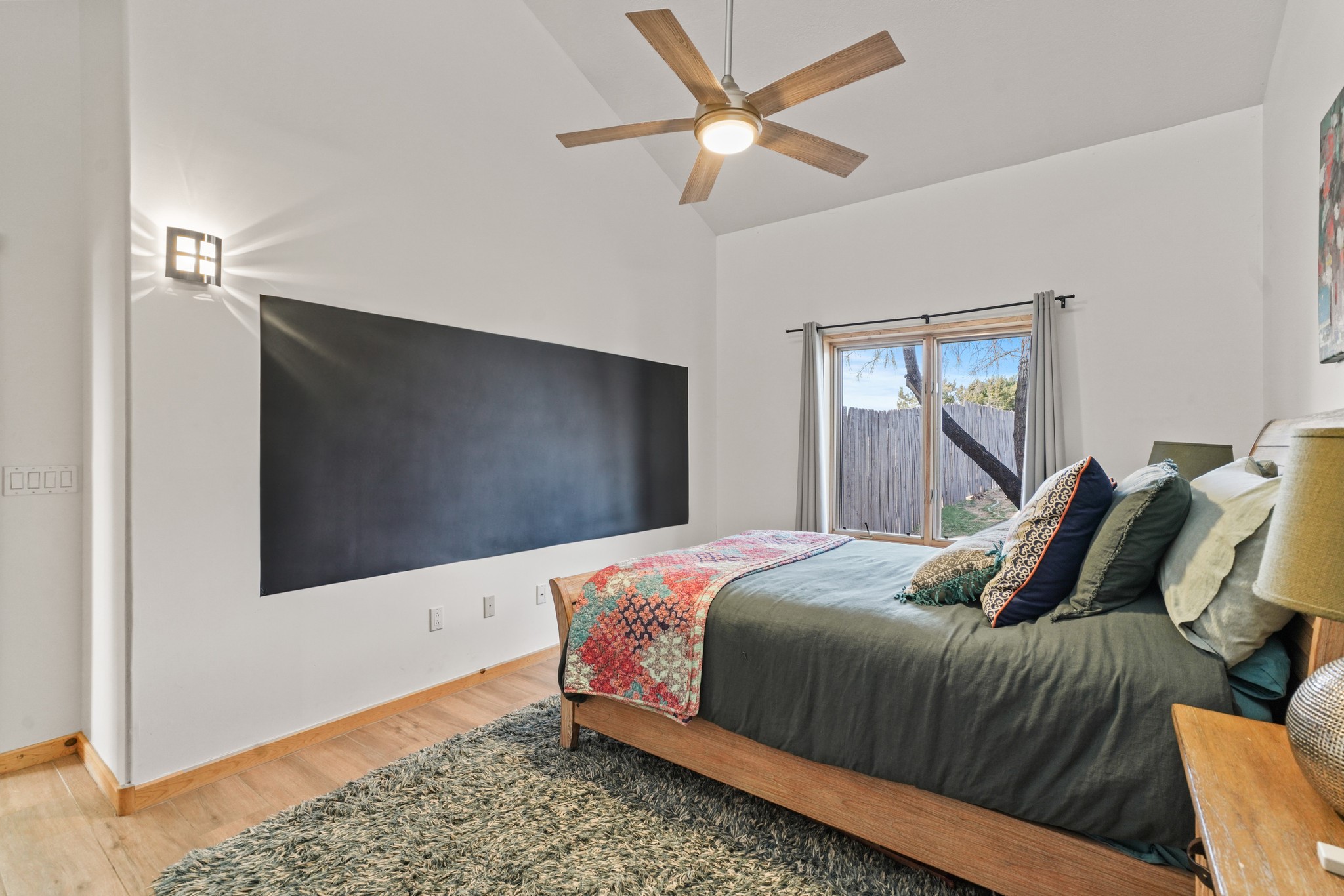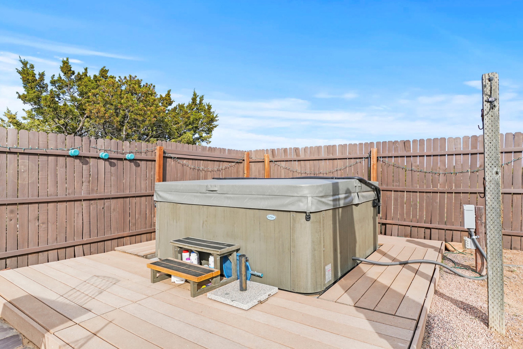 Welcome to this attractive passive solar home at 5 Puerto Road in the popular community of Eldorado, which is just a 15-minute drive south of the Santa Fe city limits. Located off of a quiet cul-de-sac and bordered by a spacious greenbelt, this gorgeous light-filled home on 2 acres is the one you've been waiting for.Upon entry you will notice the distinctive and appealing open floor plan design as the spacious kitchen opens to the living and dining rooms. You'll also enjoy the high ceilings with vigas in this single level home with beautifully-tiled flooring and no interior steps. The primary suite features clerestory windows, a walk-in closet, a separate, designated work or exercise area and direct access to the private outdoor hot tub! Additional and beneficial features are the newer photovoltaic solar panel system that significantly reduces the electric bill, trombe walls, a kiva fireplace and the oversized 2-car garage. The southwestern views of the Jemez, Ortiz and Sandia Mountains are magnificent. For the outdoor enthusiasts, Eldorado contains the best walking/biking paths and boasts one of the best outdoor swimming pools in Santa Fe County.