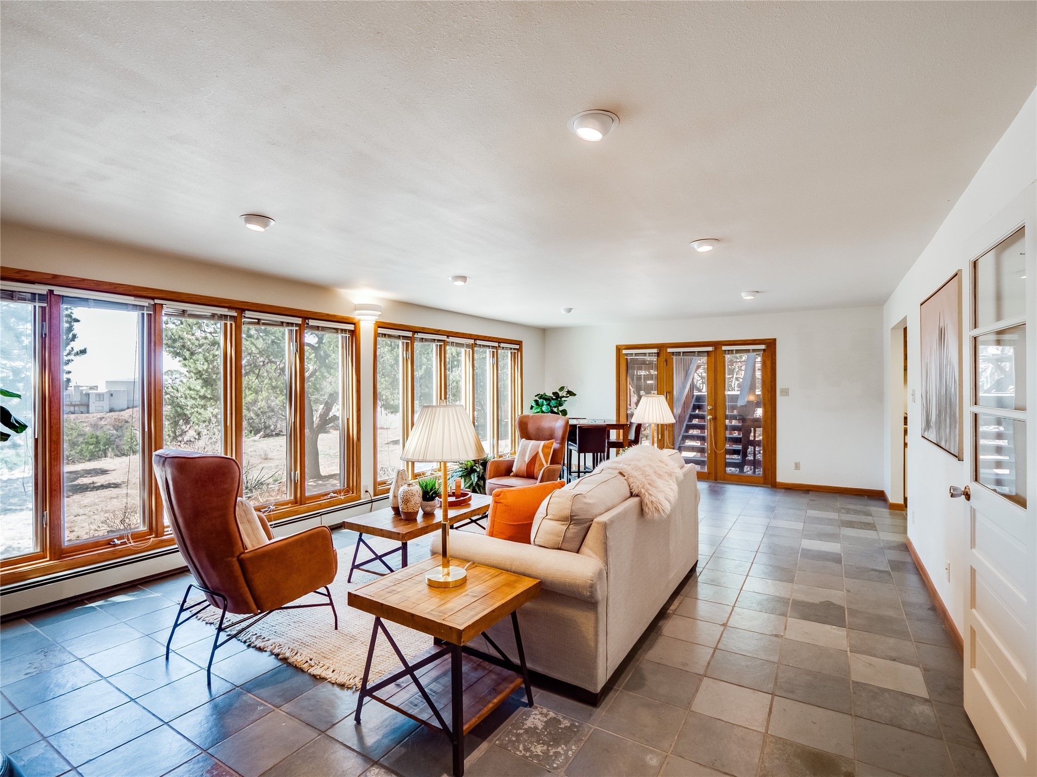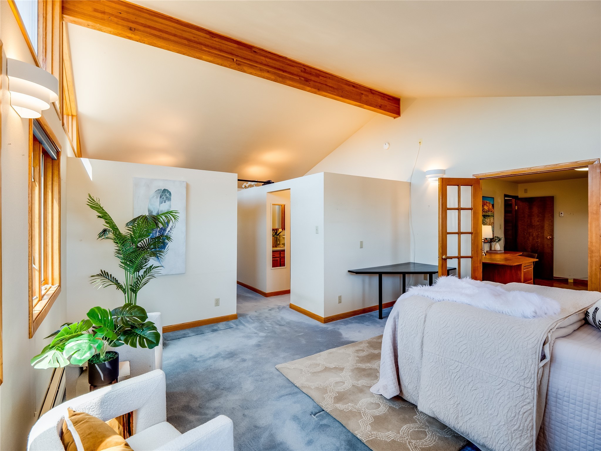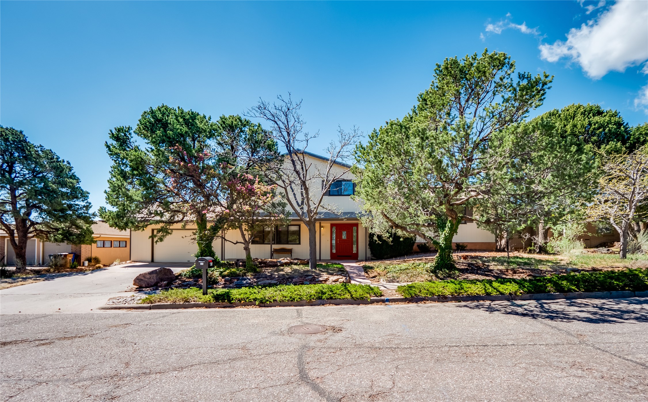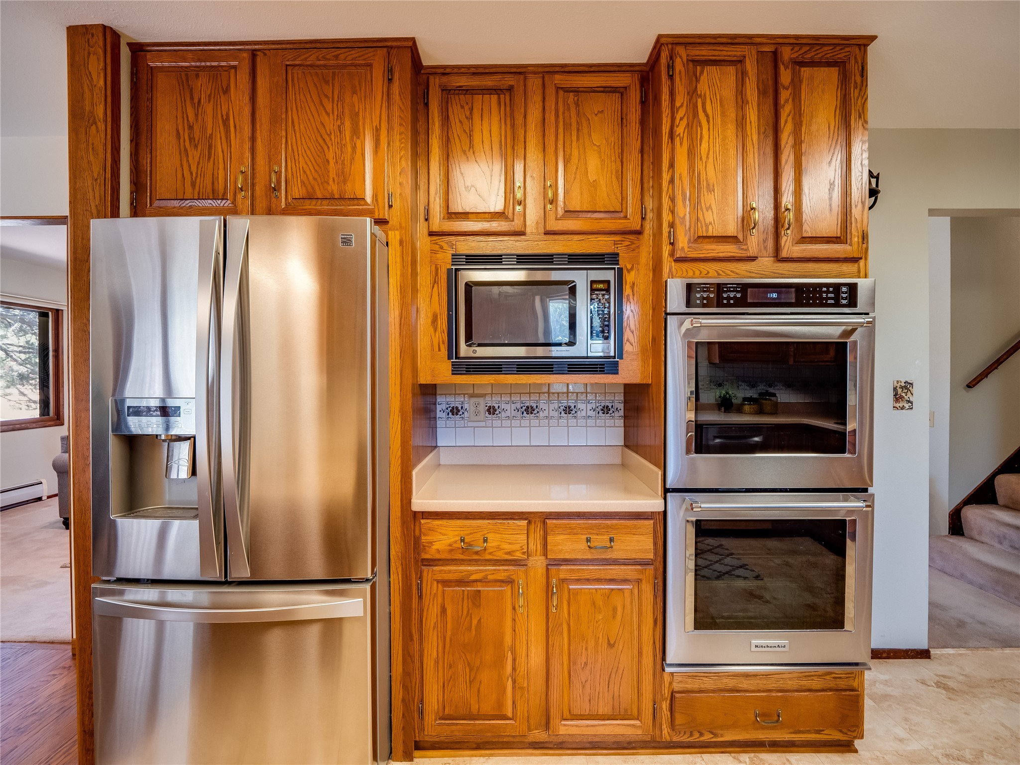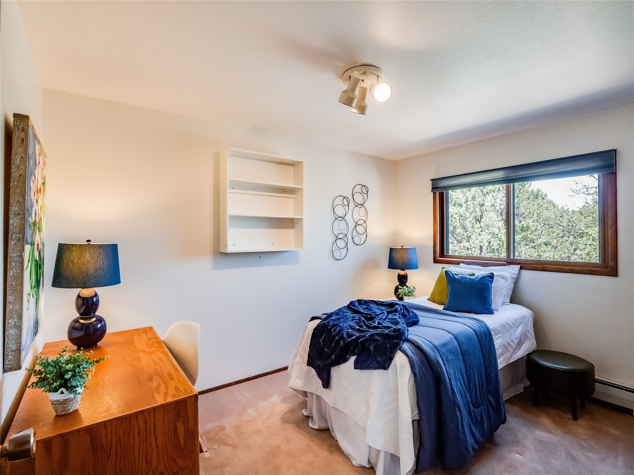 Tucked into the canyon edge, this stunning multi-level custom home offers breathtaking views, unique features, and a flexible layout ideal for entertaining or a quiet retreat. With beautiful curb appeal, the home is framed by mature landscaping and towering trees. Step into the welcoming foyer and head up to a spacious, sun-filled living room with plush carpet and large windows that flood the space with natural light. The connected open dining room has sliding glass doors to the back deck--perfect for BBQing. The kitchen is both functional and stylish, featuring wood cabinetry, a peninsula island with bar seating and under-storage, stainless steel appliances, hard surface counters, tile backsplash, and tile flooring throughout. A few steps down, you'll find a wet bar that flows into the bright family room, where a wall of windows captures the beauty of the backyard and canyon beyond. French doors open to the back deck, while a wood fireplace adds warmth and charm. This level also features a spacious guest bedroom and a guest bath with a double sink vanity and a walk-in shower. Down the hall, the laundry room offers access to the garage and a spiral staircase leading to the top floor. There's an indoor spa room with a tranquil pond. Upstairs, you'll find two additional guest bedrooms, a full guest bathroom, and a luxurious primary en-suite. The primary bedroom is a true retreat with vaulted beamed ceilings, a wall of windows, a private deck, and direct access to the main deck. Enjoy two large walk-in closets with built-in organizers and a spa-like bathroom with a double sink vanity, an additional single vanity, and a tiled walk-in shower with dual shower heads. The basement adds even more space, with a kitchenette and an additional 728 sq ft not included in the total square footage. The large backyard boasts canyon views, built-in bench seating on the deck, and room to relax or entertain. With views, ample storage, and charm, Don't miss this one-of-a-kind canyon home!