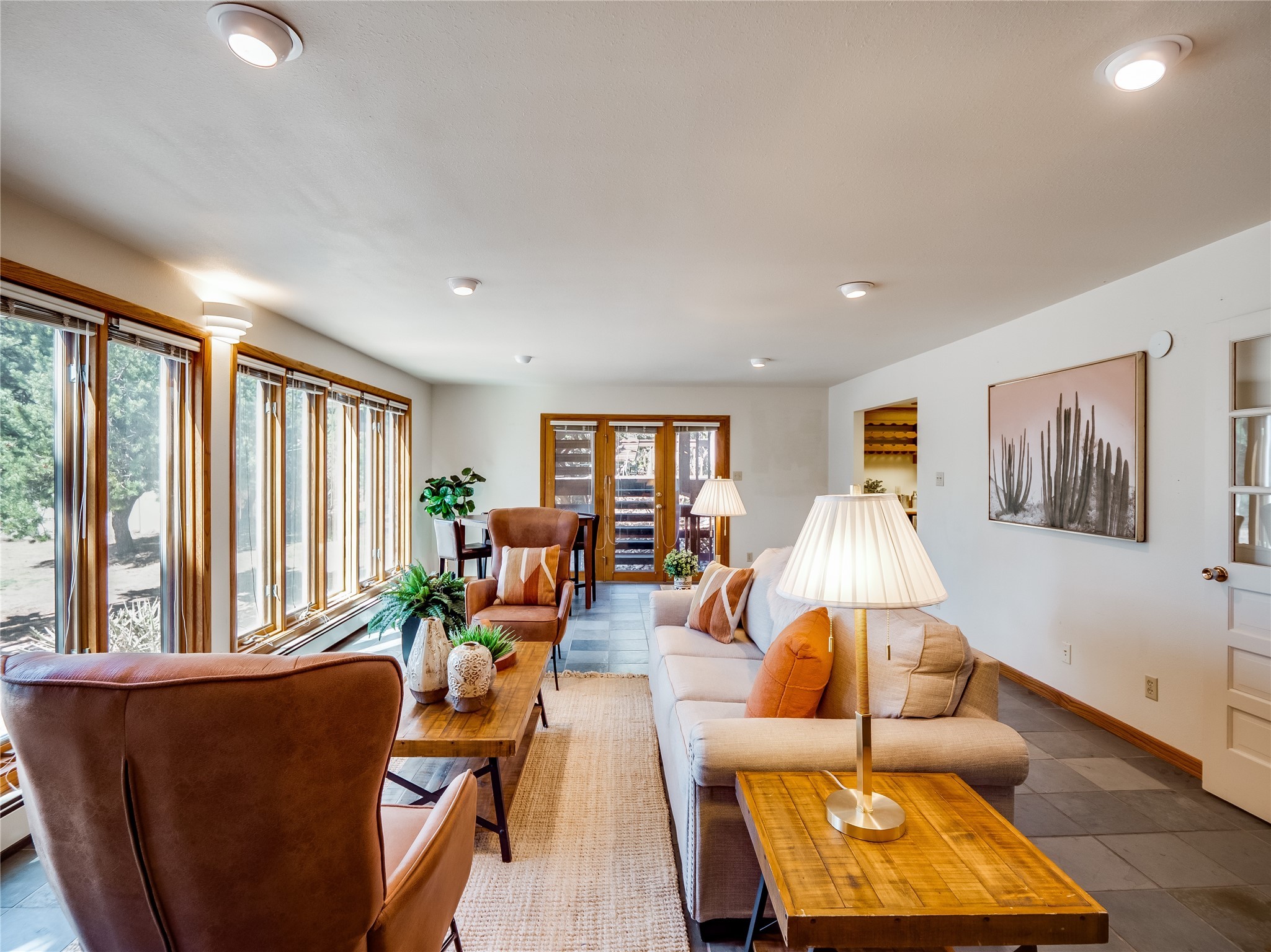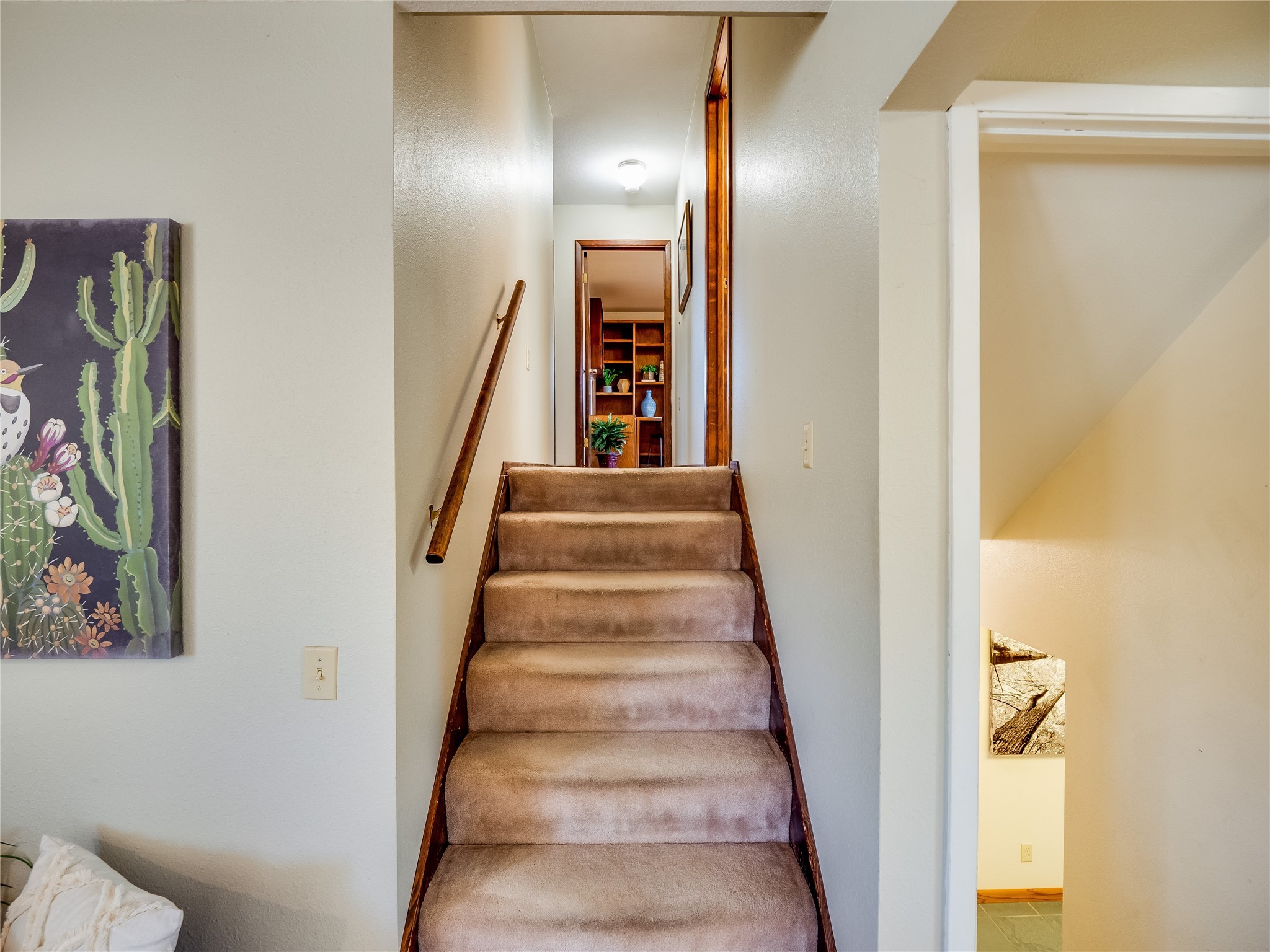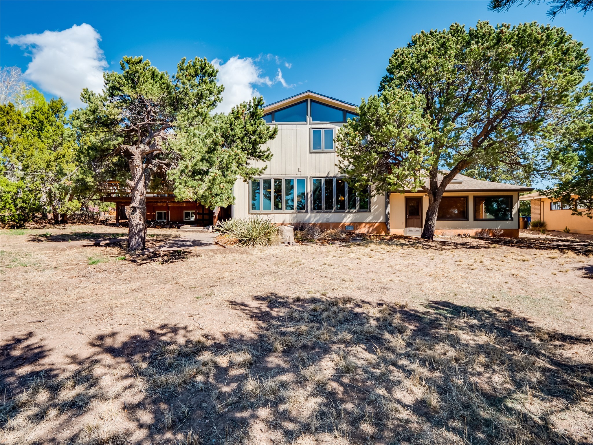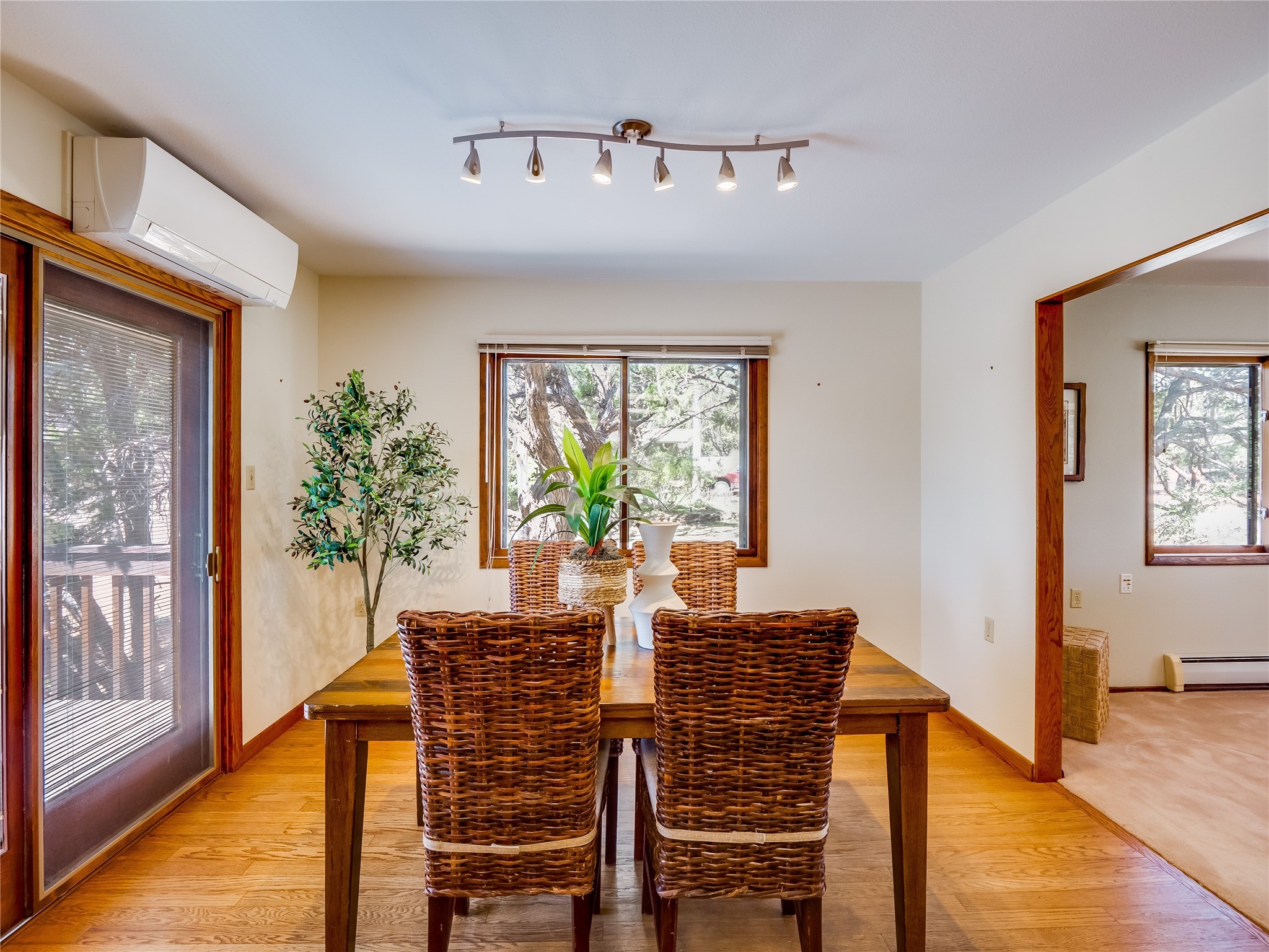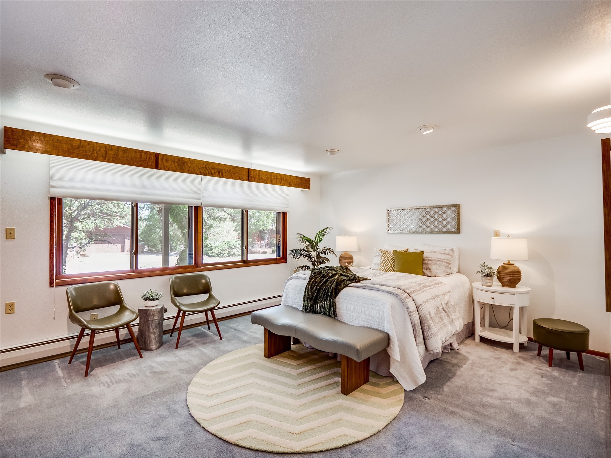 Tucked into the canyon edge, this stunning multi-level custom home offers breathtaking views, unique features, and a flexible layout ideal for entertaining or a quiet retreat. With beautiful curb appeal, the home is framed by mature landscaping and towering trees. Step into the welcoming foyer and head up to a spacious, sun-filled living room with plush carpet and large windows that flood the space with natural light. The connected open dining room has sliding glass doors to the back deck--perfect for BBQing. The kitchen is both functional and stylish, featuring wood cabinetry, a peninsula island with bar seating and under-storage, stainless steel appliances, hard surface counters, tile backsplash, and tile flooring throughout. A few steps down, you'll find a wet bar that flows into the bright family room, where a wall of windows captures the beauty of the backyard and canyon beyond. French doors open to the back deck, while a wood fireplace adds warmth and charm. This level also features a spacious guest bedroom and a guest bath with a double sink vanity and a walk-in shower. Down the hall, the laundry room offers access to the garage and a spiral staircase leading to the top floor. There's an indoor spa room with a tranquil pond. Upstairs, you'll find two additional guest bedrooms, a full guest bathroom, and a luxurious primary en-suite. The primary bedroom is a true retreat with vaulted beamed ceilings, a wall of windows, a private deck, and direct access to the main deck. Enjoy two large walk-in closets with built-in organizers and a spa-like bathroom with a double sink vanity, an additional single vanity, and a tiled walk-in shower with dual shower heads. The basement adds even more space, with a kitchenette and an additional 728 sq ft not included in the total square footage. The large backyard boasts canyon views, built-in bench seating on the deck, and room to relax or entertain. With views, ample storage, and charm, Don't miss this one-of-a-kind canyon home!