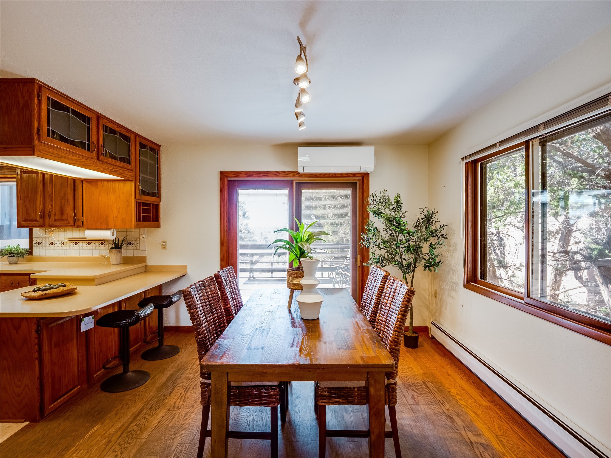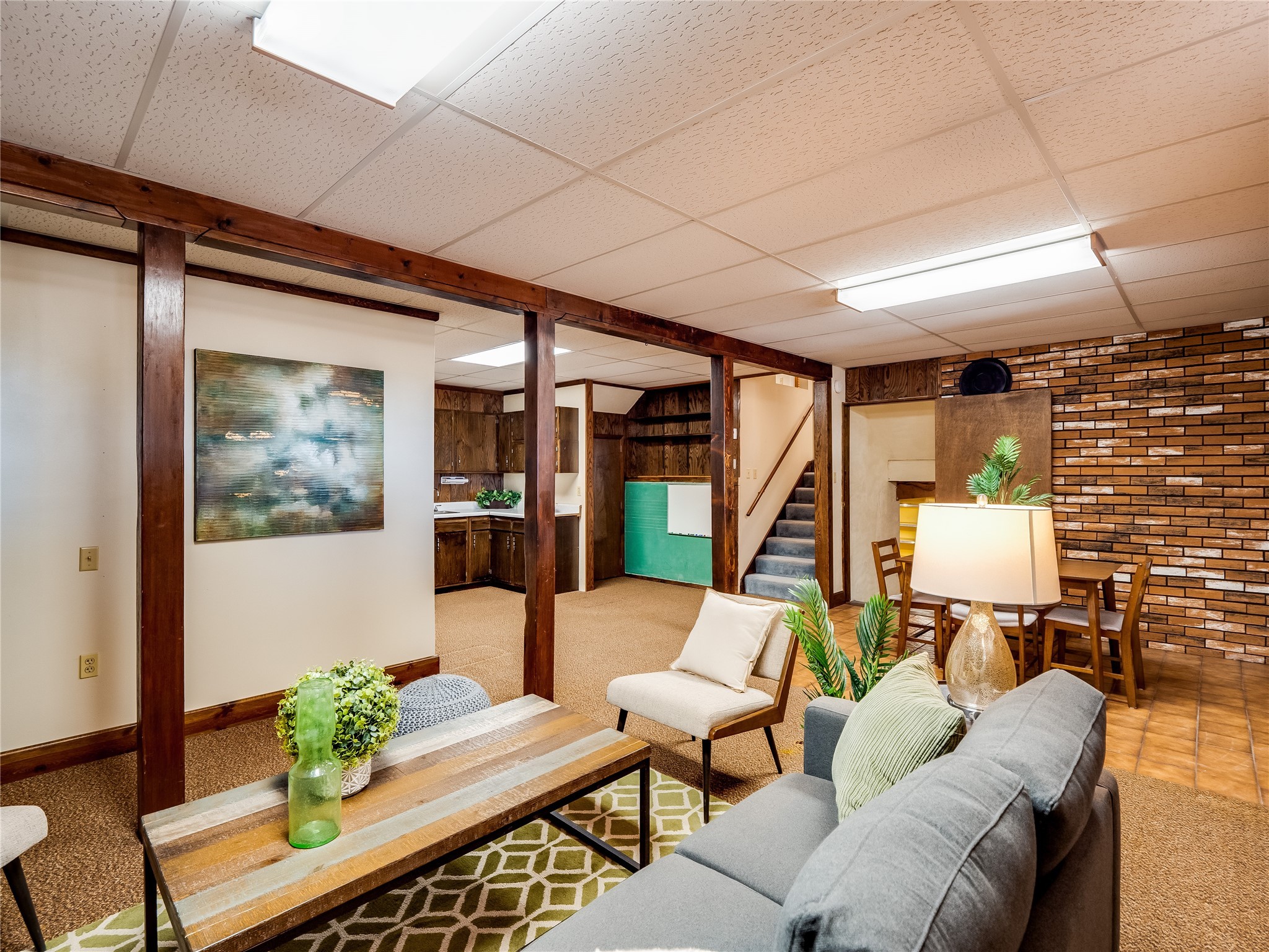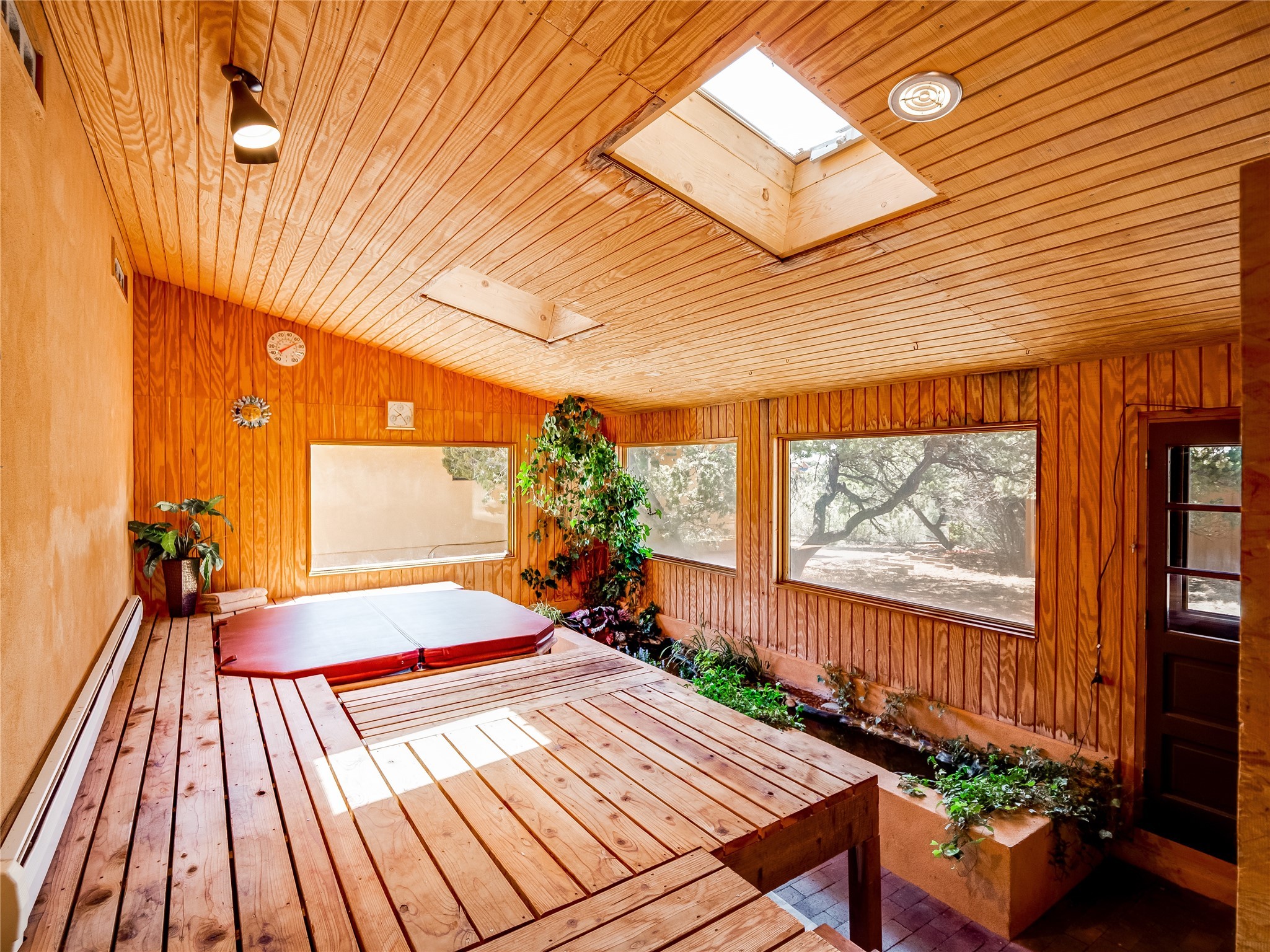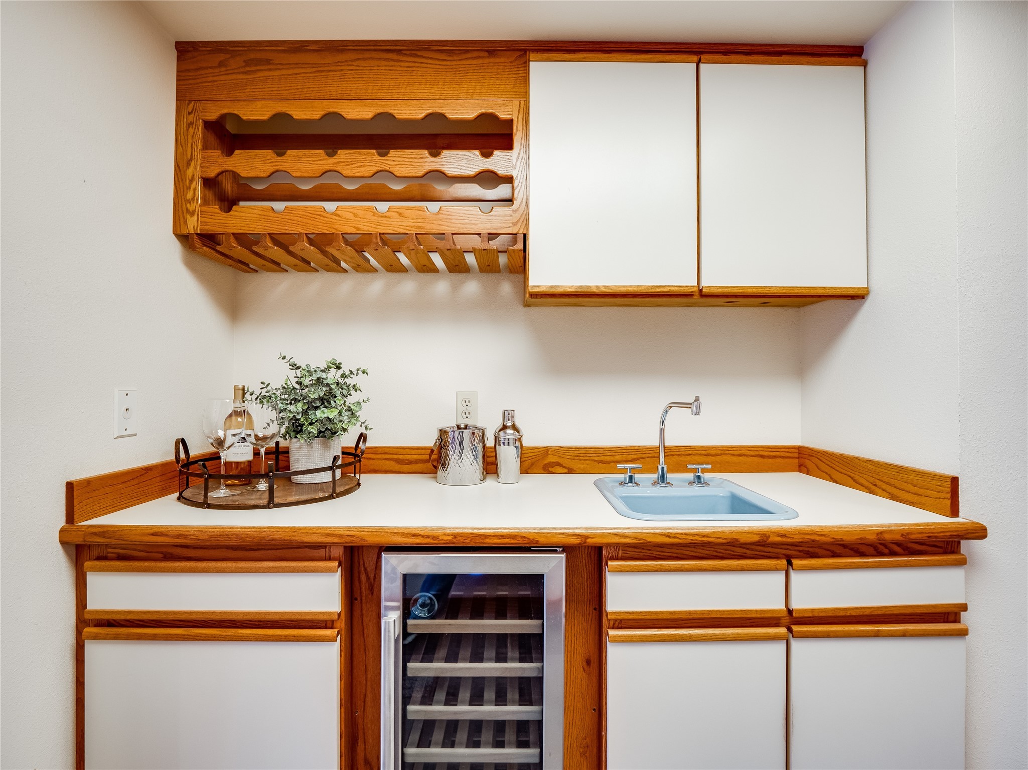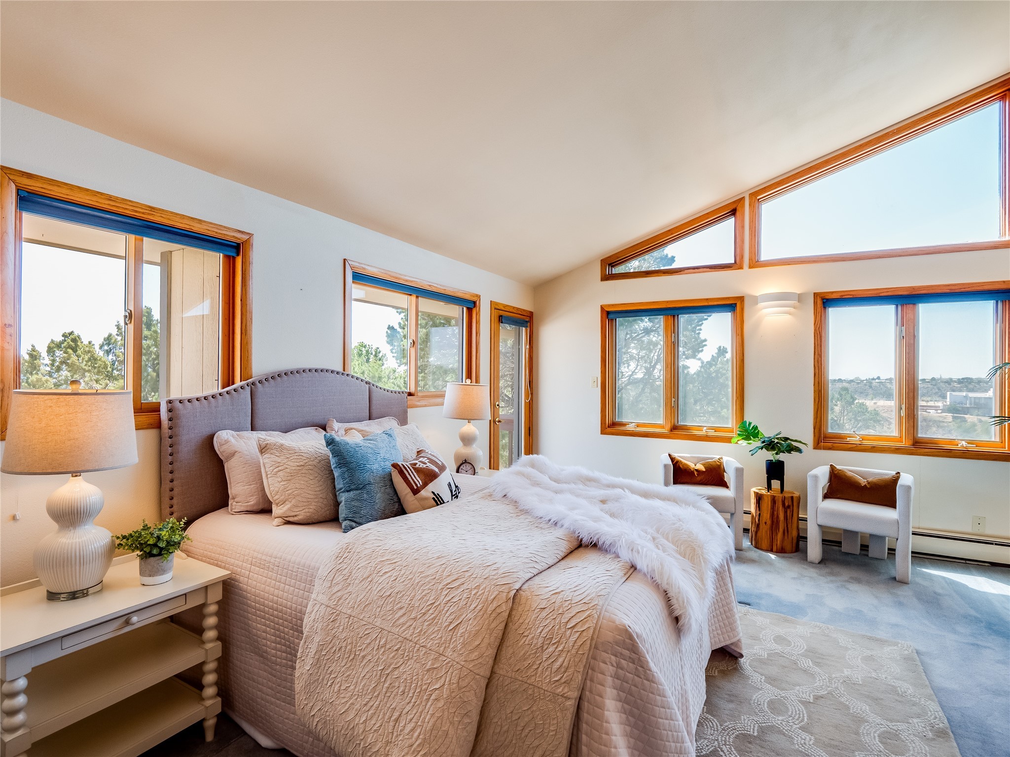 Tucked into the canyon edge, this stunning multi-level custom home offers breathtaking views, unique features, and a flexible layout ideal for entertaining or a quiet retreat. With beautiful curb appeal, the home is framed by mature landscaping and towering trees. Step into the welcoming foyer and head up to a spacious, sun-filled living room with plush carpet and large windows that flood the space with natural light. The connected open dining room has sliding glass doors to the back deck--perfect for BBQing. The kitchen is both functional and stylish, featuring wood cabinetry, a peninsula island with bar seating and under-storage, stainless steel appliances, hard surface counters, tile backsplash, and tile flooring throughout. A few steps down, you'll find a wet bar that flows into the bright family room, where a wall of windows captures the beauty of the backyard and canyon beyond. French doors open to the back deck, while a wood fireplace adds warmth and charm. This level also features a spacious guest bedroom and a guest bath with a double sink vanity and a walk-in shower. Down the hall, the laundry room offers access to the garage and a spiral staircase leading to the top floor. There's an indoor spa room with a tranquil pond. Upstairs, you'll find two additional guest bedrooms, a full guest bathroom, and a luxurious primary en-suite. The primary bedroom is a true retreat with vaulted beamed ceilings, a wall of windows, a private deck, and direct access to the main deck. Enjoy two large walk-in closets with built-in organizers and a spa-like bathroom with a double sink vanity, an additional single vanity, and a tiled walk-in shower with dual shower heads. The basement adds even more space, with a kitchenette and an additional 728 sq ft not included in the total square footage. The large backyard boasts canyon views, built-in bench seating on the deck, and room to relax or entertain. With views, ample storage, and charm, Don't miss this one-of-a-kind canyon home!