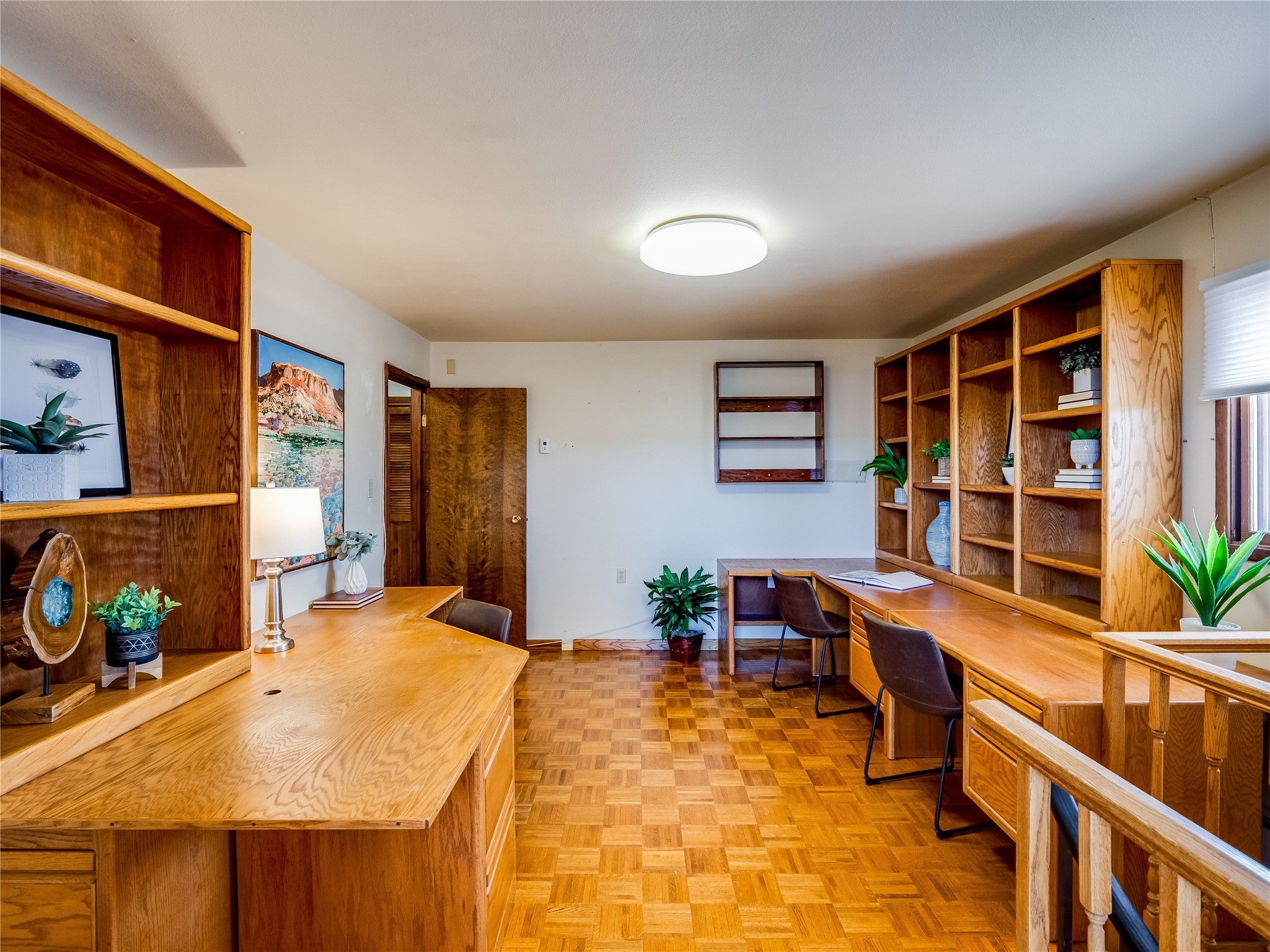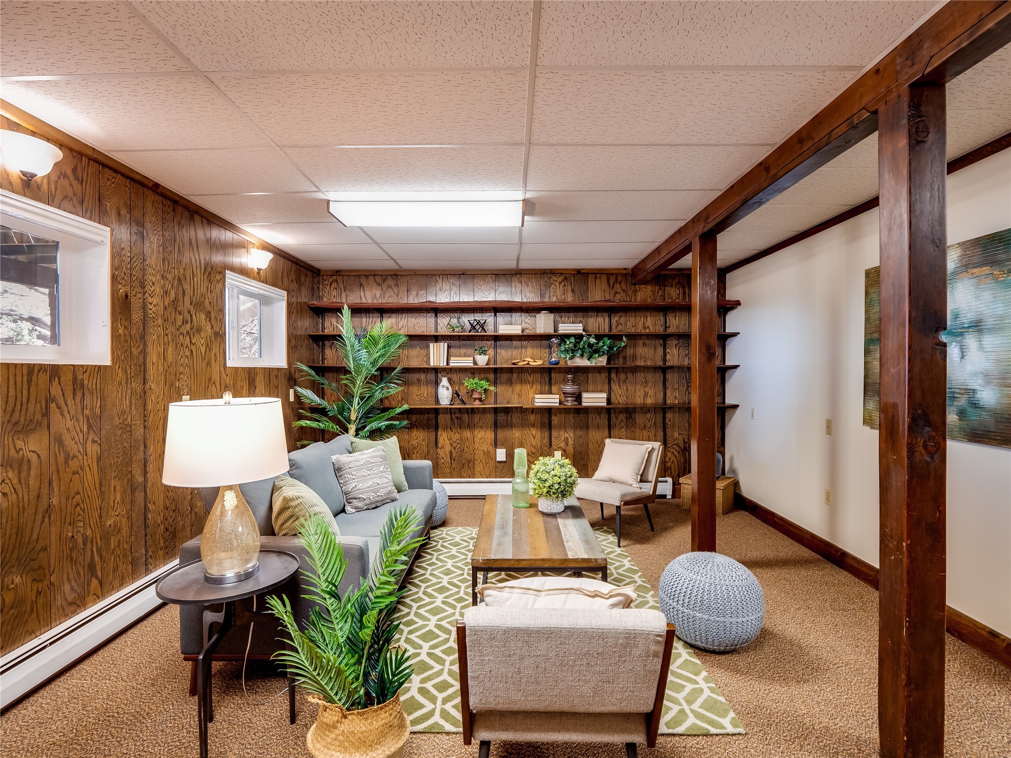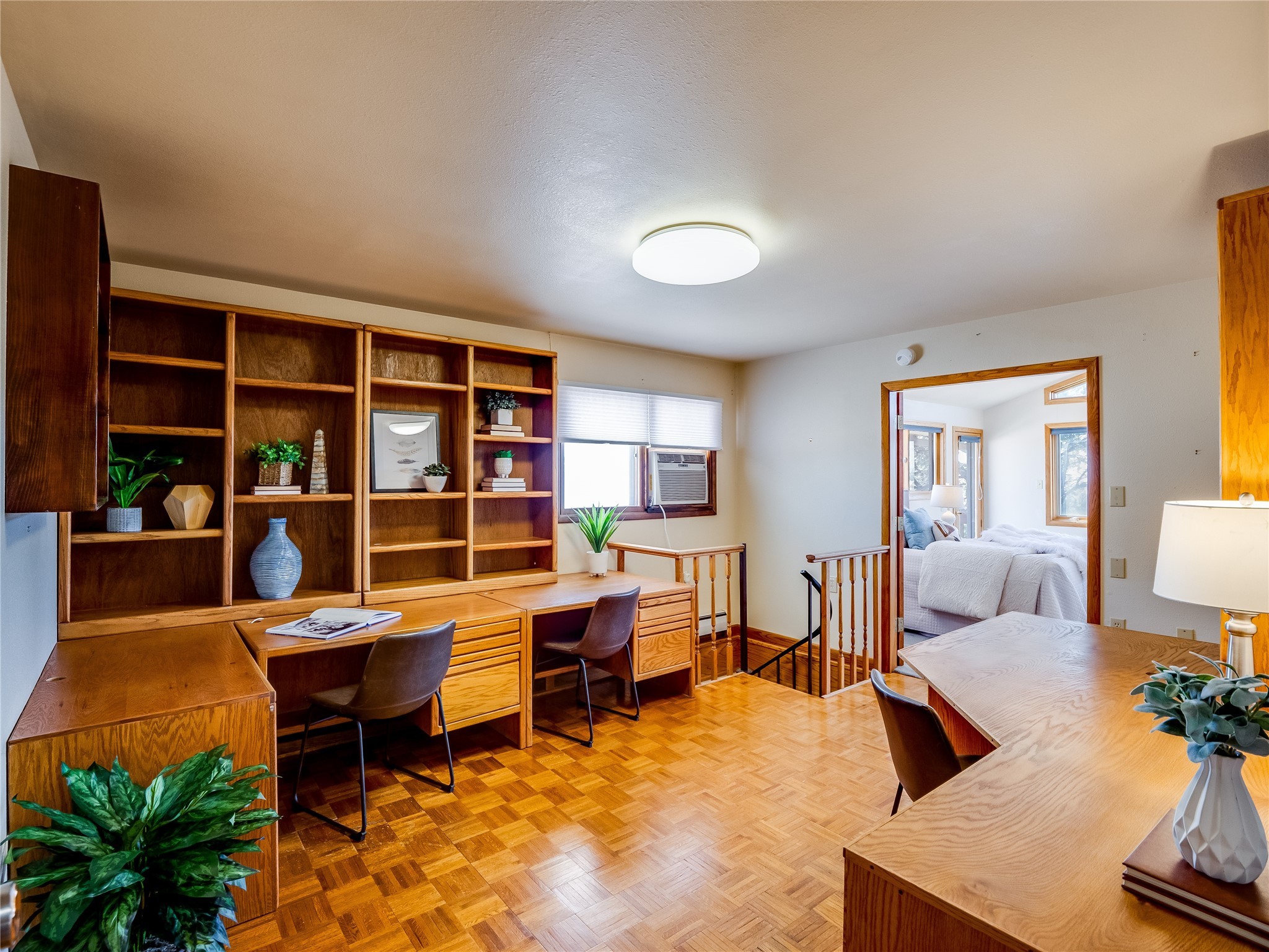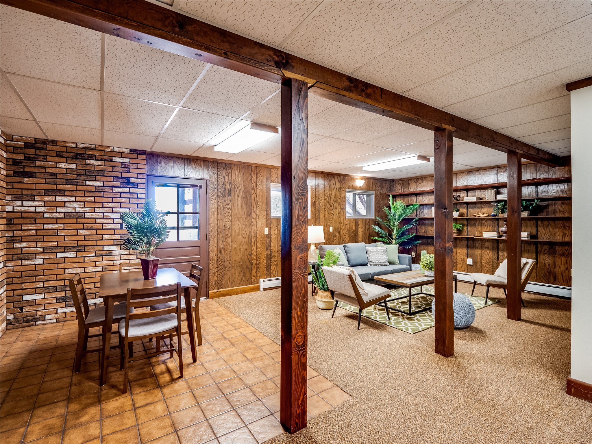 Tucked into the canyon edge, this stunning multi-level custom home offers breathtaking views, unique features, and a flexible layout ideal for entertaining or a quiet retreat. With beautiful curb appeal, the home is framed by mature landscaping and towering trees. Step into the welcoming foyer and head up to a spacious, sun-filled living room with plush carpet and large windows that flood the space with natural light. The connected open dining room has sliding glass doors to the back deck--perfect for BBQing. The kitchen is both functional and stylish, featuring wood cabinetry, a peninsula island with bar seating and under-storage, stainless steel appliances, hard surface counters, tile backsplash, and tile flooring throughout. A few steps down, you'll find a wet bar that flows into the bright family room, where a wall of windows captures the beauty of the backyard and canyon beyond. French doors open to the back deck, while a wood fireplace adds warmth and charm. This level also features a spacious guest bedroom and a guest bath with a double sink vanity and a walk-in shower. Down the hall, the laundry room offers access to the garage and a spiral staircase leading to the top floor. There's an indoor spa room with a tranquil pond. Upstairs, you'll find two additional guest bedrooms, a full guest bathroom, and a luxurious primary en-suite. The primary bedroom is a true retreat with vaulted beamed ceilings, a wall of windows, a private deck, and direct access to the main deck. Enjoy two large walk-in closets with built-in organizers and a spa-like bathroom with a double sink vanity, an additional single vanity, and a tiled walk-in shower with dual shower heads. The basement adds even more space, with a kitchenette and an additional 728 sq ft not included in the total square footage. The large backyard boasts canyon views, built-in bench seating on the deck, and room to relax or entertain. With views, ample storage, and charm, Don't miss this one-of-a-kind canyon home!
