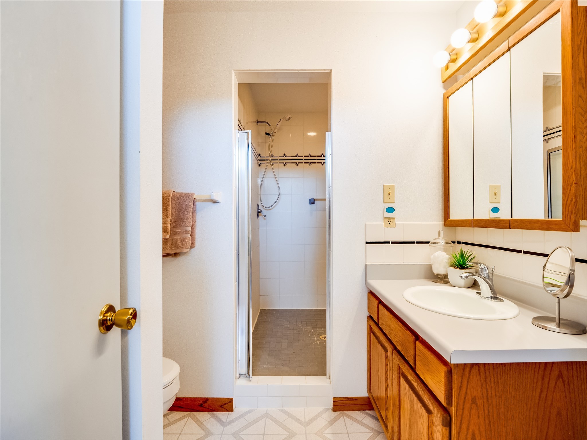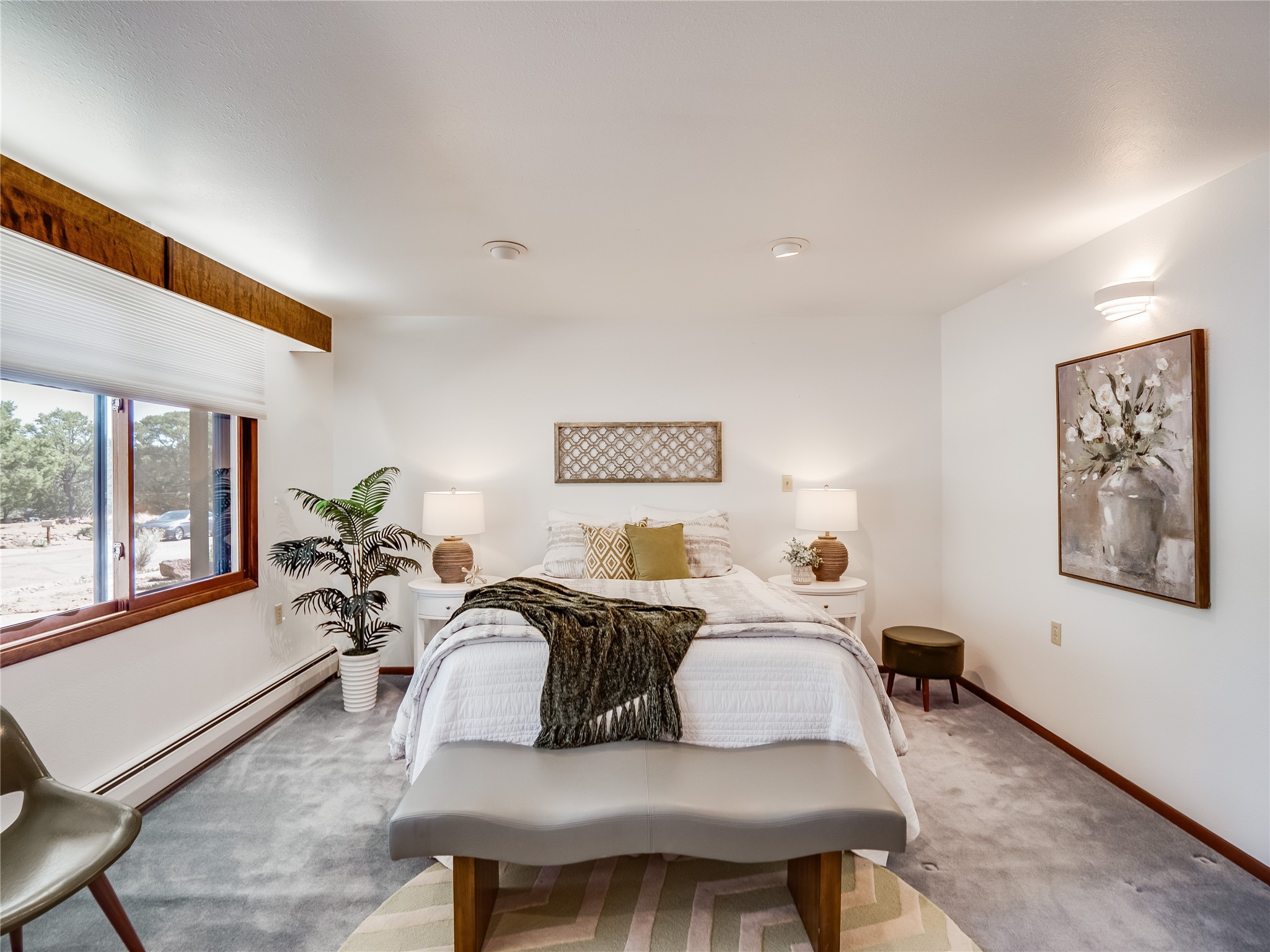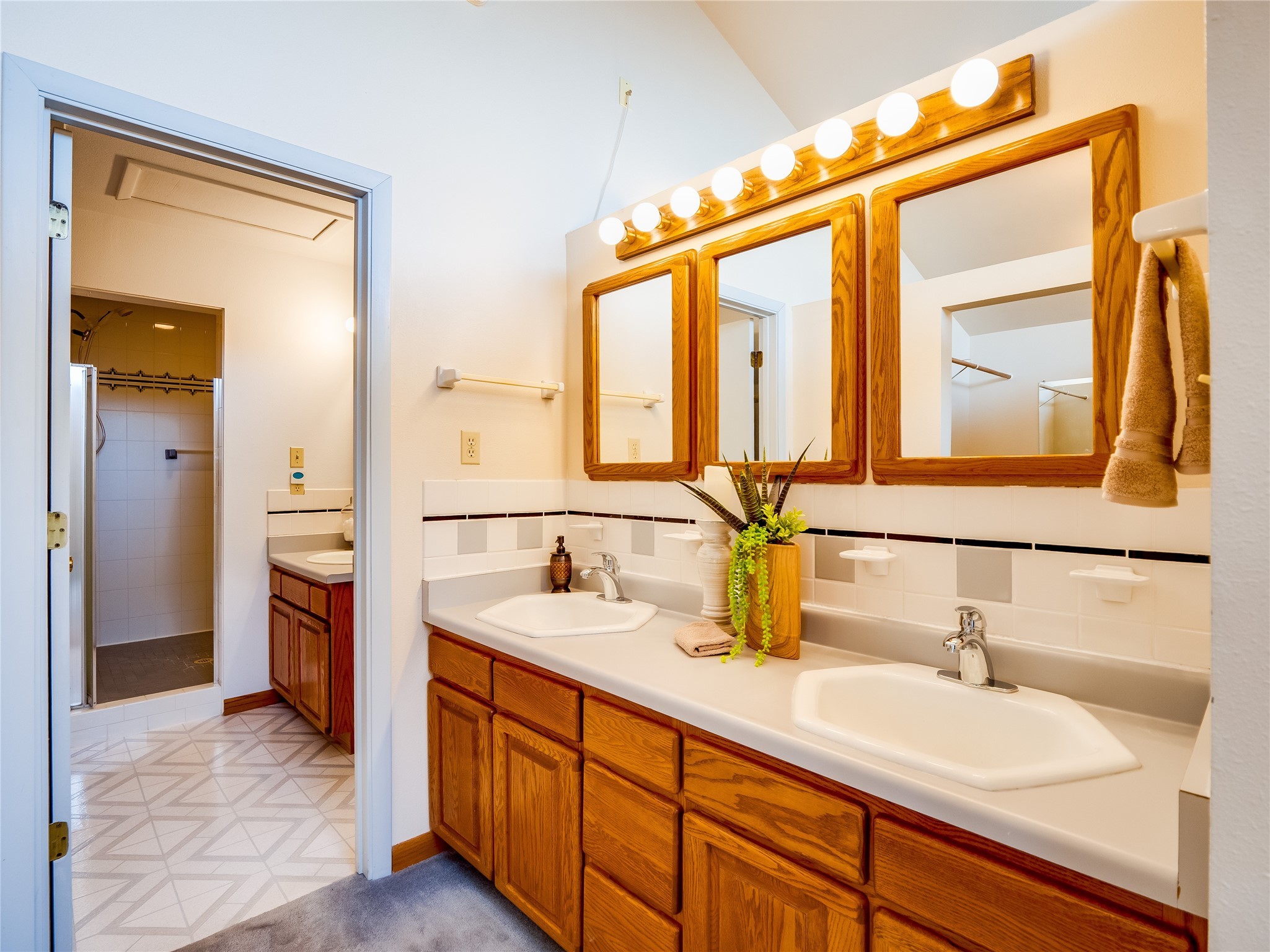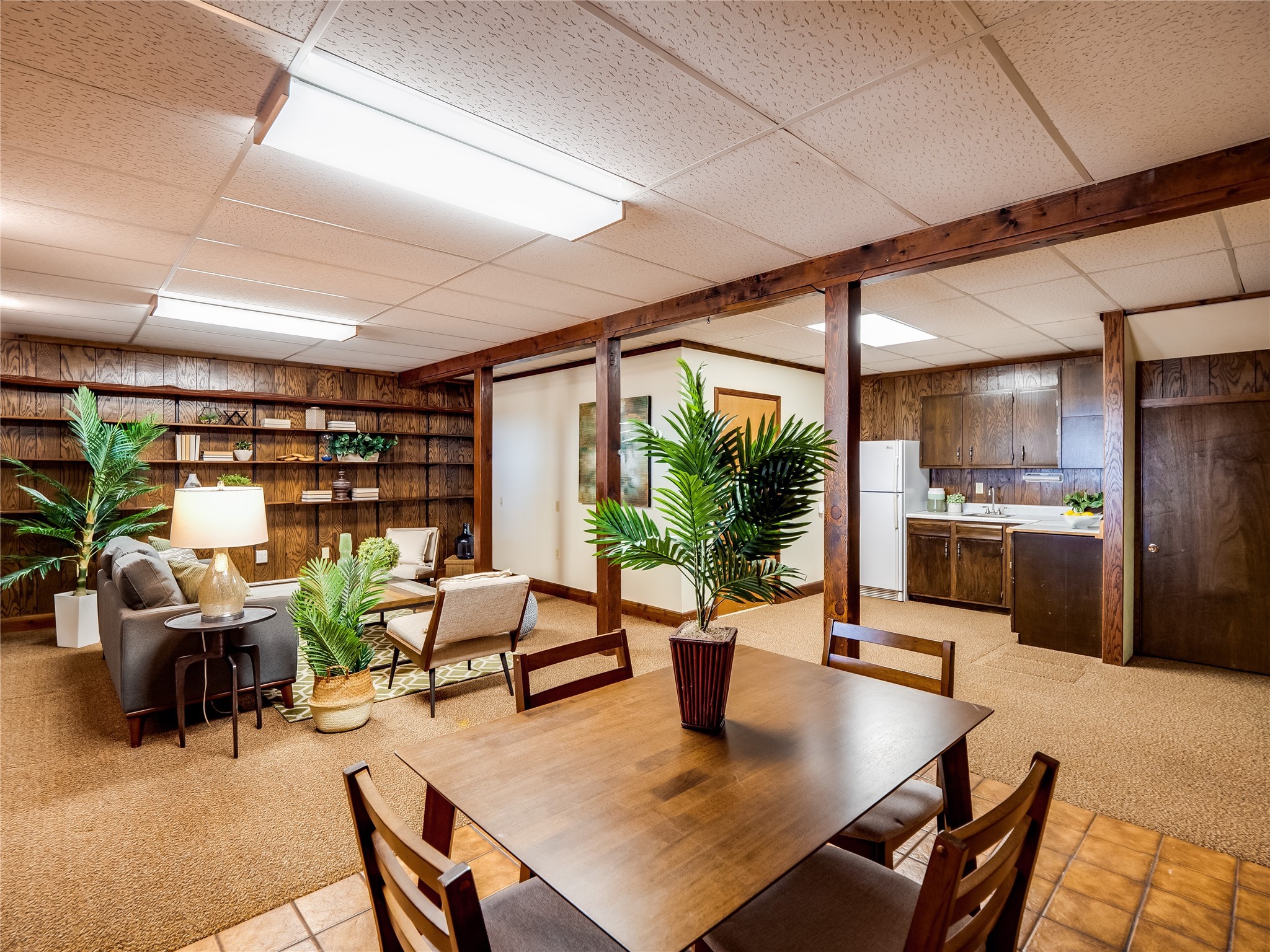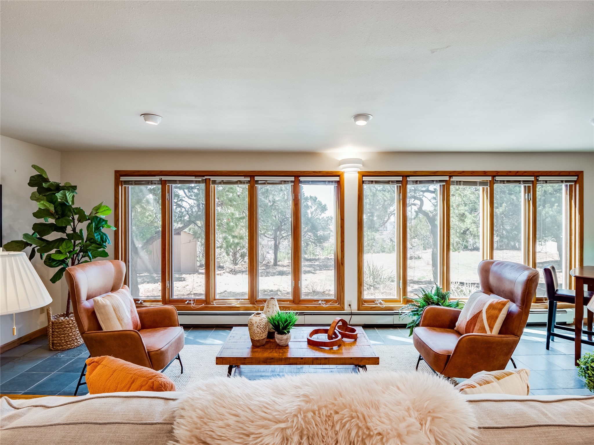 Tucked into the canyon edge, this stunning multi-level custom home offers breathtaking views, unique features, and a flexible layout ideal for entertaining or a quiet retreat. With beautiful curb appeal, the home is framed by mature landscaping and towering trees. Step into the welcoming foyer and head up to a spacious, sun-filled living room with plush carpet and large windows that flood the space with natural light. The connected open dining room has sliding glass doors to the back deck--perfect for BBQing. The kitchen is both functional and stylish, featuring wood cabinetry, a peninsula island with bar seating and under-storage, stainless steel appliances, hard surface counters, tile backsplash, and tile flooring throughout. A few steps down, you'll find a wet bar that flows into the bright family room, where a wall of windows captures the beauty of the backyard and canyon beyond. French doors open to the back deck, while a wood fireplace adds warmth and charm. This level also features a spacious guest bedroom and a guest bath with a double sink vanity and a walk-in shower. Down the hall, the laundry room offers access to the garage and a spiral staircase leading to the top floor. There's an indoor spa room with a tranquil pond. Upstairs, you'll find two additional guest bedrooms, a full guest bathroom, and a luxurious primary en-suite. The primary bedroom is a true retreat with vaulted beamed ceilings, a wall of windows, a private deck, and direct access to the main deck. Enjoy two large walk-in closets with built-in organizers and a spa-like bathroom with a double sink vanity, an additional single vanity, and a tiled walk-in shower with dual shower heads. The basement adds even more space, with a kitchenette and an additional 728 sq ft not included in the total square footage. The large backyard boasts canyon views, built-in bench seating on the deck, and room to relax or entertain. With views, ample storage, and charm, Don't miss this one-of-a-kind canyon home!