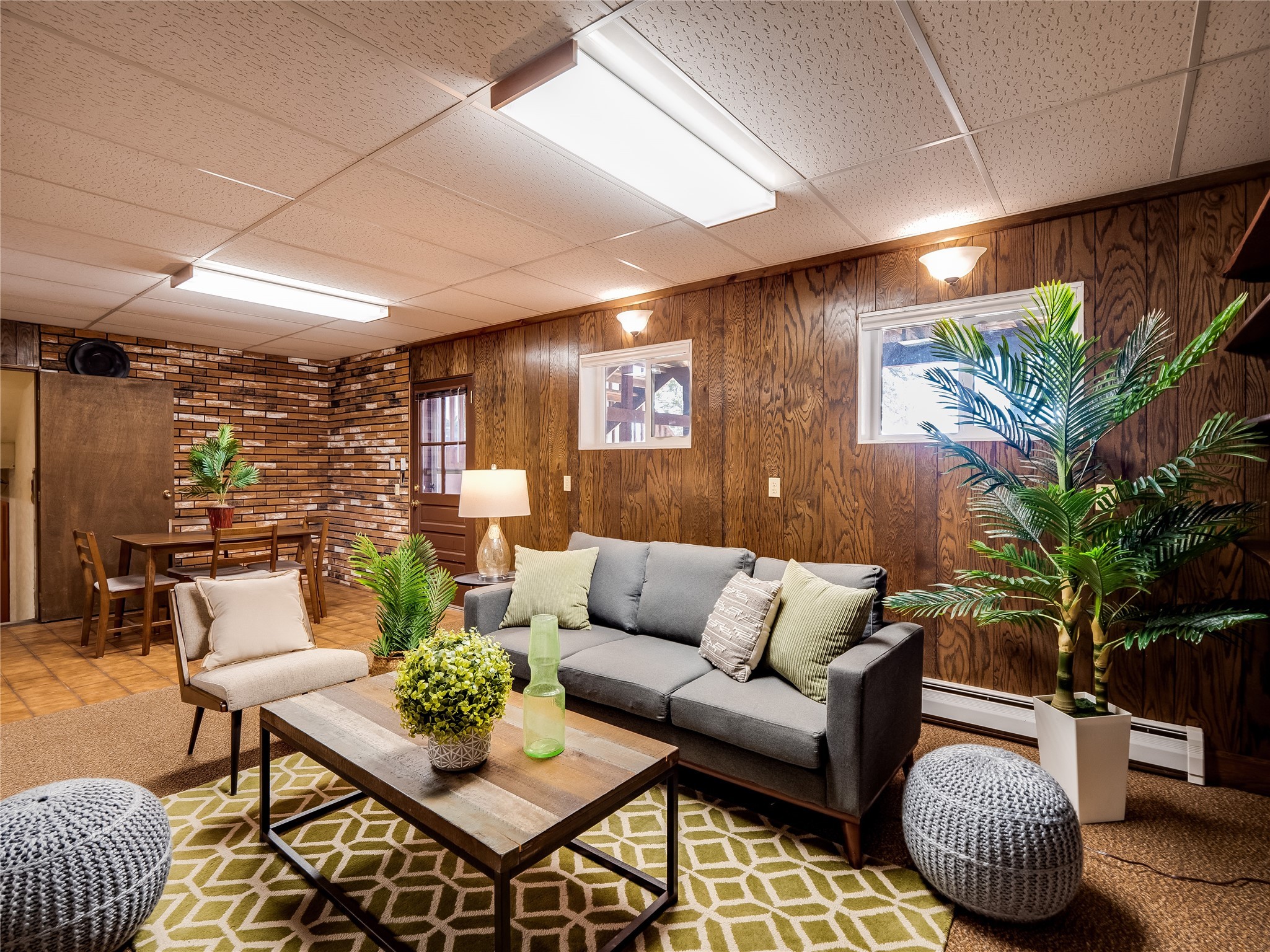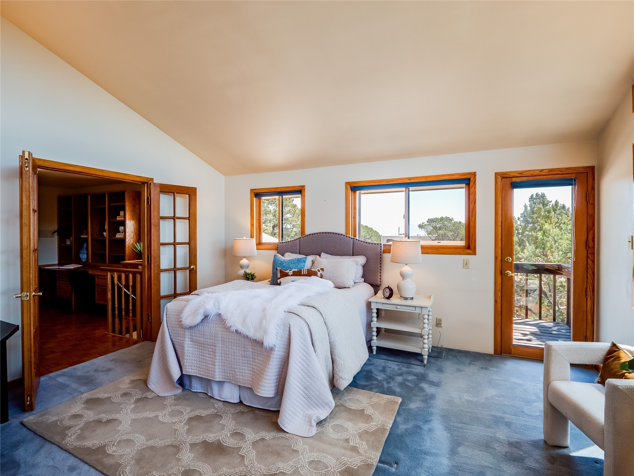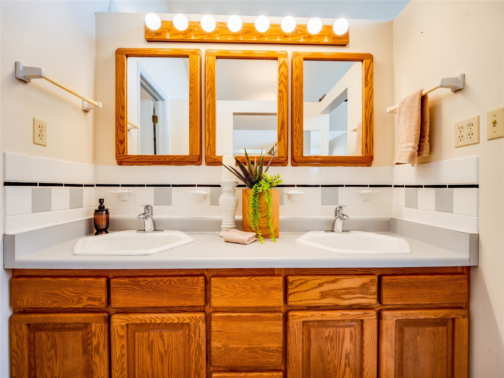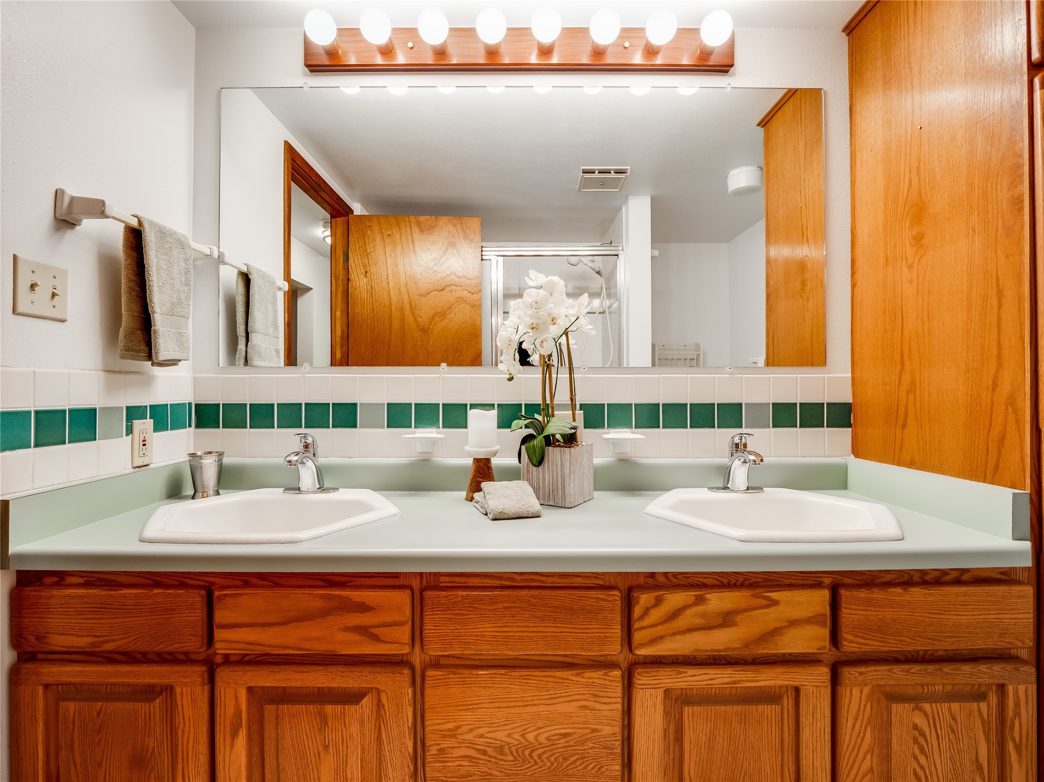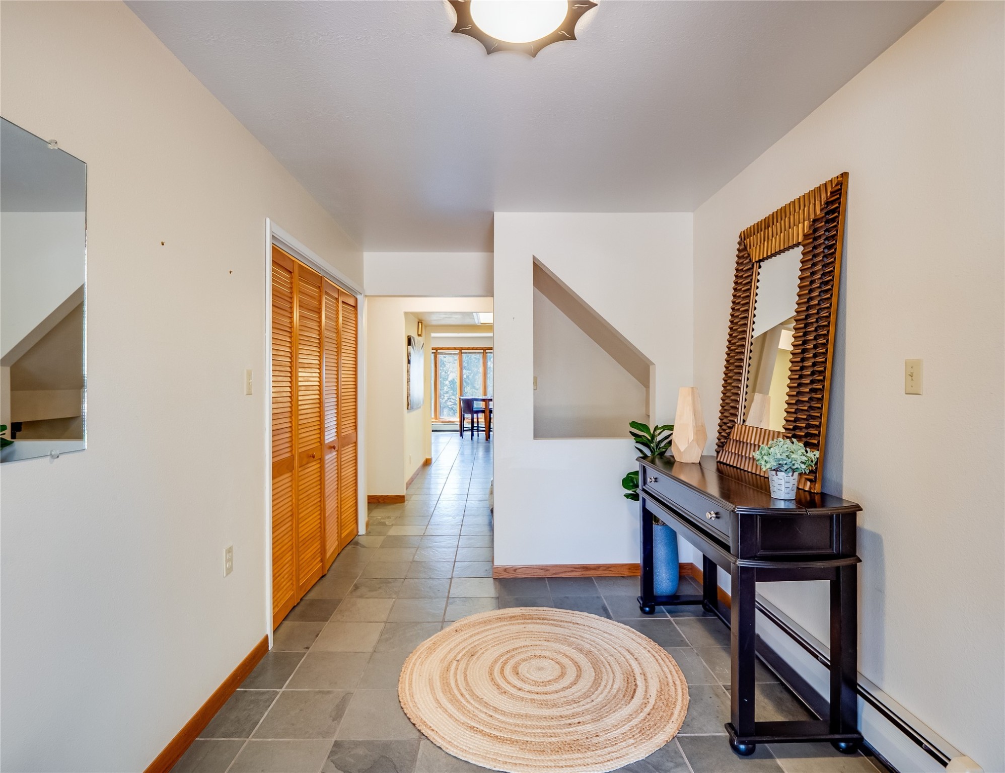 Tucked into the canyon edge, this stunning multi-level custom home offers breathtaking views, unique features, and a flexible layout ideal for entertaining or a quiet retreat. With beautiful curb appeal, the home is framed by mature landscaping and towering trees. Step into the welcoming foyer and head up to a spacious, sun-filled living room with plush carpet and large windows that flood the space with natural light. The connected open dining room has sliding glass doors to the back deck--perfect for BBQing. The kitchen is both functional and stylish, featuring wood cabinetry, a peninsula island with bar seating and under-storage, stainless steel appliances, hard surface counters, tile backsplash, and tile flooring throughout. A few steps down, you'll find a wet bar that flows into the bright family room, where a wall of windows captures the beauty of the backyard and canyon beyond. French doors open to the back deck, while a wood fireplace adds warmth and charm. This level also features a spacious guest bedroom and a guest bath with a double sink vanity and a walk-in shower. Down the hall, the laundry room offers access to the garage and a spiral staircase leading to the top floor. There's an indoor spa room with a tranquil pond. Upstairs, you'll find two additional guest bedrooms, a full guest bathroom, and a luxurious primary en-suite. The primary bedroom is a true retreat with vaulted beamed ceilings, a wall of windows, a private deck, and direct access to the main deck. Enjoy two large walk-in closets with built-in organizers and a spa-like bathroom with a double sink vanity, an additional single vanity, and a tiled walk-in shower with dual shower heads. The basement adds even more space, with a kitchenette and an additional 728 sq ft not included in the total square footage. The large backyard boasts canyon views, built-in bench seating on the deck, and room to relax or entertain. With views, ample storage, and charm, Don't miss this one-of-a-kind canyon home!