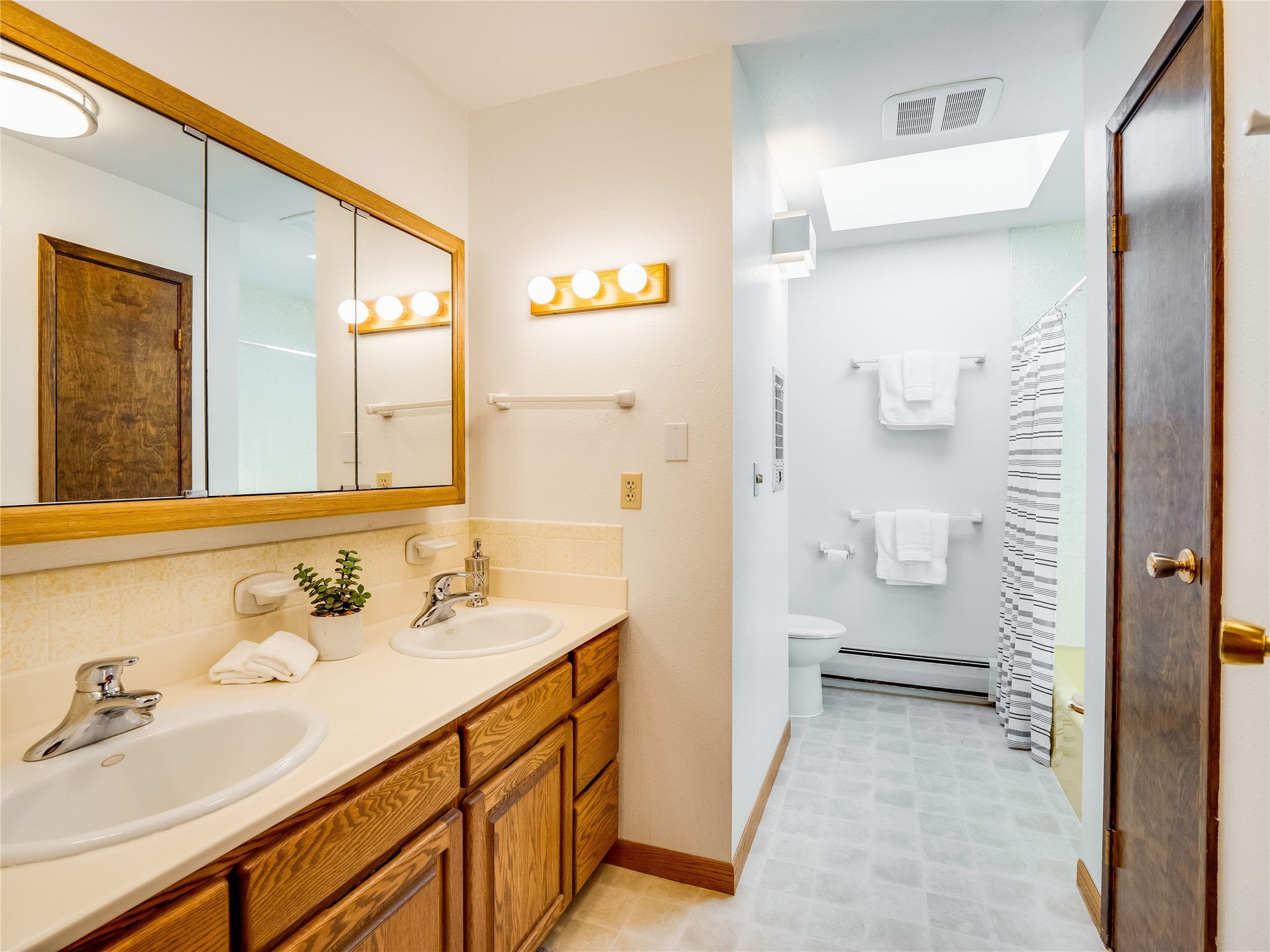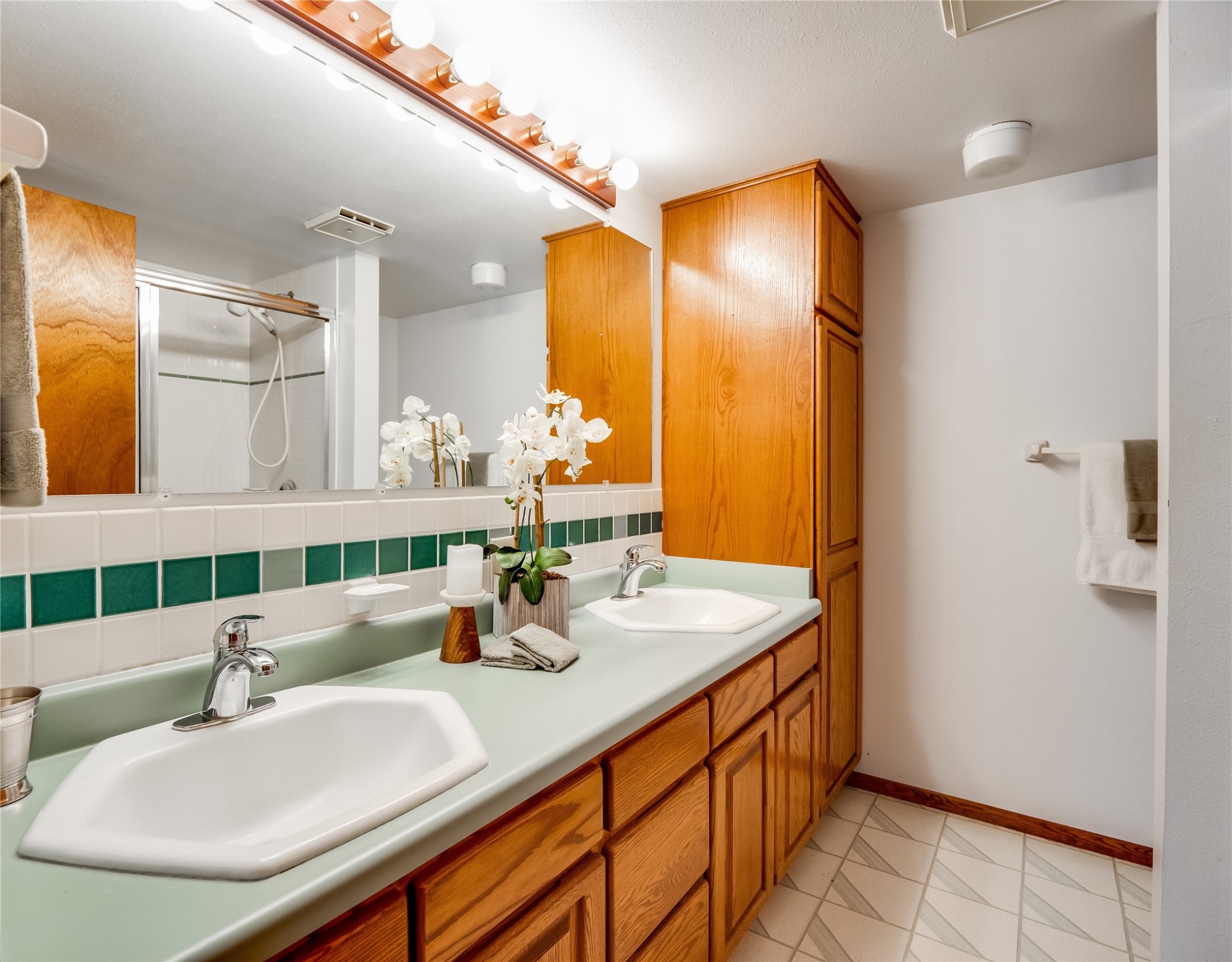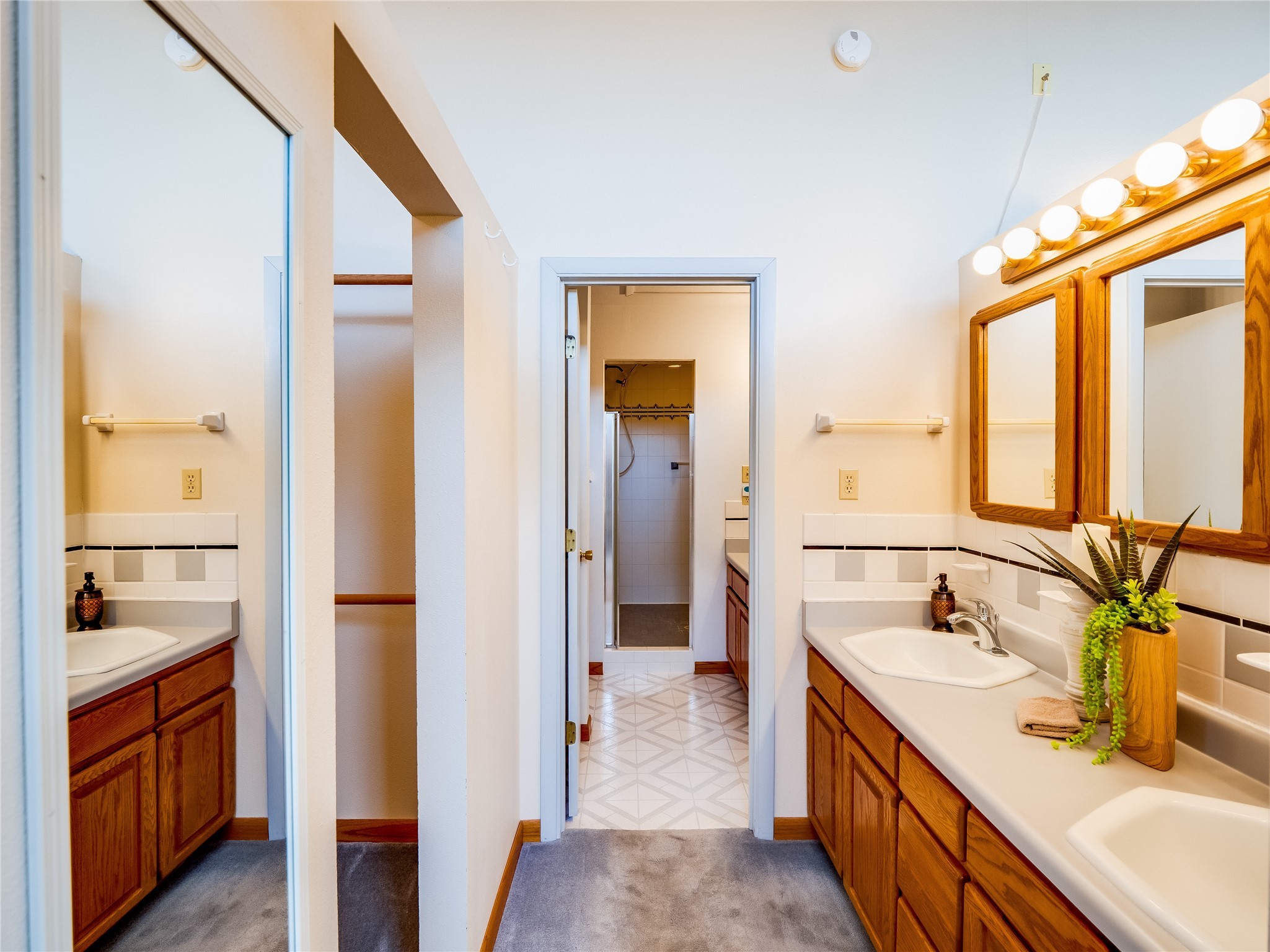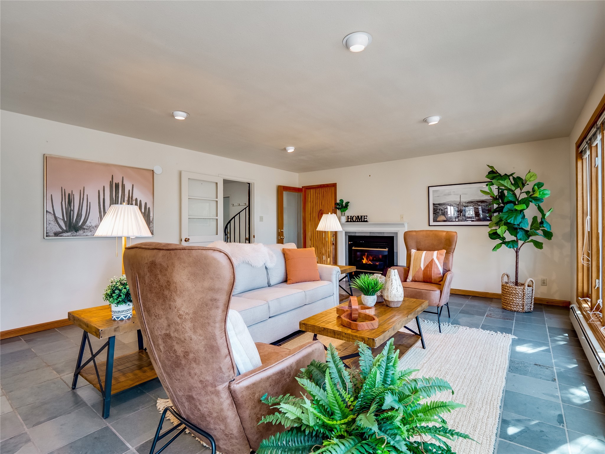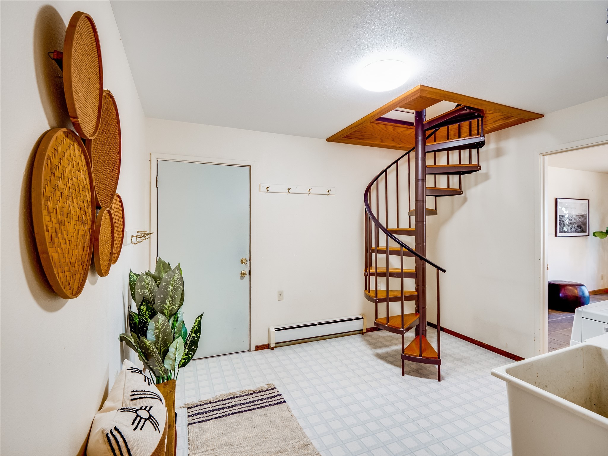 Tucked into the canyon edge, this stunning multi-level custom home offers breathtaking views, unique features, and a flexible layout ideal for entertaining or a quiet retreat. With beautiful curb appeal, the home is framed by mature landscaping and towering trees. Step into the welcoming foyer and head up to a spacious, sun-filled living room with plush carpet and large windows that flood the space with natural light. The connected open dining room has sliding glass doors to the back deck--perfect for BBQing. The kitchen is both functional and stylish, featuring wood cabinetry, a peninsula island with bar seating and under-storage, stainless steel appliances, hard surface counters, tile backsplash, and tile flooring throughout. A few steps down, you'll find a wet bar that flows into the bright family room, where a wall of windows captures the beauty of the backyard and canyon beyond. French doors open to the back deck, while a wood fireplace adds warmth and charm. This level also features a spacious guest bedroom and a guest bath with a double sink vanity and a walk-in shower. Down the hall, the laundry room offers access to the garage and a spiral staircase leading to the top floor. There's an indoor spa room with a tranquil pond. Upstairs, you'll find two additional guest bedrooms, a full guest bathroom, and a luxurious primary en-suite. The primary bedroom is a true retreat with vaulted beamed ceilings, a wall of windows, a private deck, and direct access to the main deck. Enjoy two large walk-in closets with built-in organizers and a spa-like bathroom with a double sink vanity, an additional single vanity, and a tiled walk-in shower with dual shower heads. The basement adds even more space, with a kitchenette and an additional 728 sq ft not included in the total square footage. The large backyard boasts canyon views, built-in bench seating on the deck, and room to relax or entertain. With views, ample storage, and charm, Don't miss this one-of-a-kind canyon home!