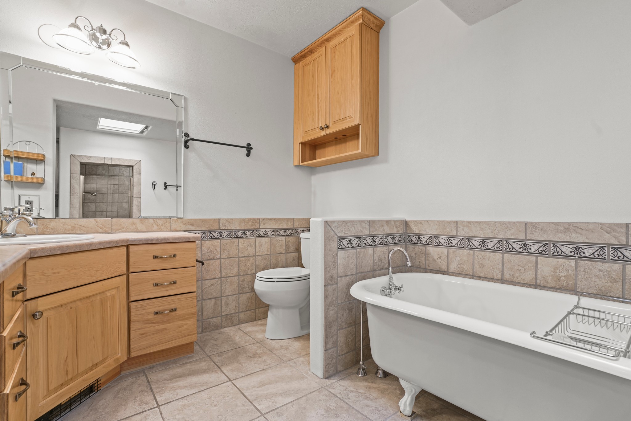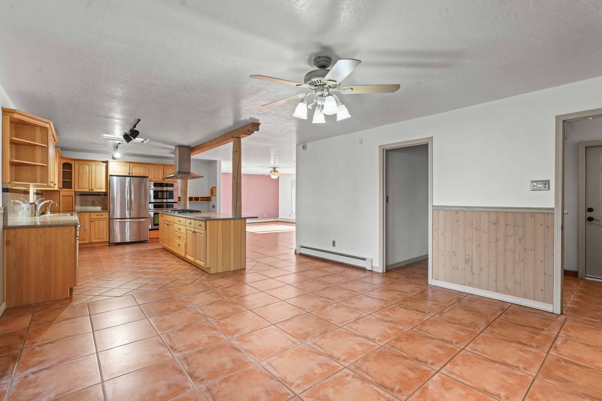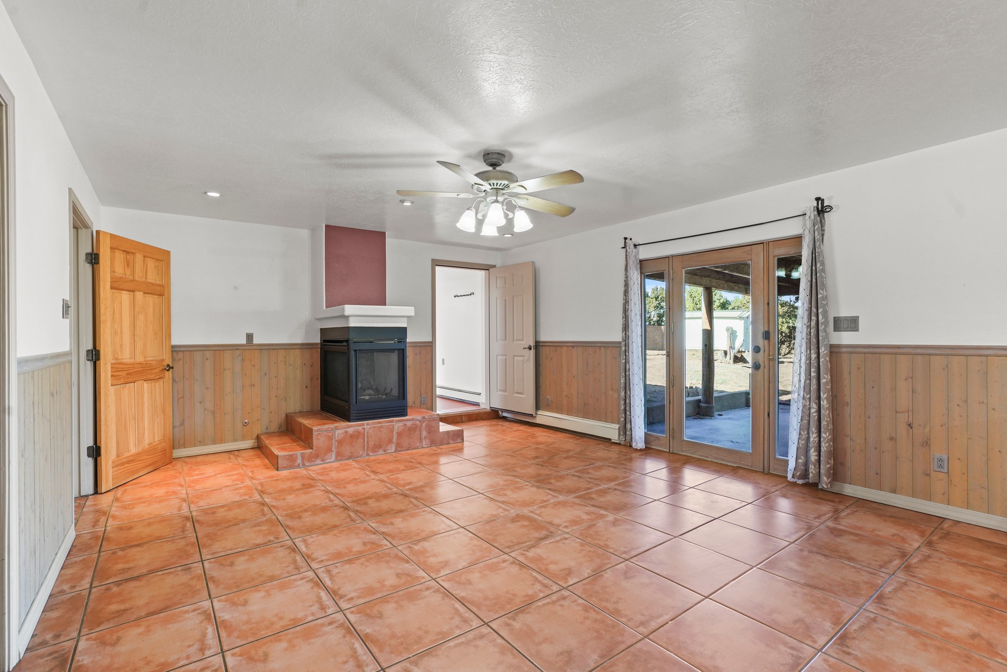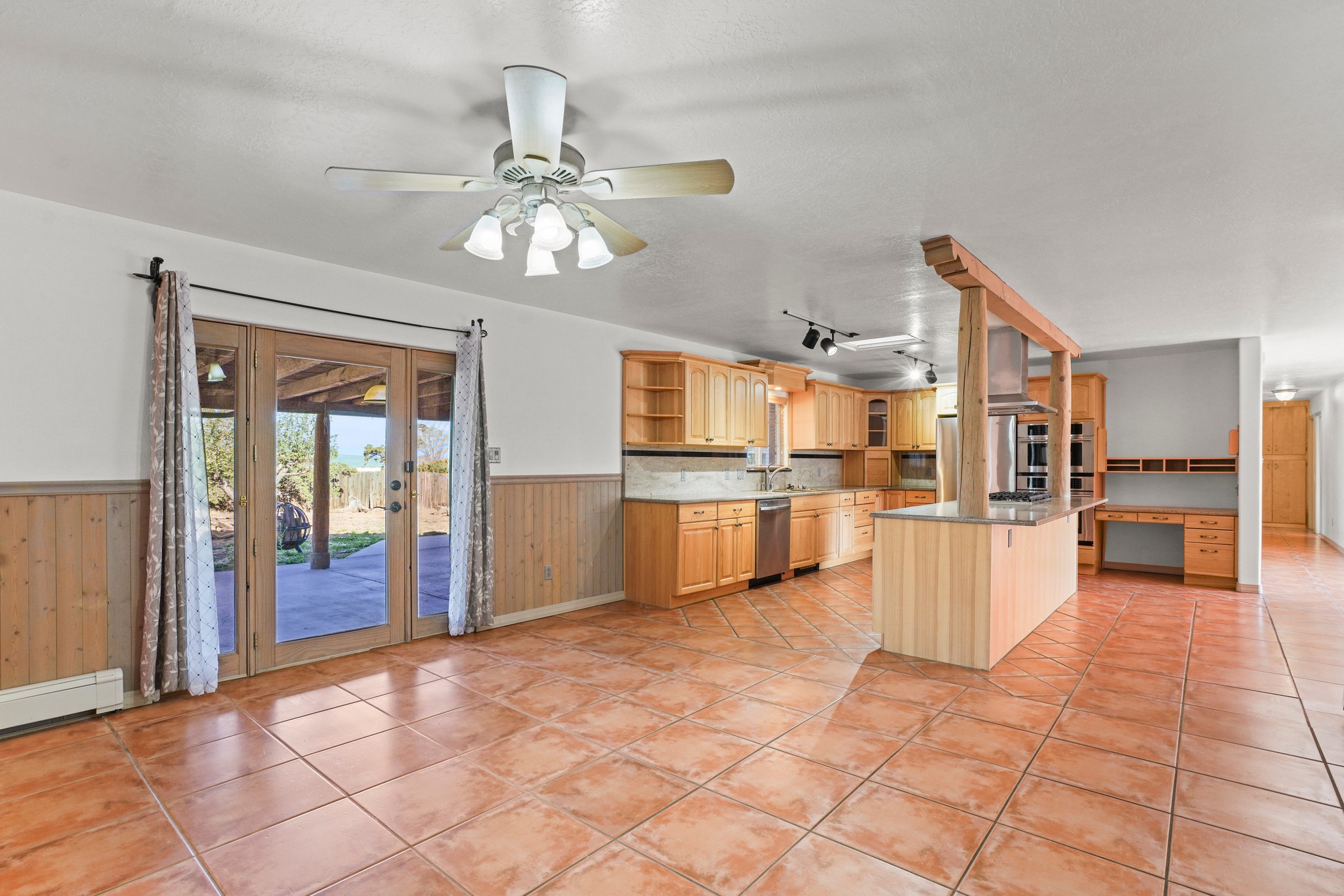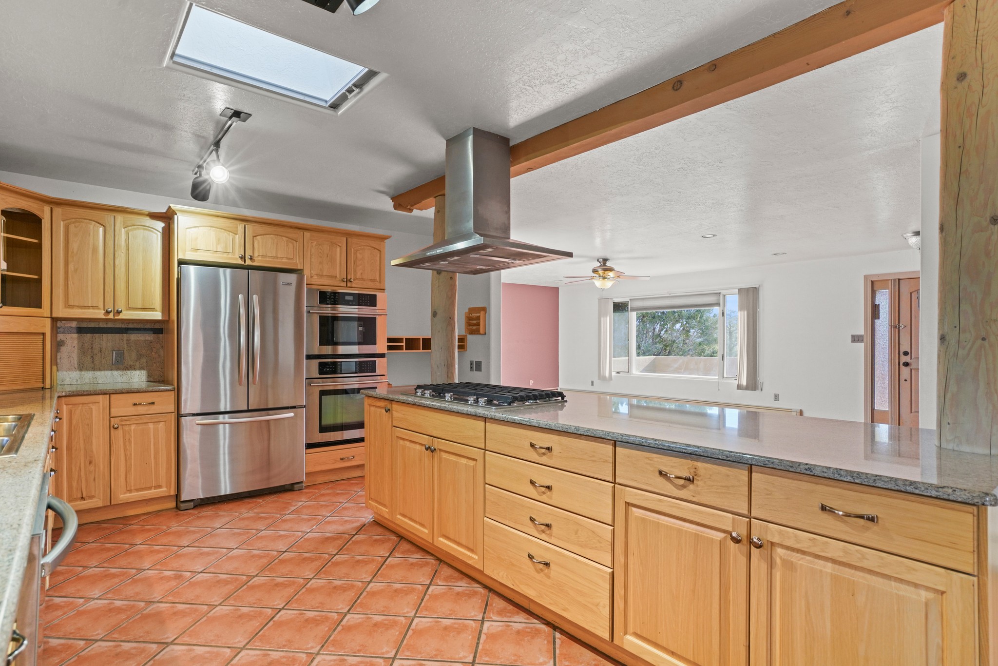 Amazing opportunity to own this versatile large home on a spacious rare one acre property with panoramic views in the heart of Santa Fe. Highly desirable area in the city limits with close proximity to everything that Santa Fe has to offer. Has a detached studio/workshop and dual driveways which is ideal for trade professionals or anyone seeking a flexible work setup with ample space to work with. The open-concept layout centers around a custom kitchen featuring a large granite island, stainless steel appliances, custom wood cabinetry, a built-in desk, and an oversized pantry, making it the perfect space for both everyday living and entertaining. The primary suite is generously sized and includes a private sitting area, along with a luxurious en-suite bathroom that features a walk-in shower and a classic pedestal tub. Natural gas fireplace in living area. In addition to the main home, this property includes several detached structures not included in the listed square footage, adding exceptional value and utility. A detached studio/workshop complete with its own bathroom, heating system, and water heater provides the ideal setup for a private office. The large detached workshop includes a utility sink and sits next to a separate storage unit, all accessible via a second private driveway--an excellent setup for equipment storage, tools, or home-based business operations.Additional features include an electric front gate with key fob entry, a custom front gate for added security, and an attached two-car garage. The lot offers plenty of space for RV or boat parking. Whether you need dedicated workspace, storage for your business, or are simply looking for a multi-functional property with income potential, this home checks all the boxes and offers a unique opportunity for both personal and professional use. Come see for yourself why this spectacular property is one of the great values available in todays market.