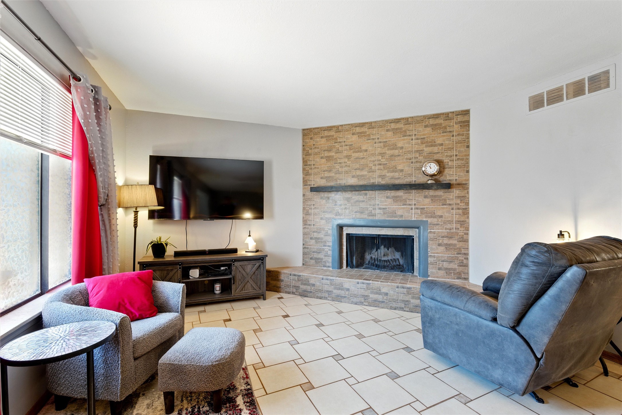 Newly reduced price! Move-in-ready White Rock townhouse now even more affordable- Perfect for first-time buyers or LANL professionals!! 3-bedroom, 3-bath townhouse --just minutes from Pinon Pool and scenic trails. The living room is perfect for entertaining, featuring a charming corner fireplace that creates a warm and inviting atmosphere.Enjoy the ease of main-floor living with a convenient powder bath and laundry area. The bright kitchen and dining space opens to a private patio--ideal for outdoor dining or morning coffee--and offers direct access to covered parking.Upstairs, you'll find two generously sized guest bedrooms and a full guest bath, along with a serene primary suite complete with a separate vanity area and a private bath.This beautifully situated home offers comfort, space, and a lifestyle you'll love. Don't miss this affordable gem in the "Happiest Small Town in America"!
