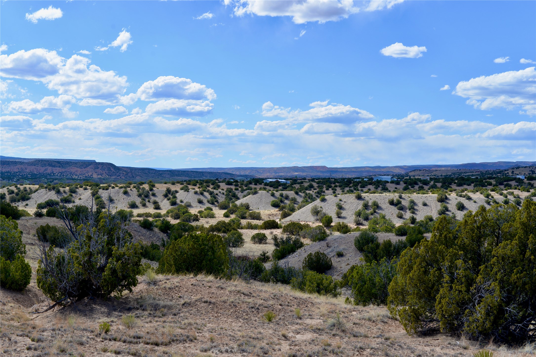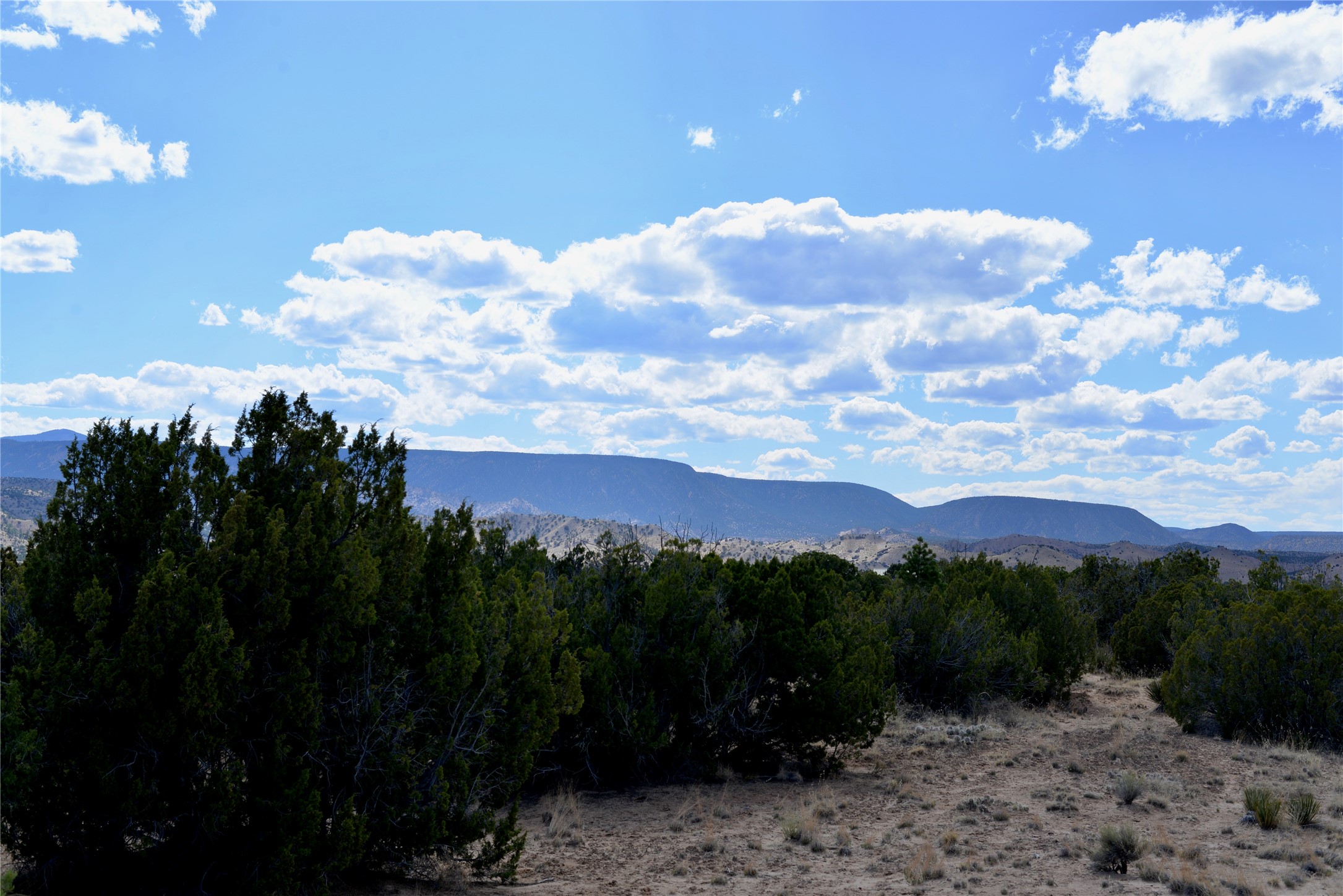 Be thoroughly inspired by this mesa-top retreat-like location, with its tall skies and long vistas. The unique, thriving subdivision (El Mirador) is a place to call home, with reasonable CCRs to protect your property values, yet allowing multiple outbuildings, including a guest house, studio, barn and corral. Electricity is right at the road (buried cable), close to excellent building sites, or potentially find an even more private building site off in the hills, and go solar. This peaceful, uplifting setting is little more than a mile from US-84, with easy access to the spectacular terrain and outdoor activities at Abiquiu Lake; and to the town of Abiquiu, featuring Georgia O'Keef's home and the renowned cuisine at the Abiquiu Inn. Santa Fe is only about 45 minutes away, and Taos about an hour. Close to everything, and it doesn't get more peaceful than this!