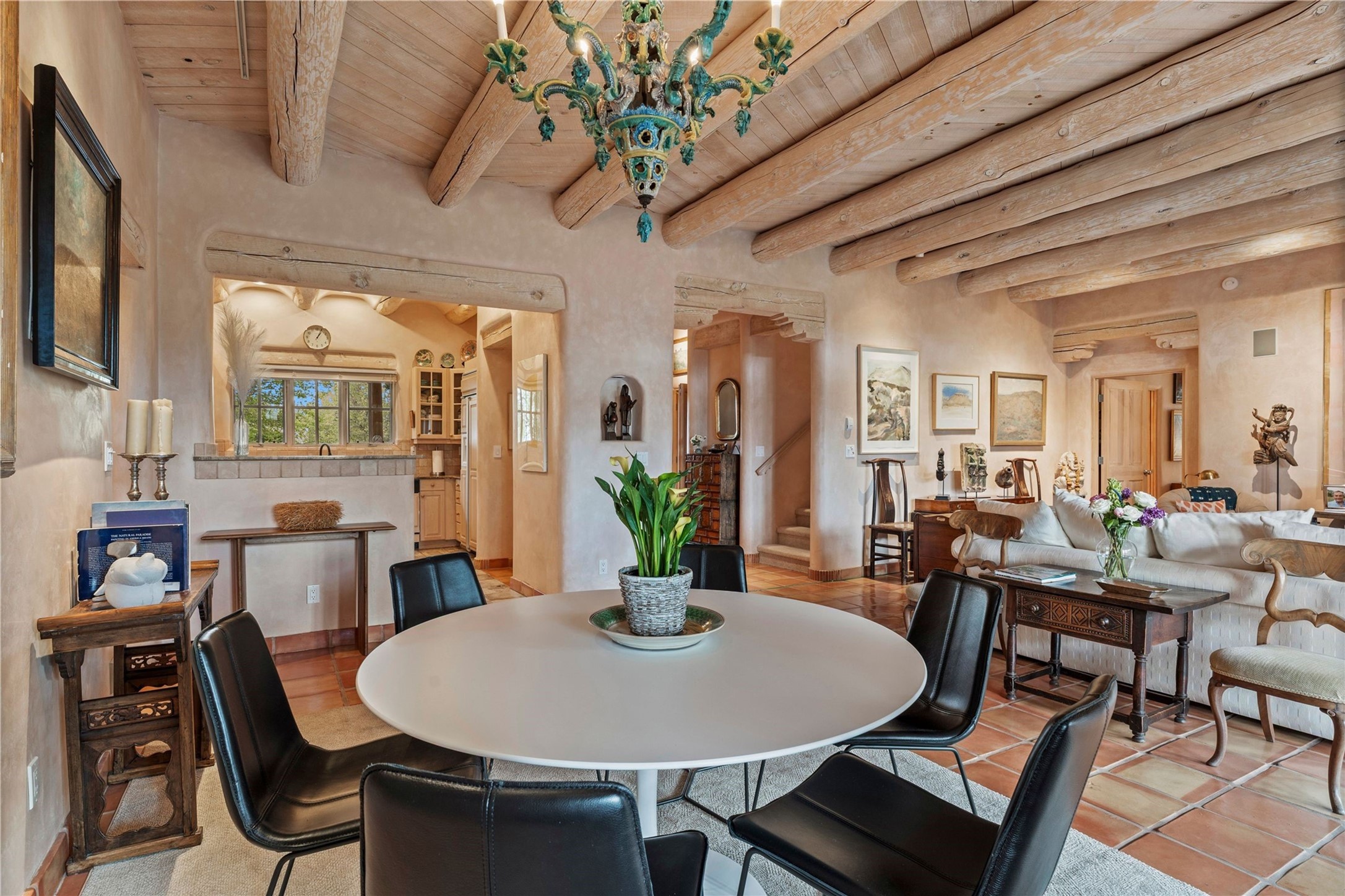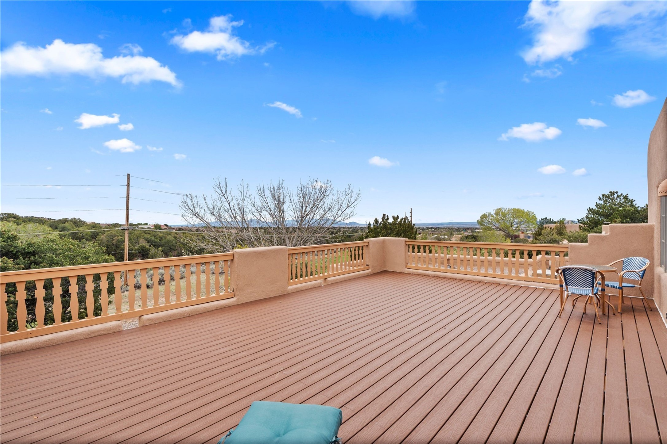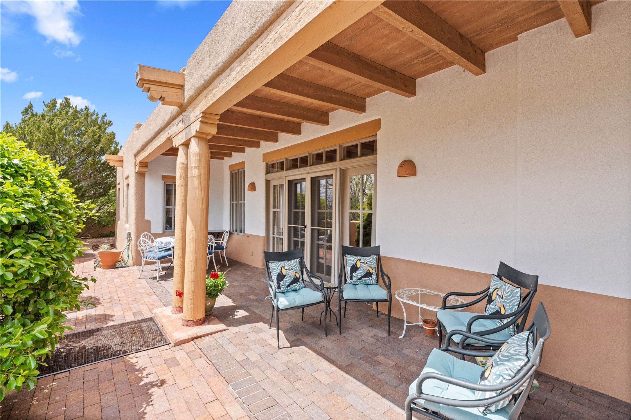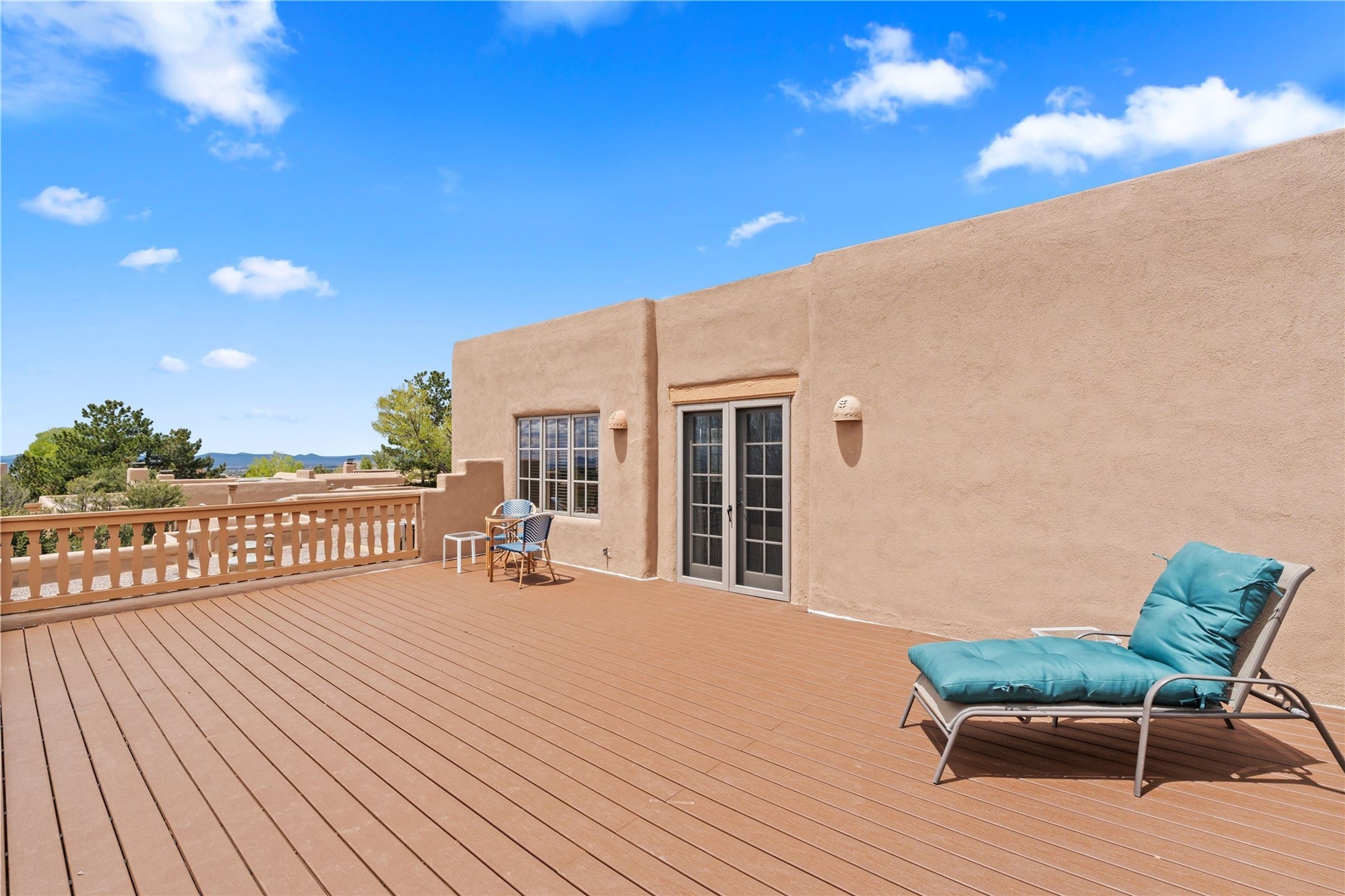 Sanctuary of Elegance in the Heart of Santa Fe. Welcome to 3101 Old Pecos Trail, Unit 690, a rare offering within Santa Fe's prestigious Quail Run community. This expansive 2,820 sq ft two-story detached condominium seamlessly blends the timeless charm of Pueblo-style architecture with the comfort and ease of modern living. Featuring four bedrooms and four bathrooms and a well-proportioned central living area, this light-filled home offers abundant space for both relaxation and effortless entertaining. Authentic vigas and beams, two kiva fireplaces, Saltillo tile floors, and hand-finished plaster walls create a warm, sophisticated ambiance throughout. One of the home's most remarkable features is its generous, private outdoor space amidst lush greenery offering refuge for morning coffee, alfresco dining or quiet reflection. Upstairs, a 600 sq ft rooftop deck captures panoramic mountain views, iconic sunsets, and star-studded night skies - the perfect setting for memorable gatherings and enjoying the abundant wildlife, especially birds. The primary suite is a true retreat complete with kiva fireplace and access to the long rear patio. The spacious guest suites provide flexibility for dual primary living, home offices, or creative spaces. Set in one of the most private and serene culs-de-sac within Quail Run, Unit 690 enjoys access to resort-style amenities, including a clubhouse with dining, fitness center, golf course, tennis courts, swimming pool, and 24-hour security. With HOA coverage for exterior maintenance, roof and more, this turnkey home offers security, luxury, convenience, and peace of mind - all just minutes from the heart of historic downtown Santa Fe and close to the Opera and Ski Basin.