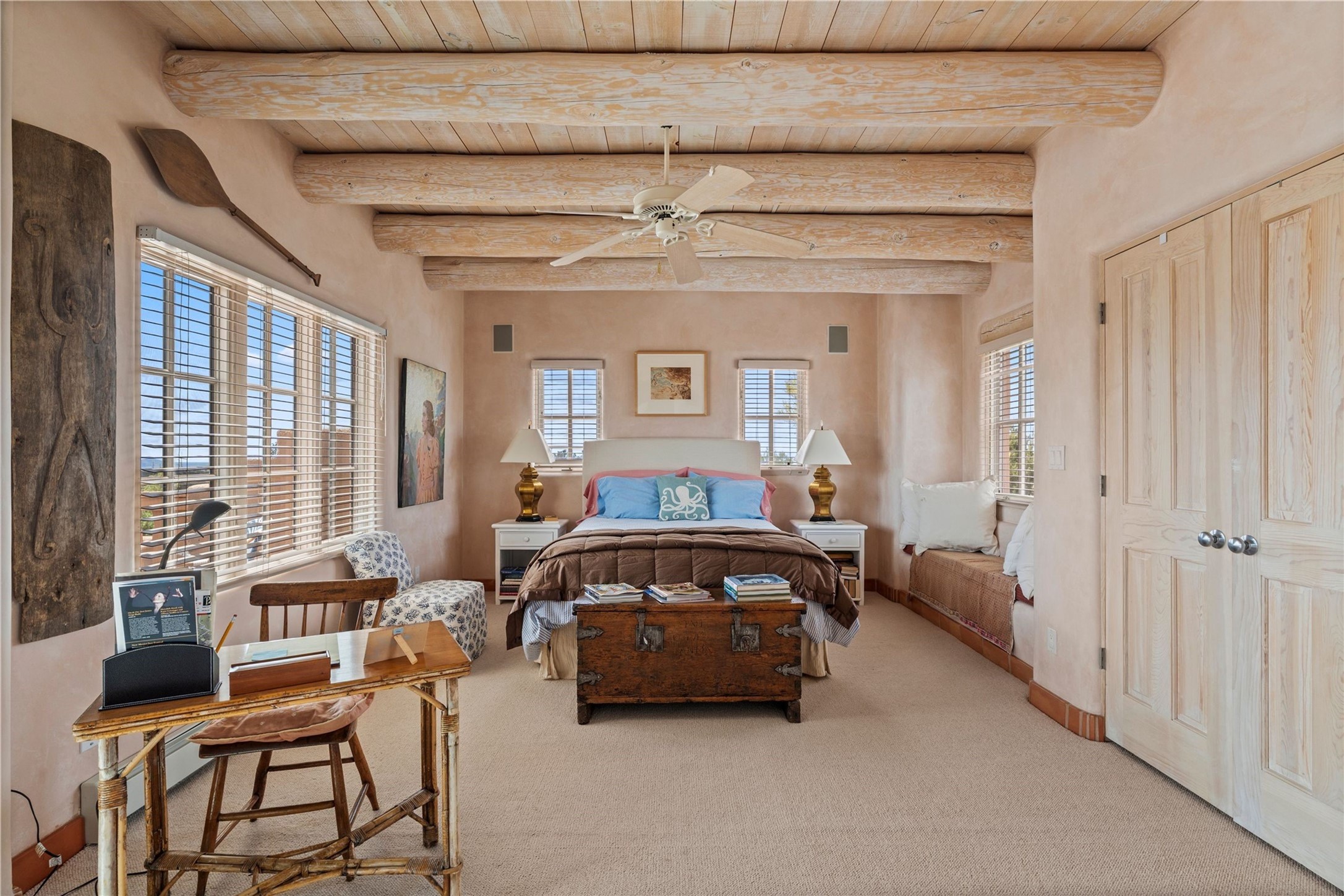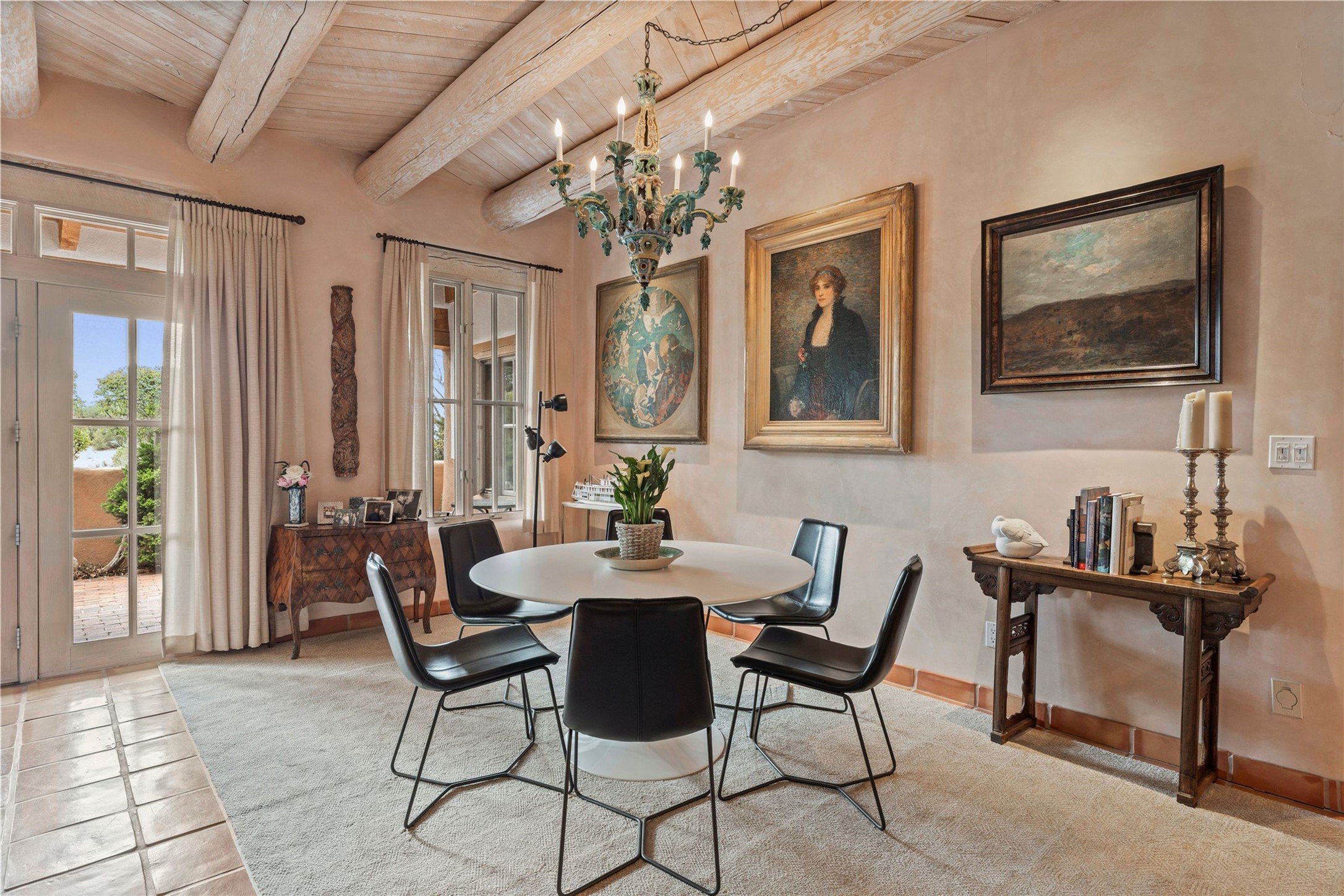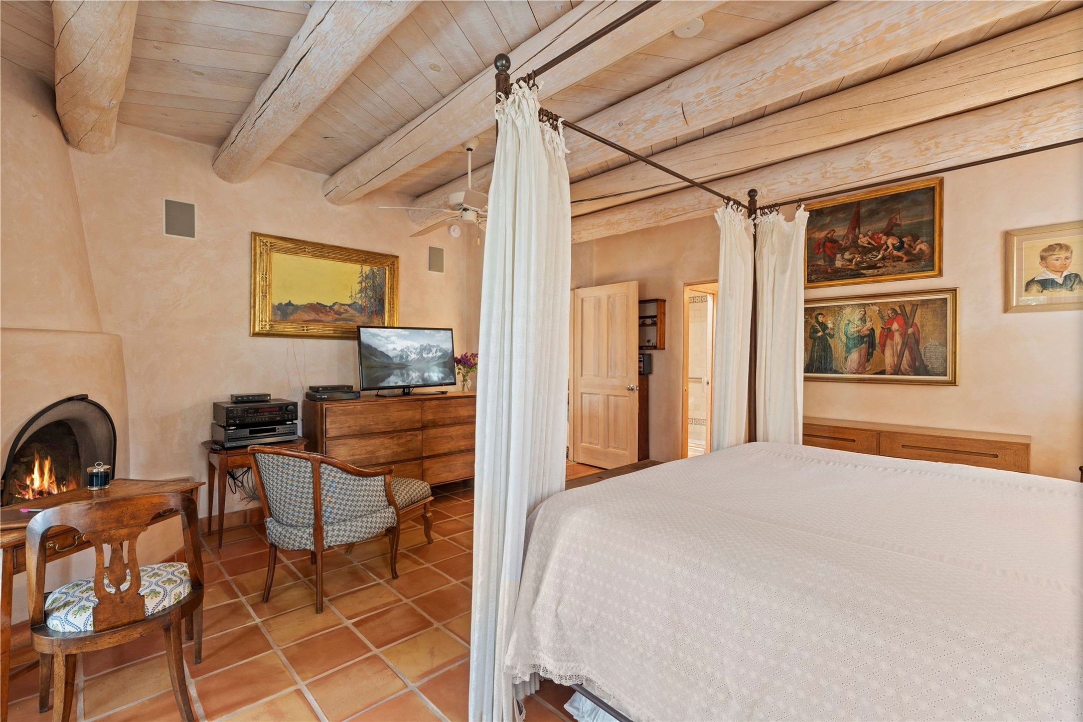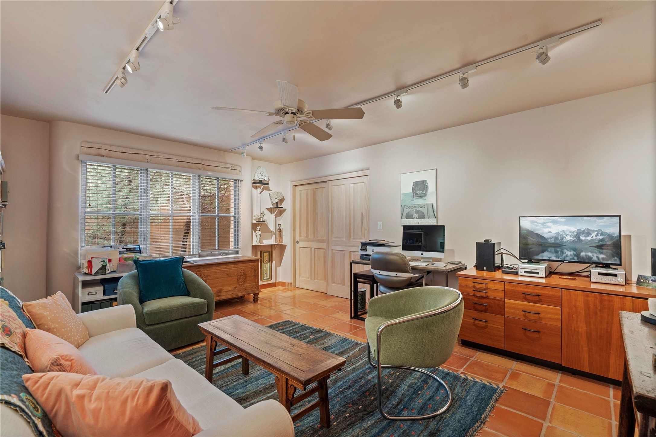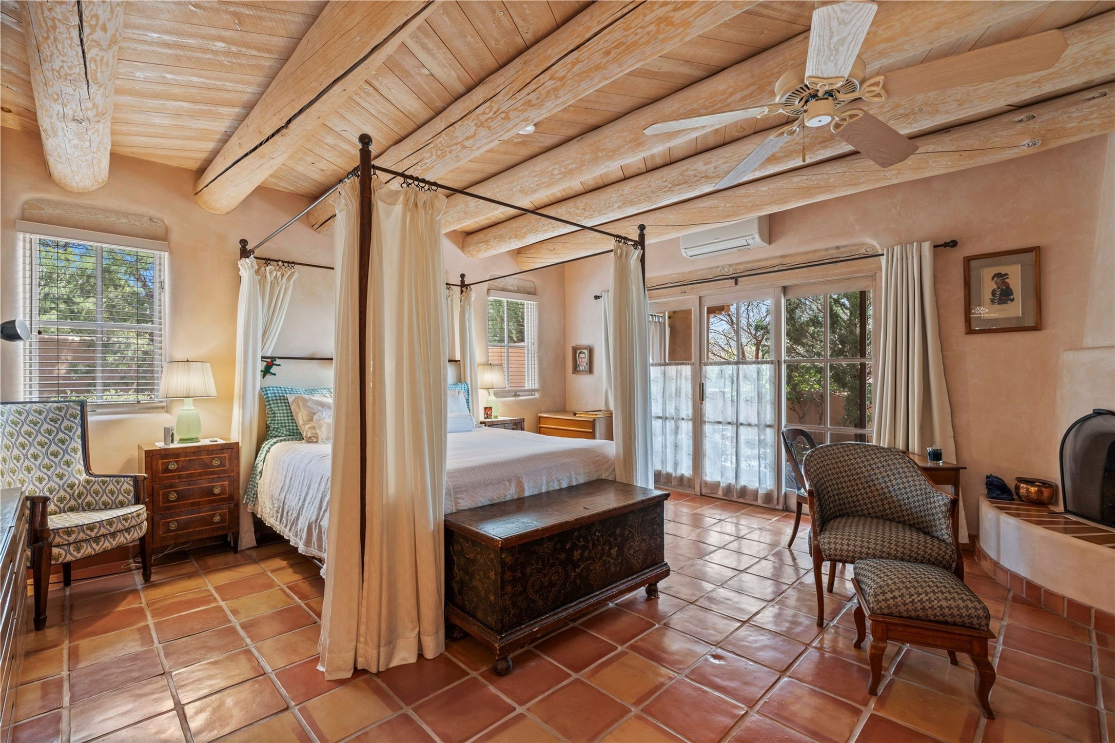 Sanctuary of Elegance in the Heart of Santa Fe. Welcome to 3101 Old Pecos Trail, Unit 690, a rare offering within Santa Fe's prestigious Quail Run community. This expansive 2,820 sq ft two-story detached condominium seamlessly blends the timeless charm of Pueblo-style architecture with the comfort and ease of modern living. Featuring four bedrooms and four bathrooms and a well-proportioned central living area, this light-filled home offers abundant space for both relaxation and effortless entertaining. Authentic vigas and beams, two kiva fireplaces, Saltillo tile floors, and hand-finished plaster walls create a warm, sophisticated ambiance throughout. One of the home's most remarkable features is its generous, private outdoor space amidst lush greenery offering refuge for morning coffee, alfresco dining or quiet reflection. Upstairs, a 600 sq ft rooftop deck captures panoramic mountain views, iconic sunsets, and star-studded night skies - the perfect setting for memorable gatherings and enjoying the abundant wildlife, especially birds. The primary suite is a true retreat complete with kiva fireplace and access to the long rear patio. The spacious guest suites provide flexibility for dual primary living, home offices, or creative spaces. Set in one of the most private and serene culs-de-sac within Quail Run, Unit 690 enjoys access to resort-style amenities, including a clubhouse with dining, fitness center, golf course, tennis courts, swimming pool, and 24-hour security. With HOA coverage for exterior maintenance, roof and more, this turnkey home offers security, luxury, convenience, and peace of mind - all just minutes from the heart of historic downtown Santa Fe and close to the Opera and Ski Basin.