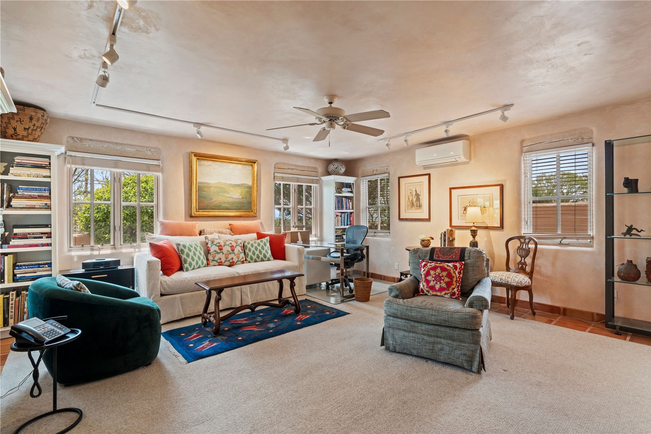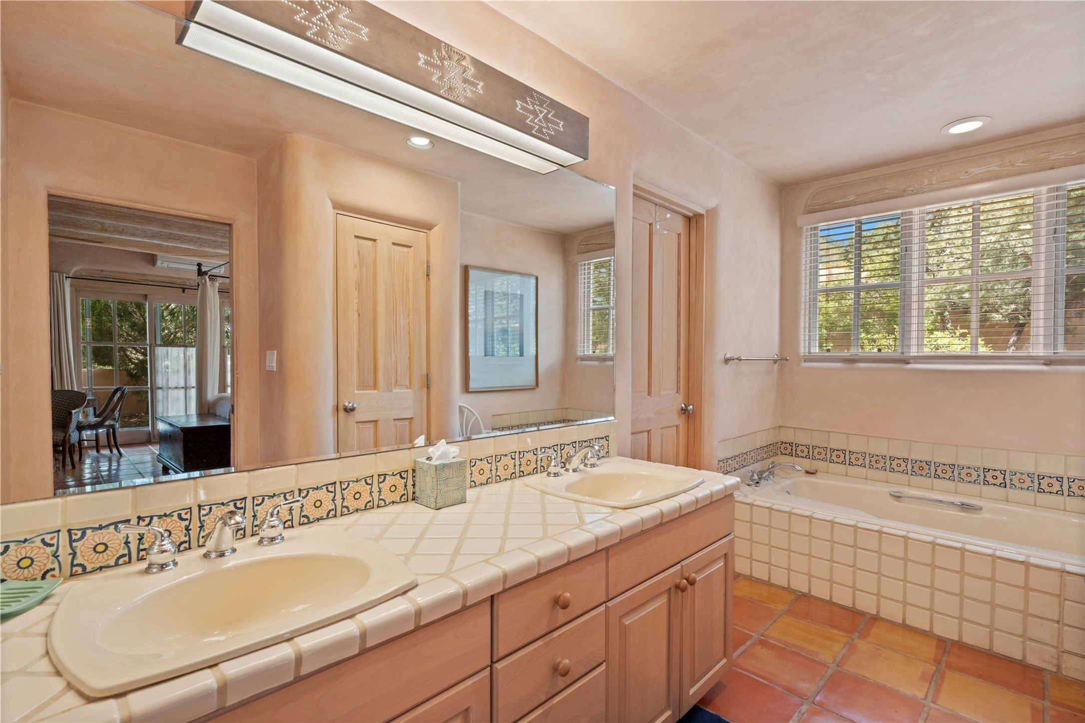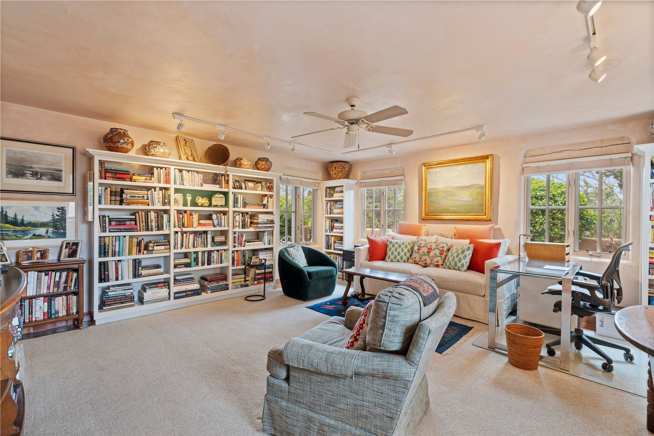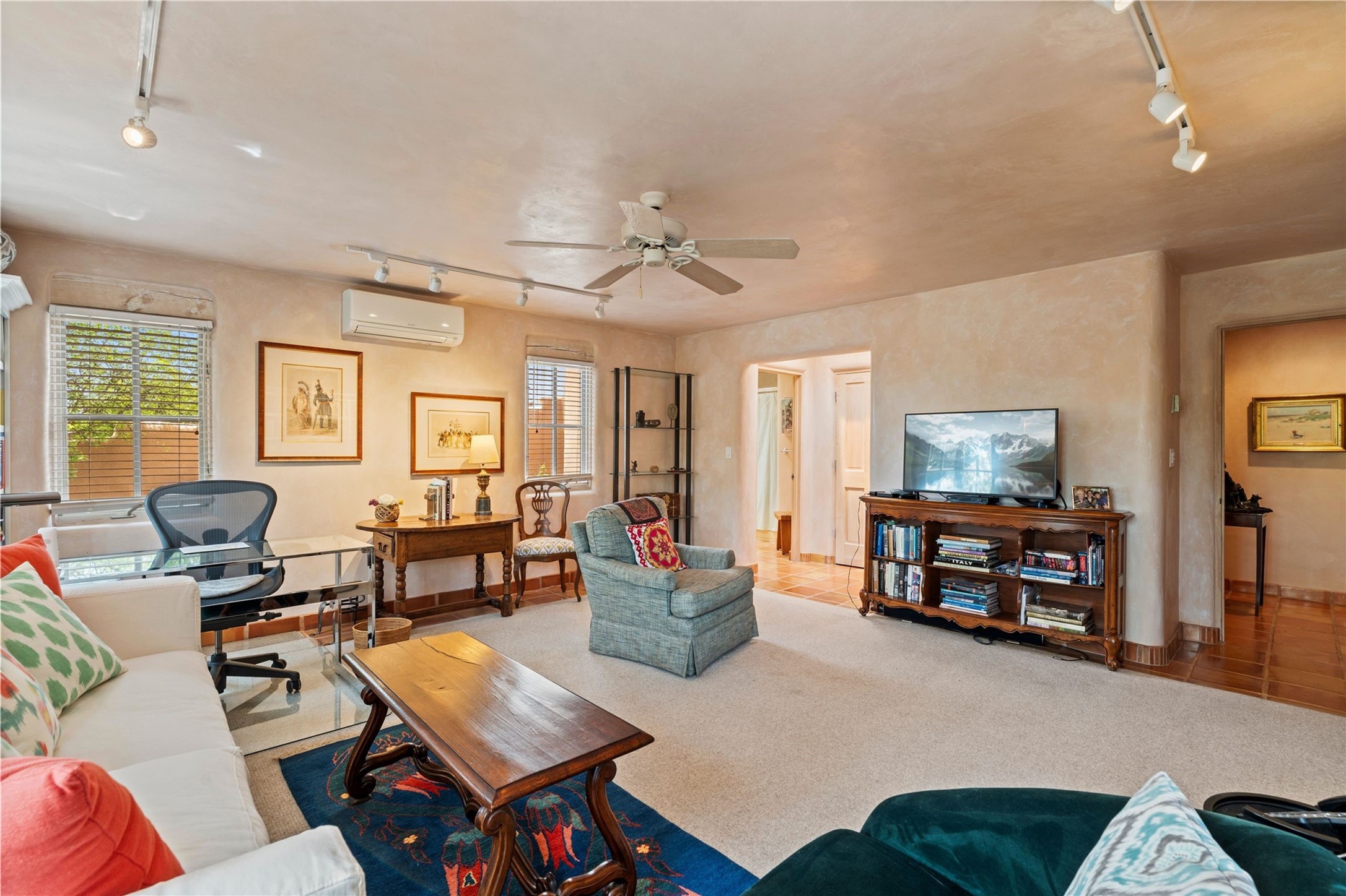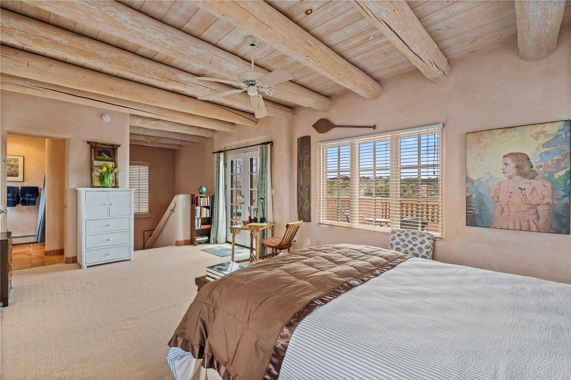 Sanctuary of Elegance in the Heart of Santa Fe. Welcome to 3101 Old Pecos Trail, Unit 690, a rare offering within Santa Fe's prestigious Quail Run community. This expansive 2,820 sq ft two-story detached condominium seamlessly blends the timeless charm of Pueblo-style architecture with the comfort and ease of modern living. Featuring four bedrooms and four bathrooms and a well-proportioned central living area, this light-filled home offers abundant space for both relaxation and effortless entertaining. Authentic vigas and beams, two kiva fireplaces, Saltillo tile floors, and hand-finished plaster walls create a warm, sophisticated ambiance throughout. One of the home's most remarkable features is its generous, private outdoor space amidst lush greenery offering refuge for morning coffee, alfresco dining or quiet reflection. Upstairs, a 600 sq ft rooftop deck captures panoramic mountain views, iconic sunsets, and star-studded night skies - the perfect setting for memorable gatherings and enjoying the abundant wildlife, especially birds. The primary suite is a true retreat complete with kiva fireplace and access to the long rear patio. The spacious guest suites provide flexibility for dual primary living, home offices, or creative spaces. Set in one of the most private and serene culs-de-sac within Quail Run, Unit 690 enjoys access to resort-style amenities, including a clubhouse with dining, fitness center, golf course, tennis courts, swimming pool, and 24-hour security. With HOA coverage for exterior maintenance, roof and more, this turnkey home offers security, luxury, convenience, and peace of mind - all just minutes from the heart of historic downtown Santa Fe and close to the Opera and Ski Basin.