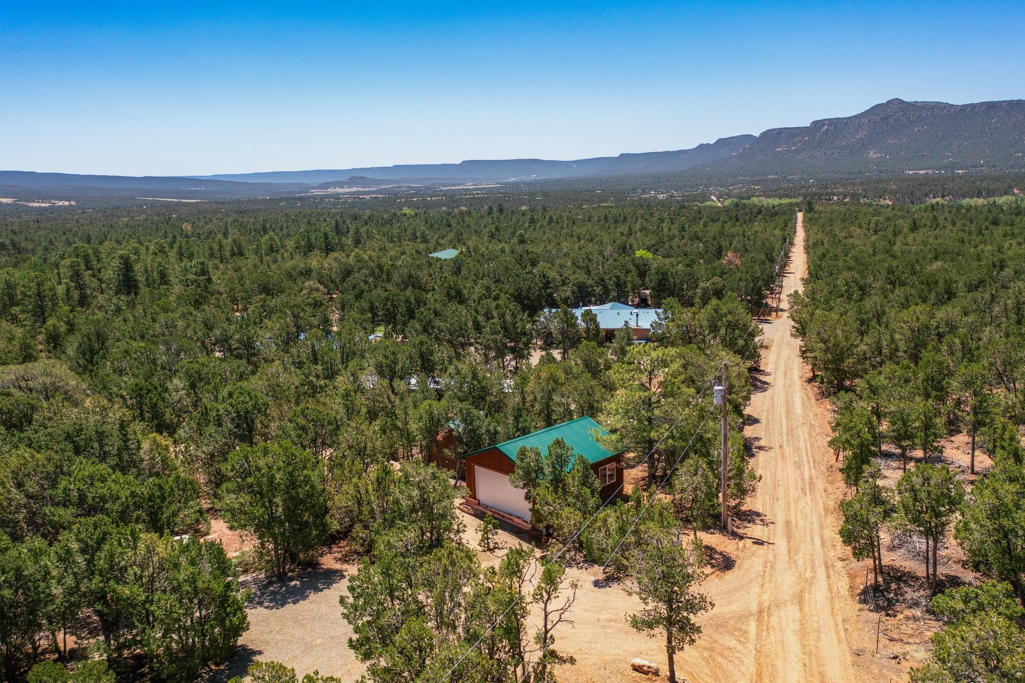Beautiful custom built log cabin for sale on 5 gorgeous tree covered acres. The home features 5 bedrooms, 4 1/2 baths, chef's kitchen, expansive floor plan, a recently built workshop/studio, and expansive deck great for entertaining. The home is constructed using builder chosen 6-18 inch logs and features two in-home sprinkler systems. The property contains incredible landscaping and has potential for horses with ample storage and barns. There are two legal lots of record, a private well with water rights, chicken coop, greenhouse, fruit trees, sophisticated playground equipment, healthy Pion, Juniper trees, custom rock retaining walls, and graveled driveway. Conveniently located 30 minutes from downtown Santa Fe, this incredible property combines the best of rural living with easy access to amenities. Set up a showing today!